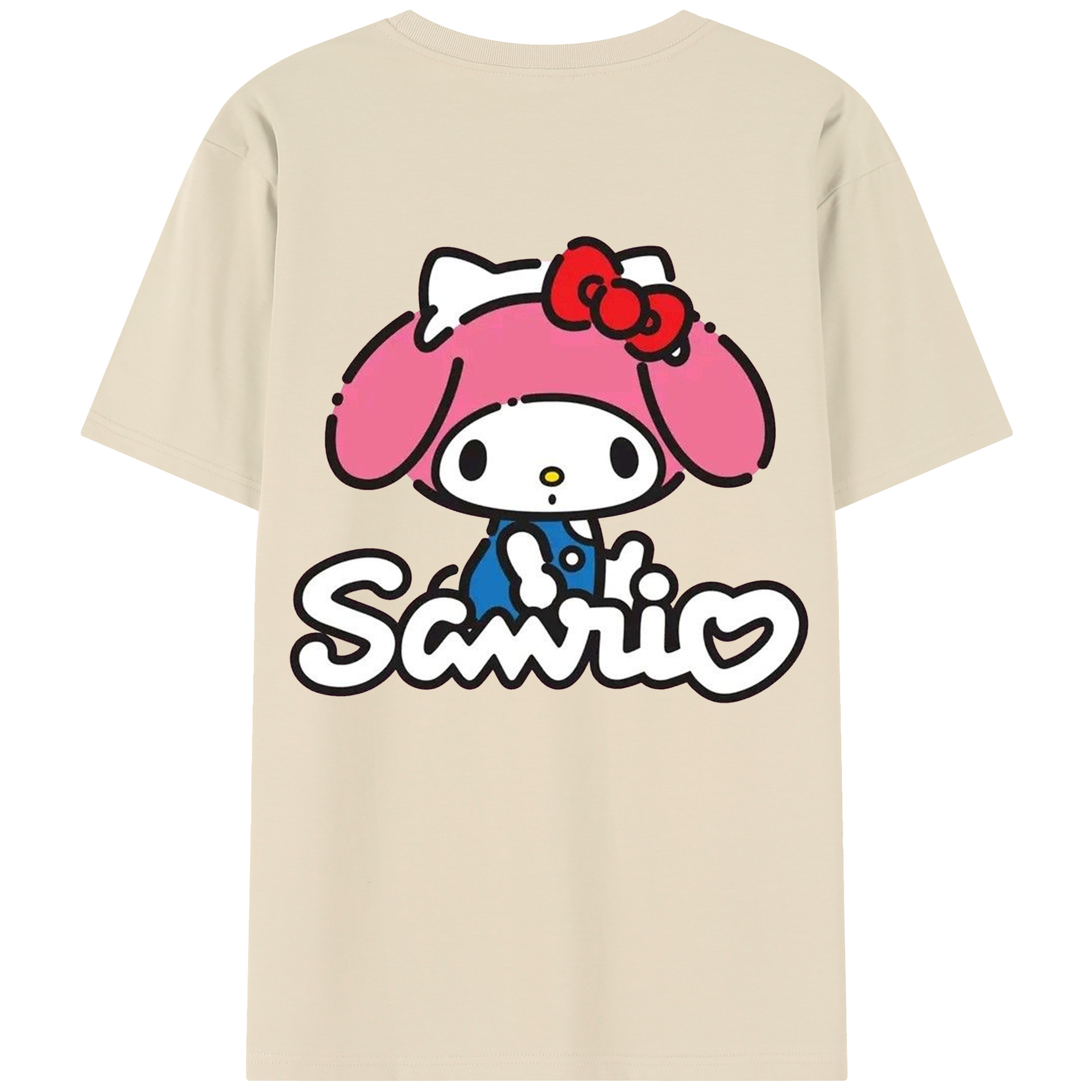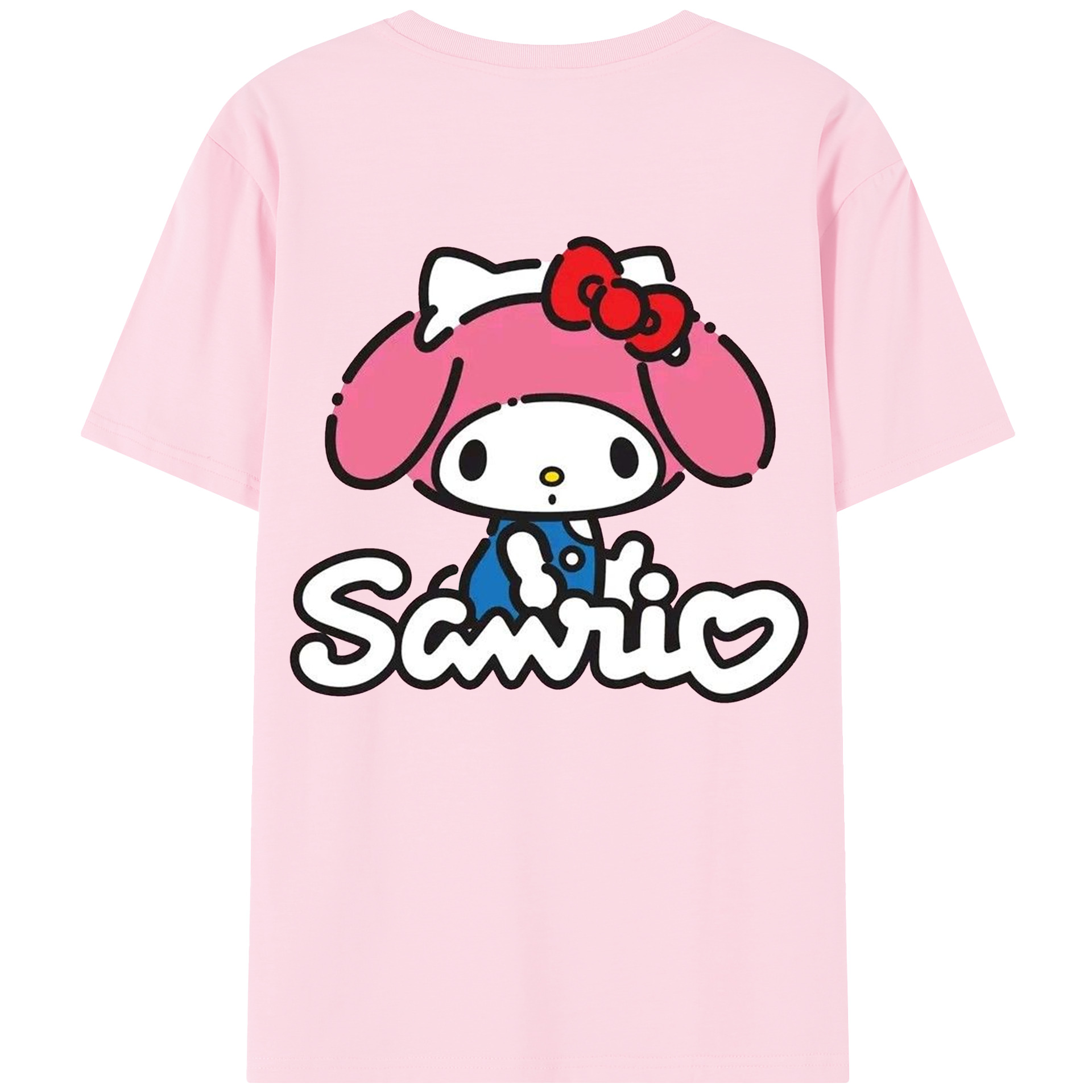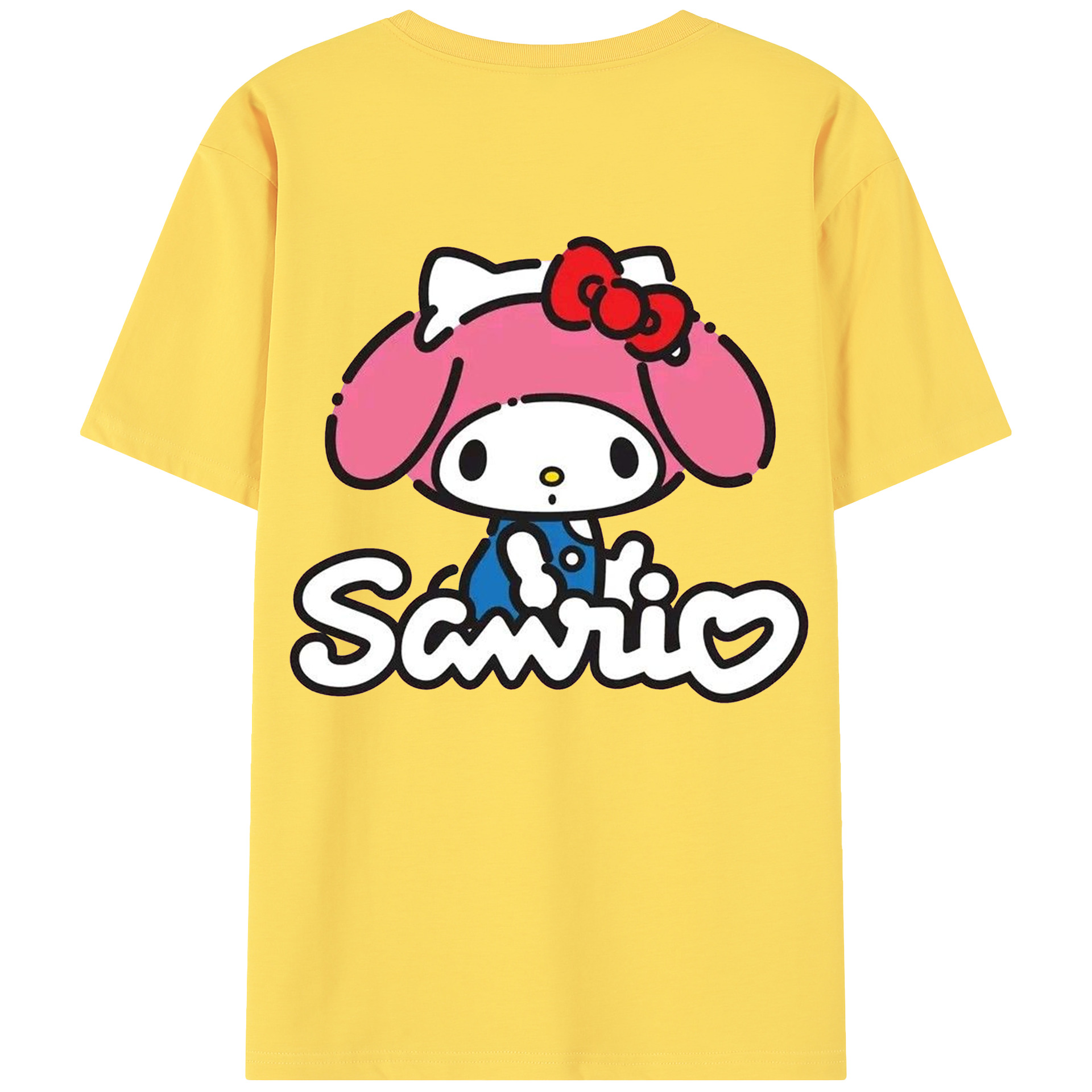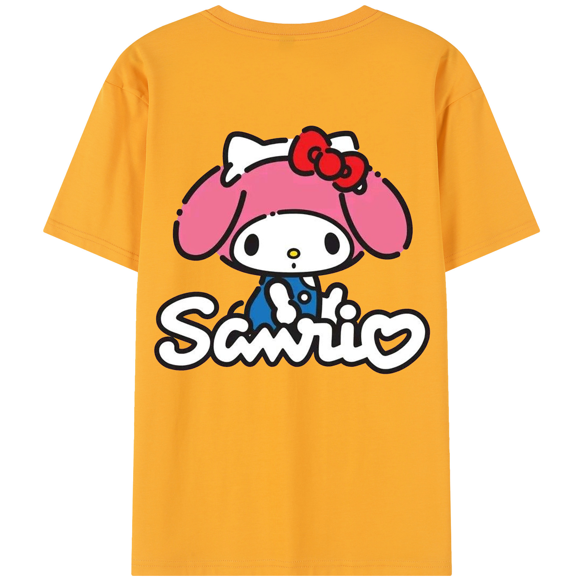 サンリオマイメロディ - 綿100% 半袖Tシャツ ・ バックプリント ・ 快適 通気性 ・ 日常使い 散歩 スポーツ用
