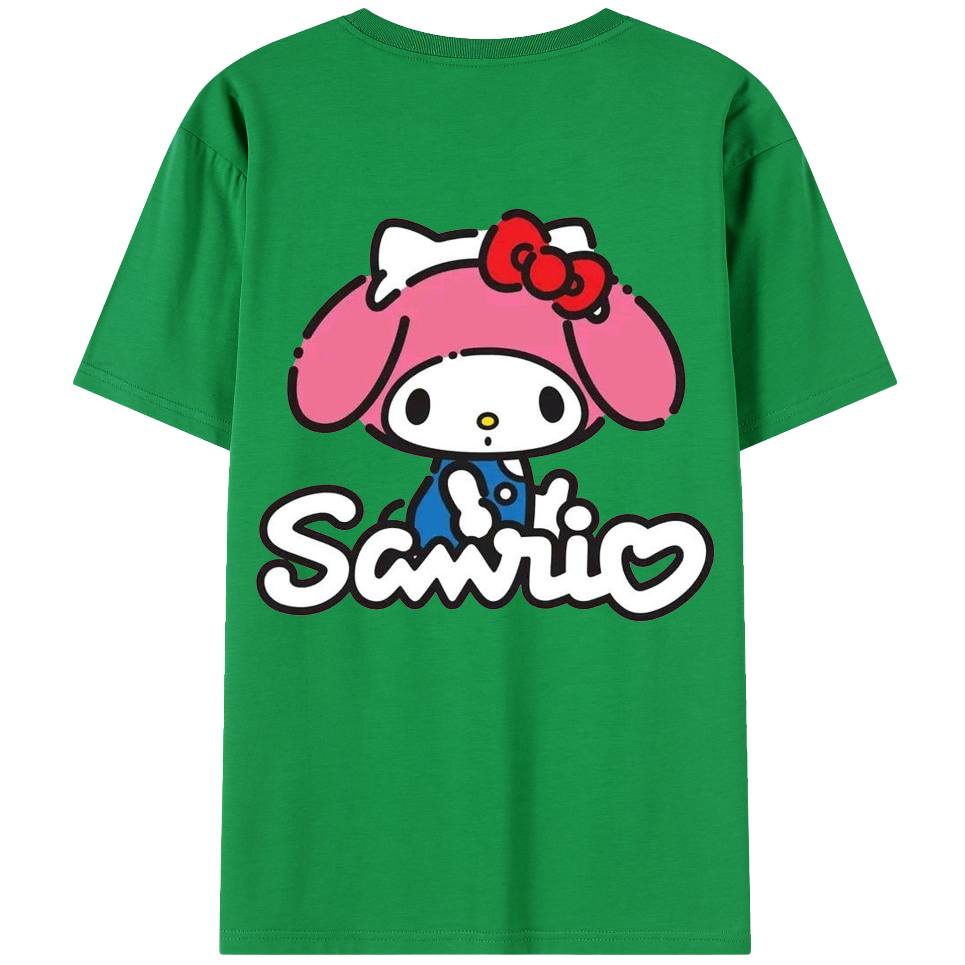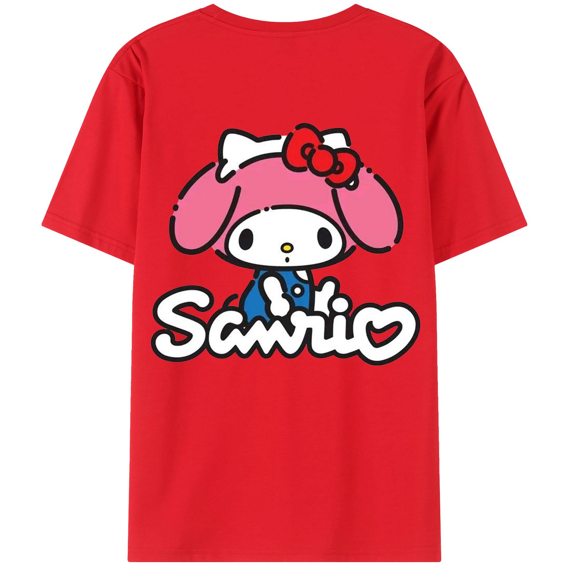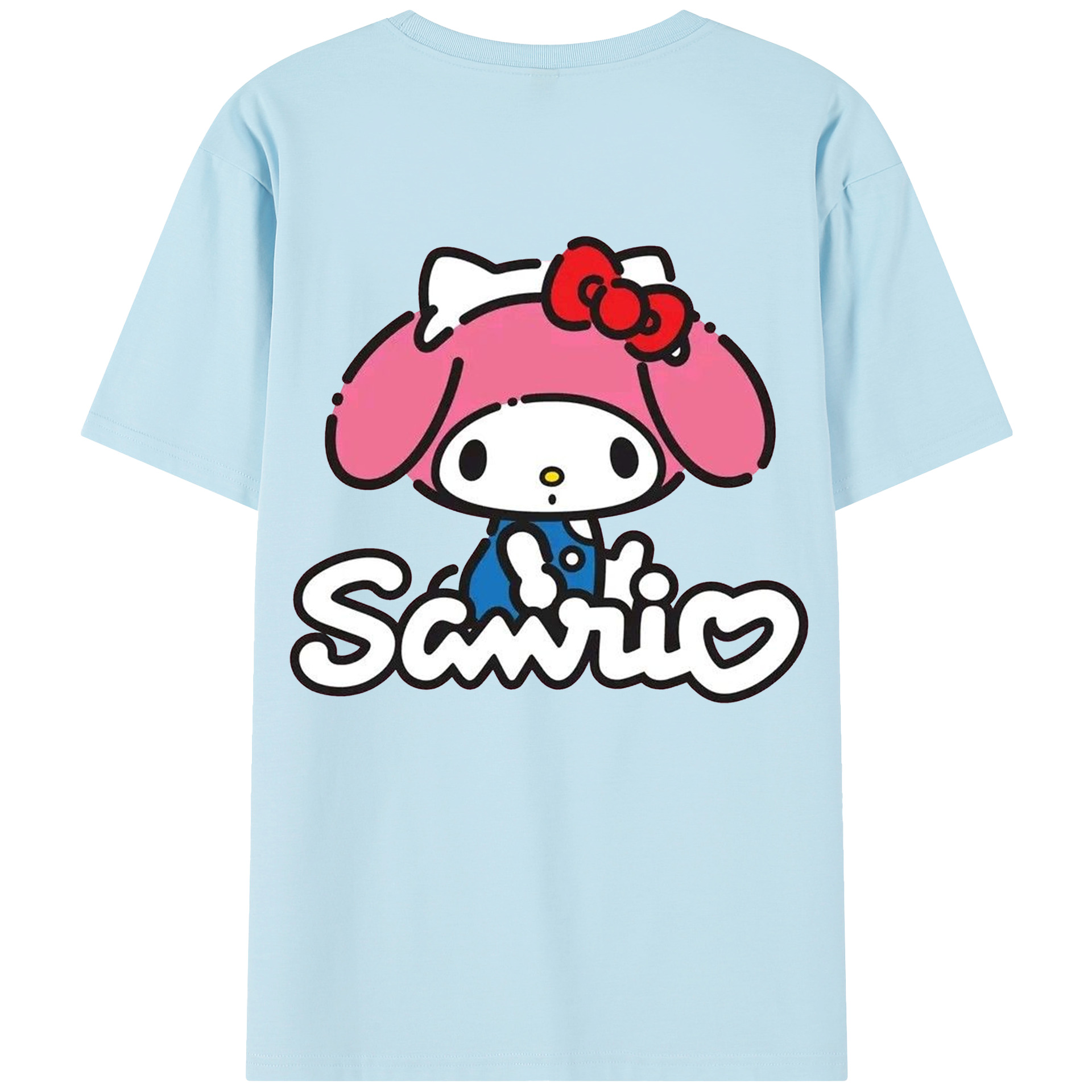 サンリオマイメロディ - 綿100% 半袖Tシャツ ・ バックプリント ・ 快適 通気性 ・ 日常使い 散歩 スポーツ用