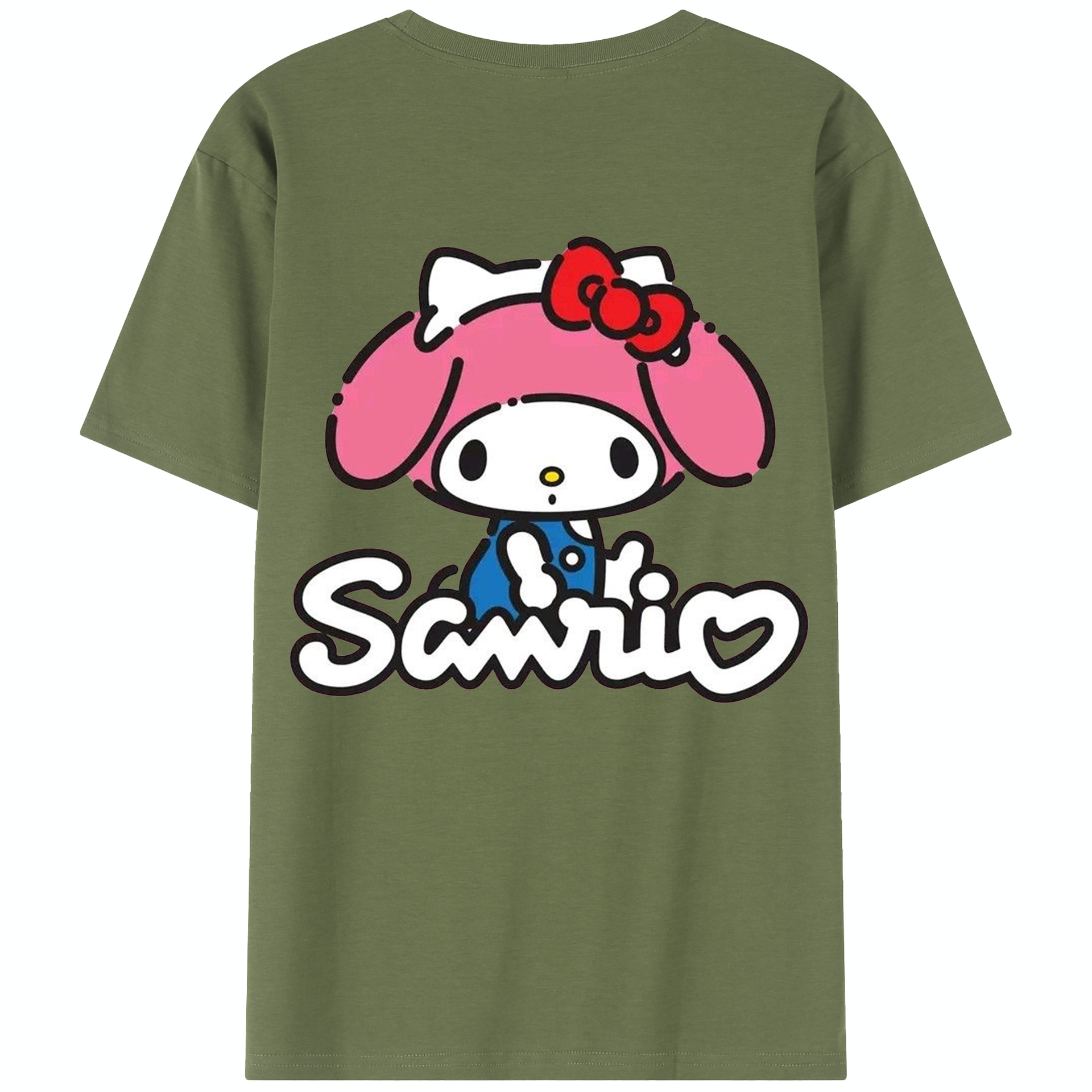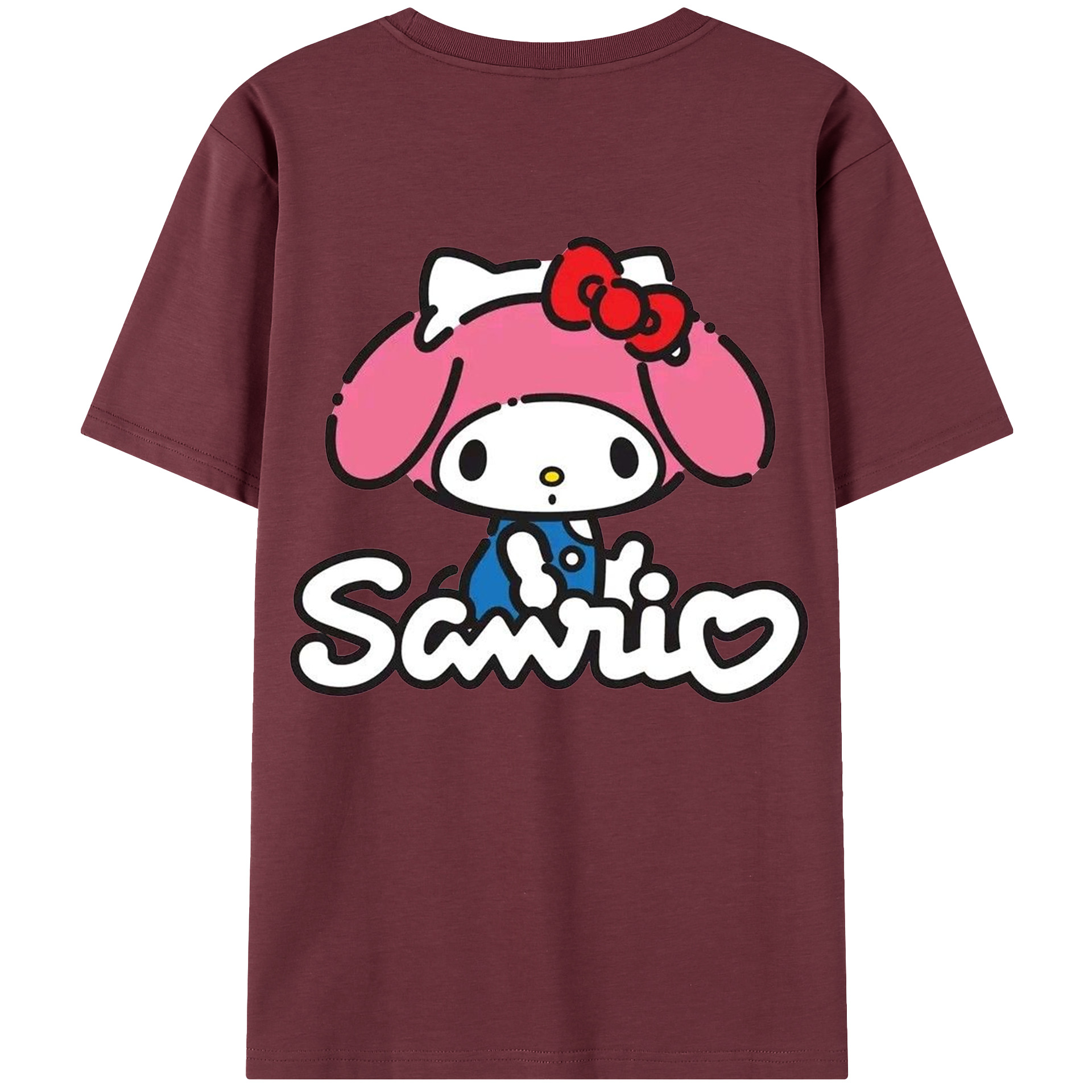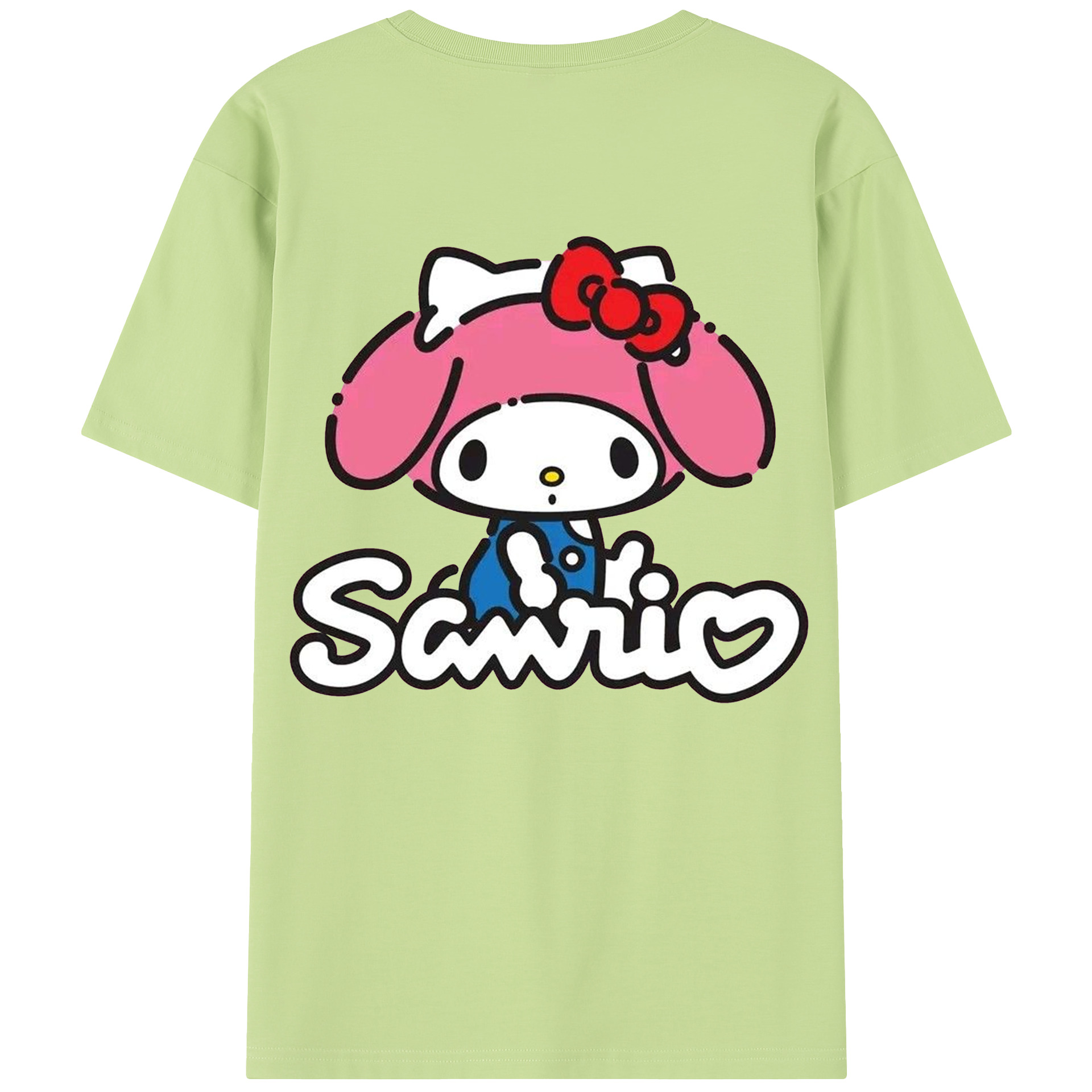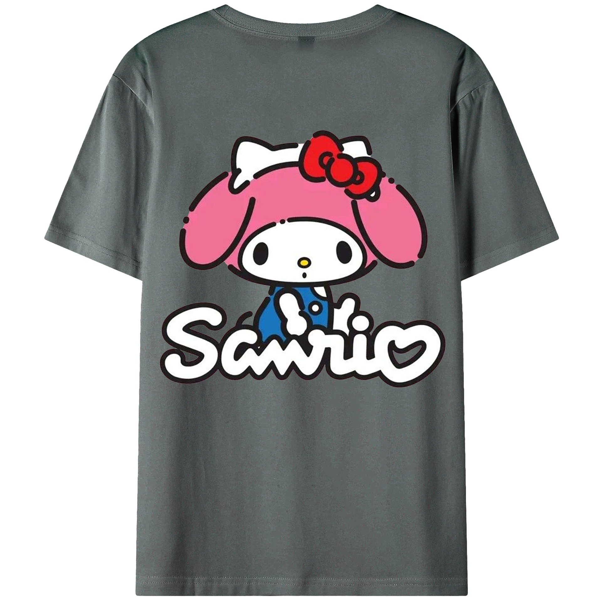 サンリオマイメロディ - 綿100% 半袖Tシャツ ・ バックプリント ・ 快適 通気性 ・ 日常使い 散歩 スポーツ用