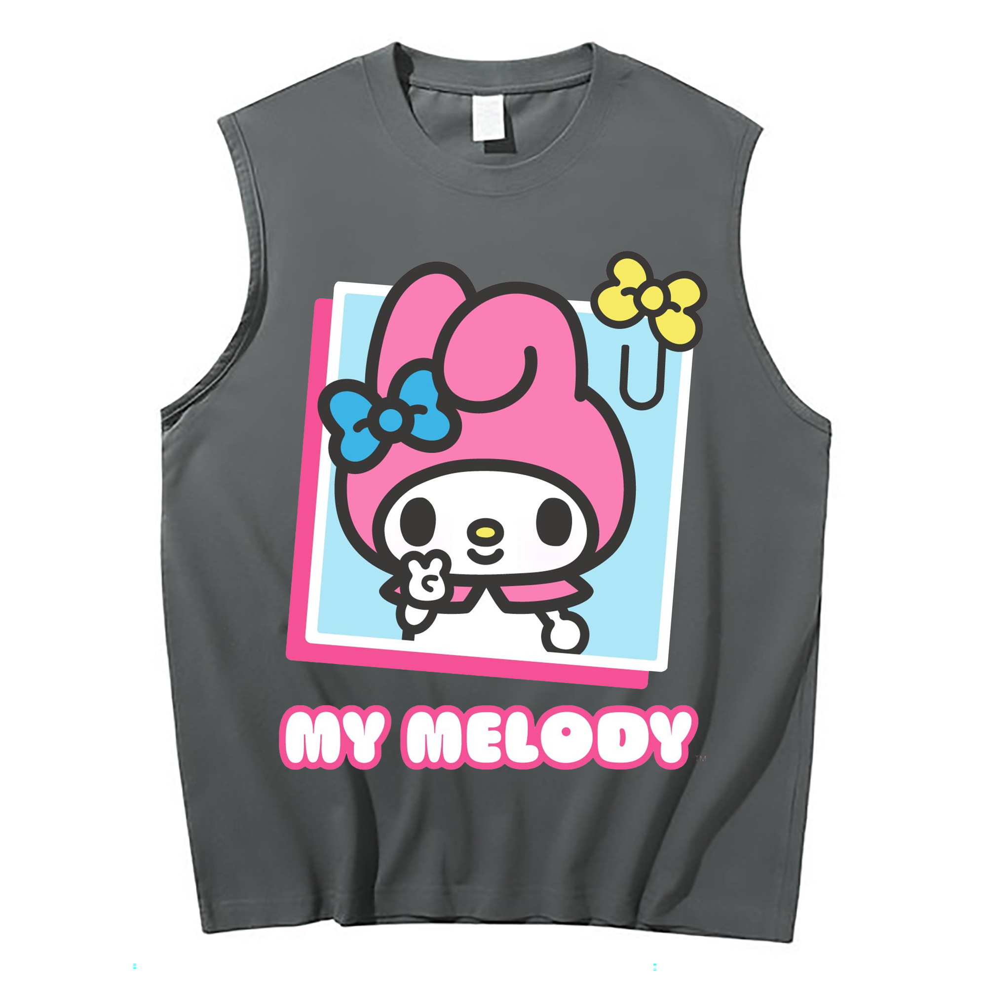 サンリオマイメロディ - コットン100% タンクトップ ・ フロントプリント ・ タイトフィット ・ 快適 通気性 ・ スポーツ カジュアル 散歩用