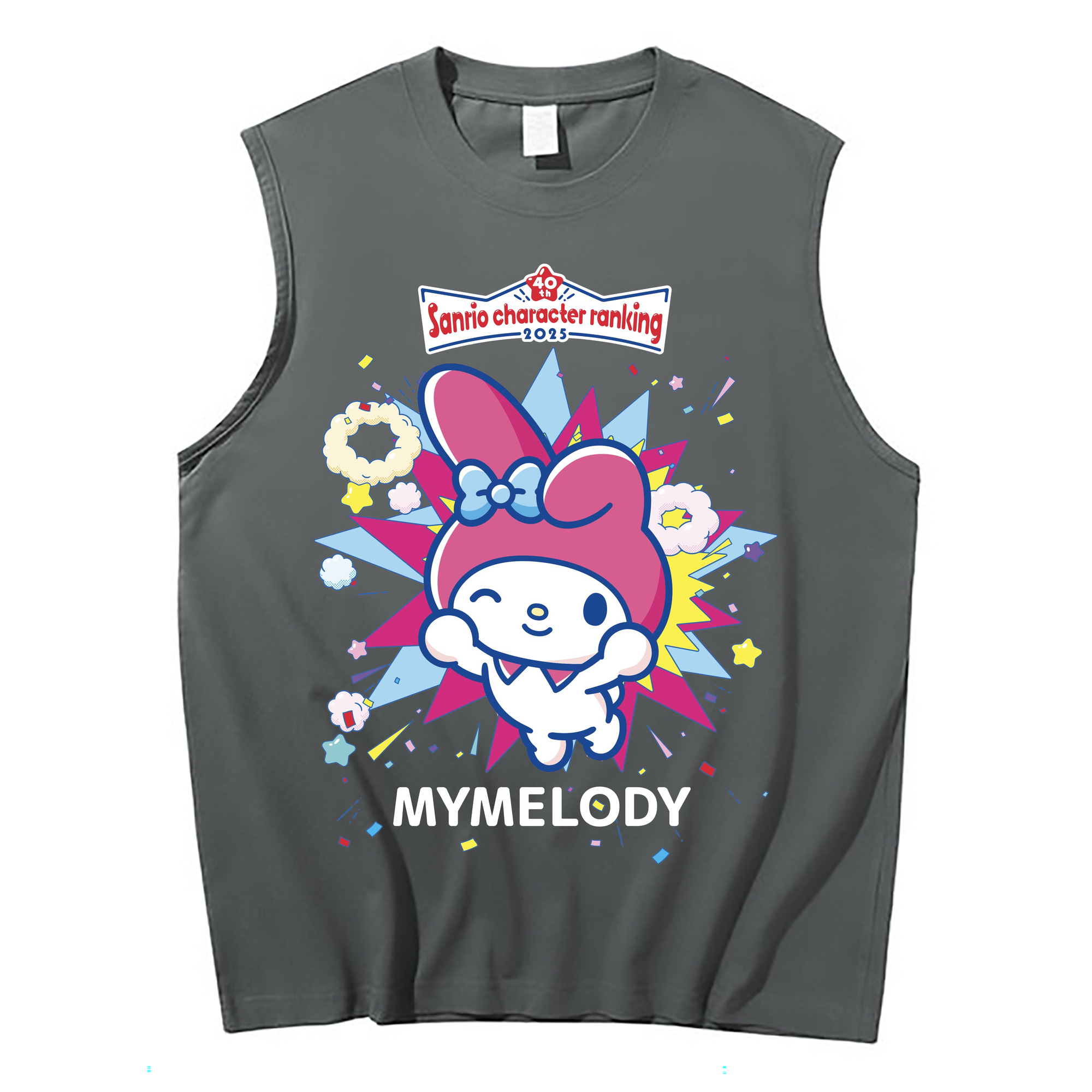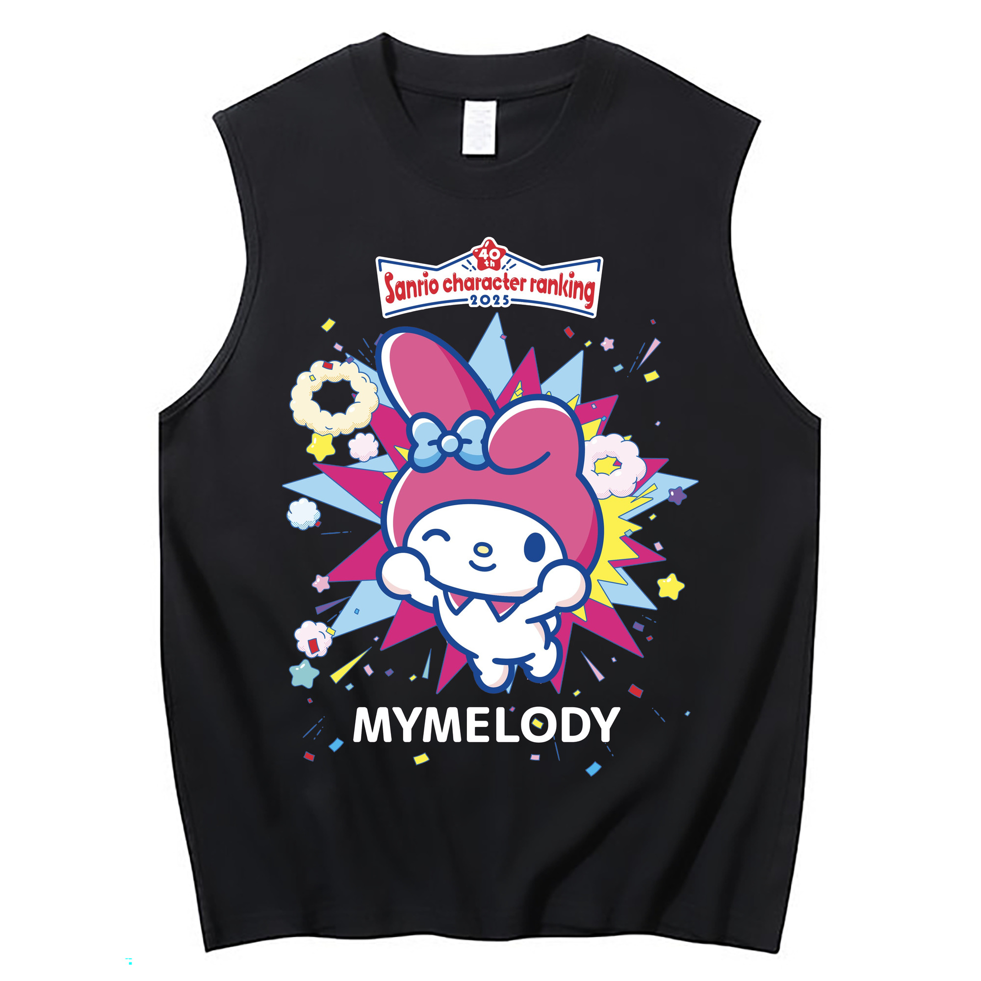 サンリオマイメロディ - コットン100% タンクトップ ・ フロントプリント ・ タイトフィット ・ 快適 通気性 ・ スポーツ カジュアル 散歩用