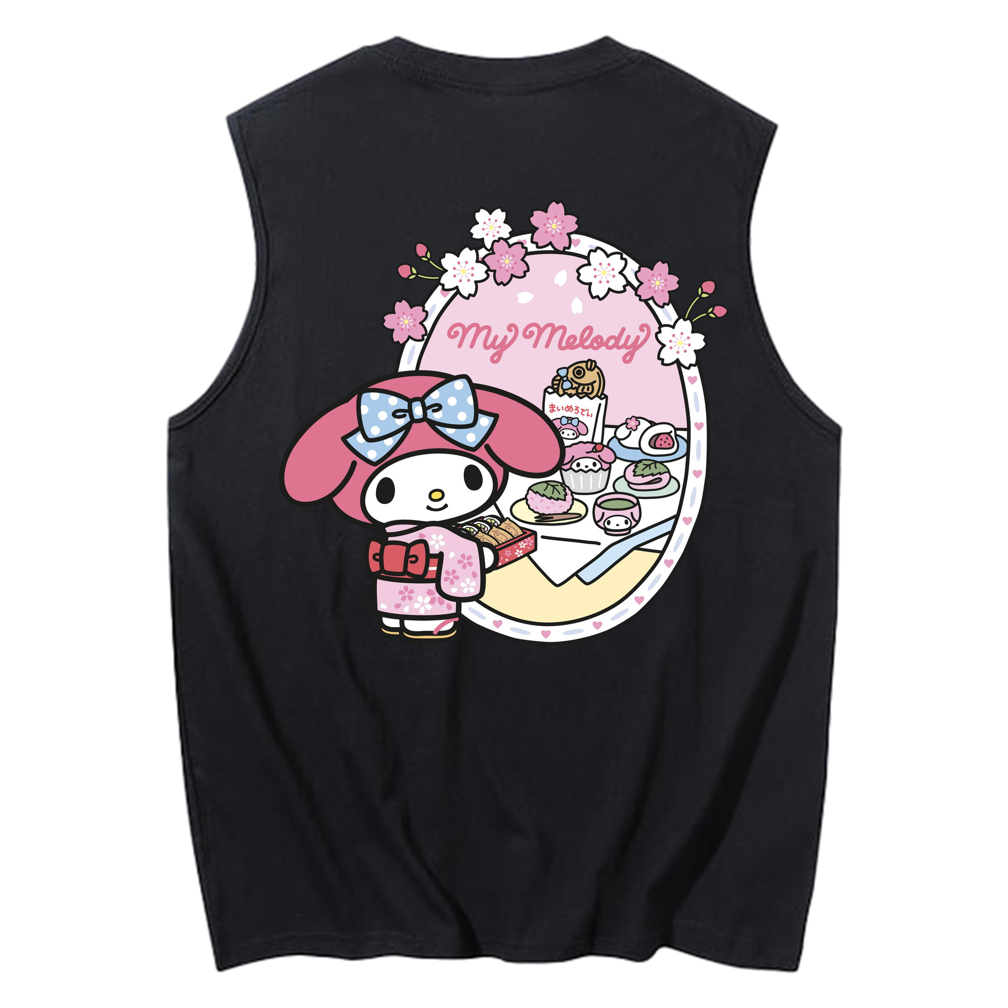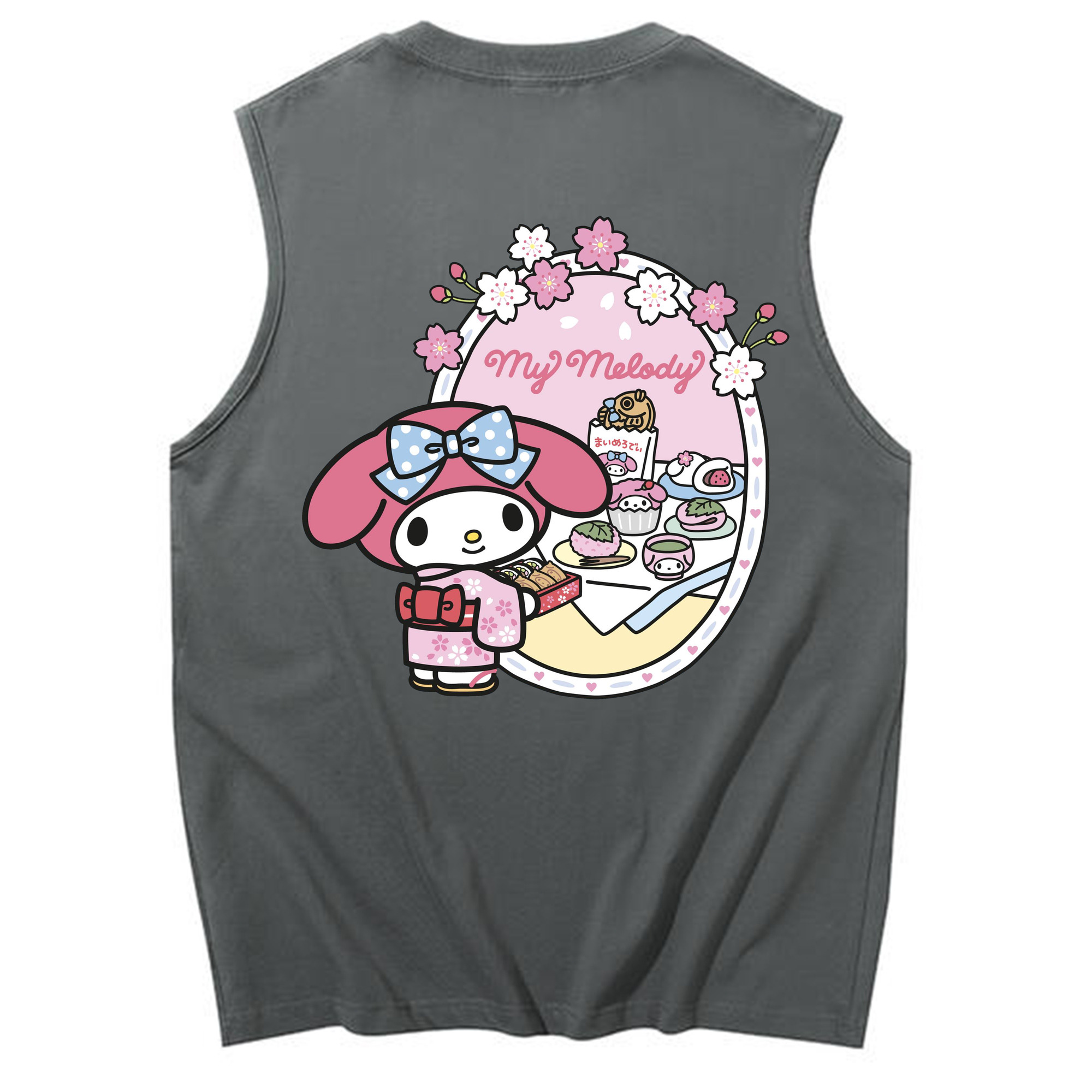 サンリオマイメロディ - コットン100% タンクトップ ・ 背面プリント ・ タイトシルエット ・ 快適 通気性 ・ スポーツ カジュアル 散歩用