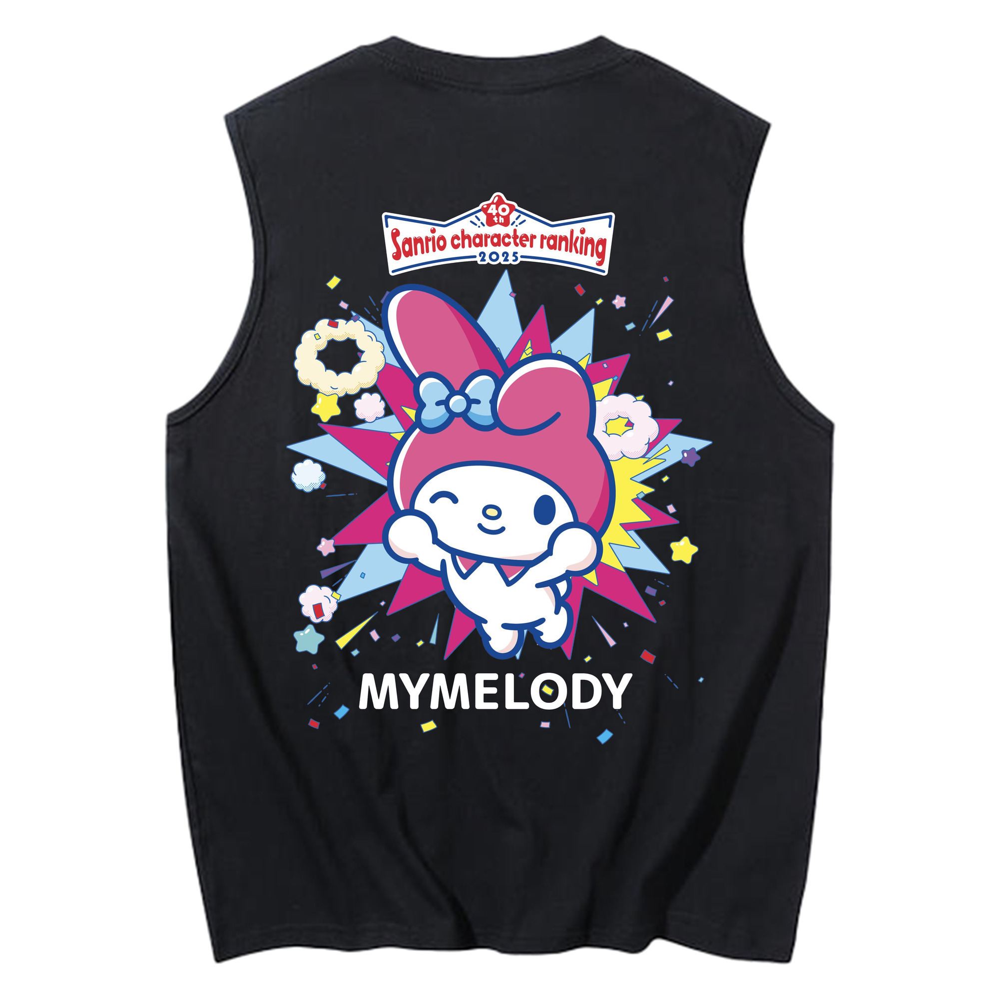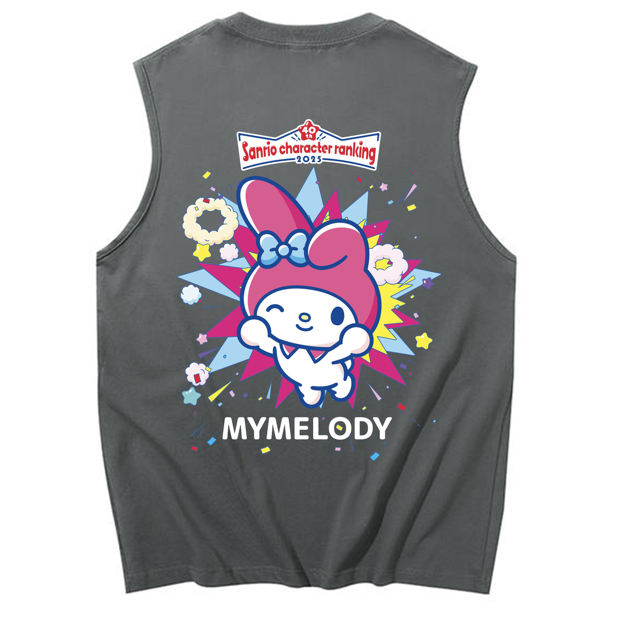 サンリオマイメロディ - コットン100% タンクトップ ・ 背面プリント ・ タイトシルエット ・ 快適 通気性 ・ スポーツ カジュアル 散歩用