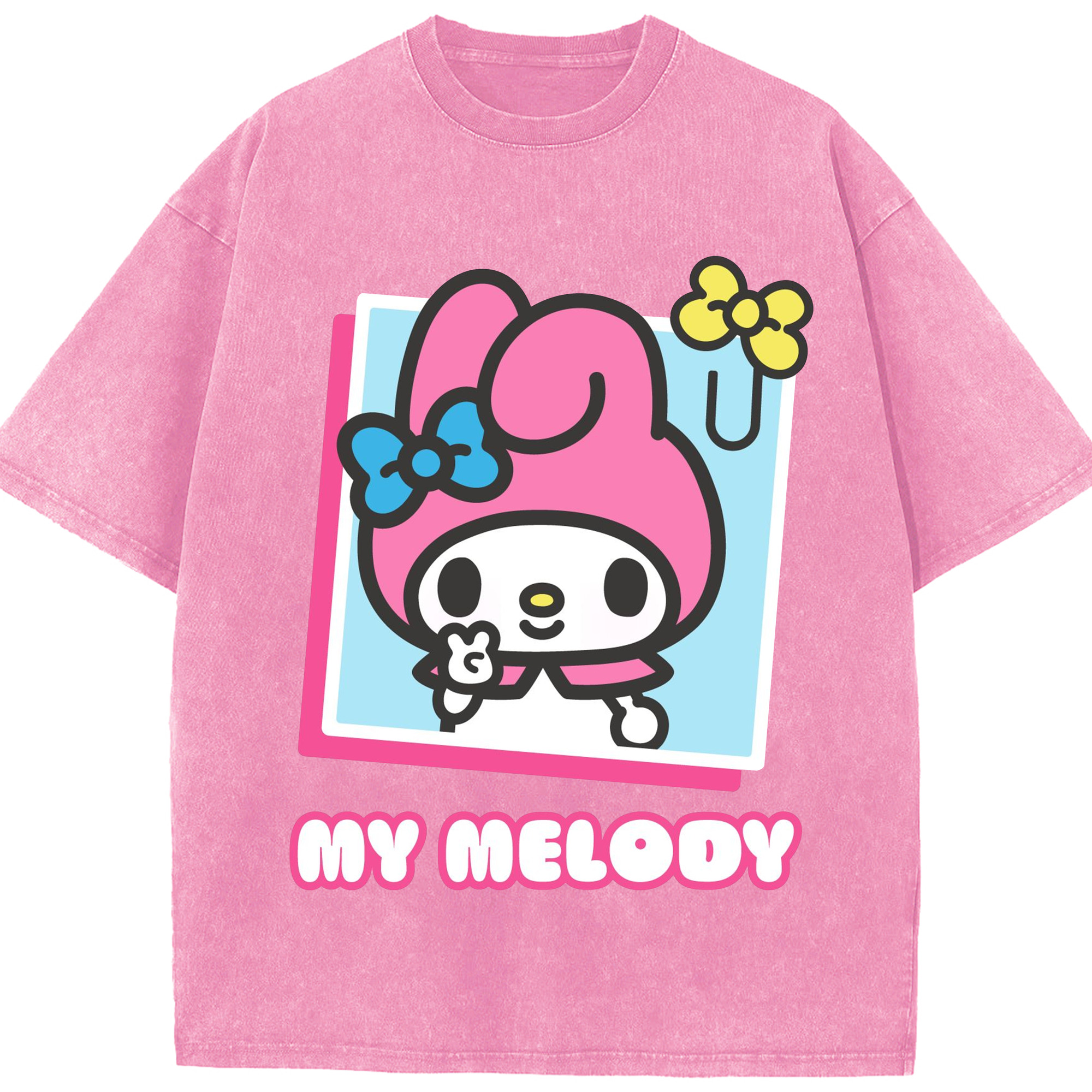 サンリオマイメロディ - 綿100% 半袖Tシャツ ・ バックプリント ・ 快適 通気性 ・ 日常使い 散歩 スポーツ用