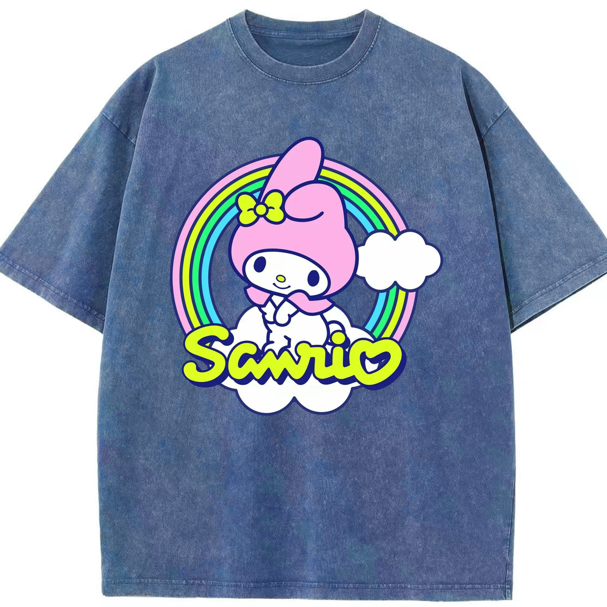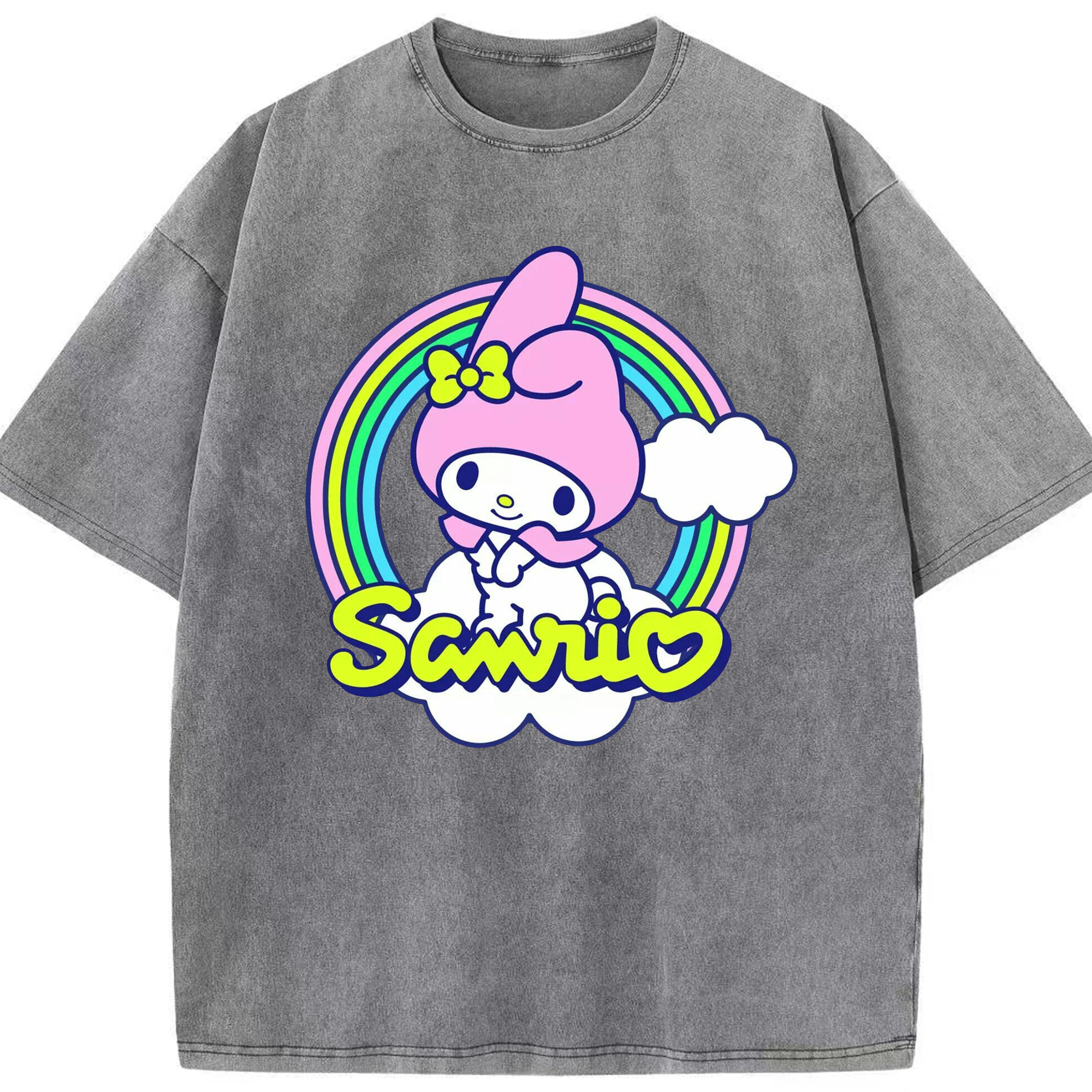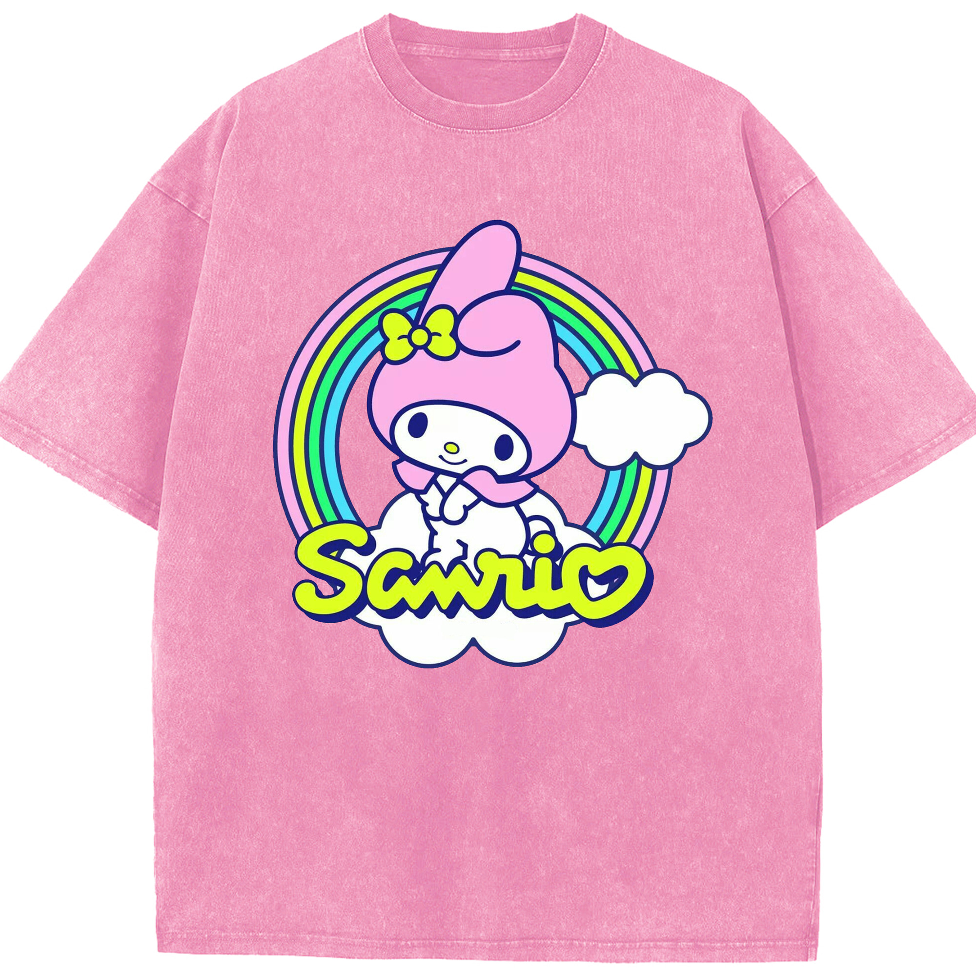 サンリオマイメロディ - 綿100% ヴィンテージ風 半袖Tシャツ ・ フロントプリント ・ 柔らか肌触り ・ 通気性 快適 ・ スポーツ カジュアル 外出用