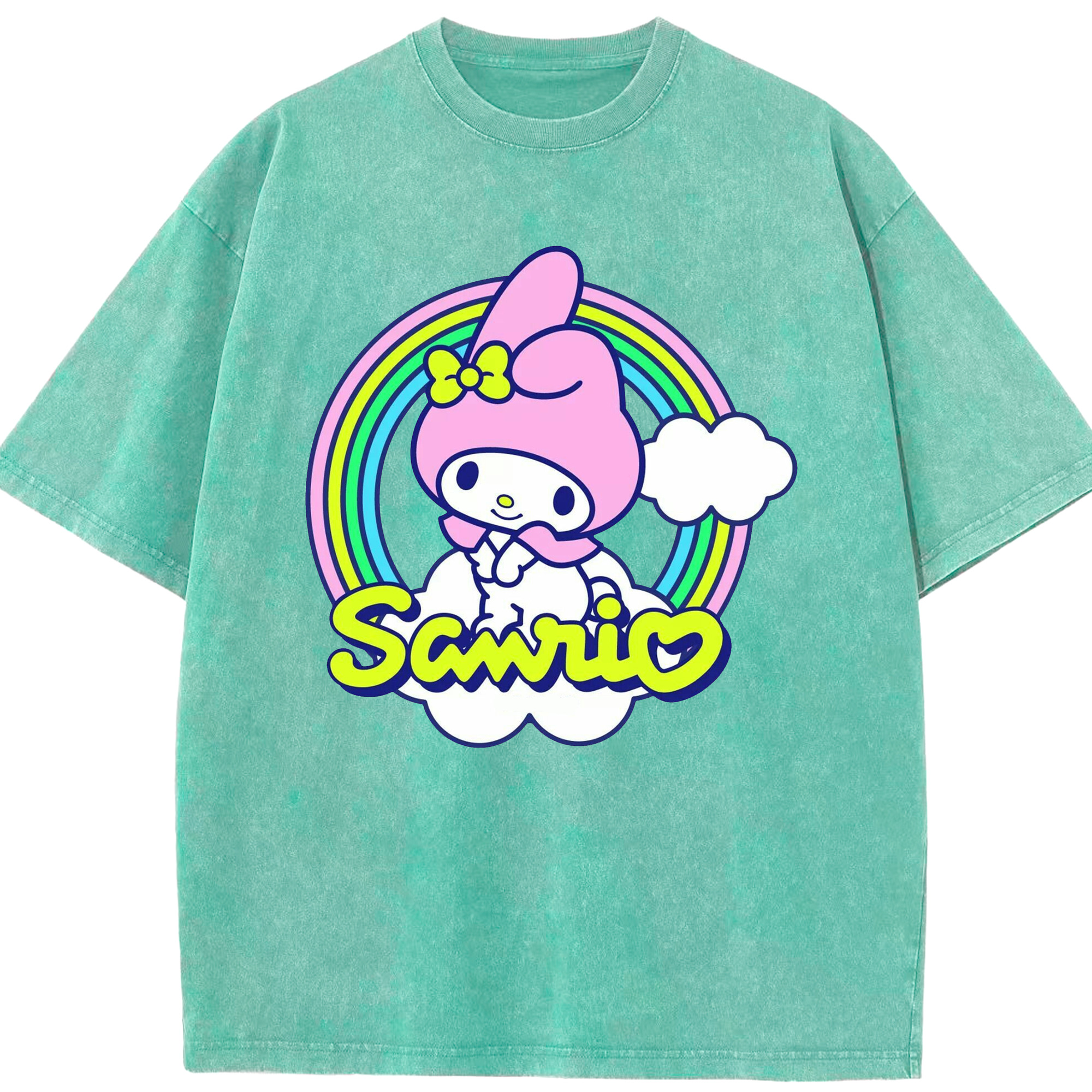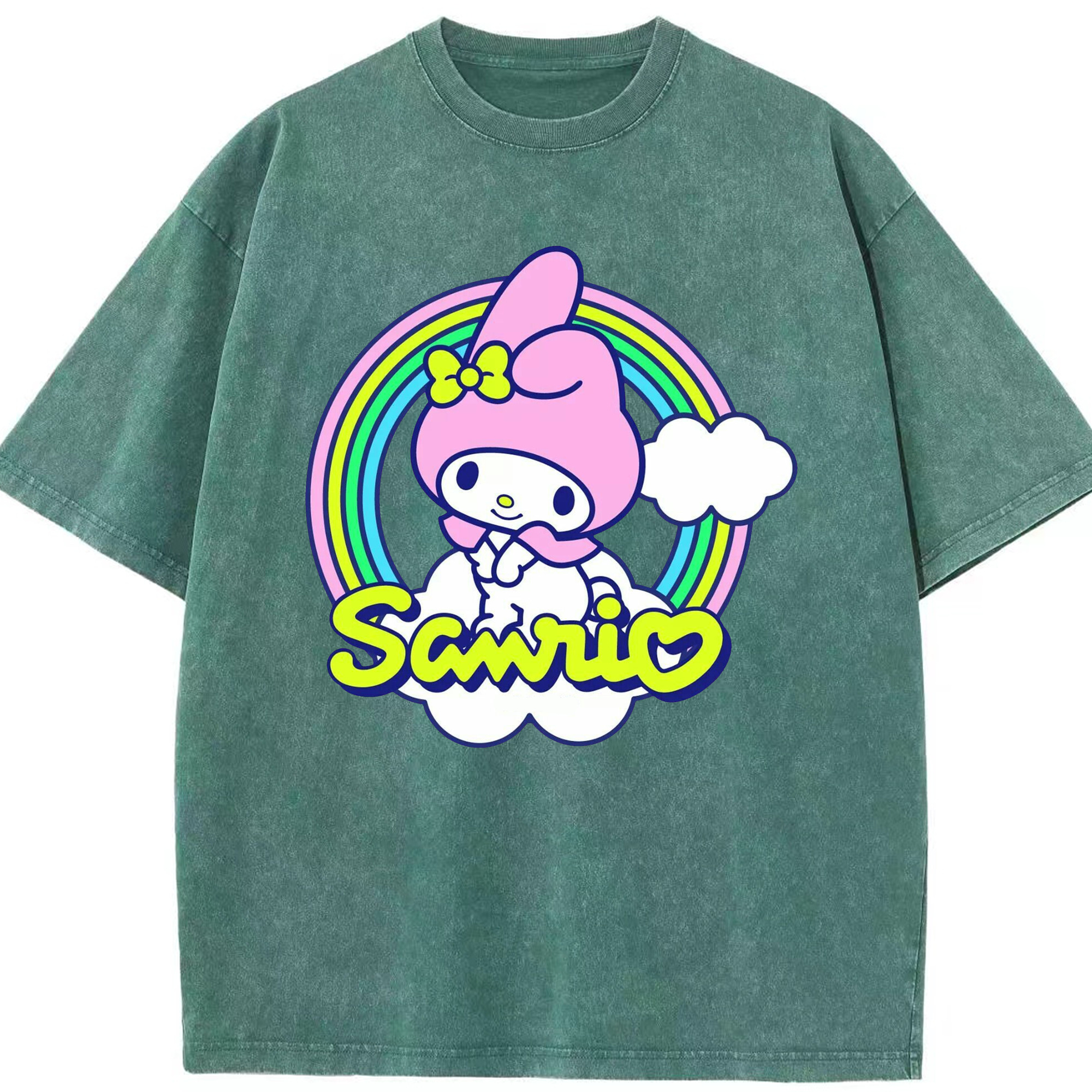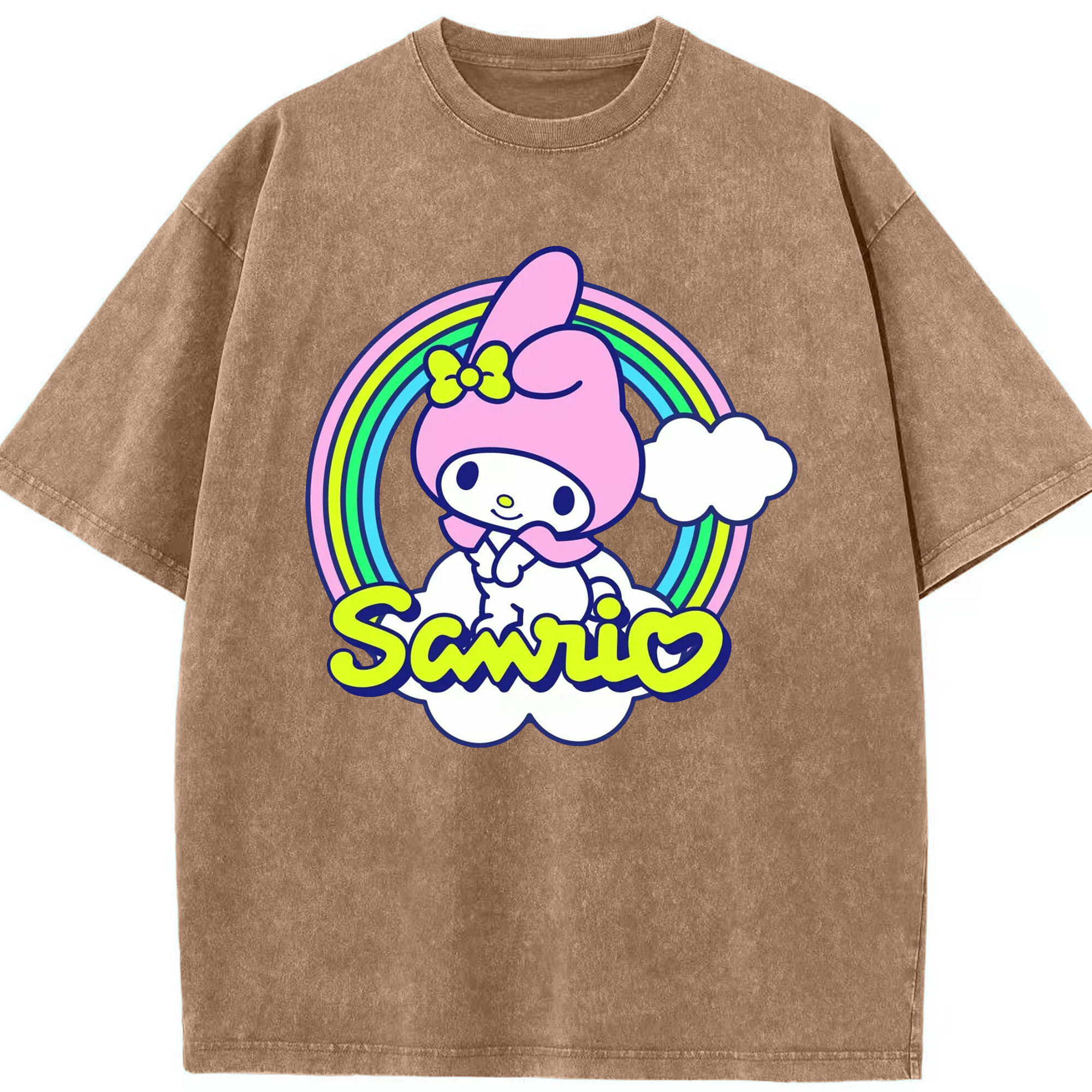 サンリオマイメロディ - 綿100% ヴィンテージ風 半袖Tシャツ ・ フロントプリント ・ 柔らか肌触り ・ 通気性 快適 ・ スポーツ カジュアル 外出用