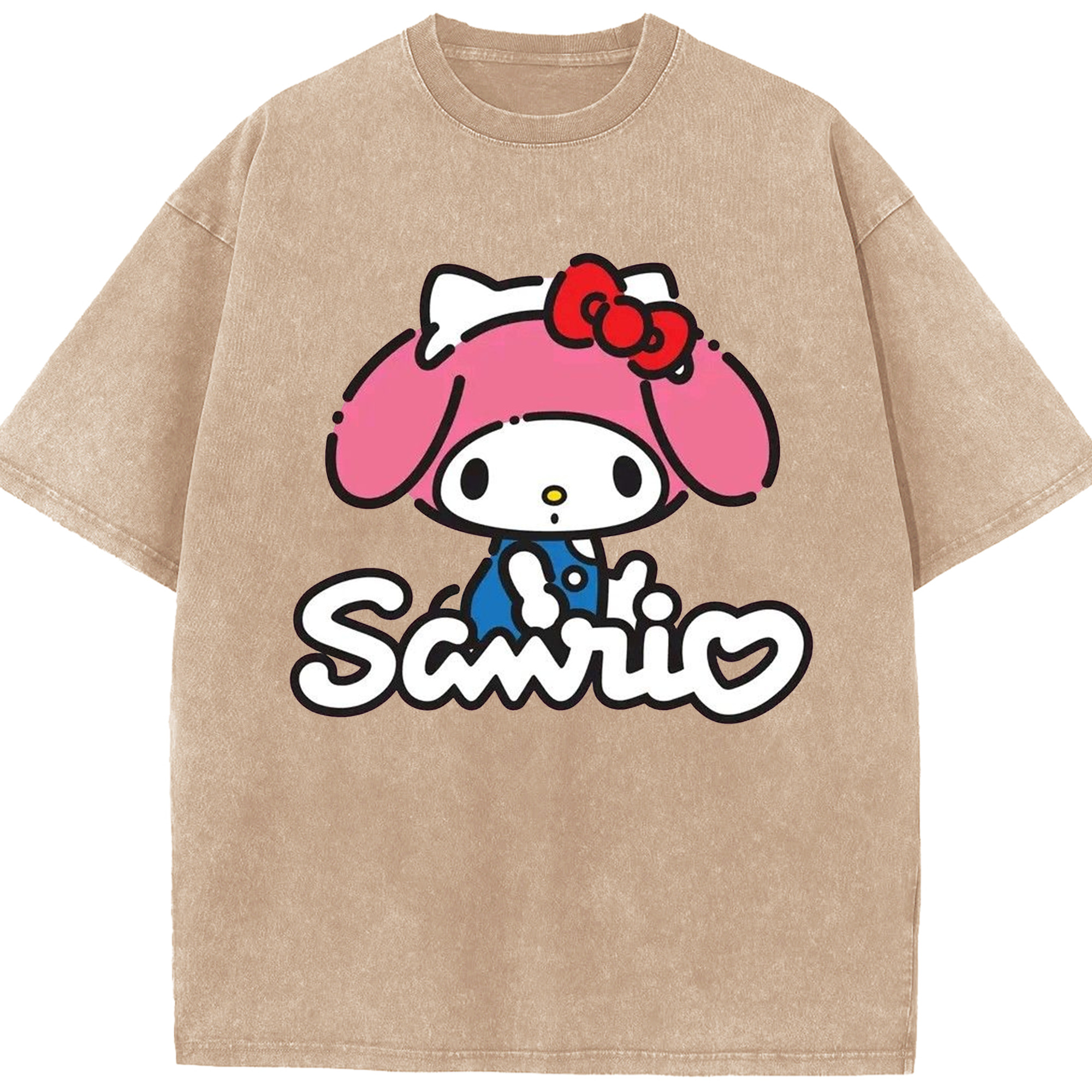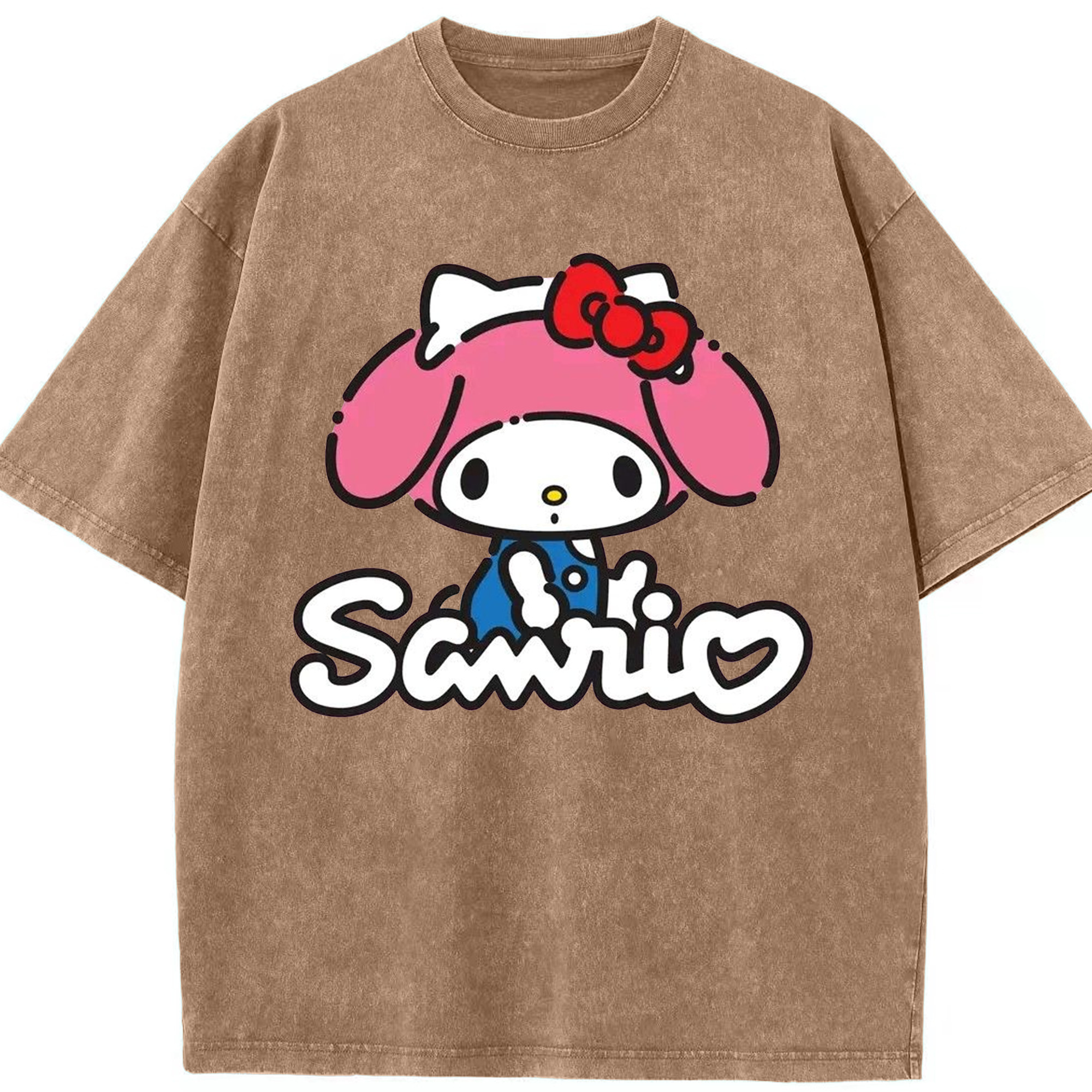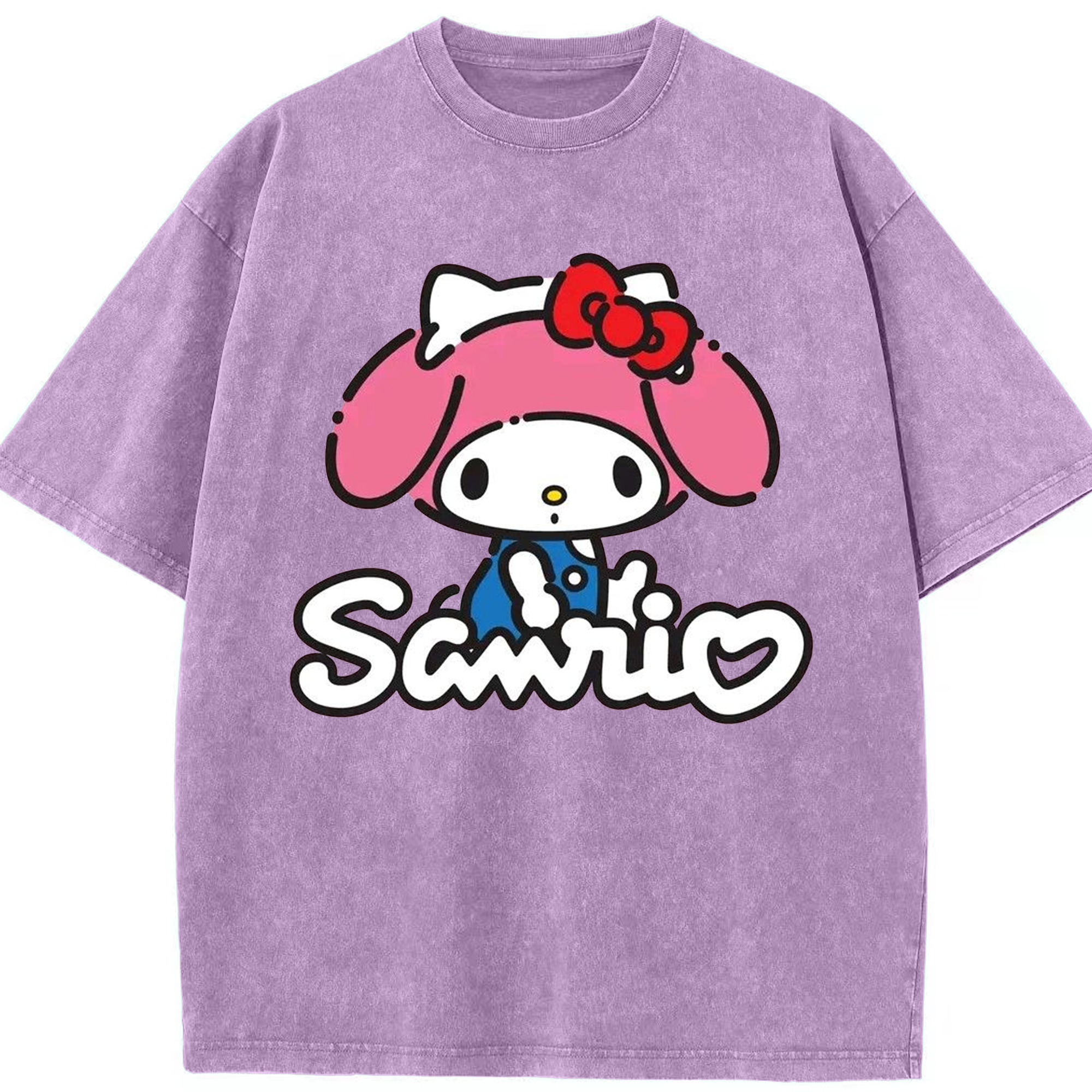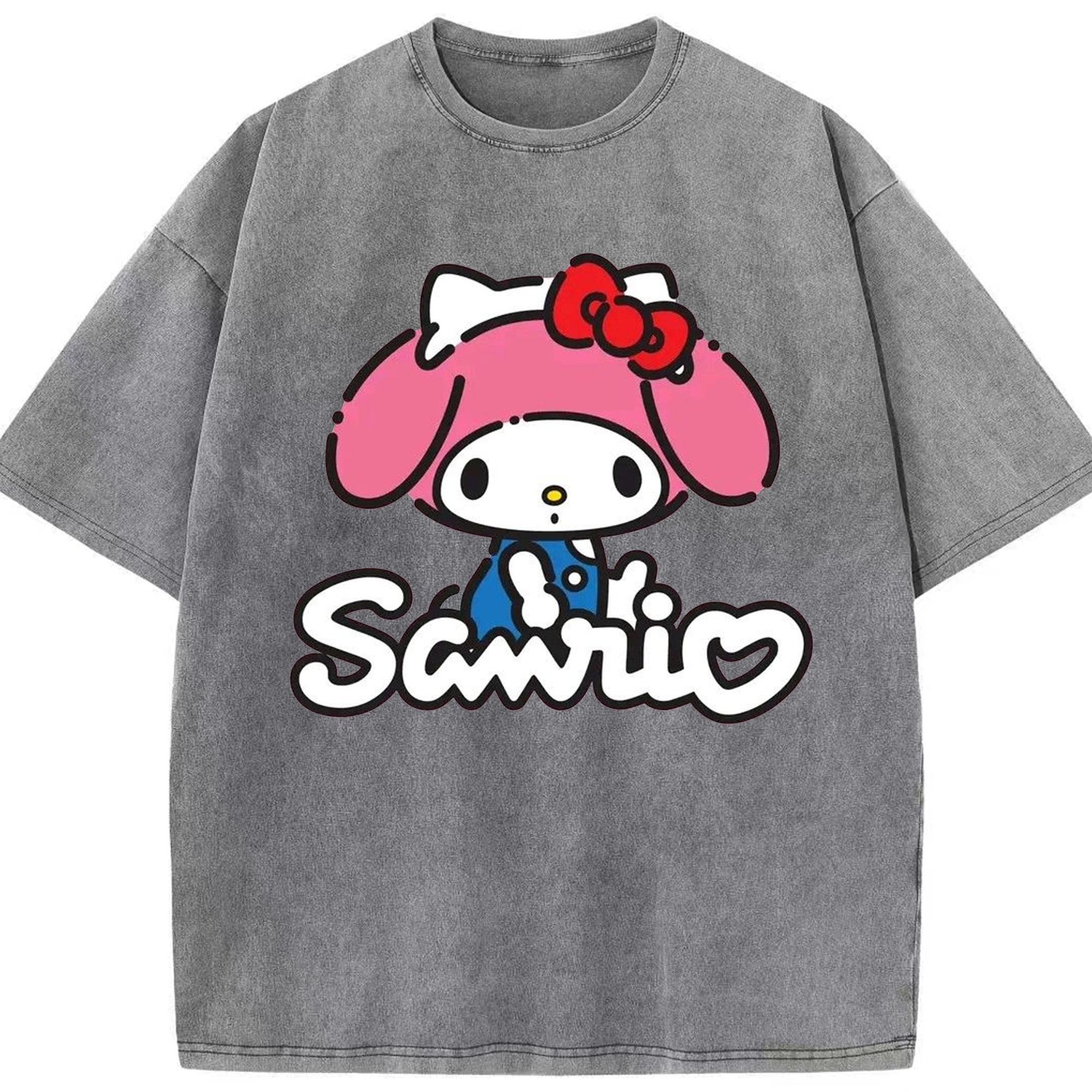 サンリオファミリー新作 - 綿100% ヴィンテージ風 半袖Tシャツ ・ フロントプリント ・ 柔らか肌触り ・ 通気性 快適 ・ スポーツ カジュアル 外出用