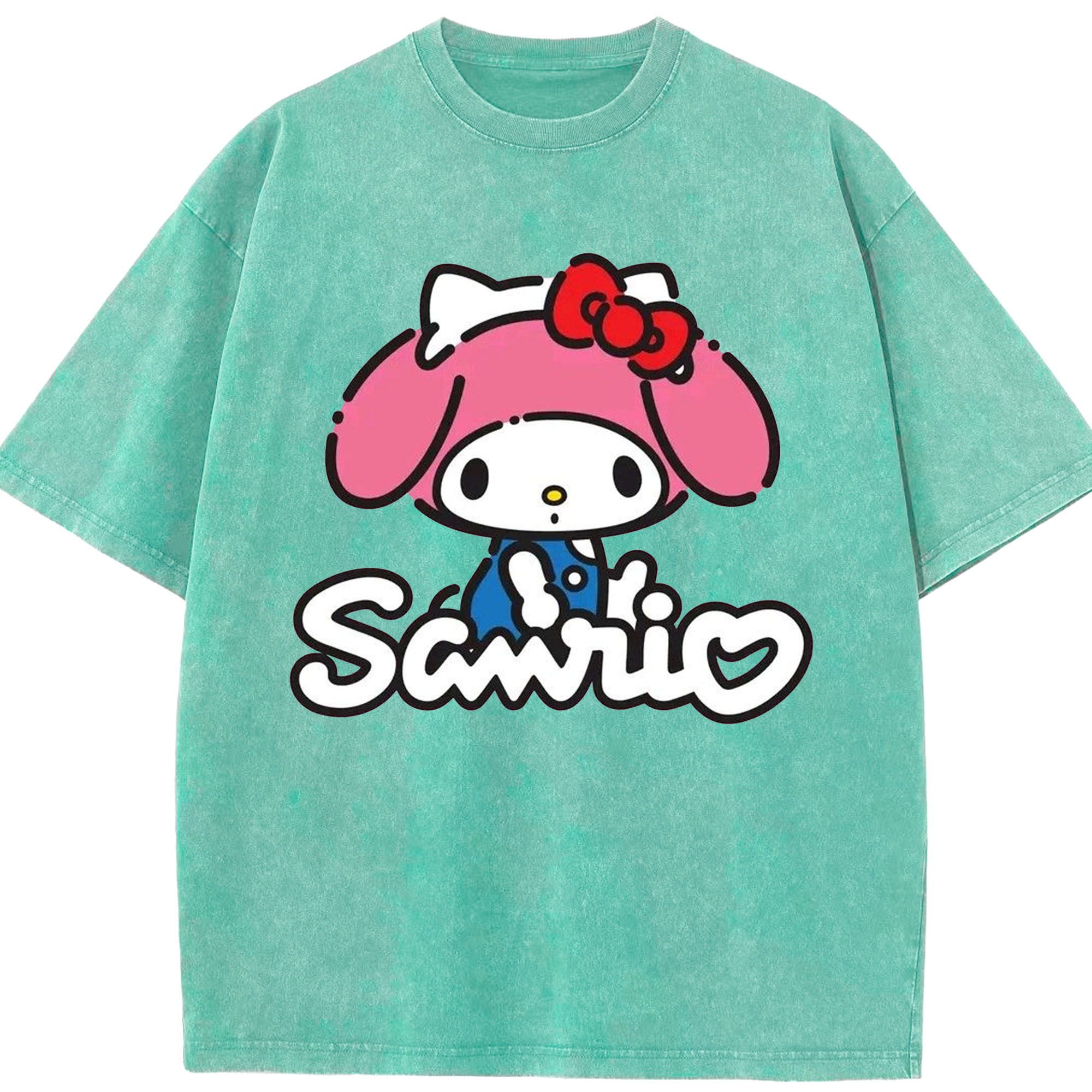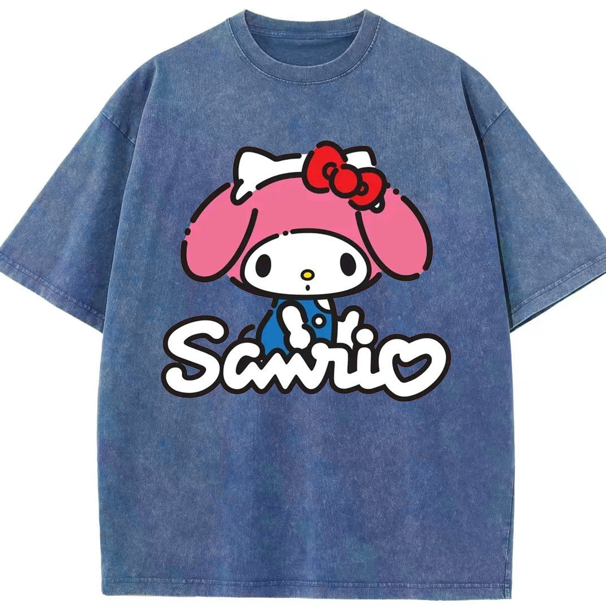おもしろサンリオ - 綿100% ヴィンテージ風 半袖Tシャツ ・ フロントプリント ・ 柔らか肌触り ・ 通気性 快適 ・ スポーツ カジュアル 外出用