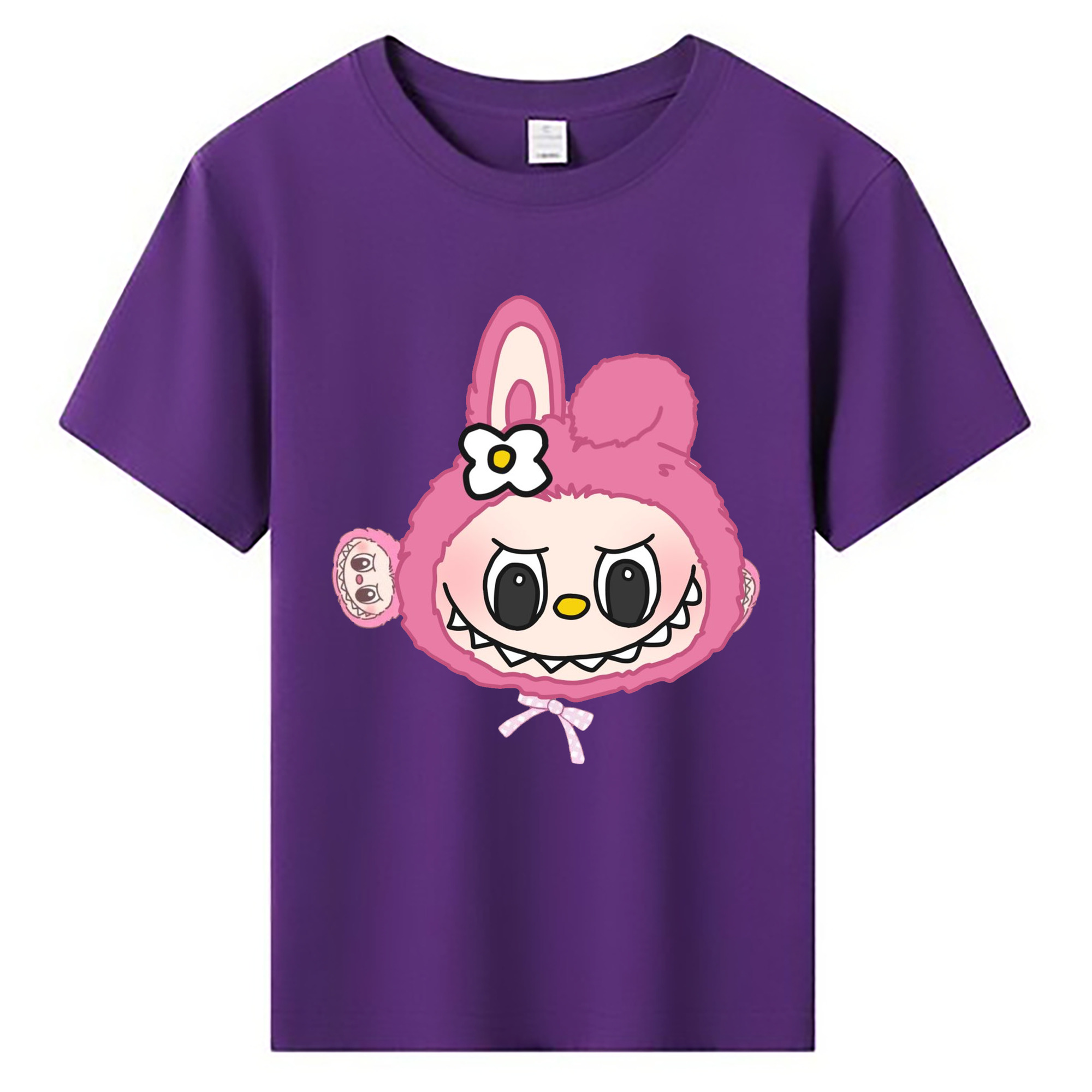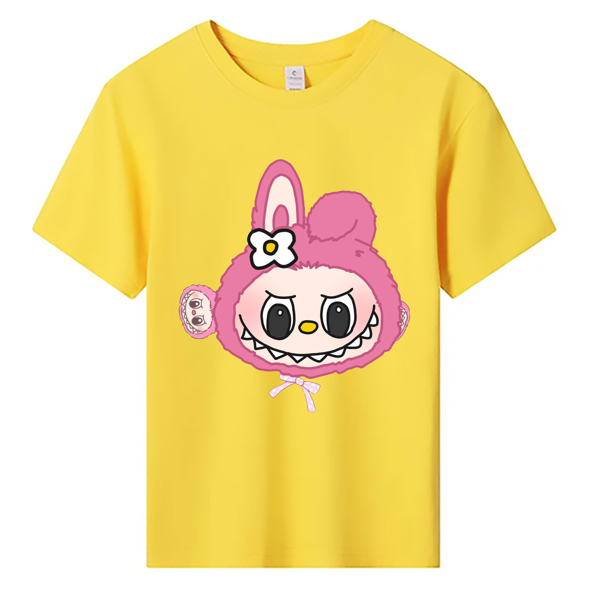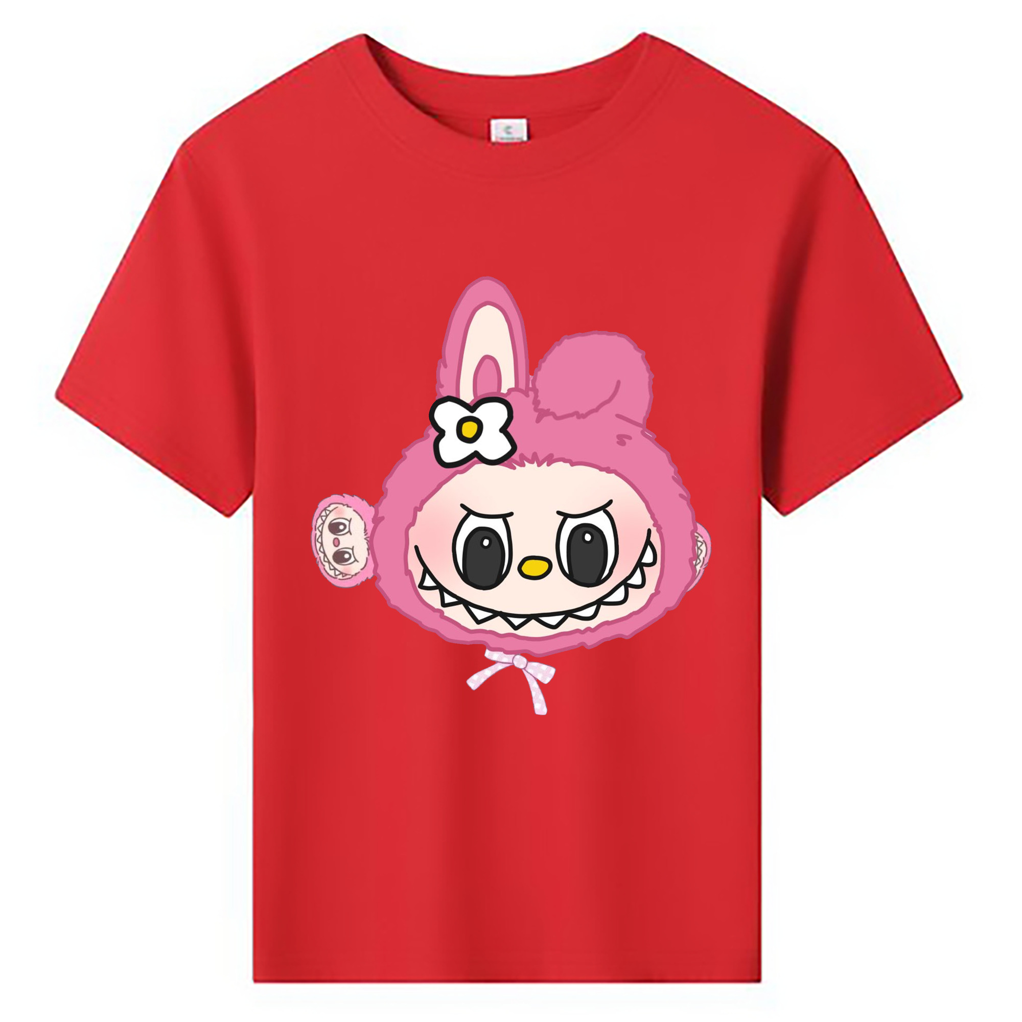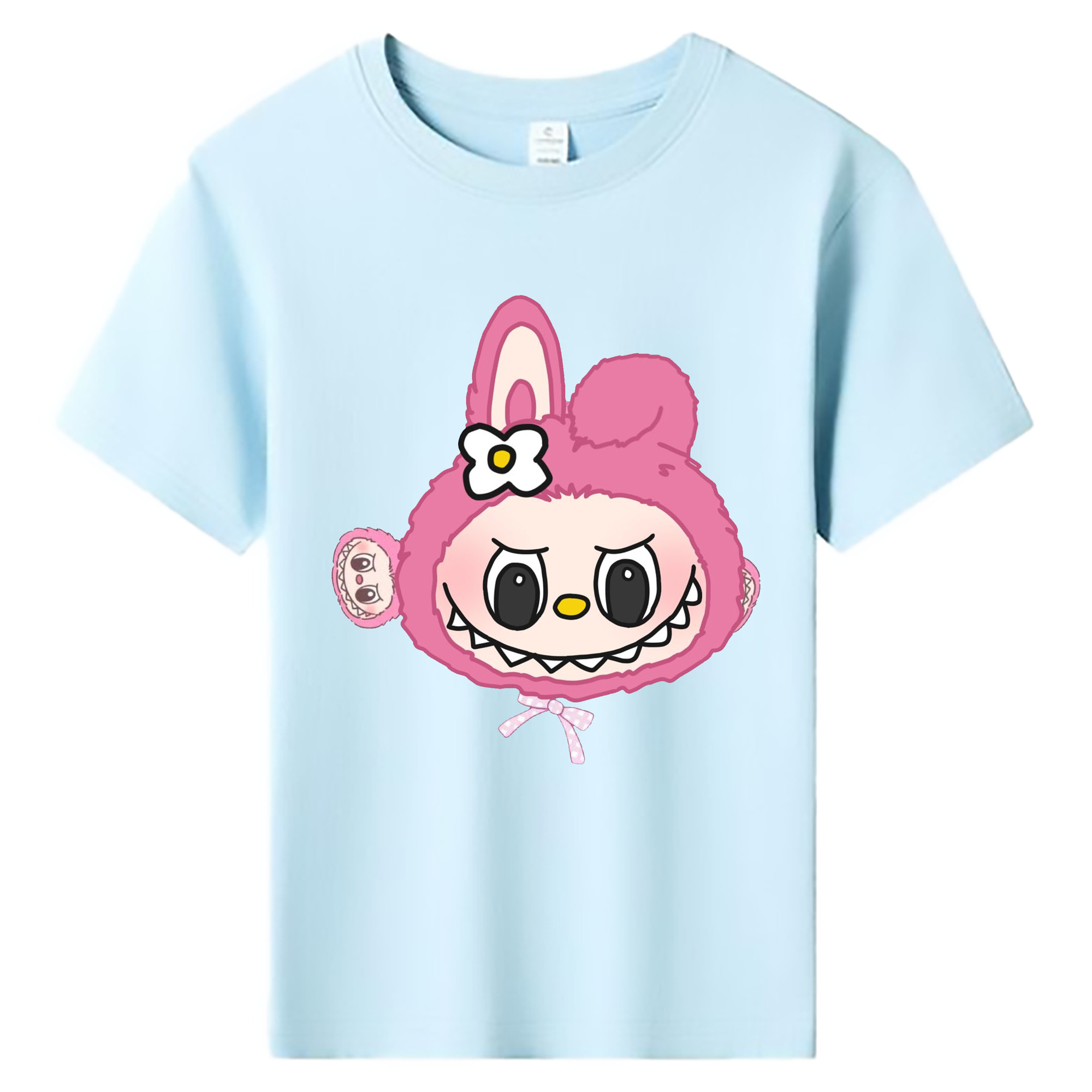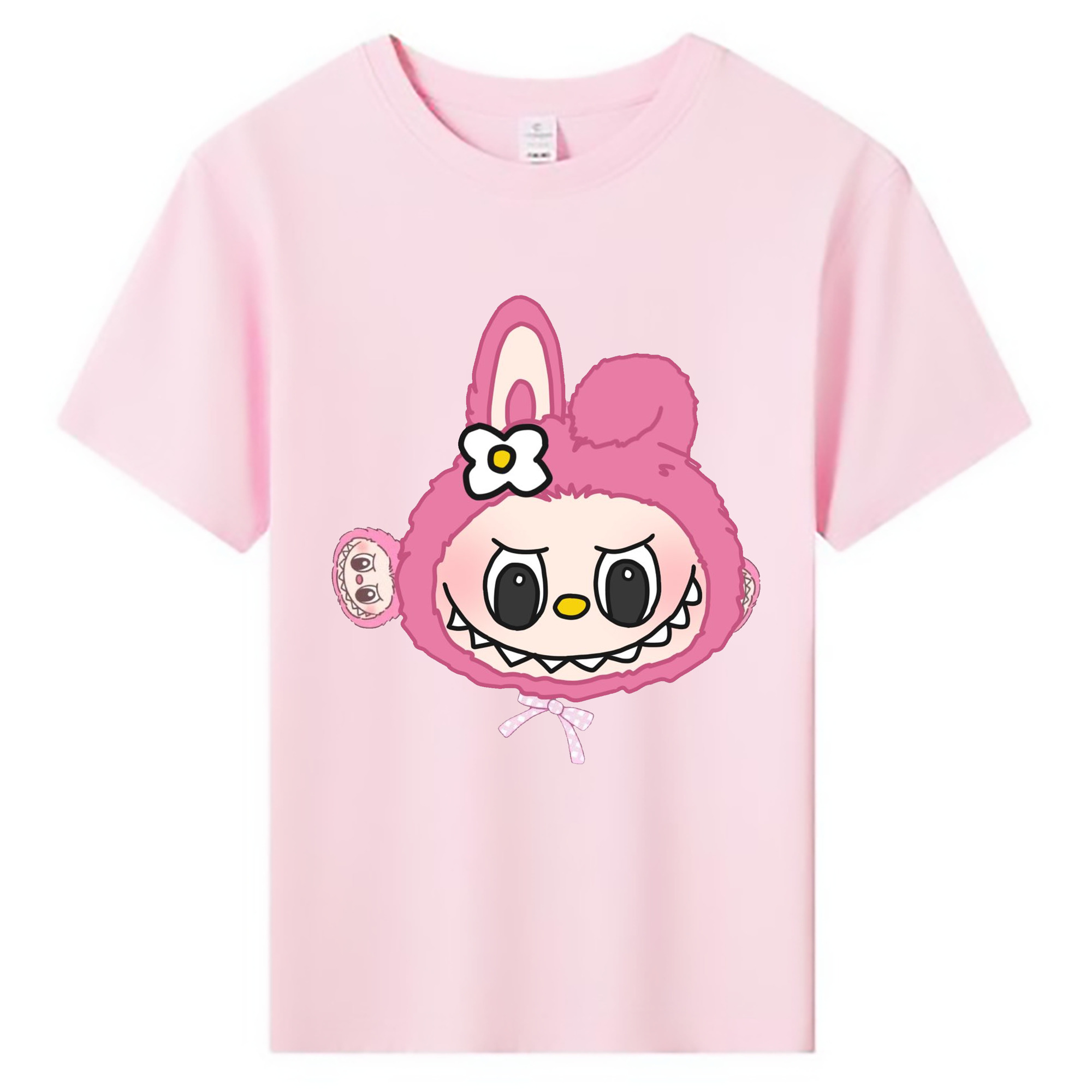 サンリオマイメロディ&LABUBU ラブブ - 綿100% ヴィンテージ風 半袖Tシャツ ・ フロントプリント ・ 柔らか肌触り ・ 通気性 快適 ・ スポーツ カジュアル 外出用