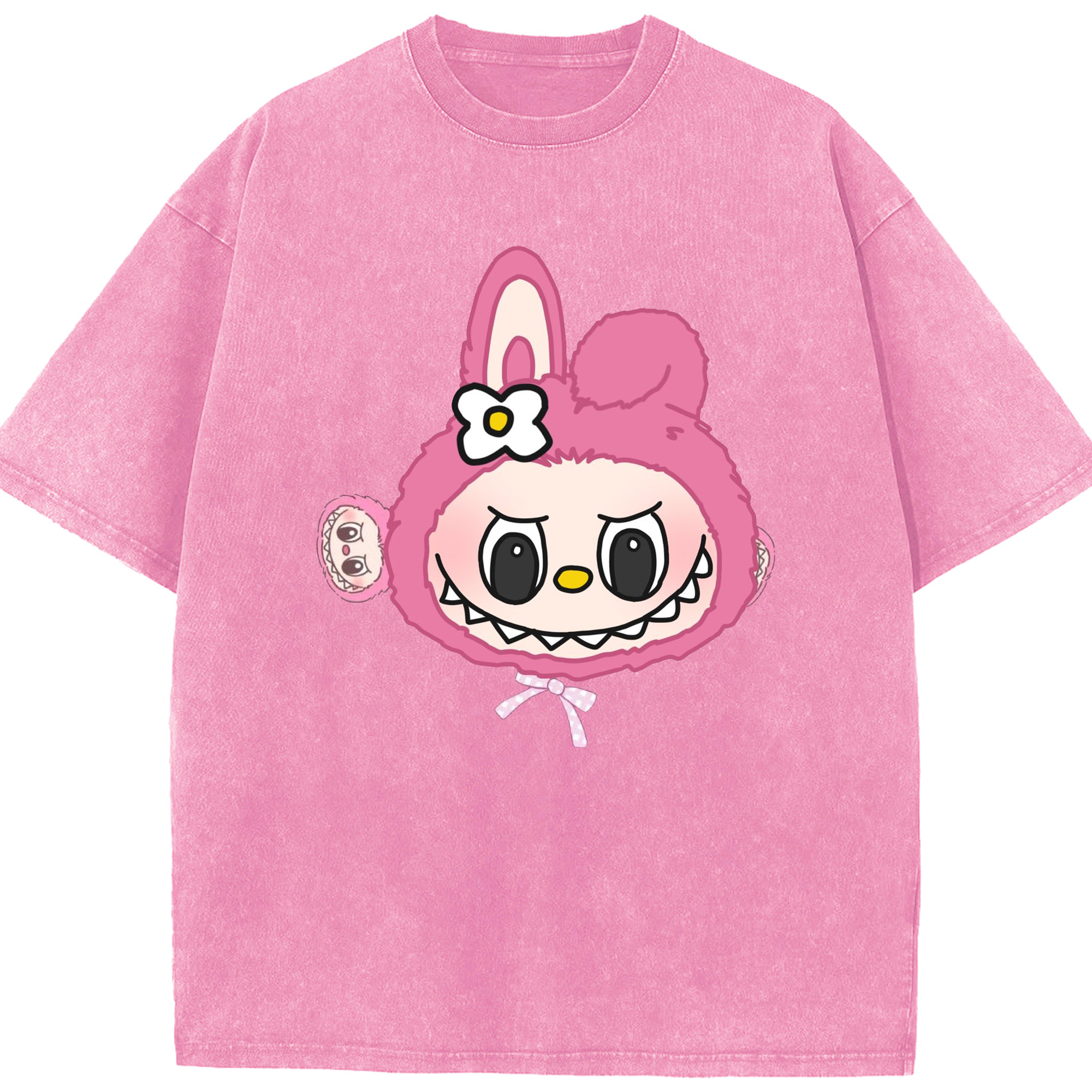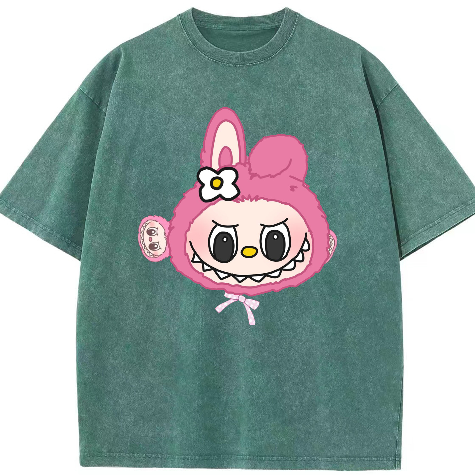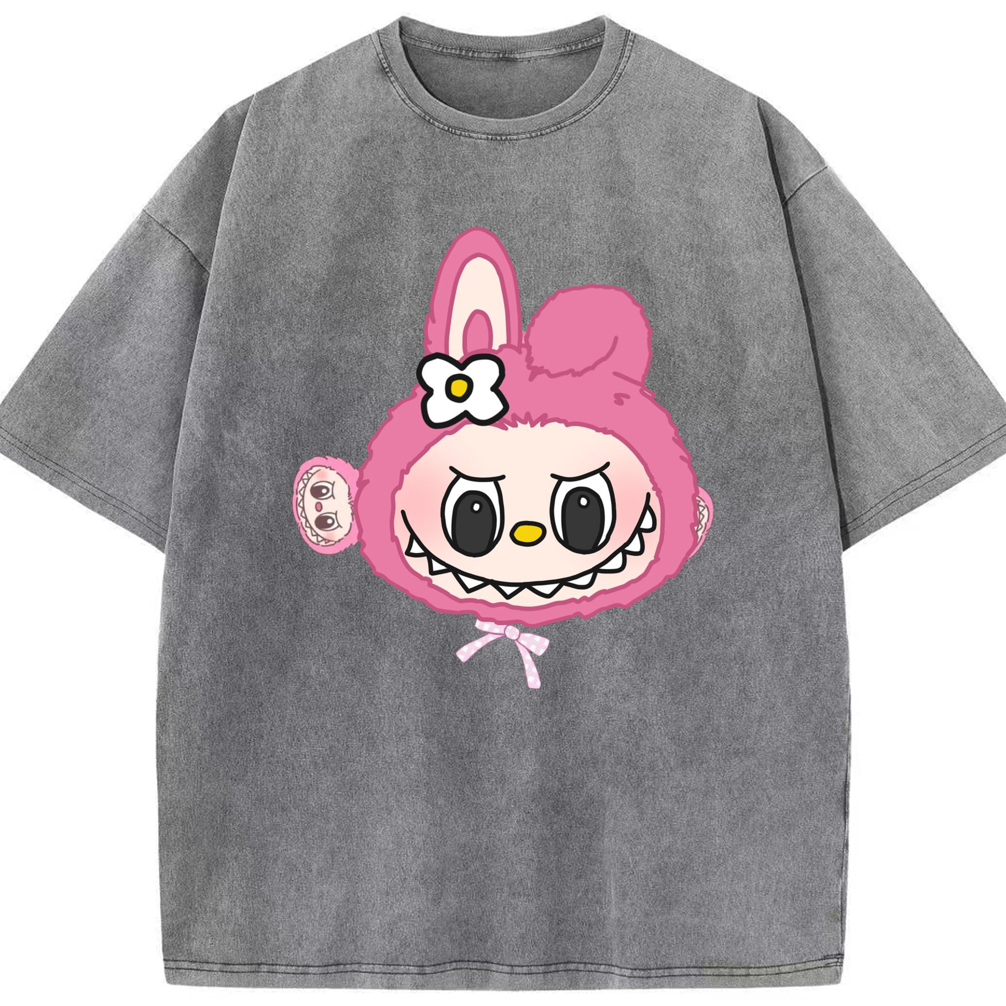 サンリオマイメロディ&LABUBU ラブブ - 綿100% ヴィンテージ風 半袖Tシャツ ・ 背面プリント ・ 柔らか肌触り ・ 通気性 快適 ・ スポーツ カジュアル 外出用