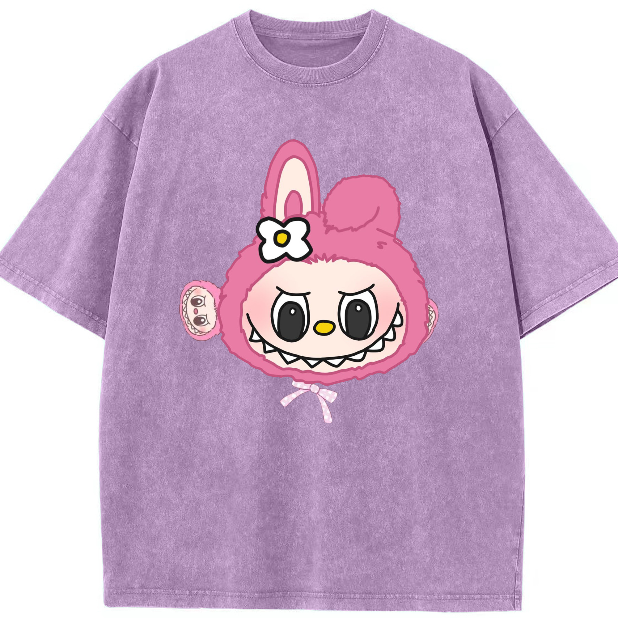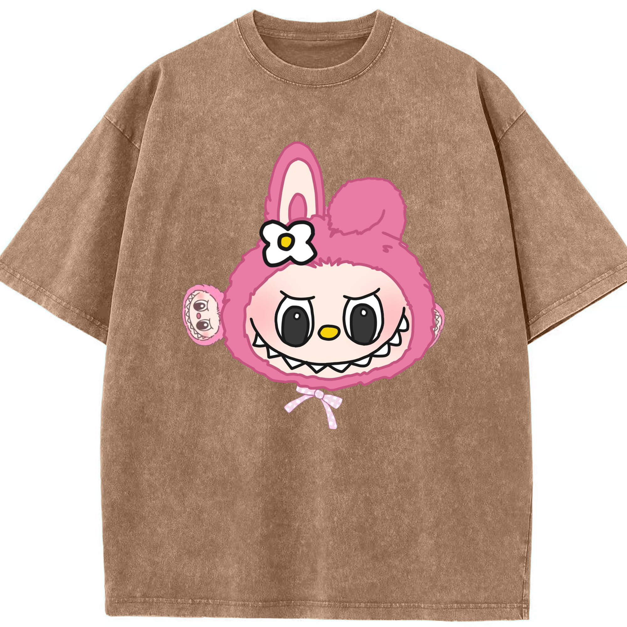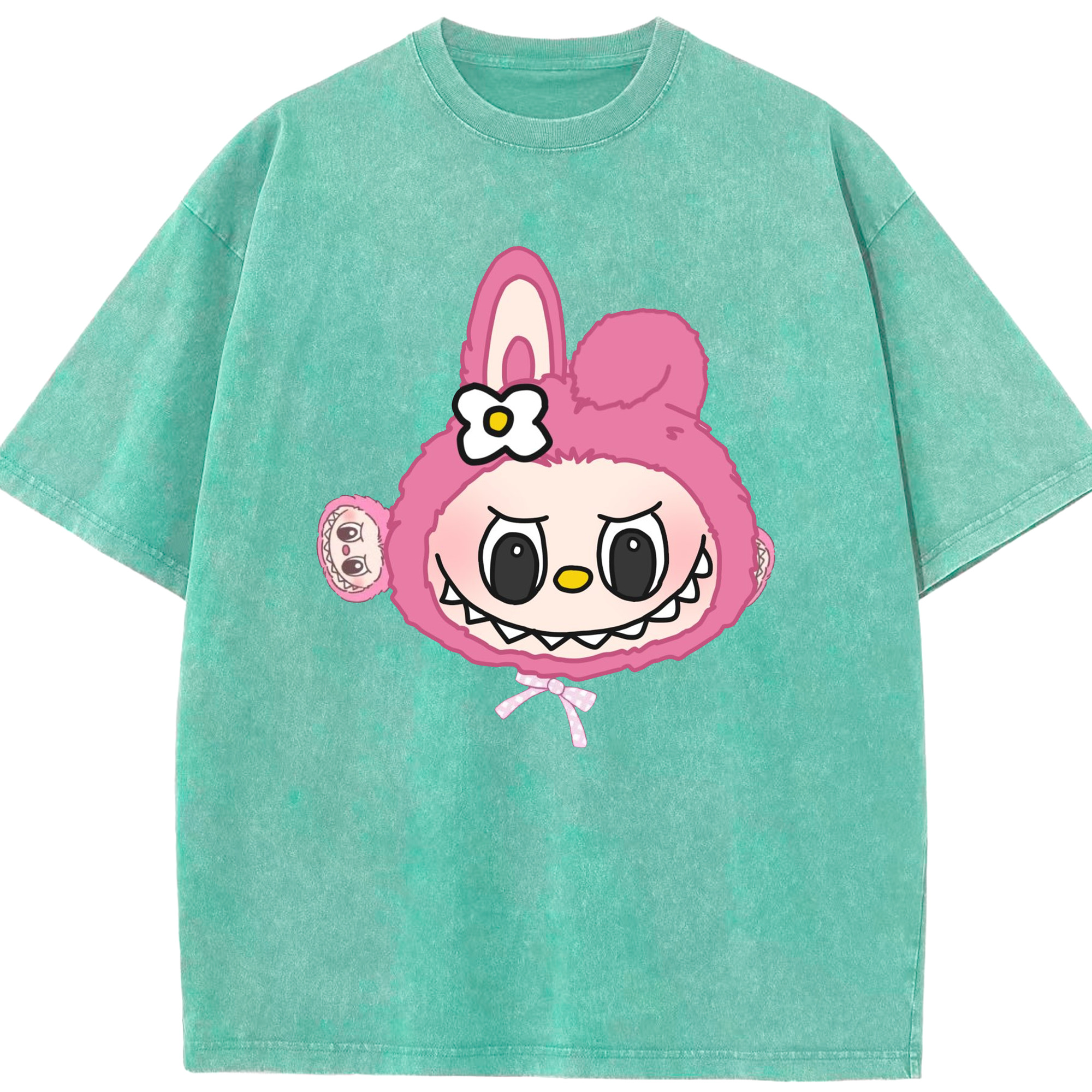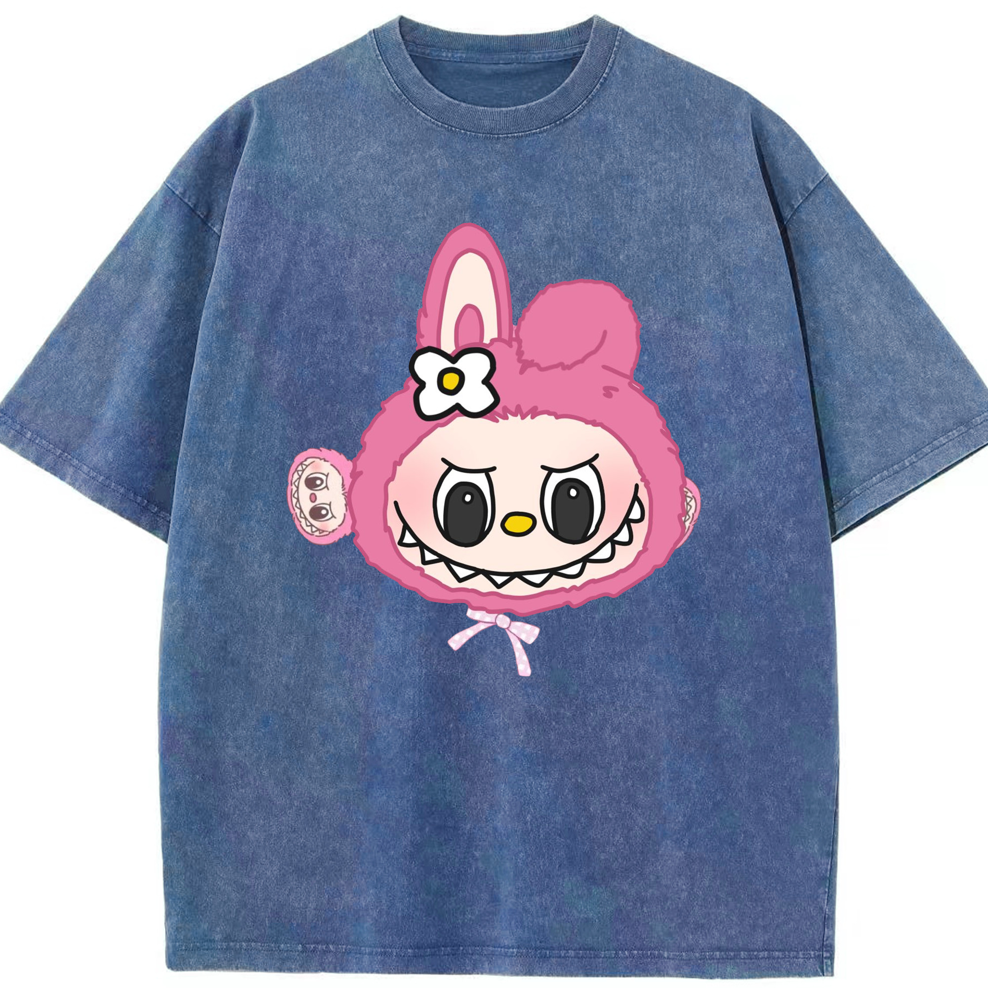 サンリオマイメロディ&LABUBU ラブブ - 綿100% ヴィンテージ風 半袖Tシャツ ・ 背面プリント ・ 柔らか肌触り ・ 通気性 快適 ・ スポーツ カジュアル 外出用