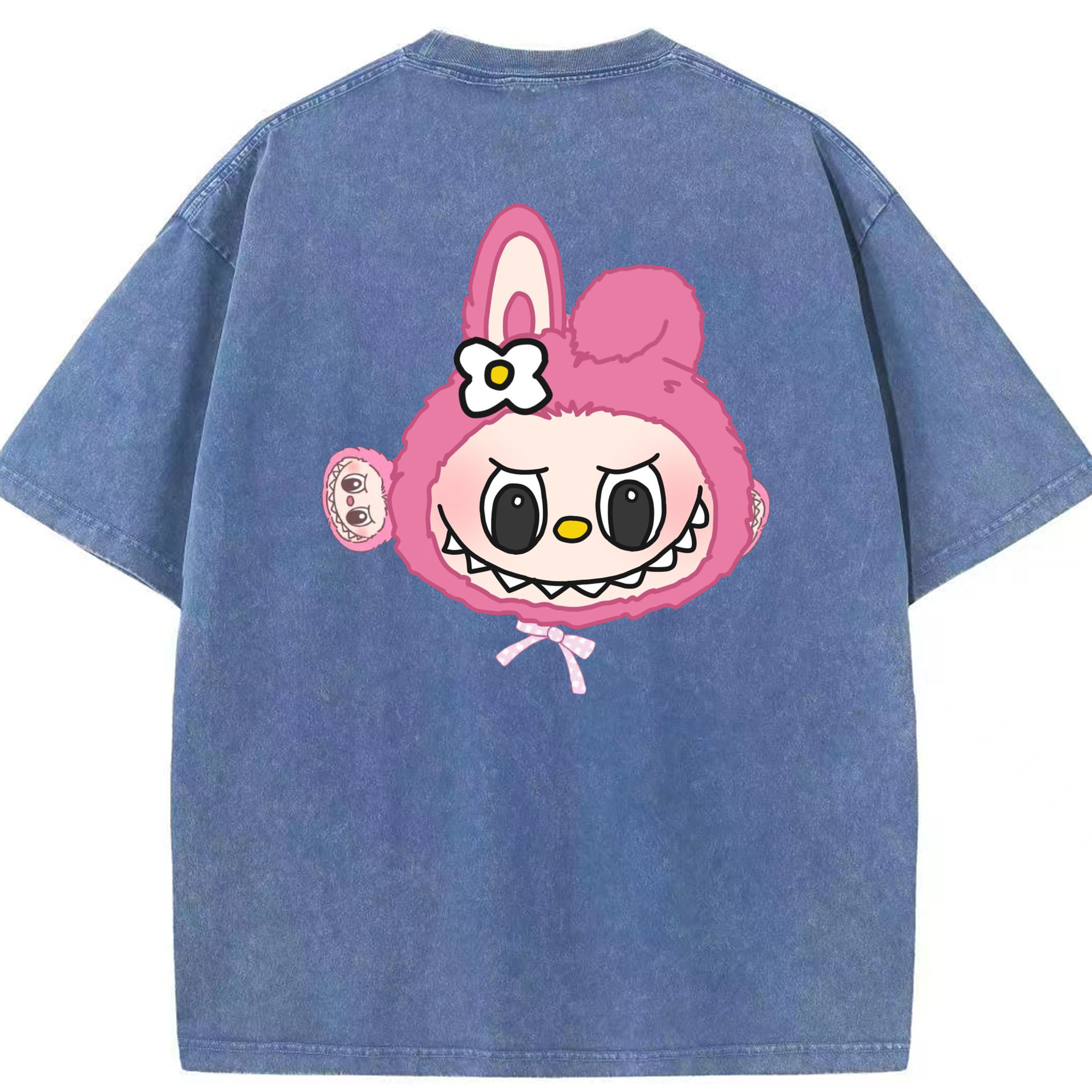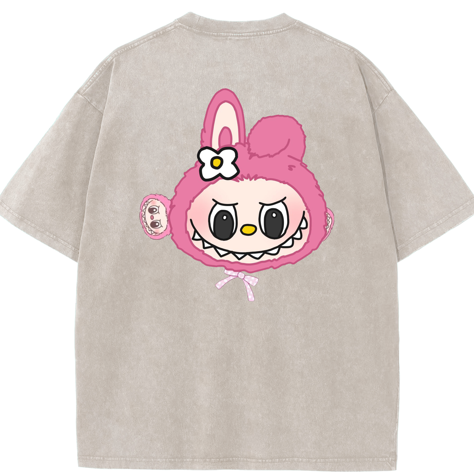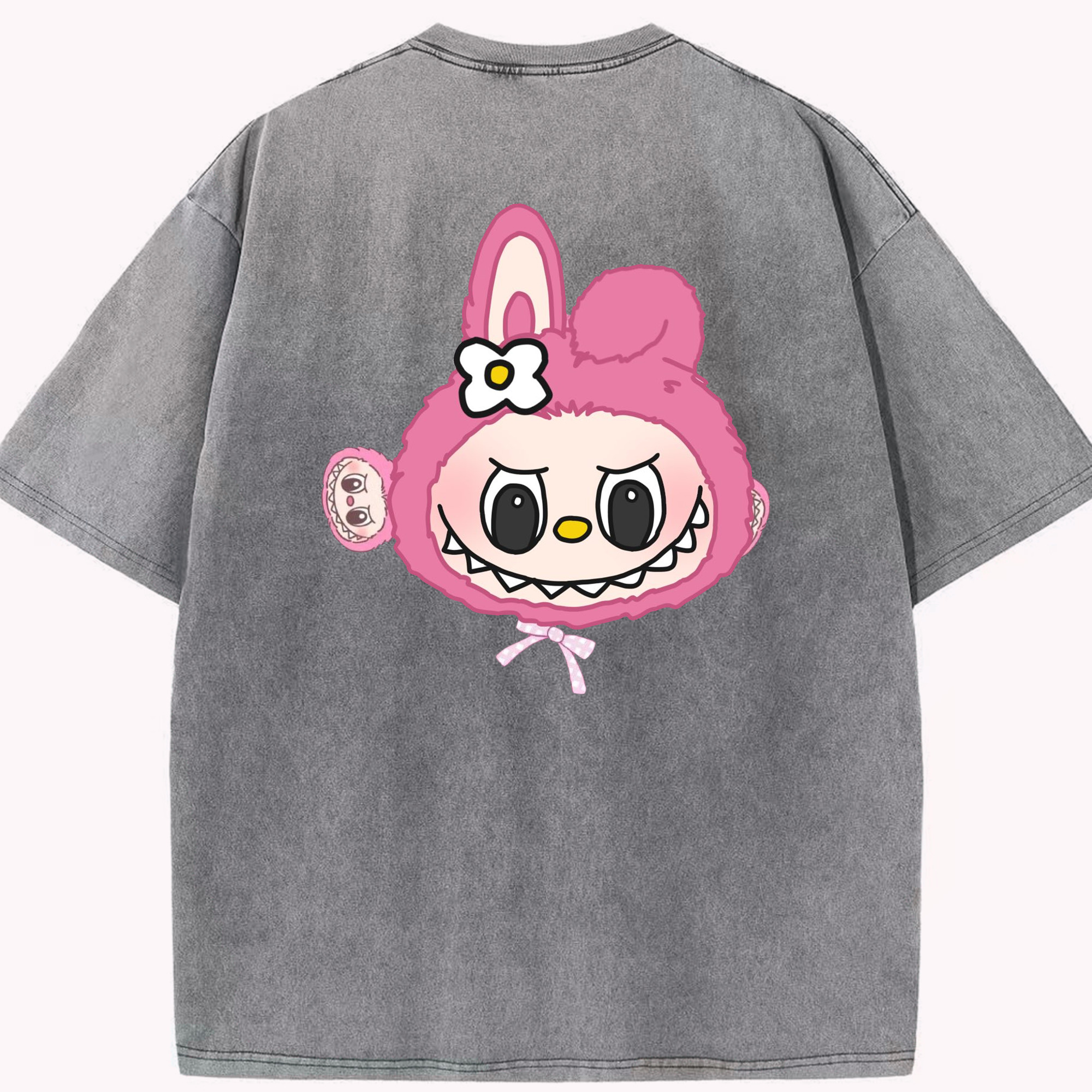 サンリオマイメロディ&LABUBU ラブブ - 綿100% ヴィンテージ風 半袖Tシャツ ・ フロントプリント ・ 柔らか肌触り ・ 通気性 快適 ・ スポーツ カジュアル 外出用