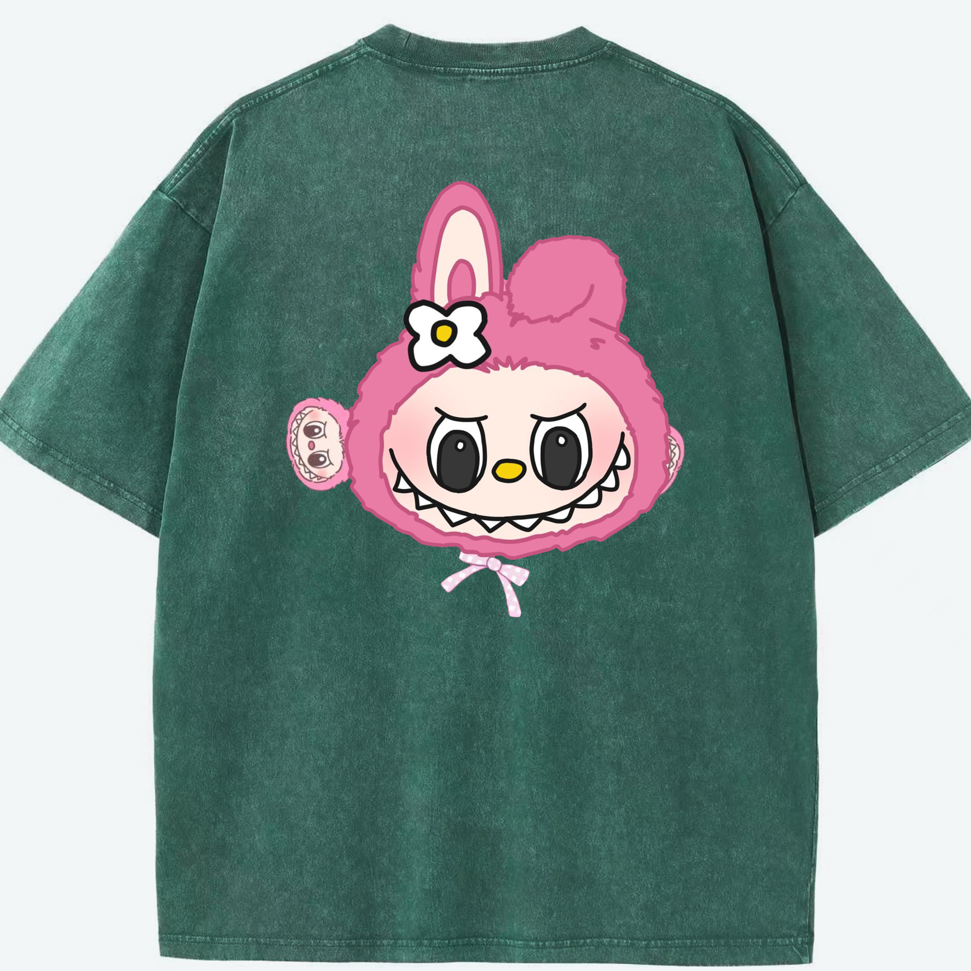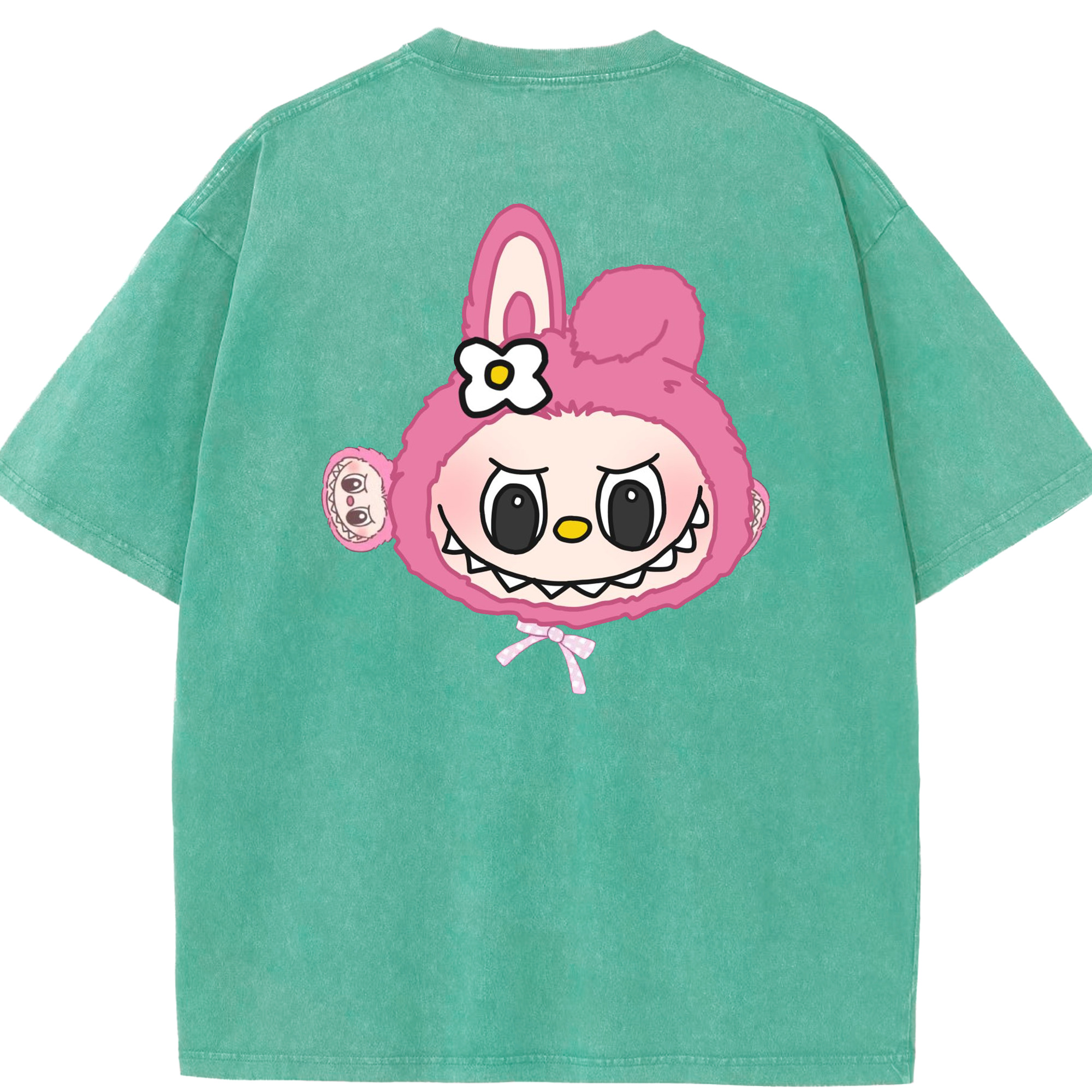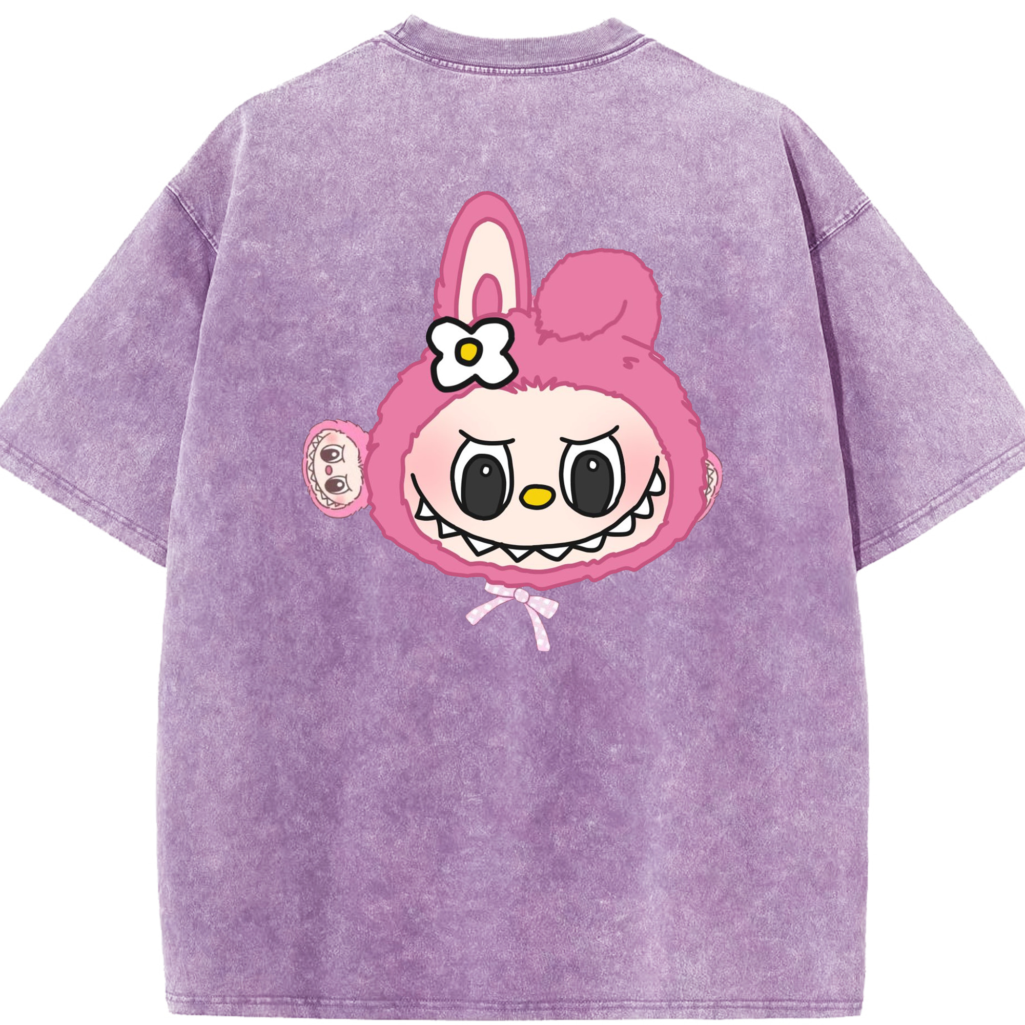 サンリオマイメロディ&LABUBU ラブブ - 綿100% ヴィンテージ風 半袖Tシャツ ・ フロントプリント ・ 柔らか肌触り ・ 通気性 快適 ・ スポーツ カジュアル 外出用