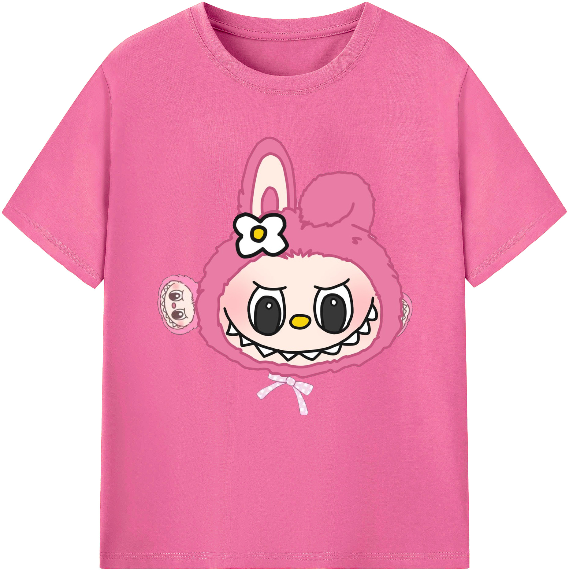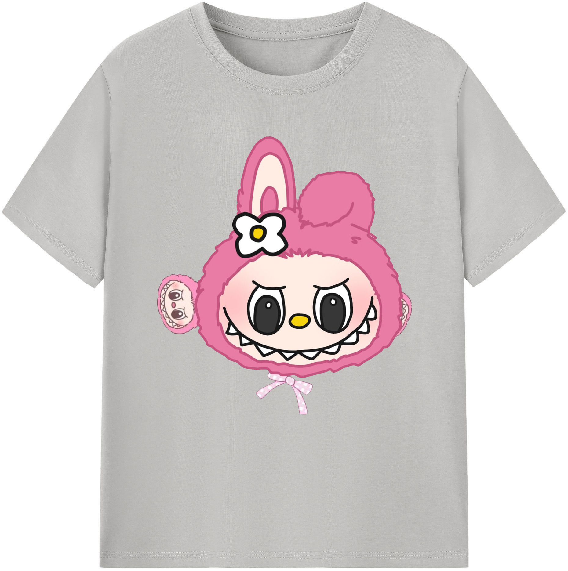 サンリオマイメロディ&LABUBU ラブブ - レディースカジュアルプリントTシャツ ・ 綿100% ・ クルーネック ・ フロントプリント ・ 柔らかく快適 ・ フィットネス カジュアル 旅行用