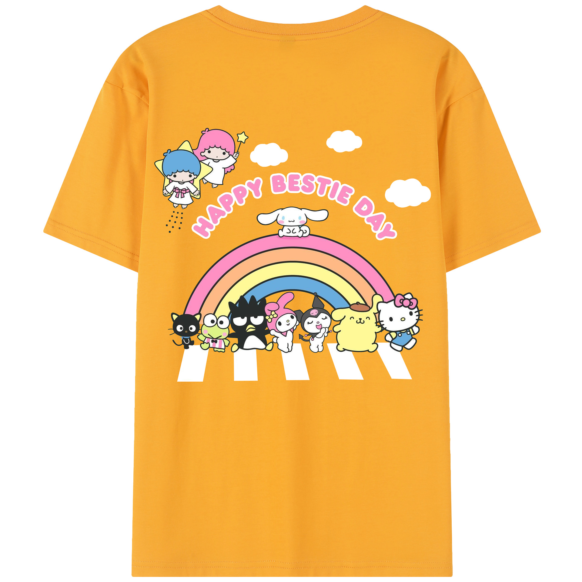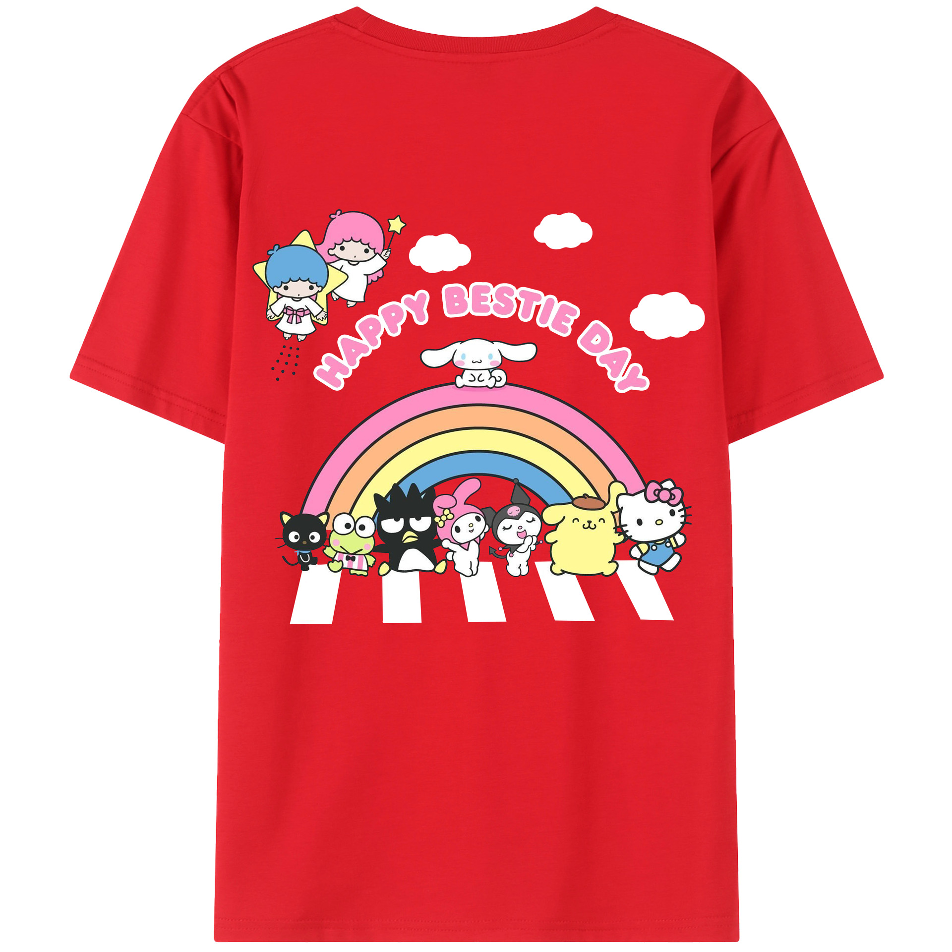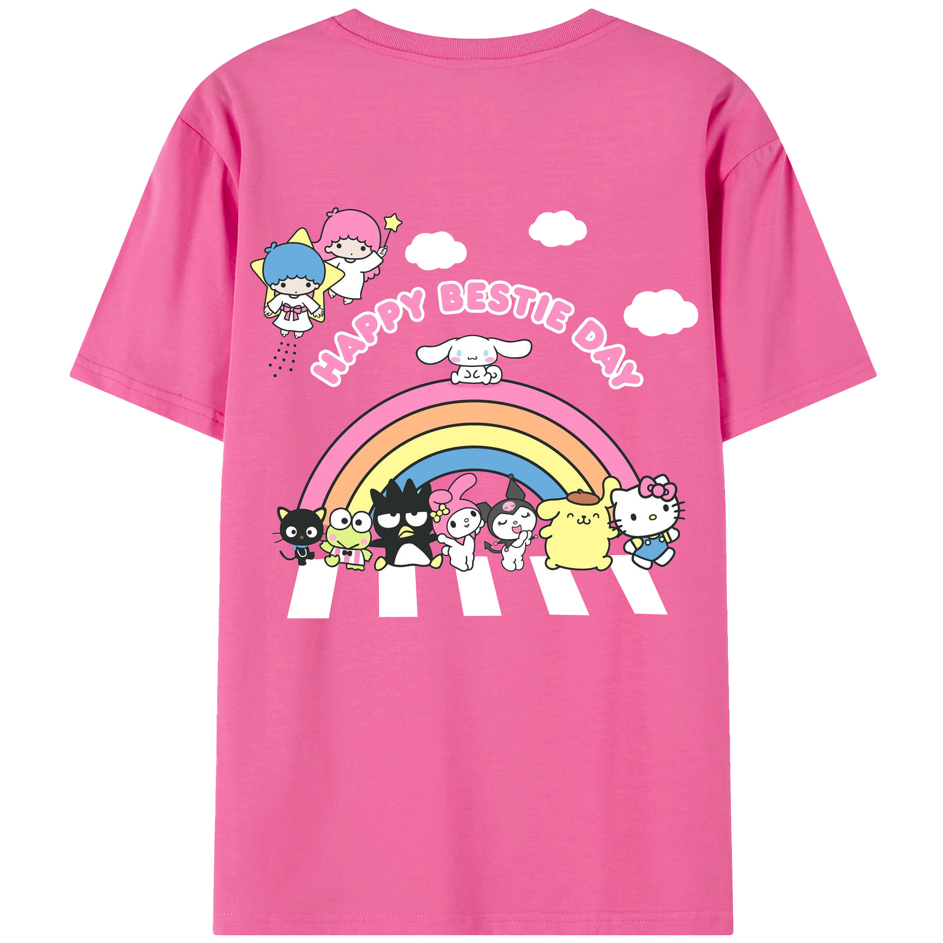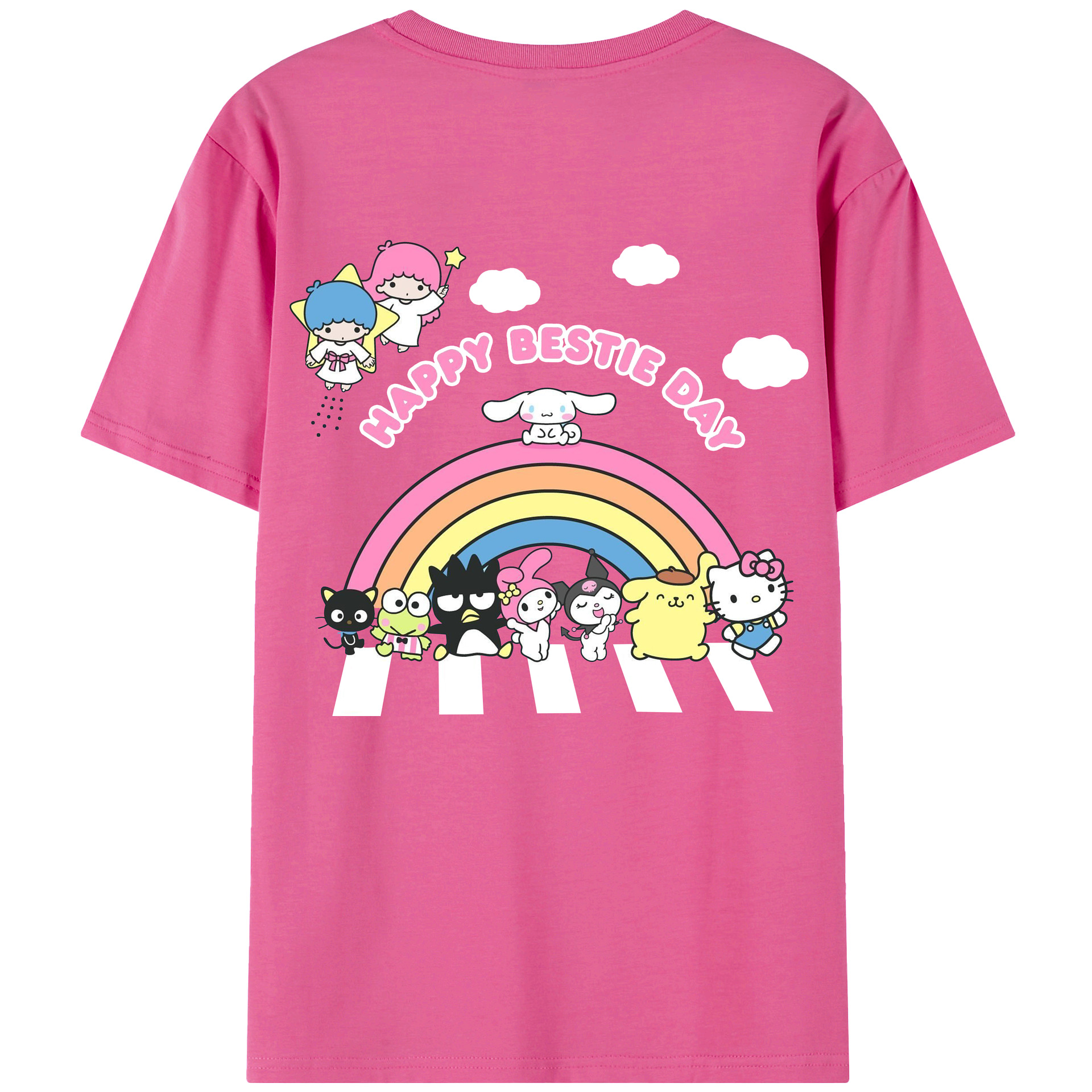 サンリオ - レディース半袖Tシャツ ・ 綿100% ・ バックプリント ・ 強化クルーネック ・ 二重折り袖口 ・ 快適 通気性 ・ フィットネス カジュアル 旅行用
