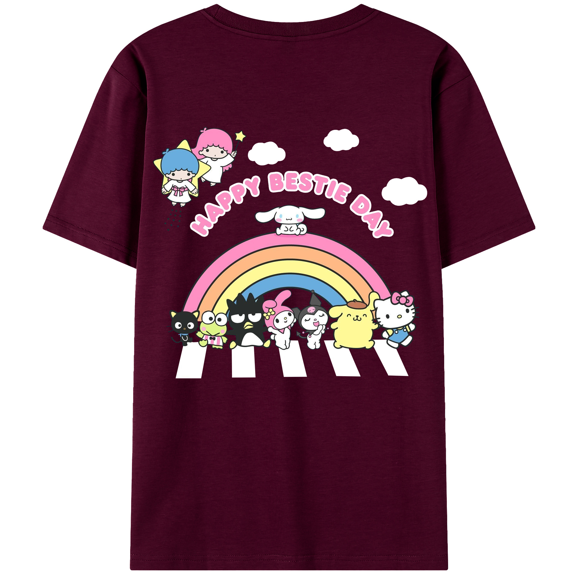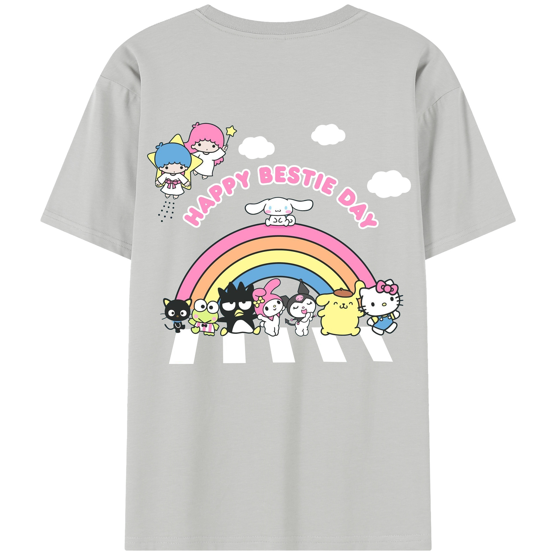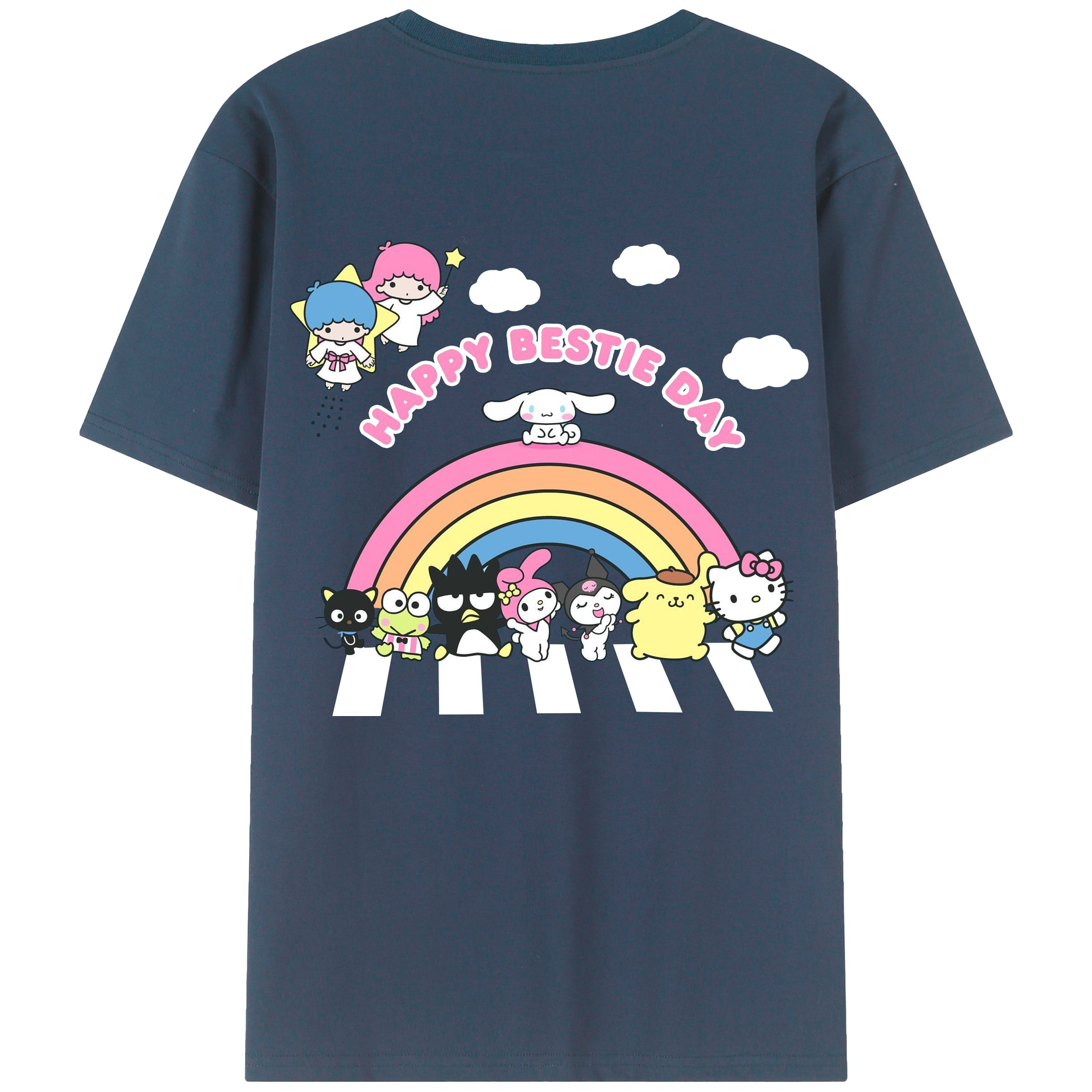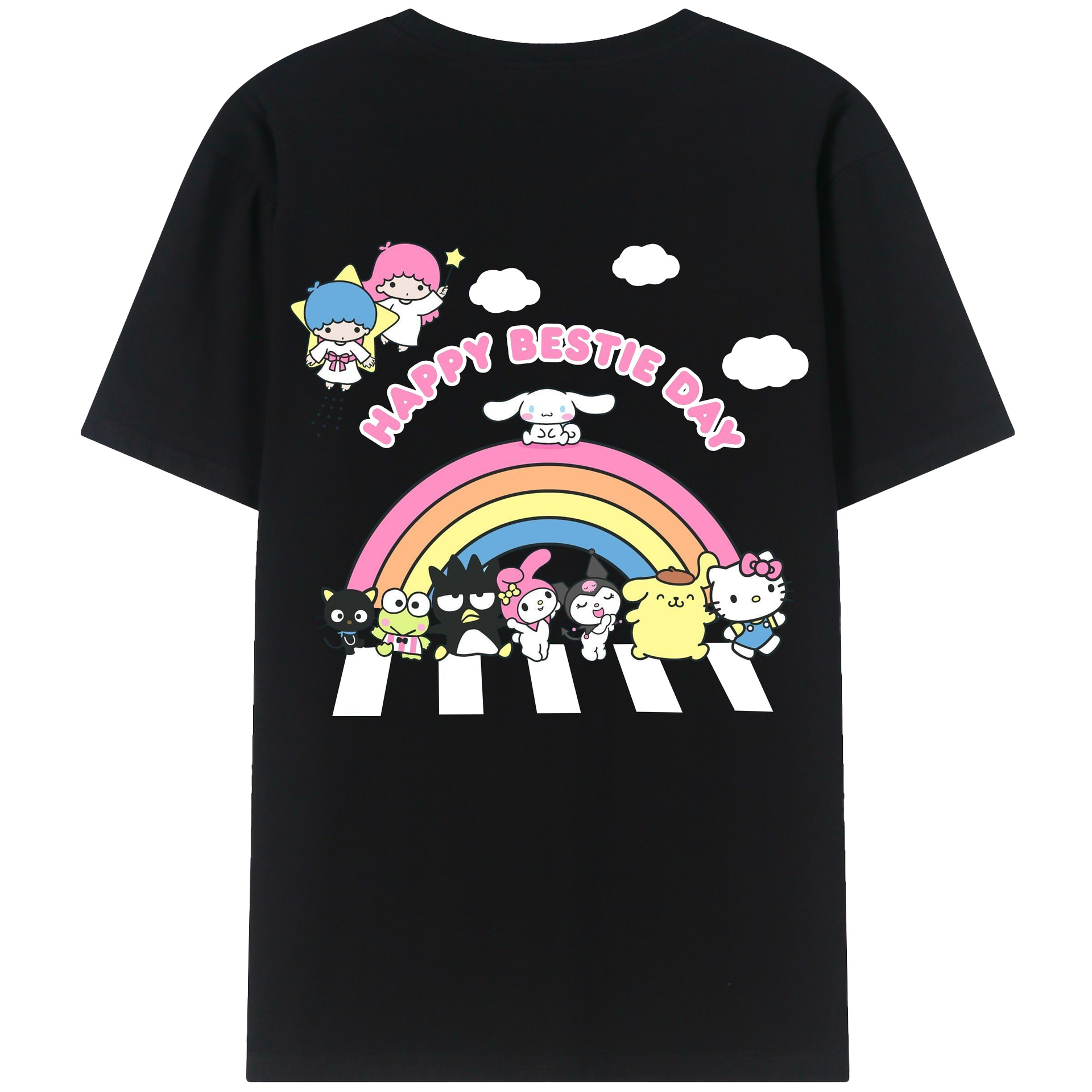 サンリオ - レディース半袖Tシャツ ・ 綿100% ・ バックプリント ・ 強化クルーネック ・ 二重折り袖口 ・ 快適 通気性 ・ フィットネス カジュアル 旅行用