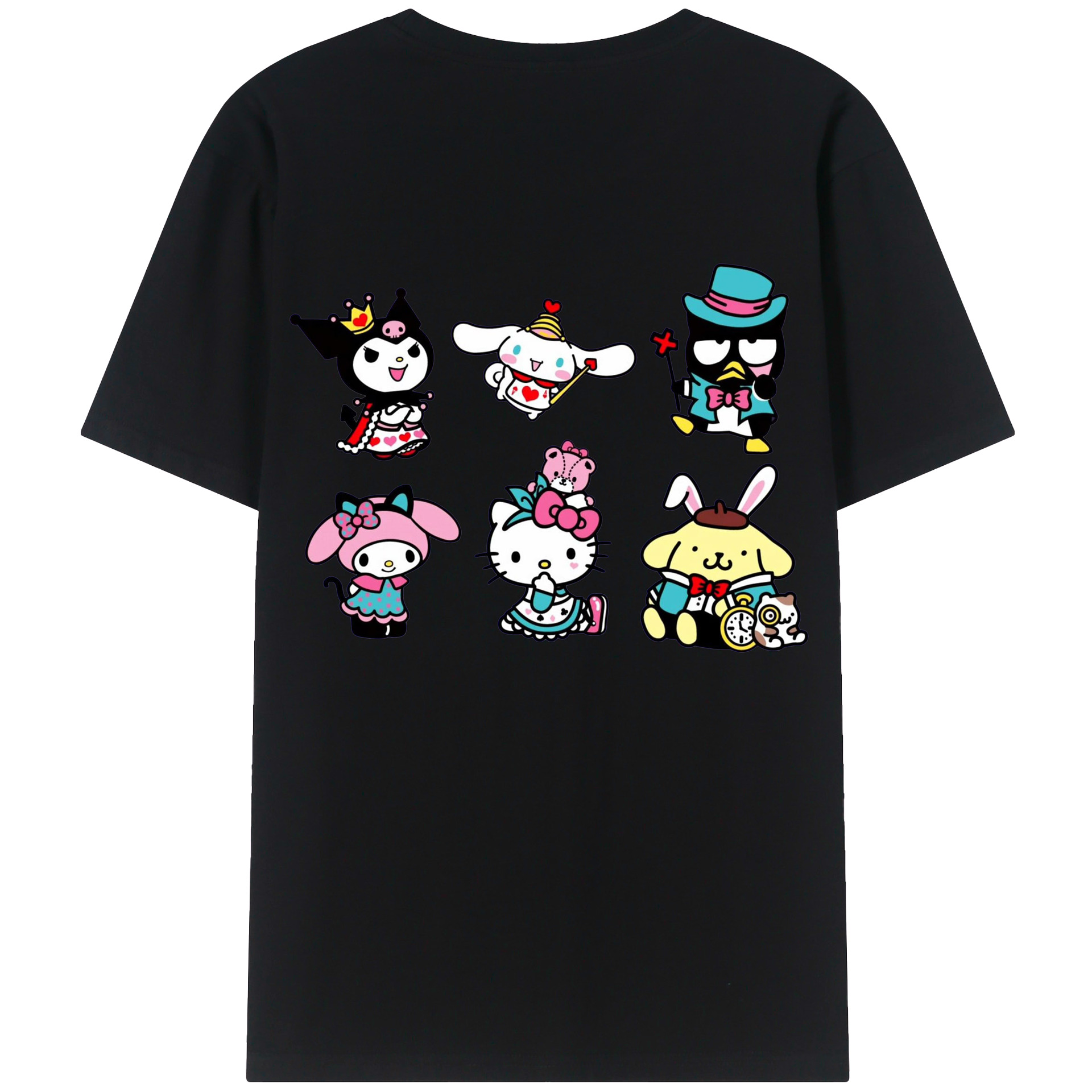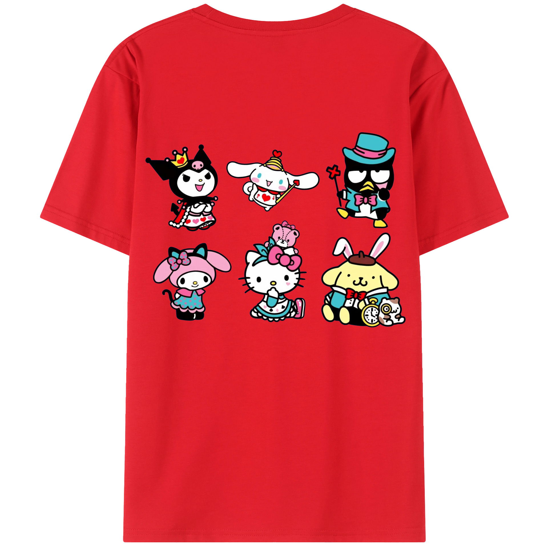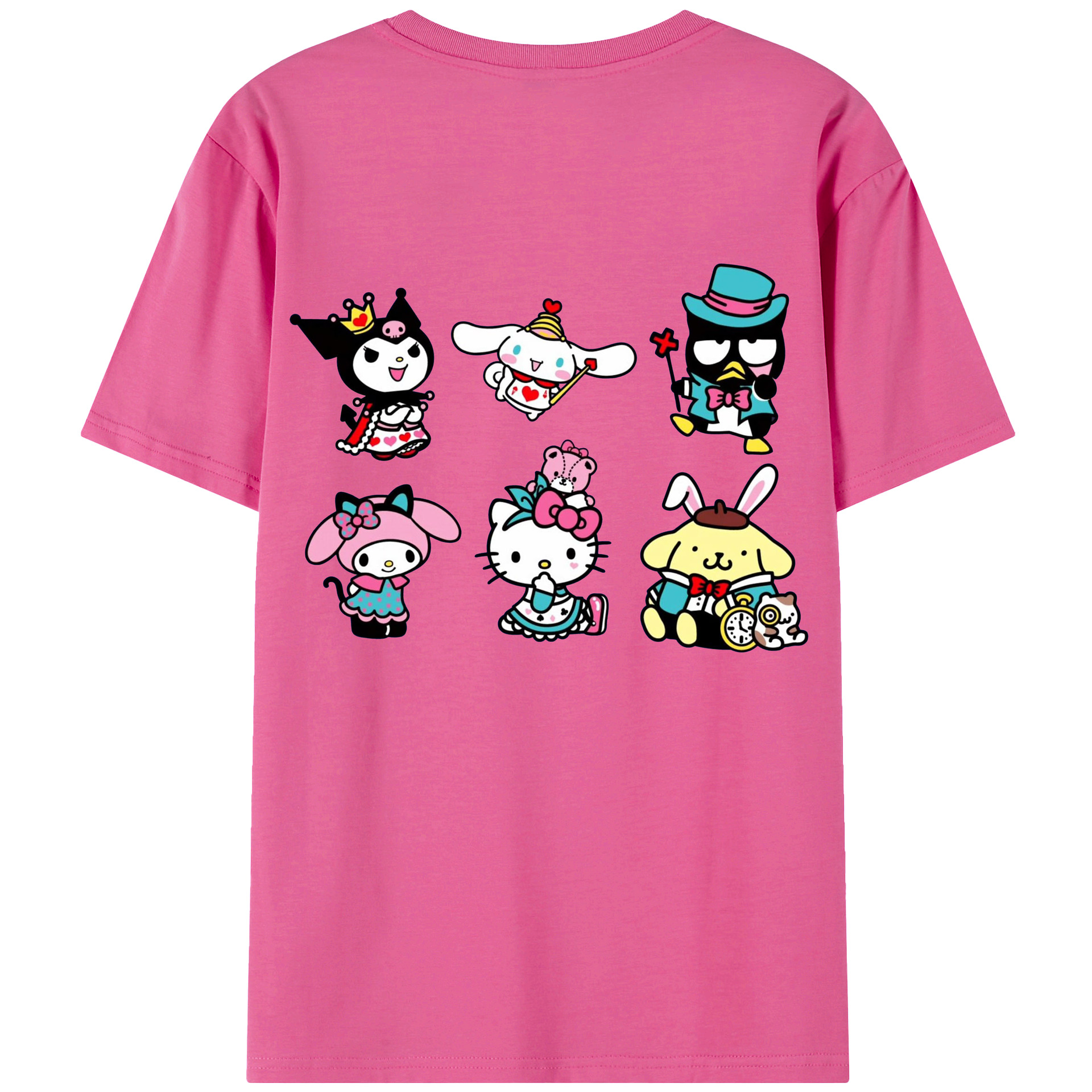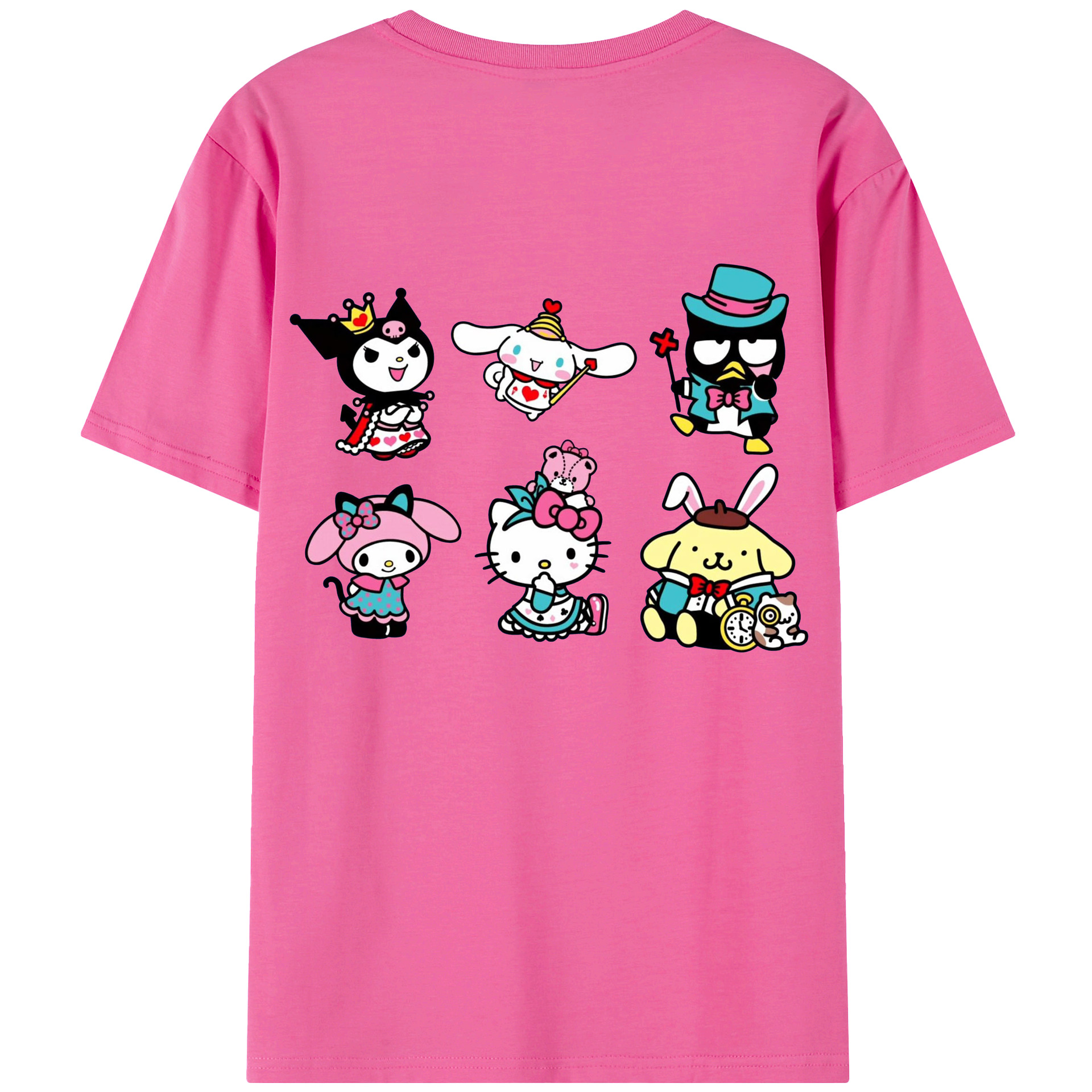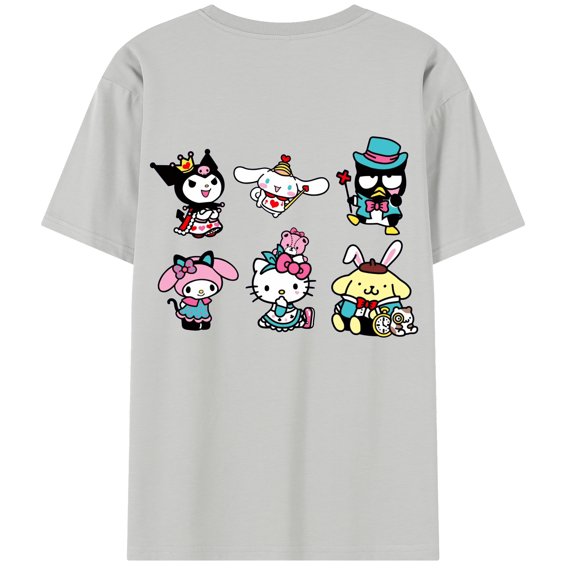 サンリオ - レディース半袖Tシャツ ・ 綿100% ・ バックプリント ・ 強化クルーネック ・ 二重折り袖口 ・ 快適 通気性 ・ フィットネス カジュアル 旅行用
