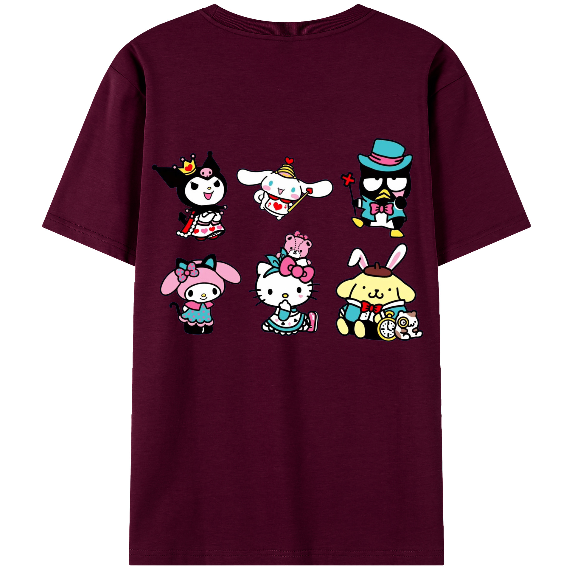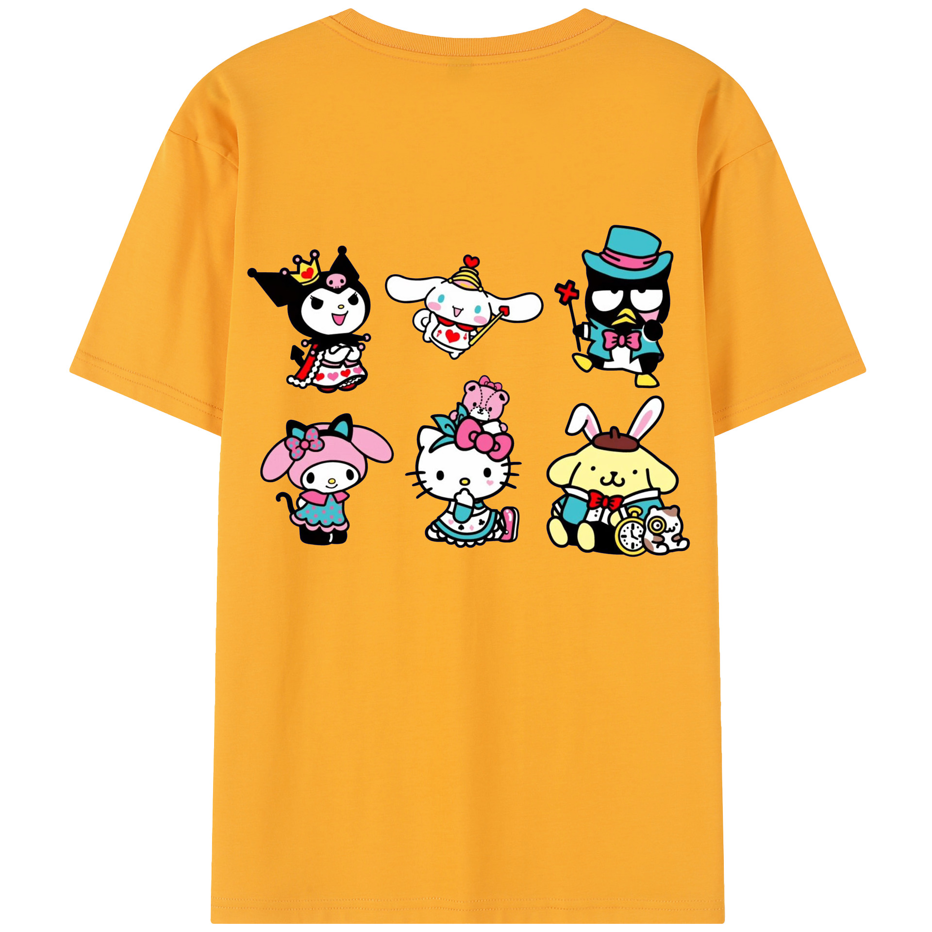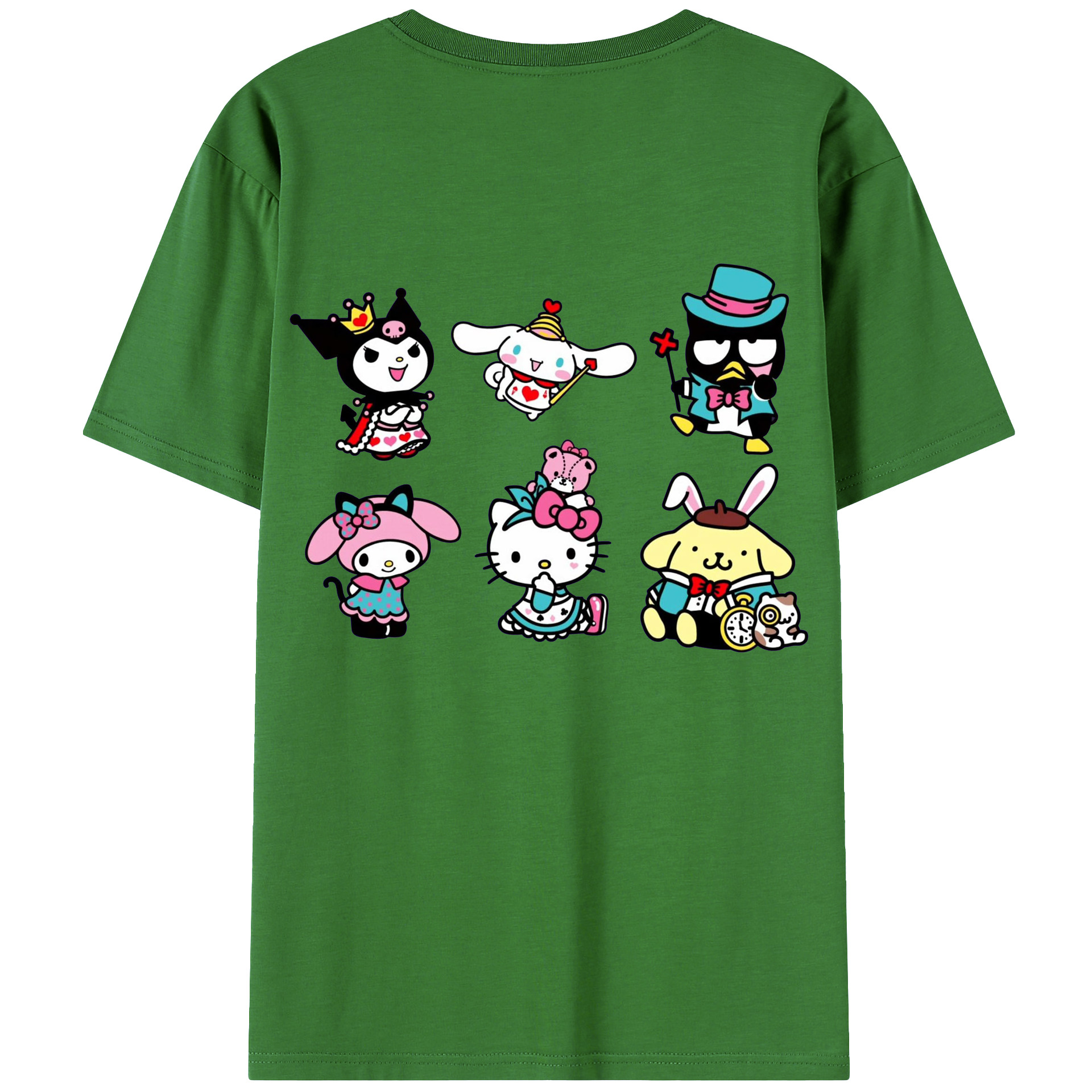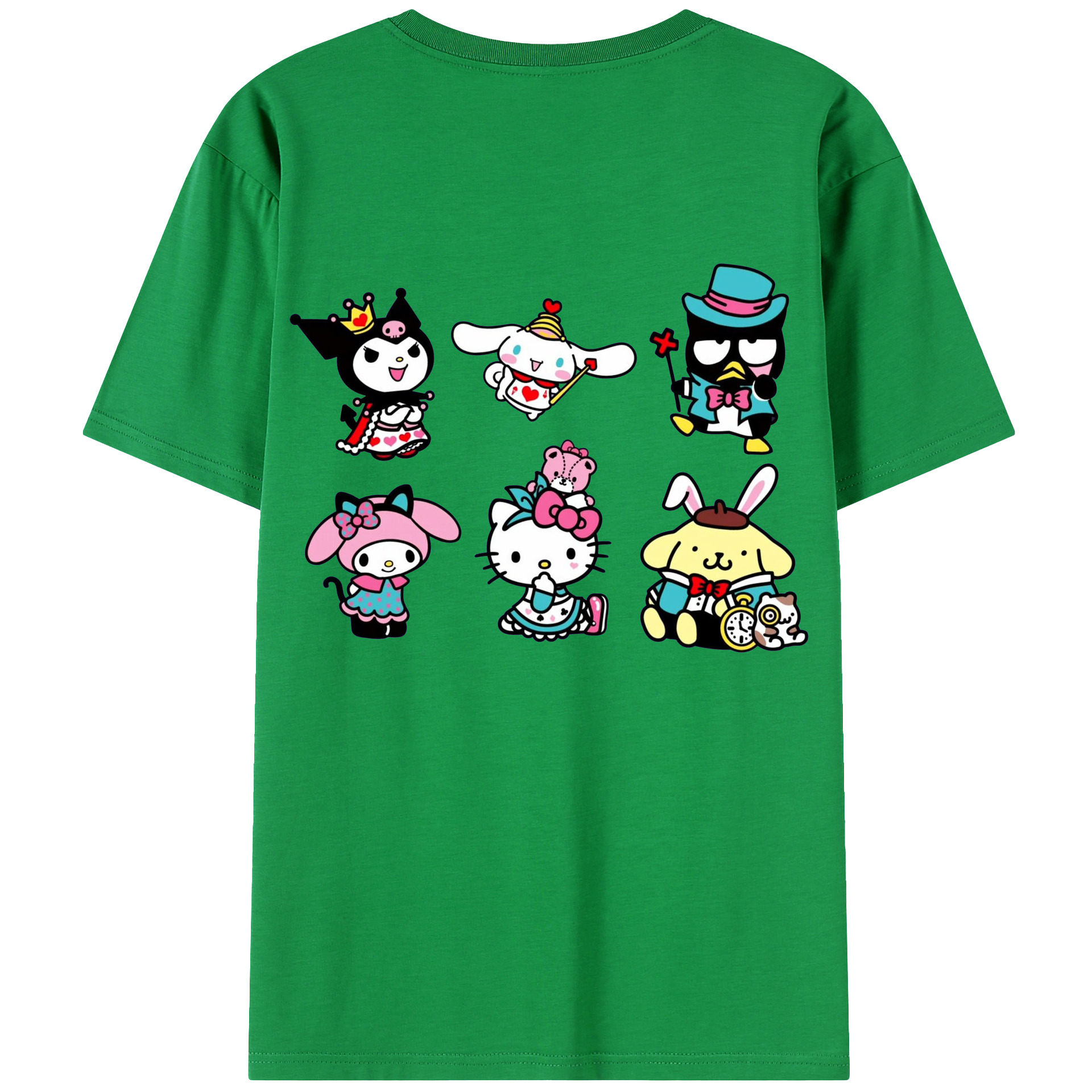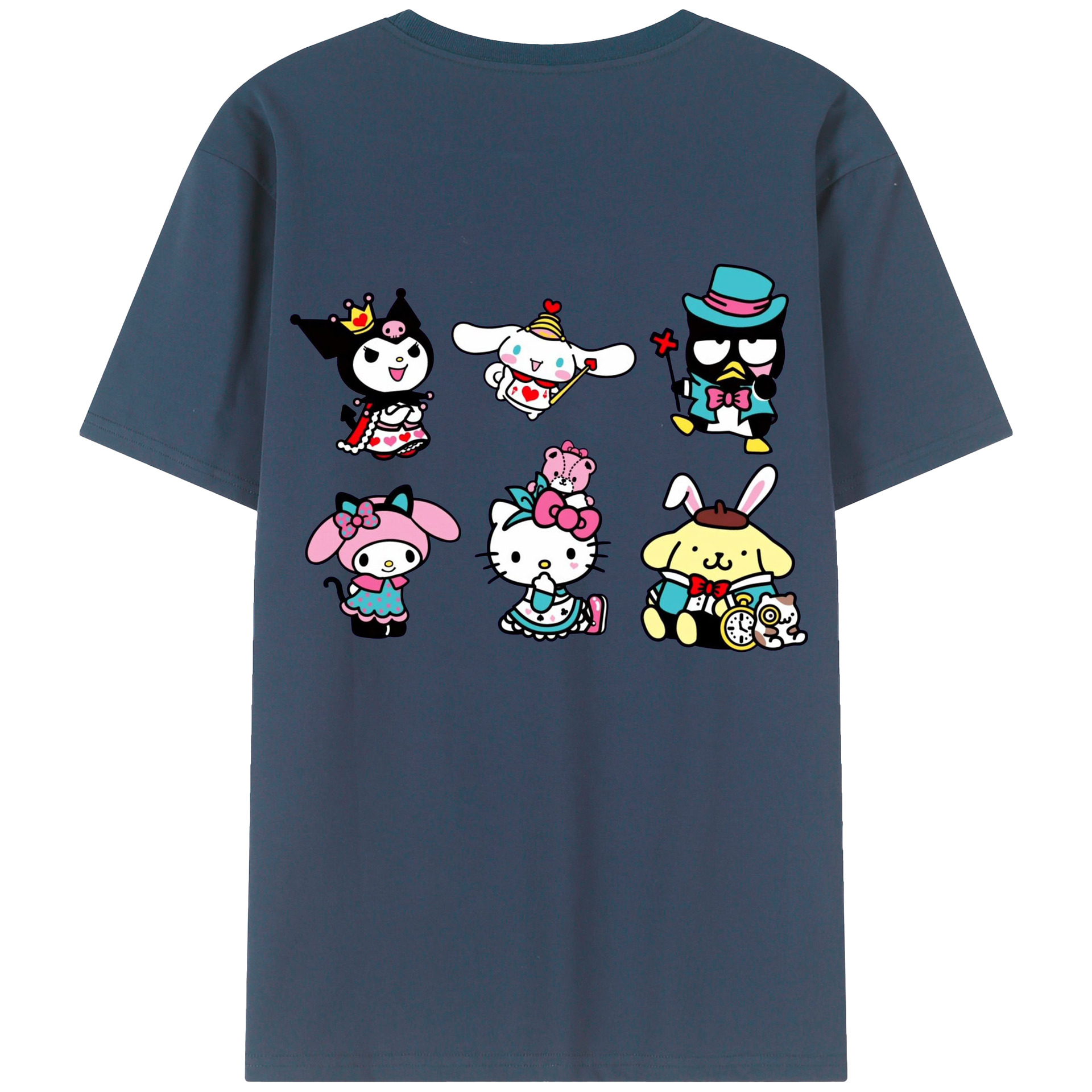 サンリオ - レディース半袖Tシャツ ・ 綿100% ・ バックプリント ・ 強化クルーネック ・ 二重折り袖口 ・ 快適 通気性 ・ フィットネス カジュアル 旅行用