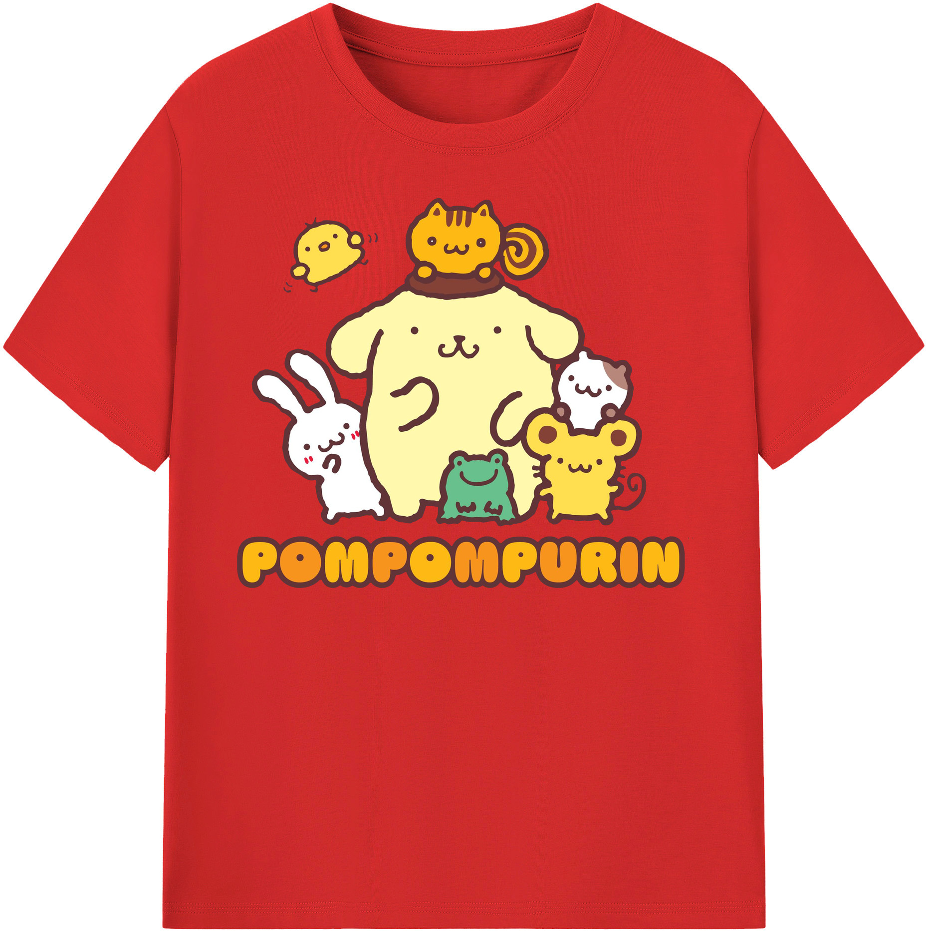 サンリオ - レディースカジュアルプリントTシャツ ・ 綿100% ・ クルーネック ・ フロントプリント ・ 柔らかく快適 ・ フィットネス カジュアル 旅行用