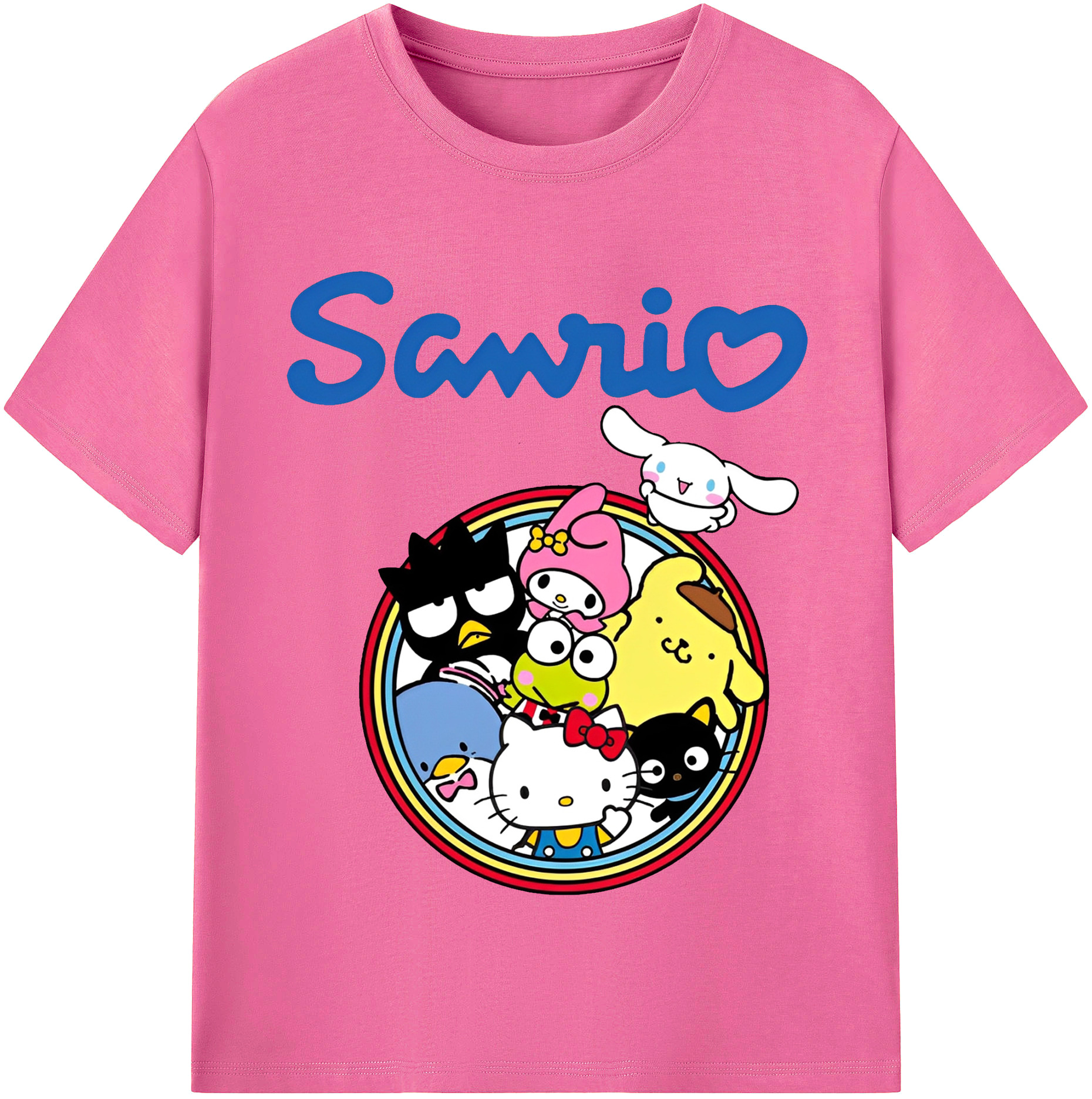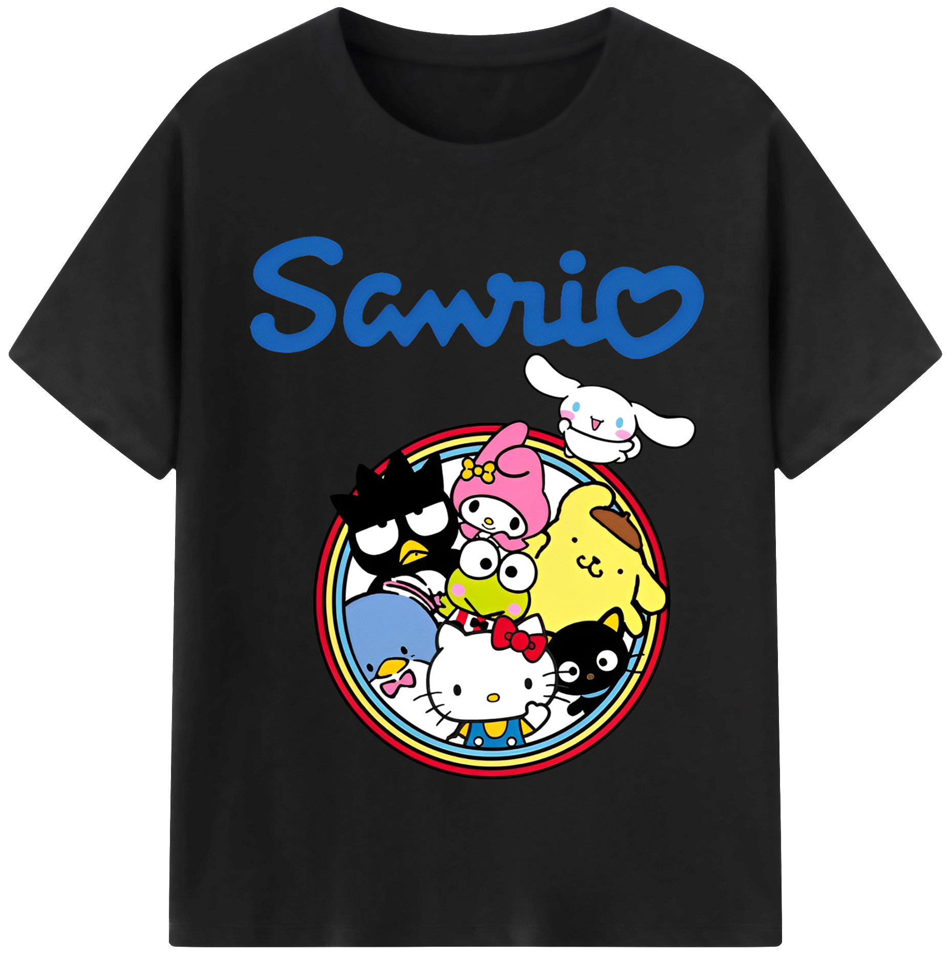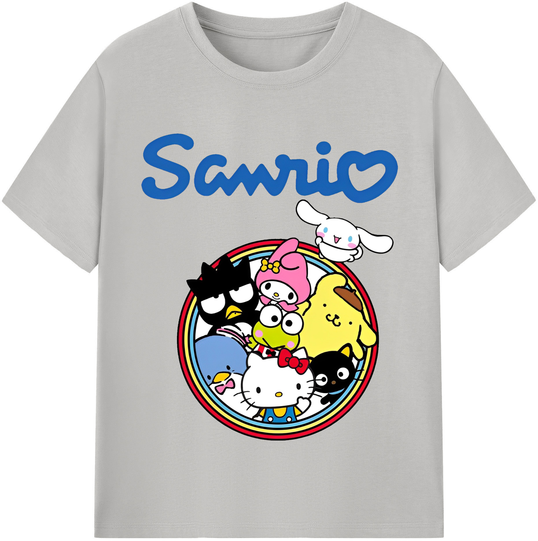 サンリオ - レディースカジュアルプリントTシャツ ・ 綿100% ・ クルーネック ・ フロントプリント ・ 柔らかく快適 ・ フィットネス カジュアル 旅行用
