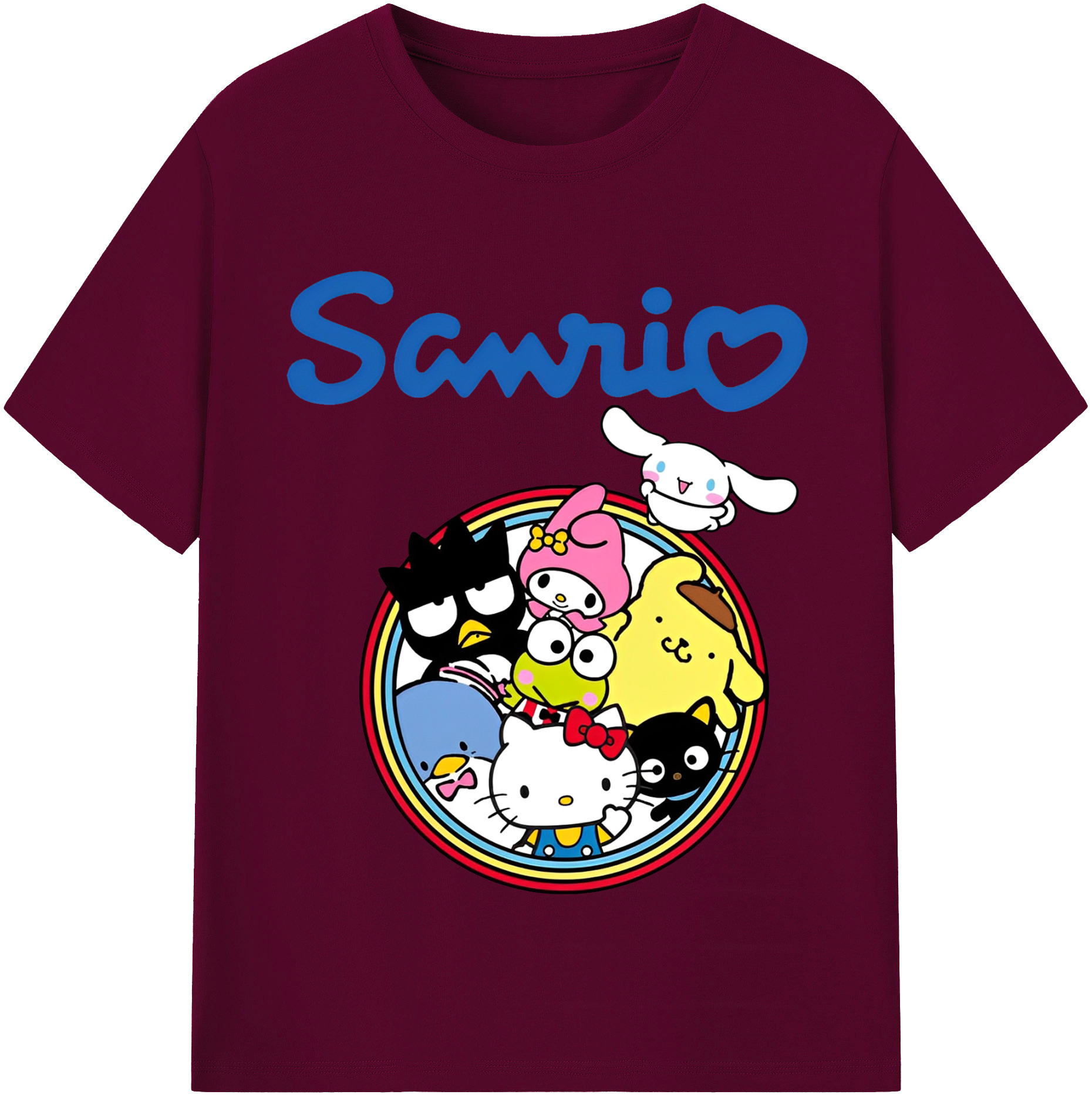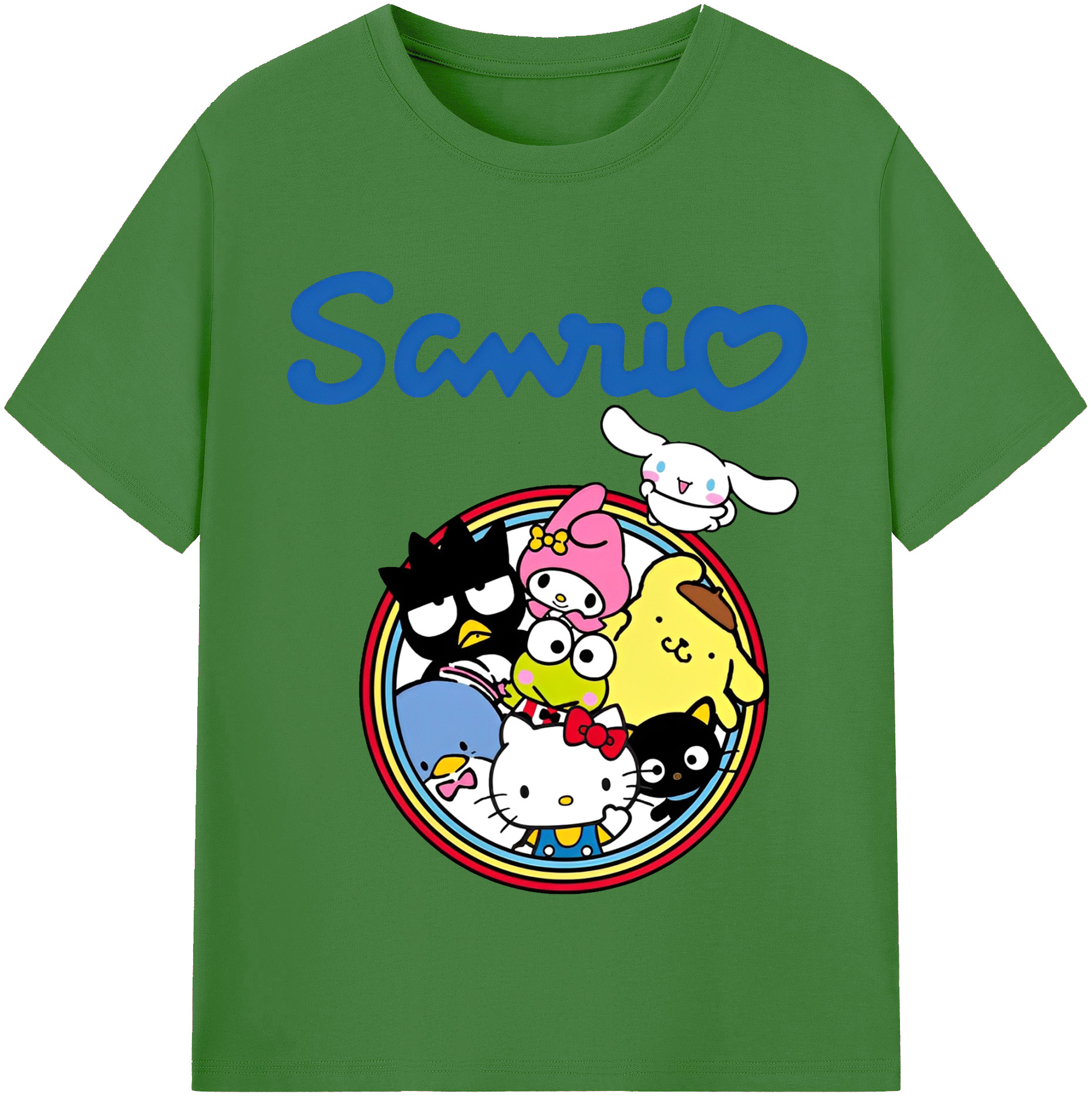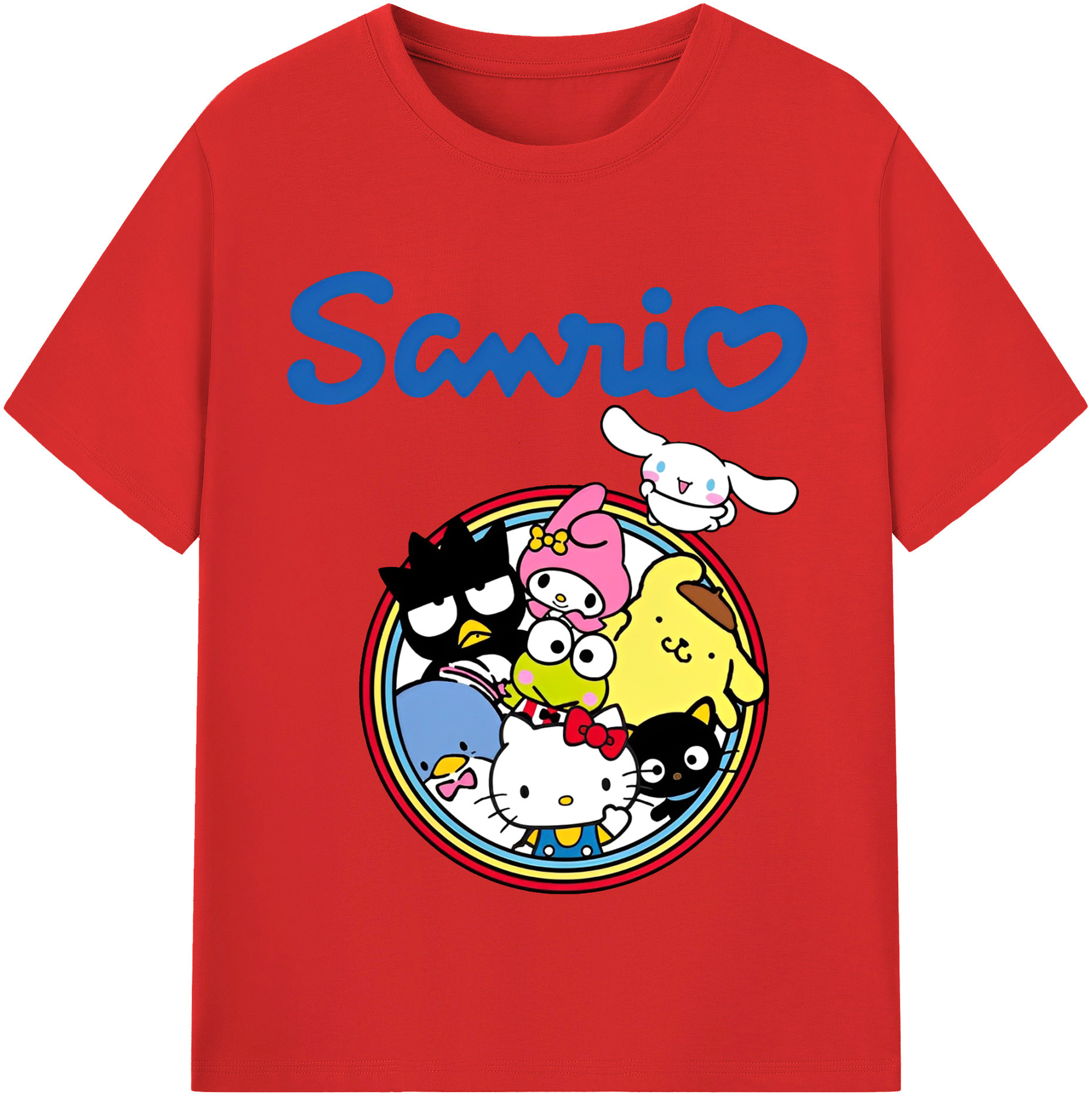 サンリオ - レディースカジュアルプリントTシャツ ・ 綿100% ・ クルーネック ・ フロントプリント ・ 柔らかく快適 ・ フィットネス カジュアル 旅行用
