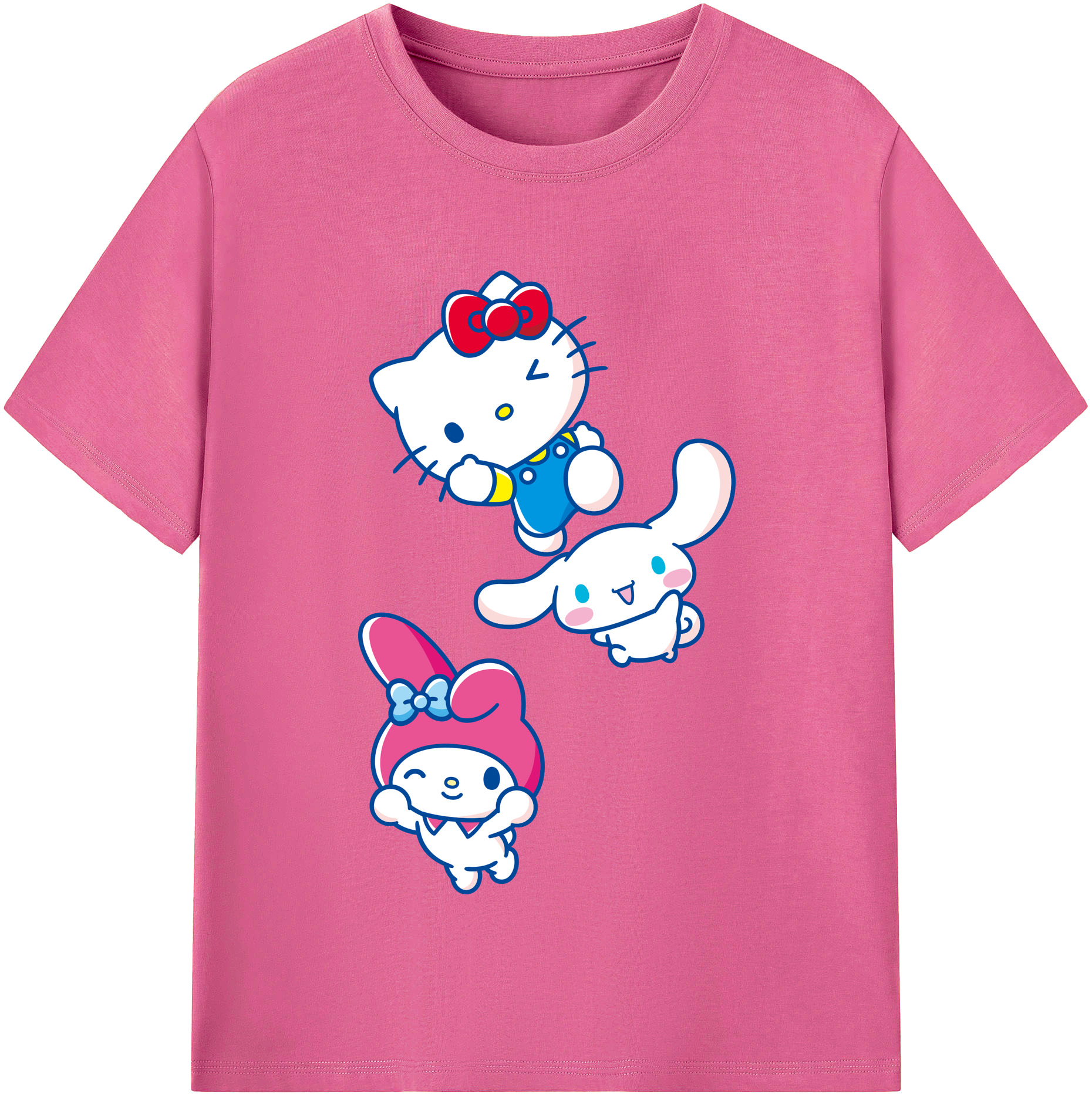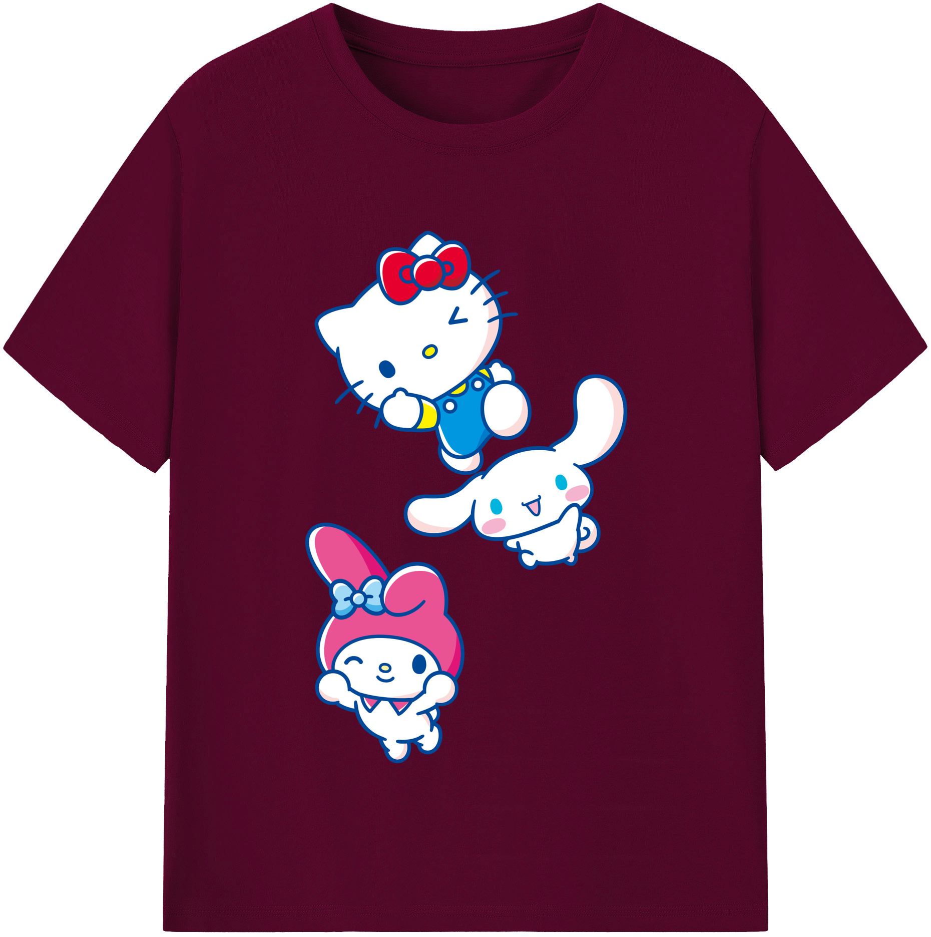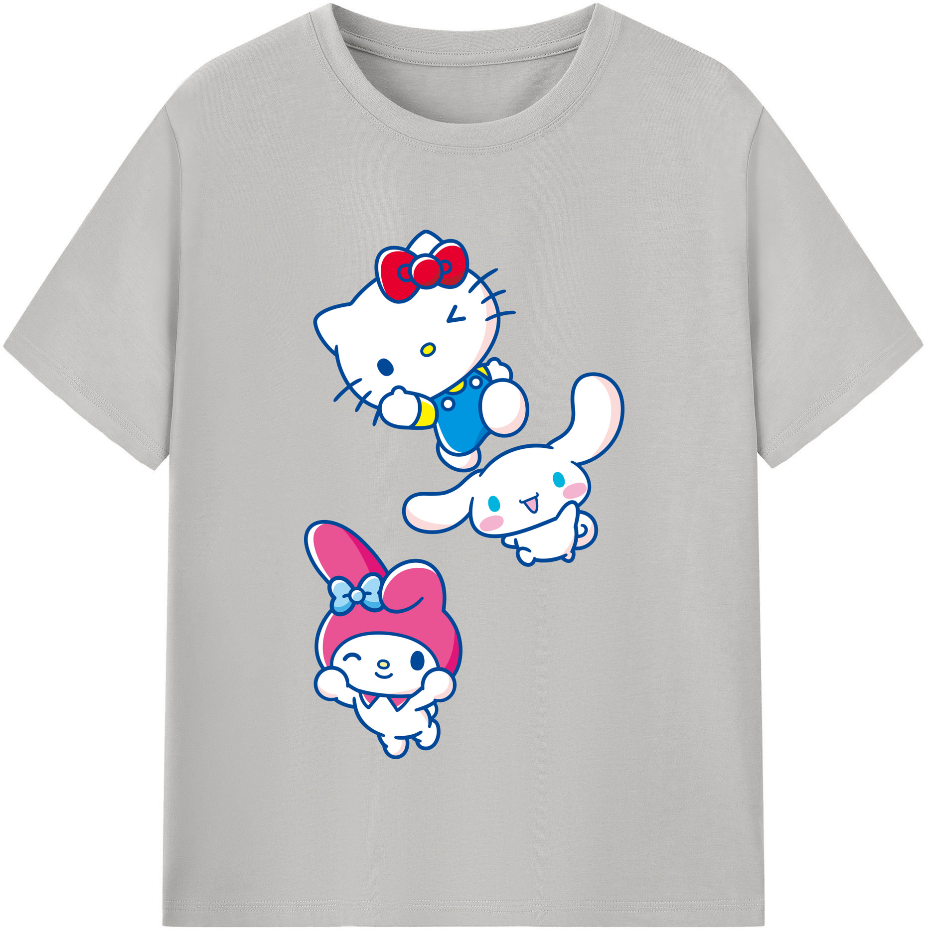 サンリオ - レディースカジュアルプリントTシャツ ・ 綿100% ・ クルーネック ・ フロントプリント ・ 柔らかく快適 ・ フィットネス カジュアル 旅行用