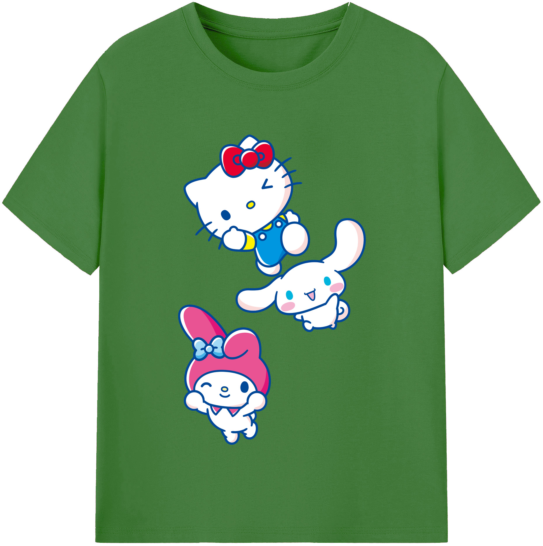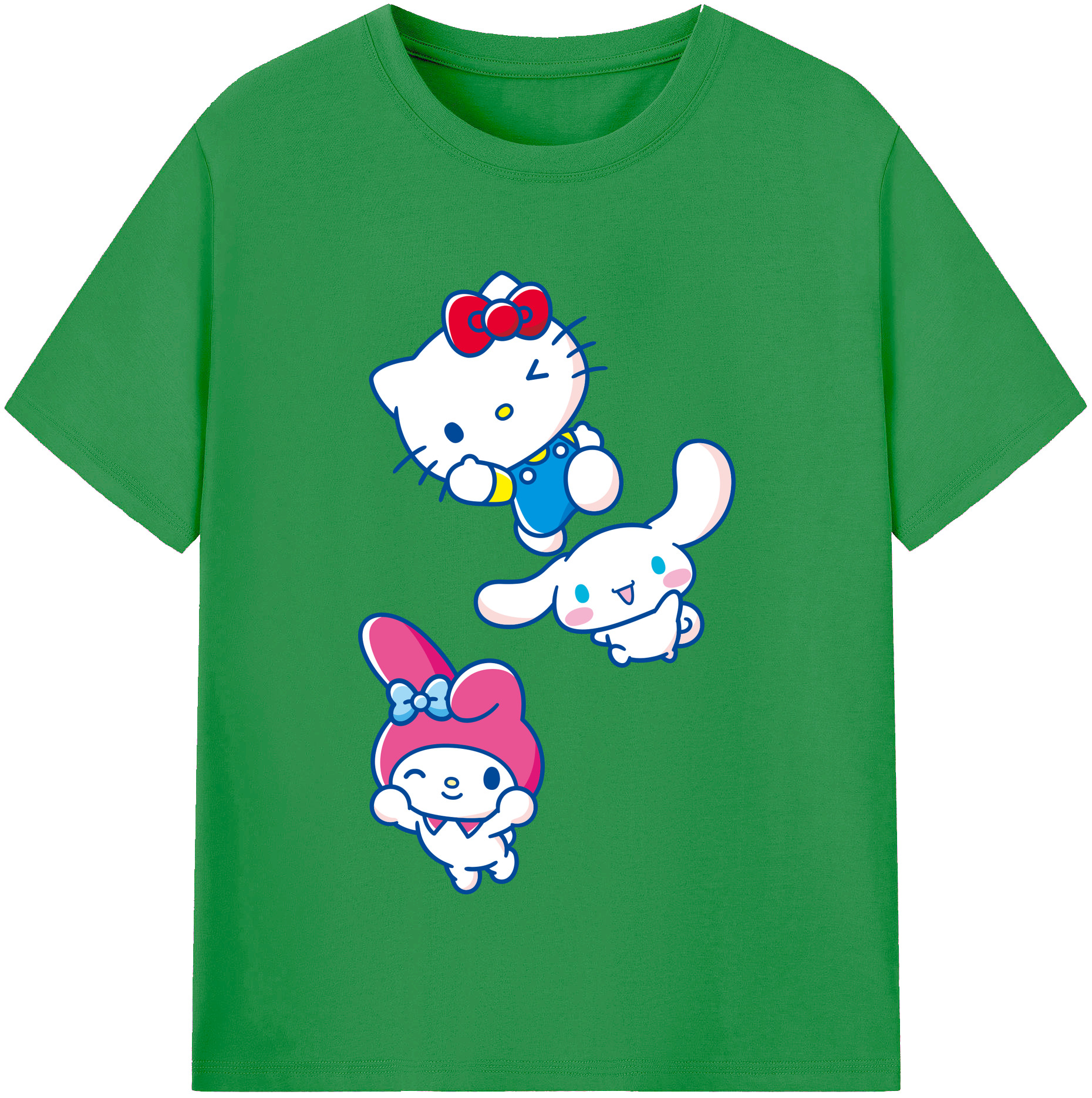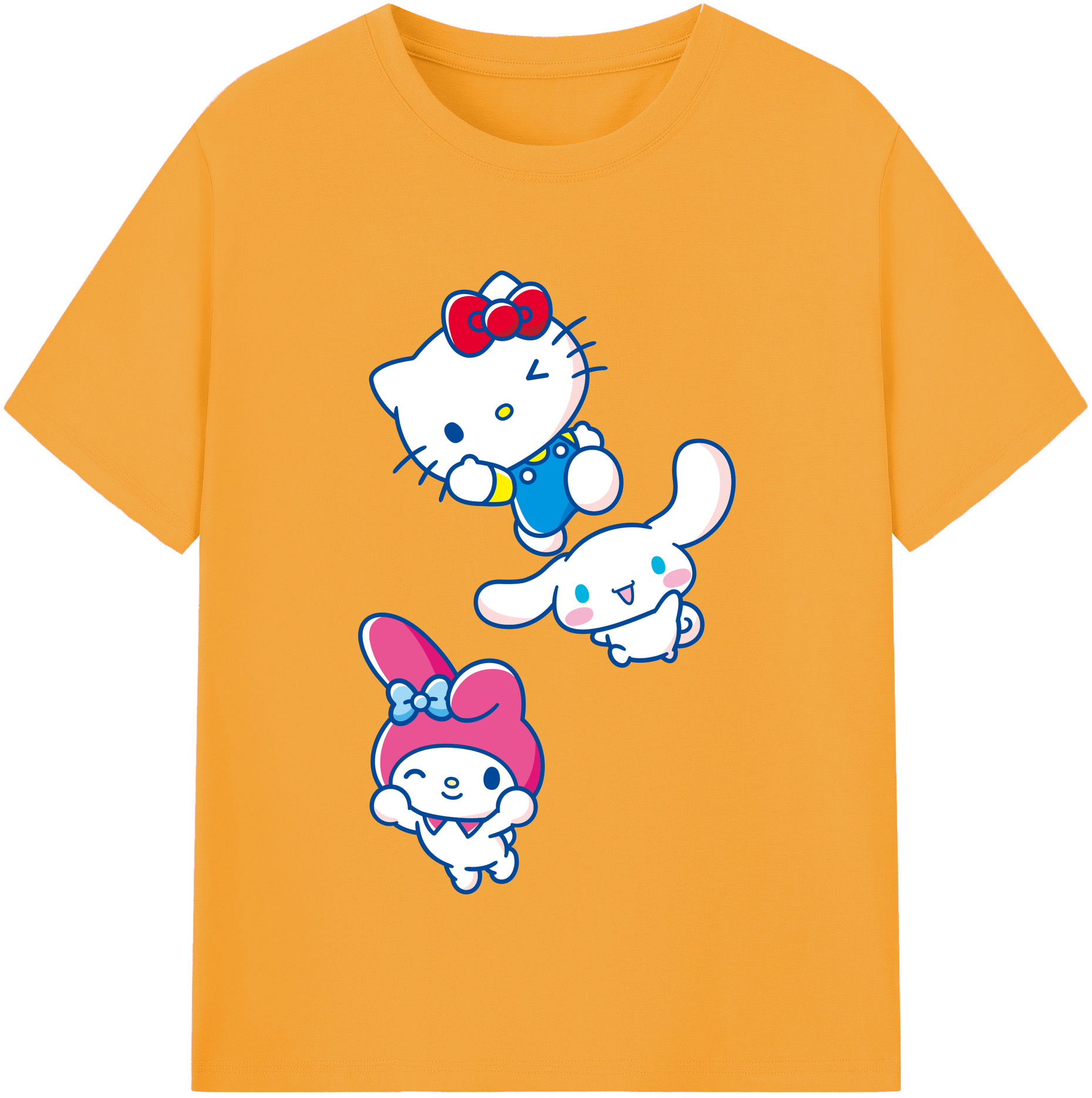 サンリオ - レディースカジュアルプリントTシャツ ・ 綿100% ・ クルーネック ・ フロントプリント ・ 柔らかく快適 ・ フィットネス カジュアル 旅行用