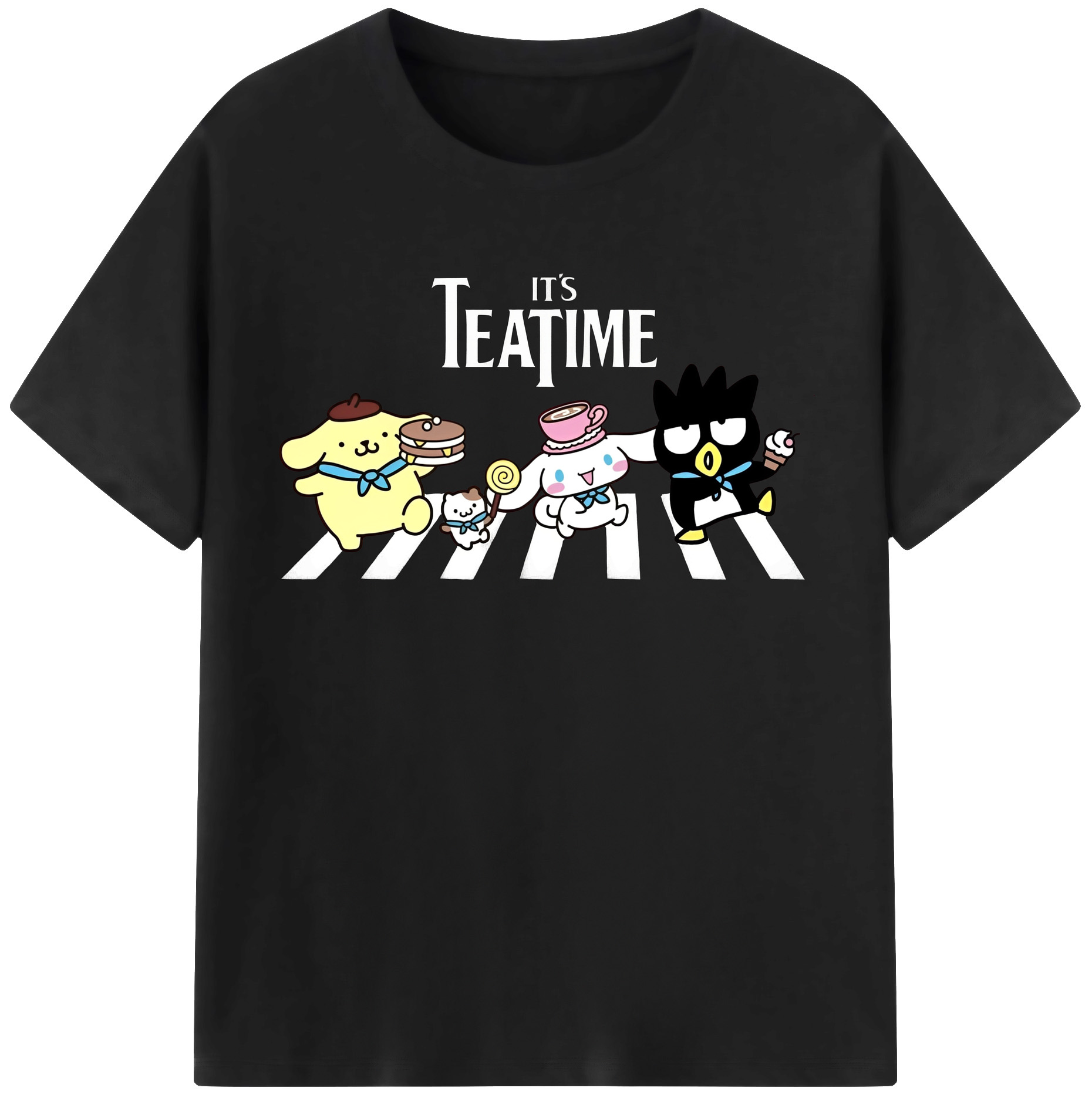 サンリオ - レディースカジュアルプリントTシャツ ・ 綿100% ・ クルーネック ・ フロントプリント ・ 柔らかく快適 ・ フィットネス カジュアル 旅行用