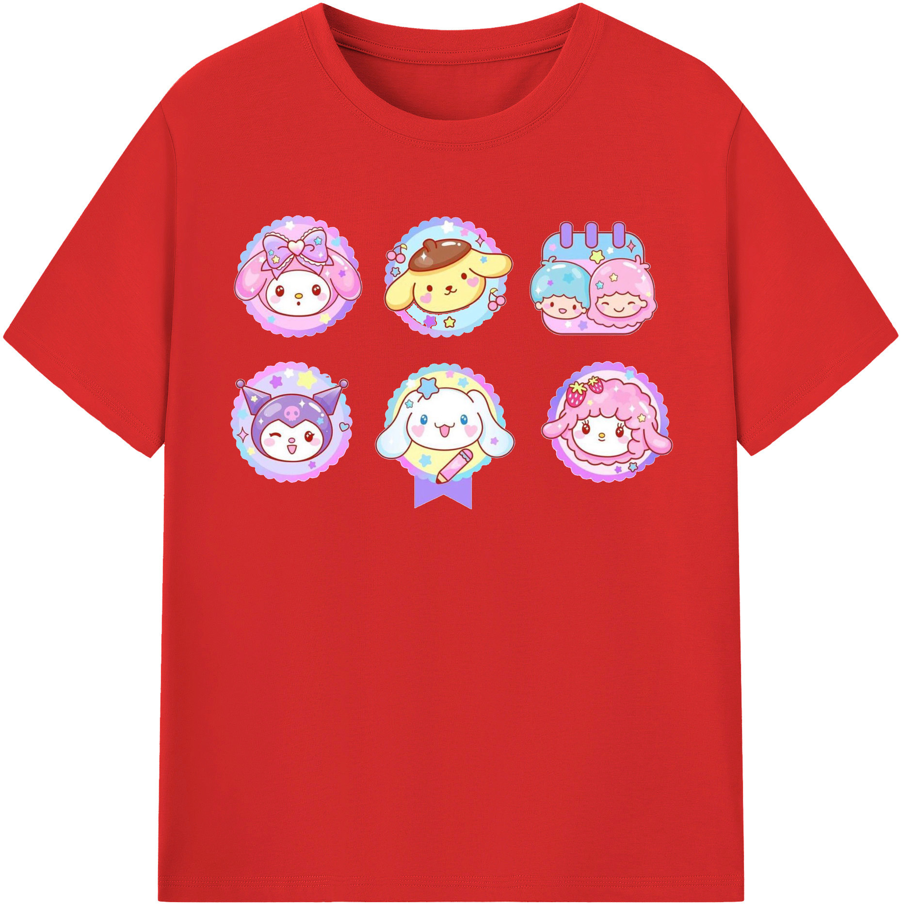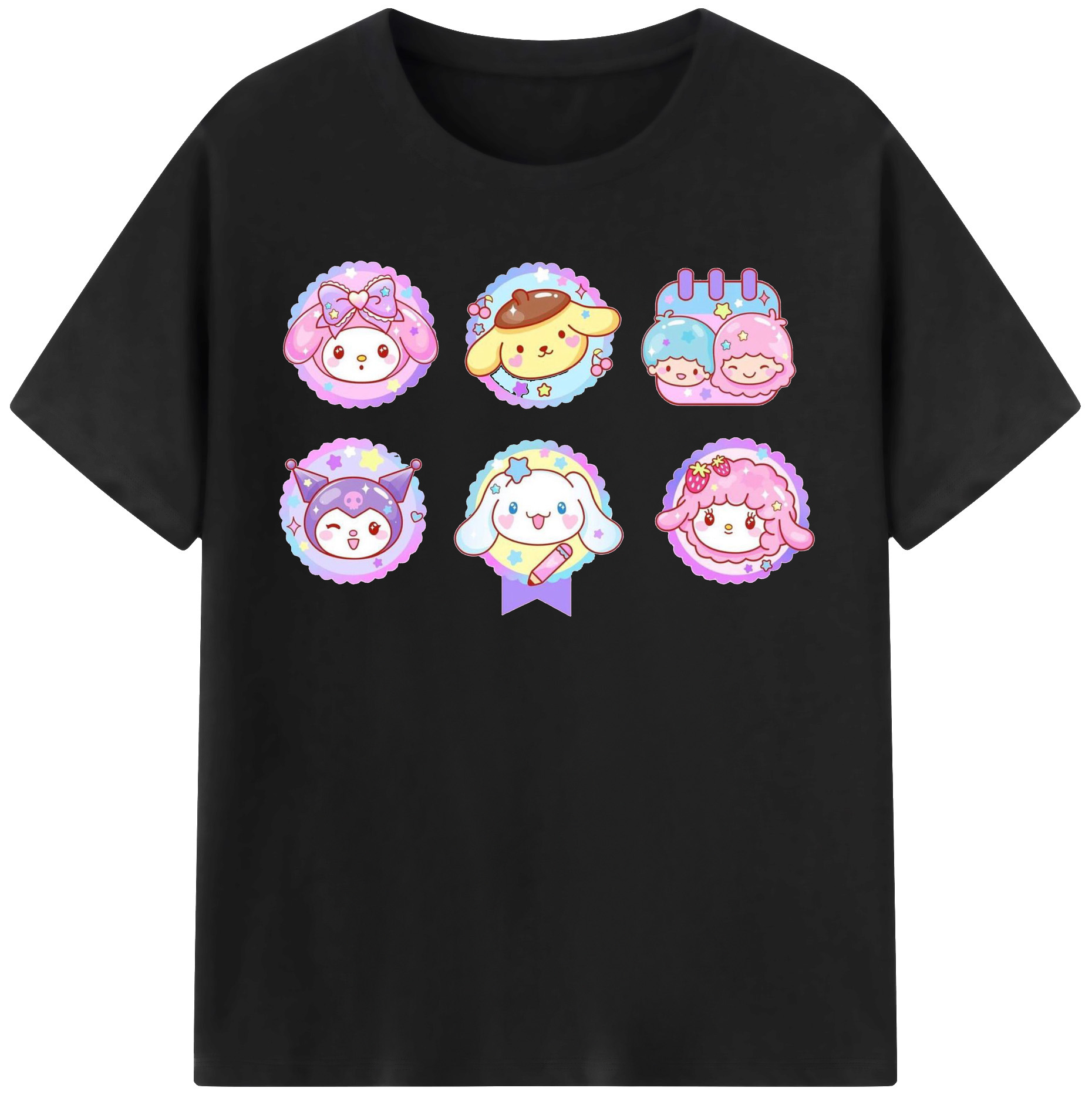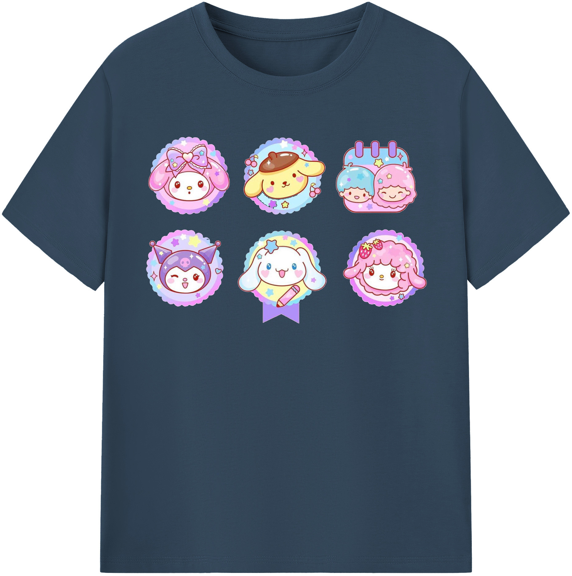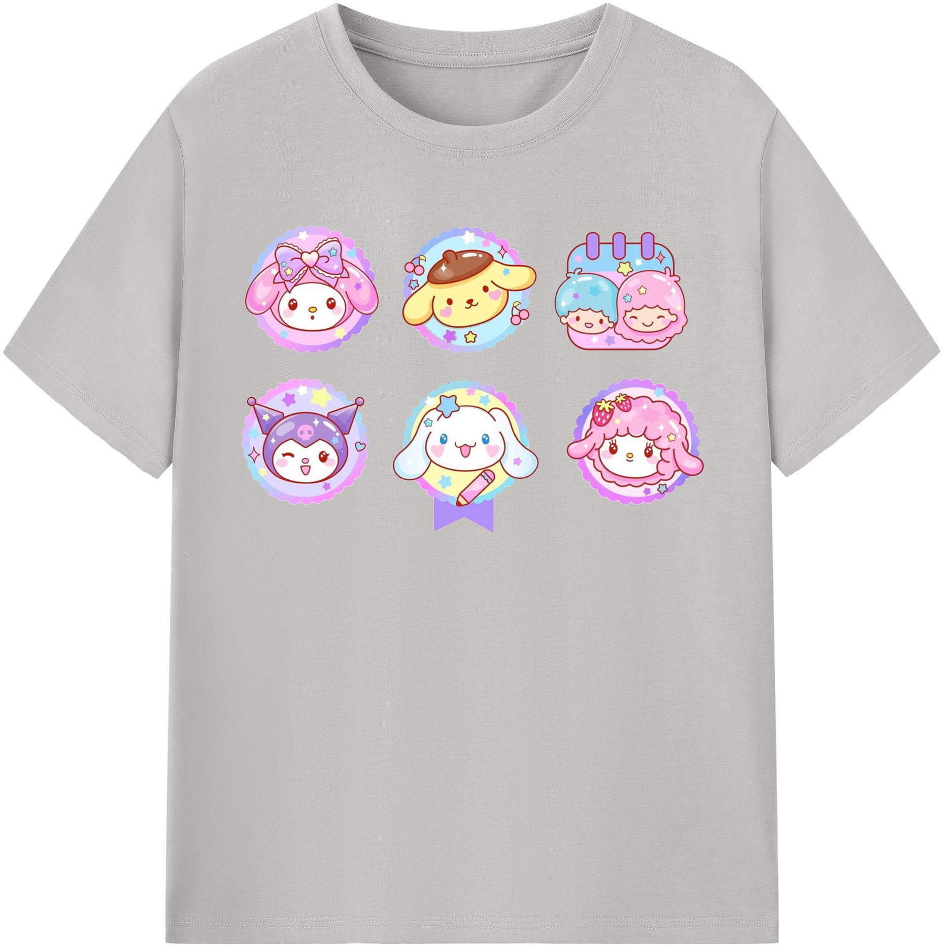サンリオ - レディースカジュアルプリントTシャツ ・ 綿100% ・ クルーネック ・ フロントプリント ・ 柔らかく快適 ・ フィットネス カジュアル 旅行用