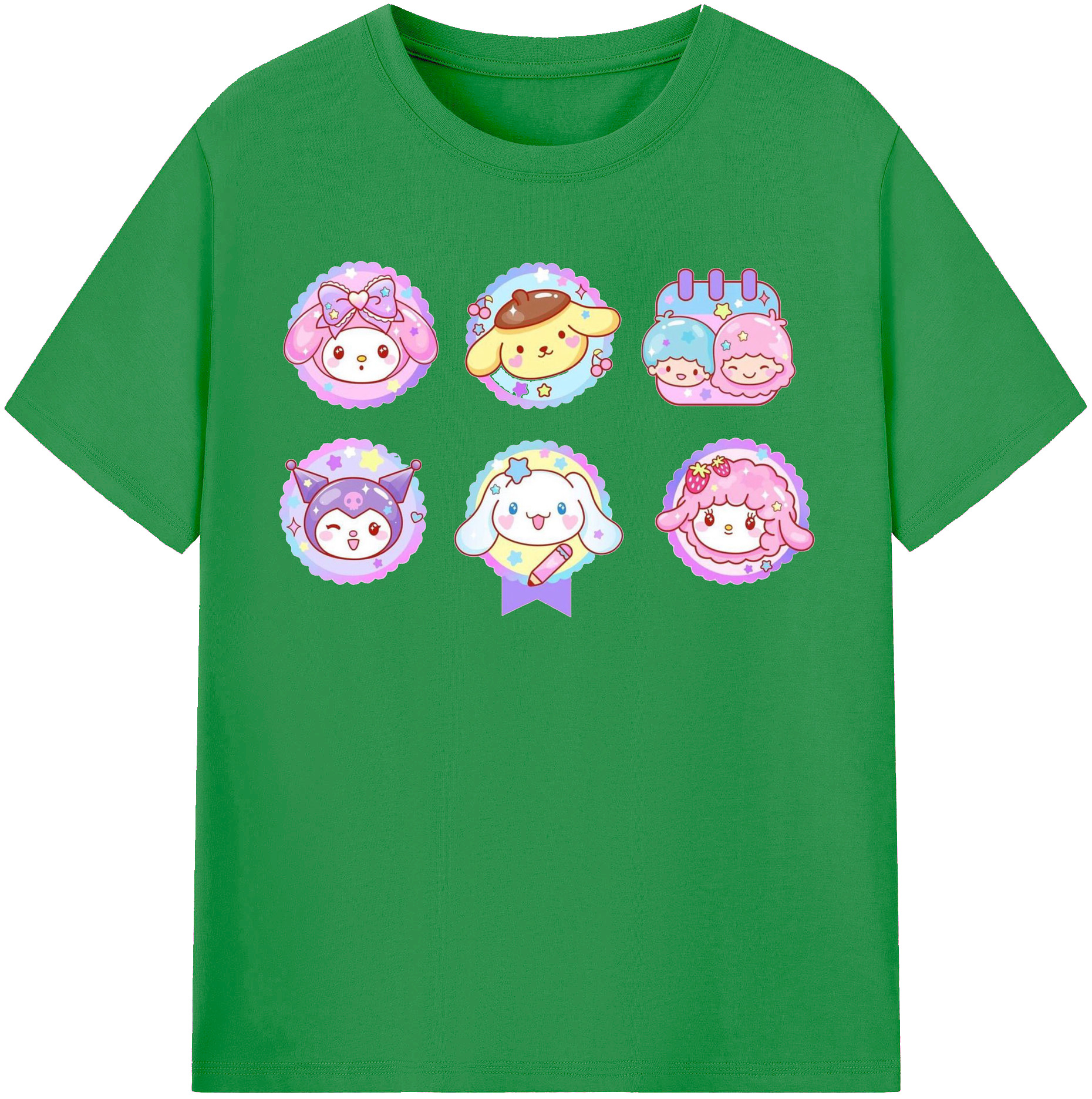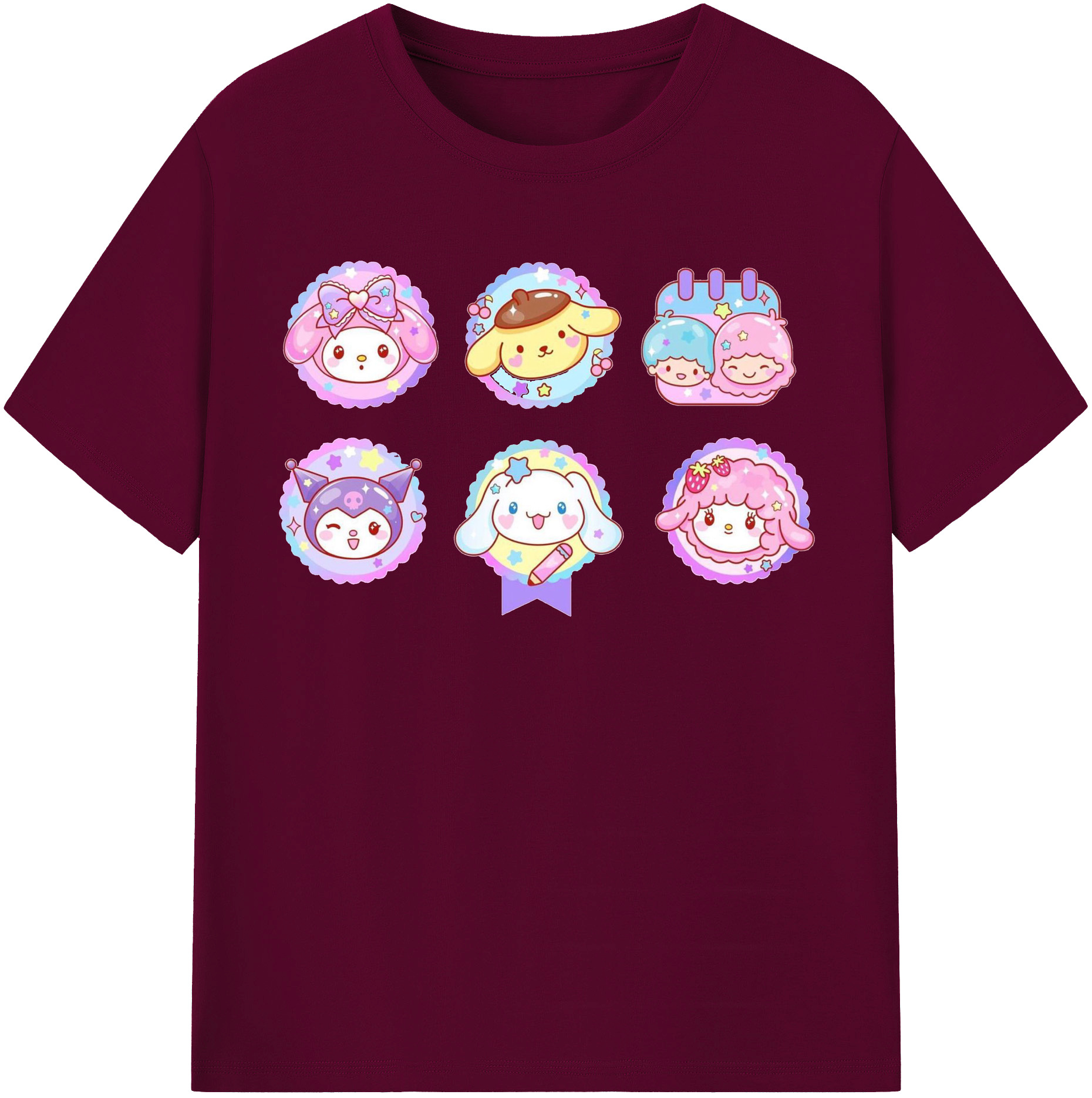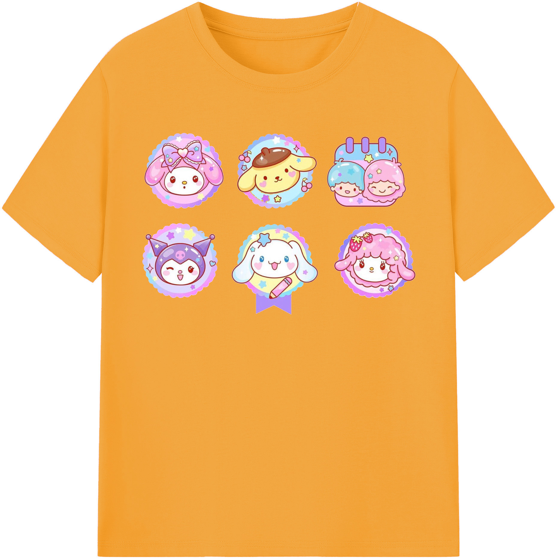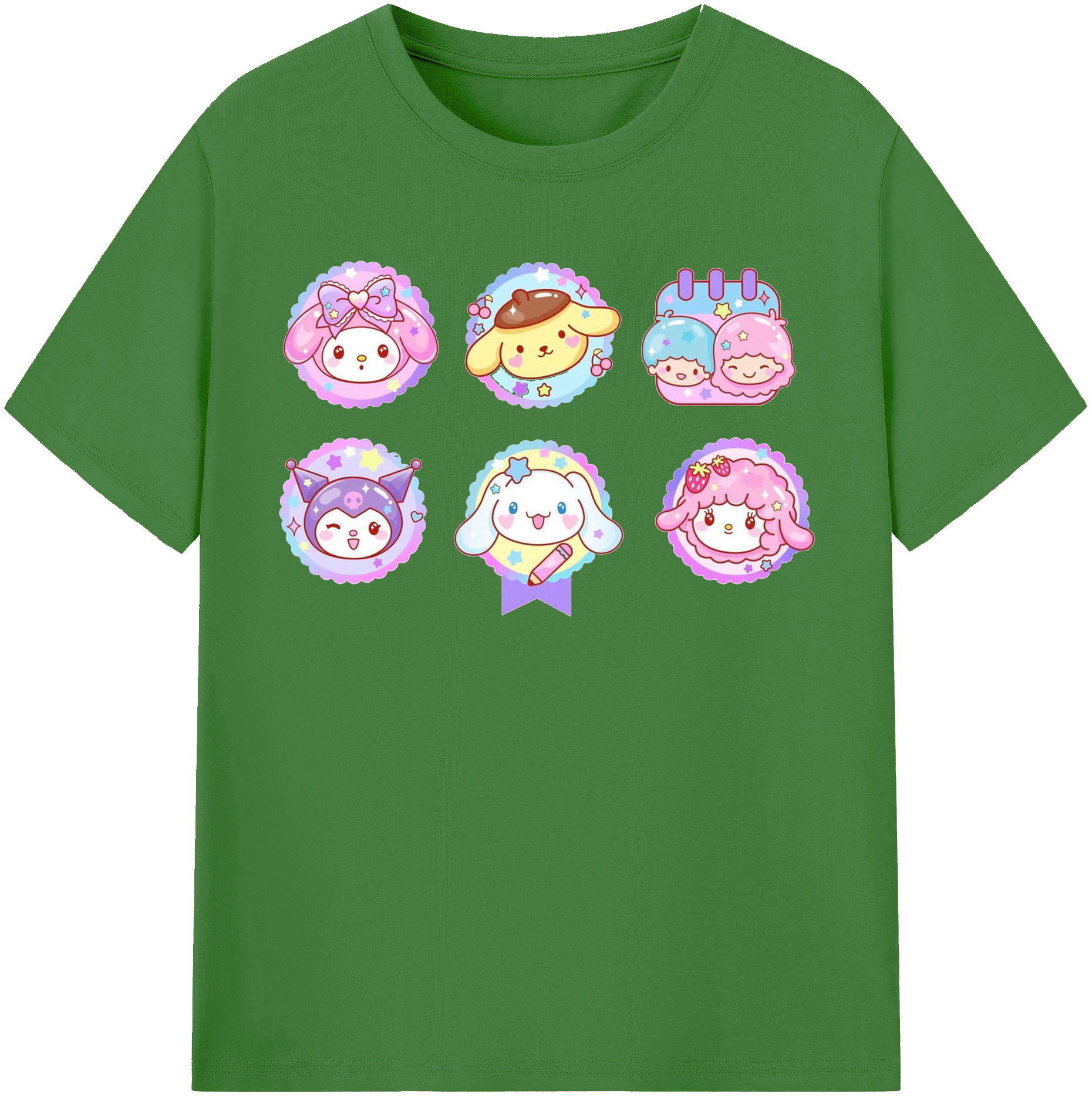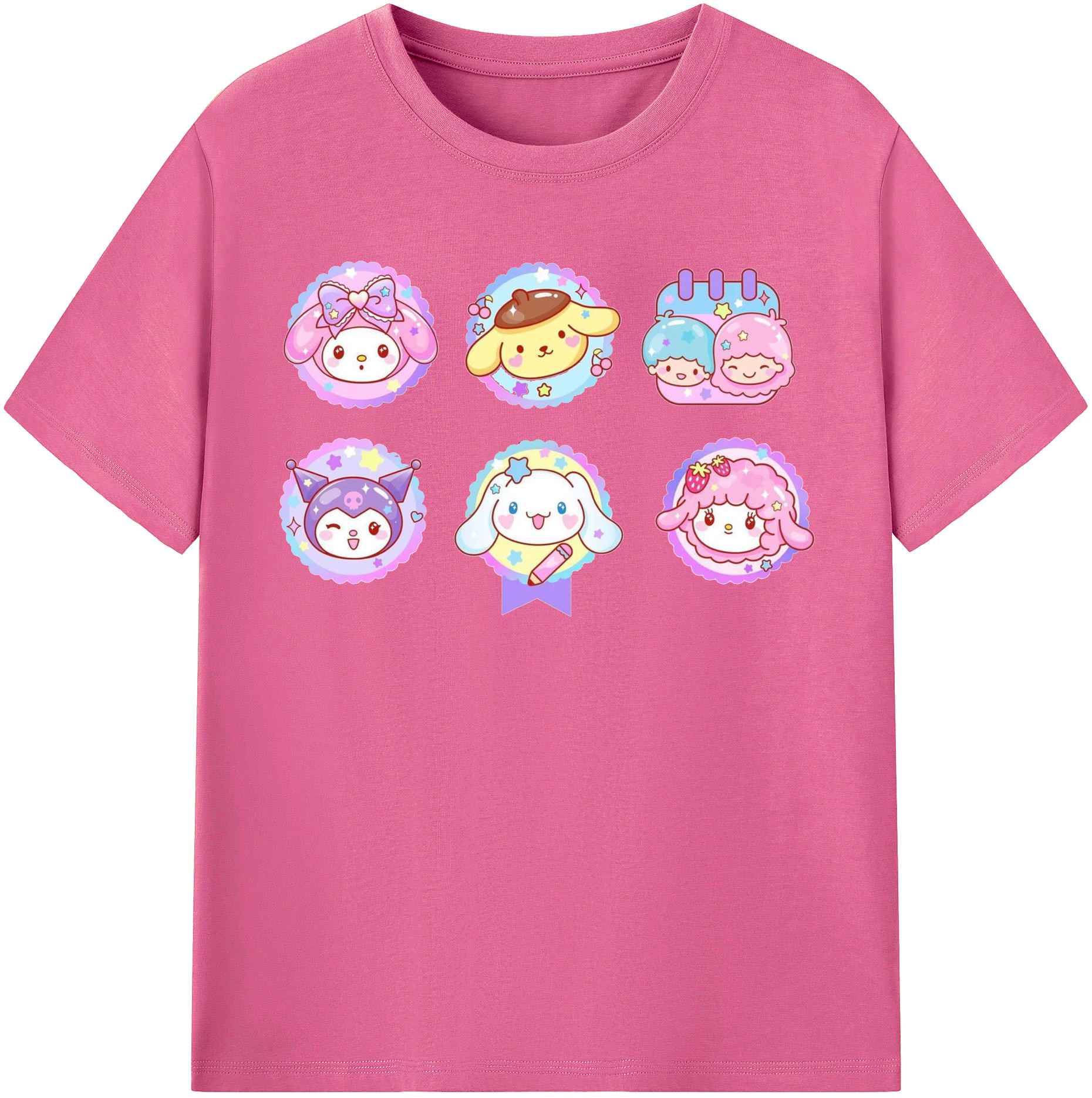 サンリオ - レディースカジュアルプリントTシャツ ・ 綿100% ・ クルーネック ・ フロントプリント ・ 柔らかく快適 ・ フィットネス カジュアル 旅行用