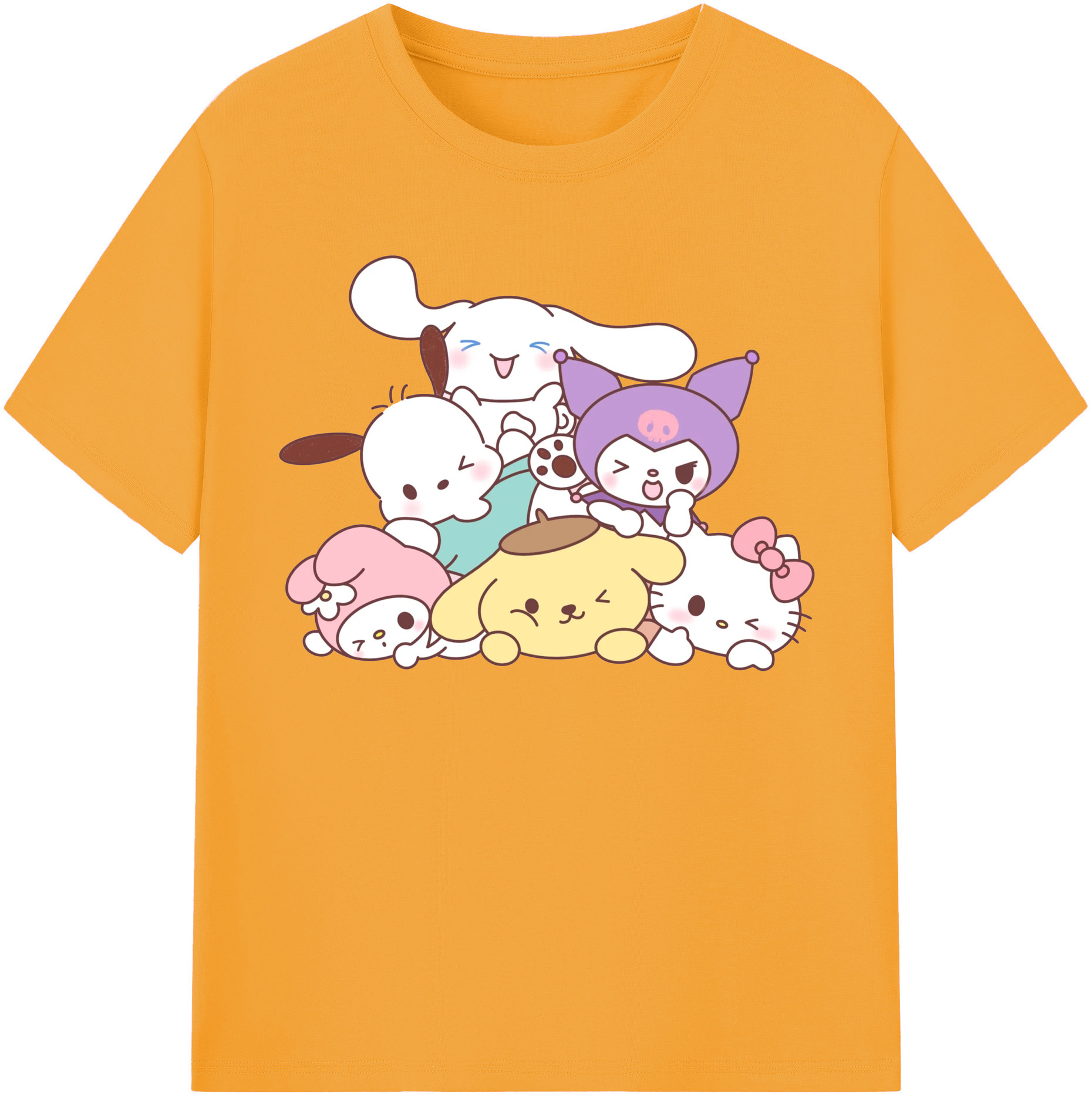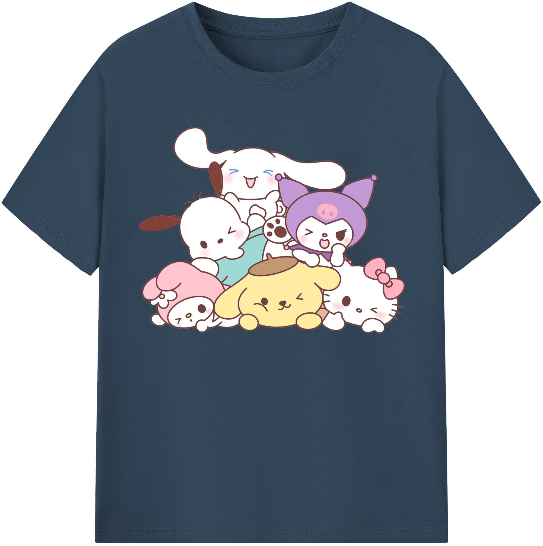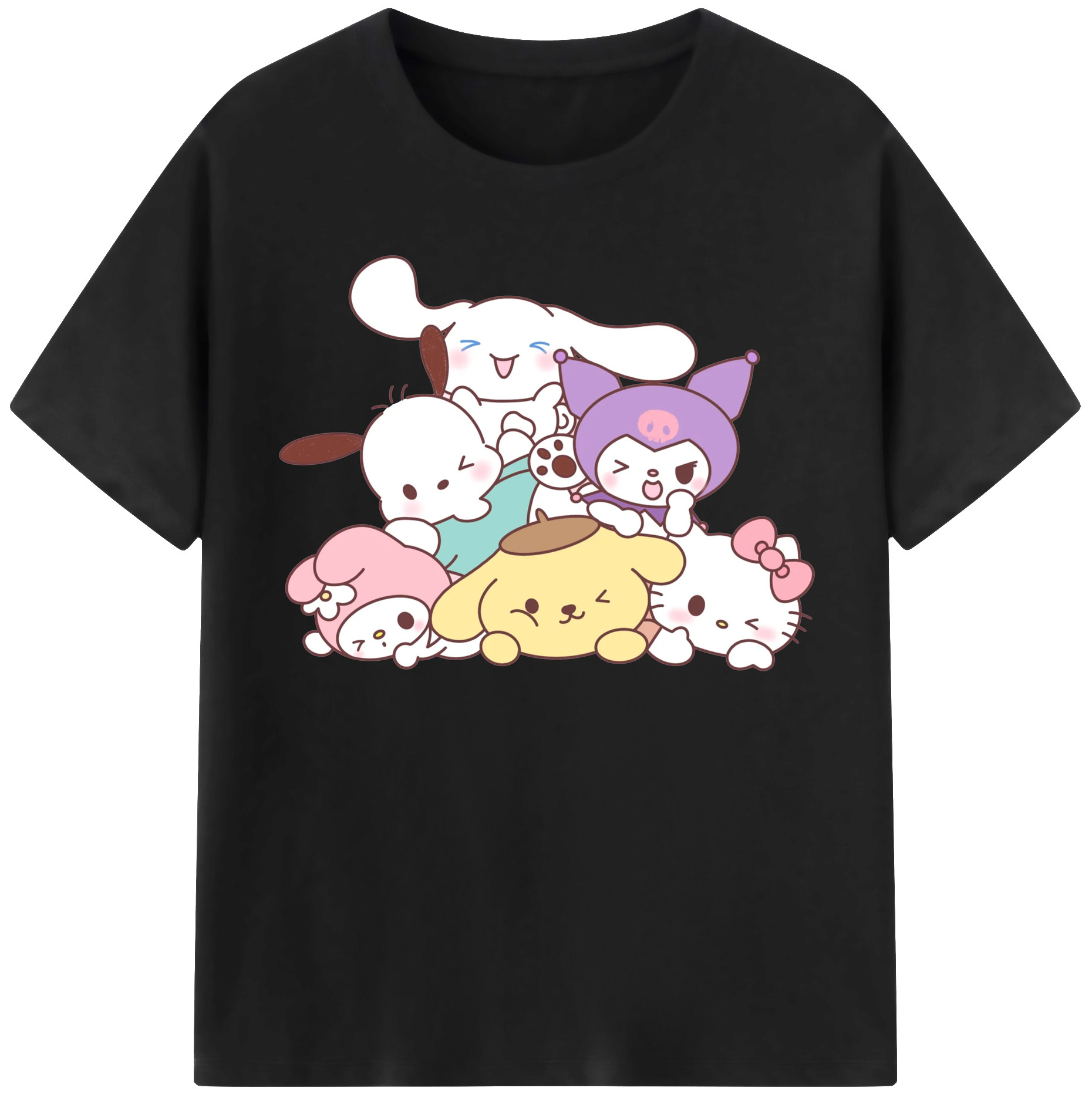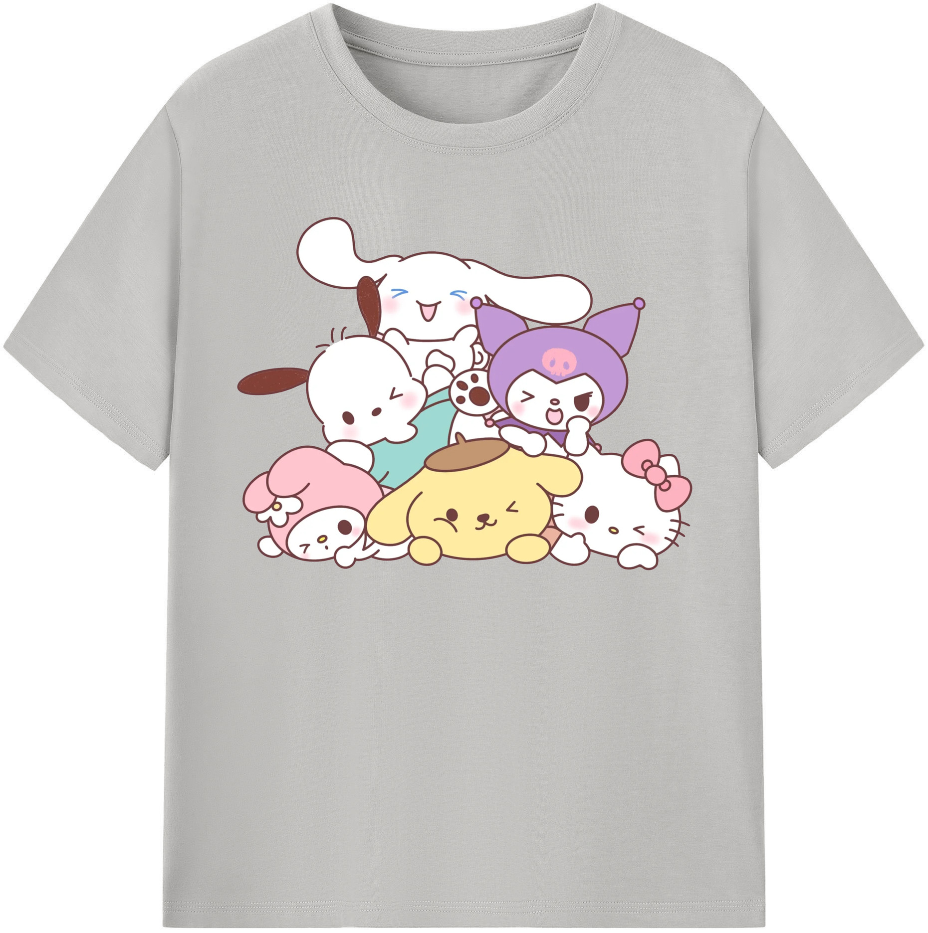 サンリオ - レディースカジュアルプリントTシャツ ・ 綿100% ・ クルーネック ・ フロントプリント ・ 柔らかく快適 ・ フィットネス カジュアル 旅行用