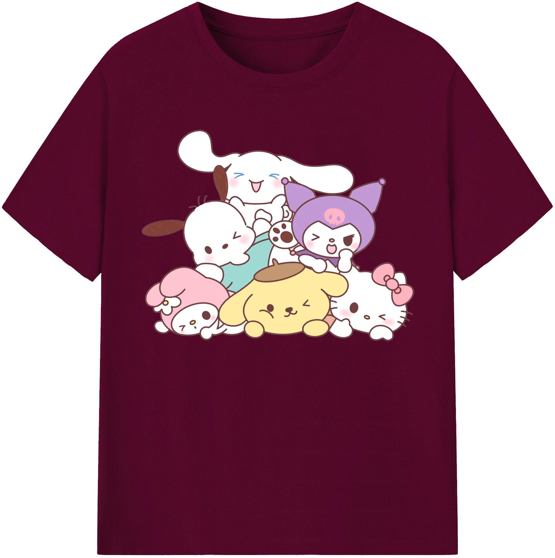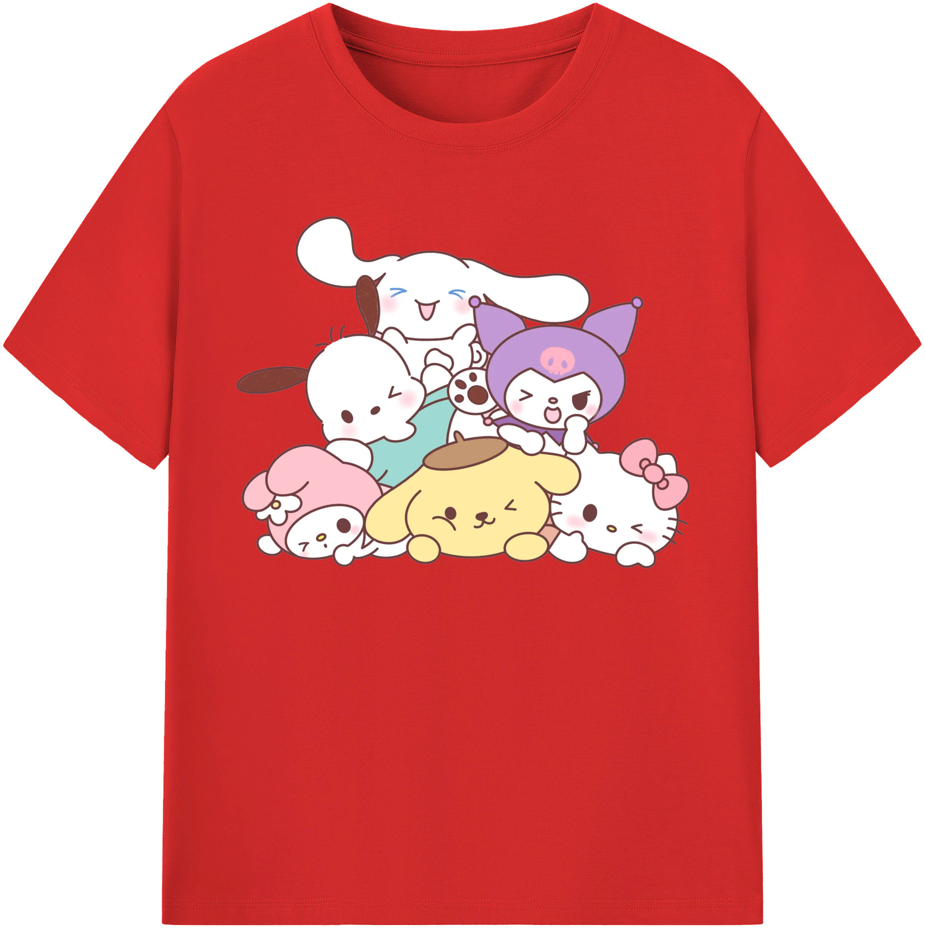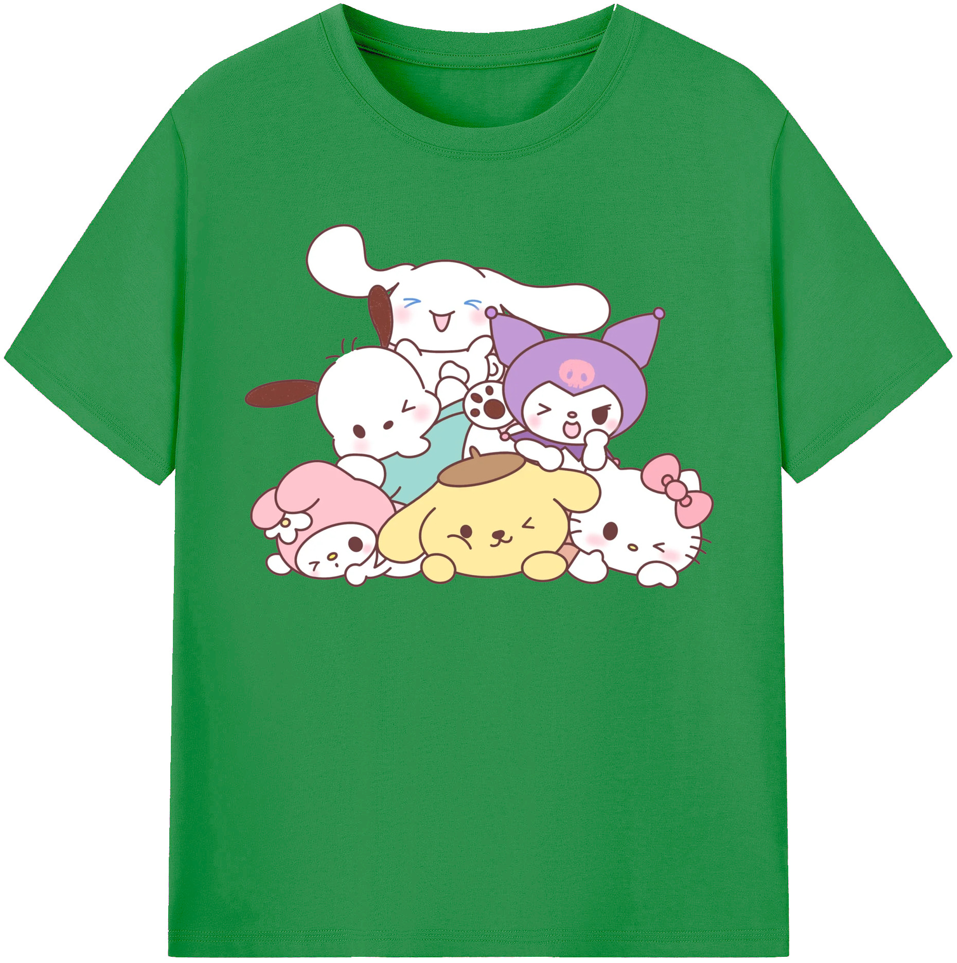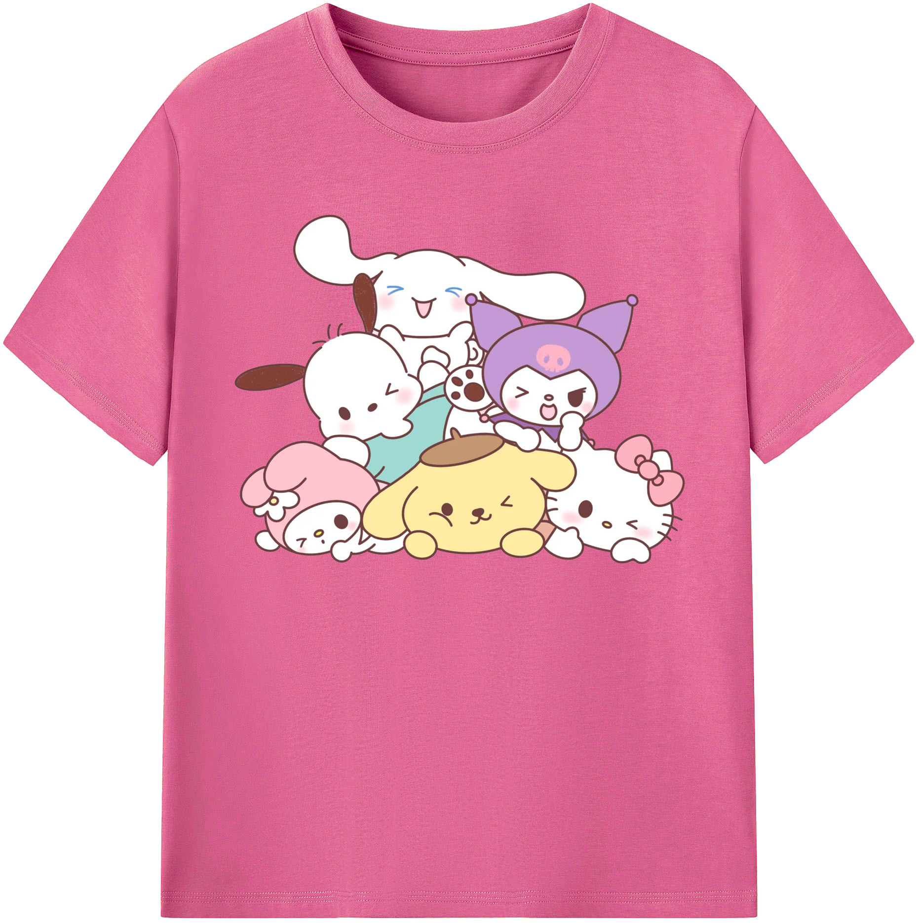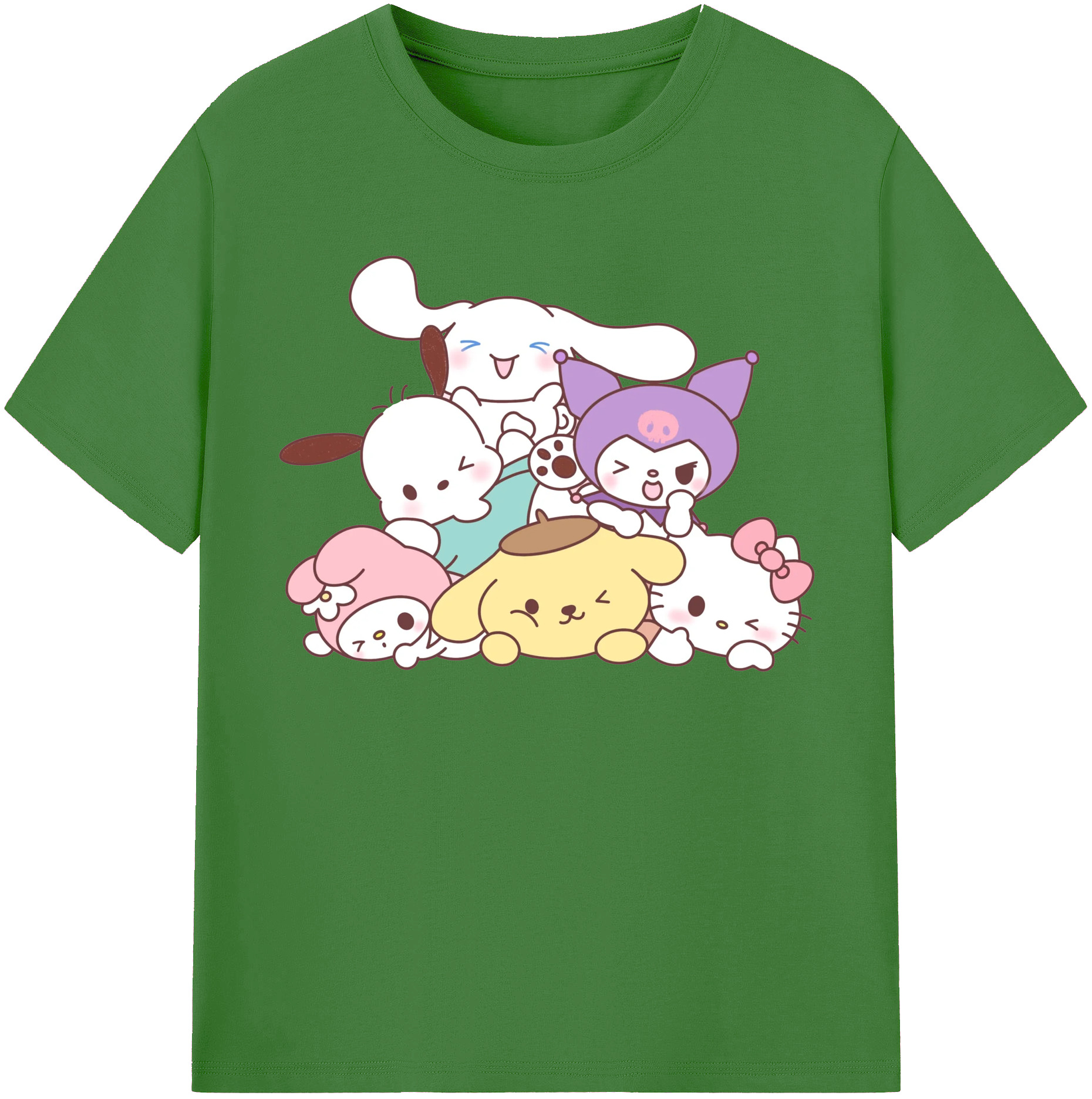 サンリオ - レディースカジュアルプリントTシャツ ・ 綿100% ・ クルーネック ・ フロントプリント ・ 柔らかく快適 ・ フィットネス カジュアル 旅行用