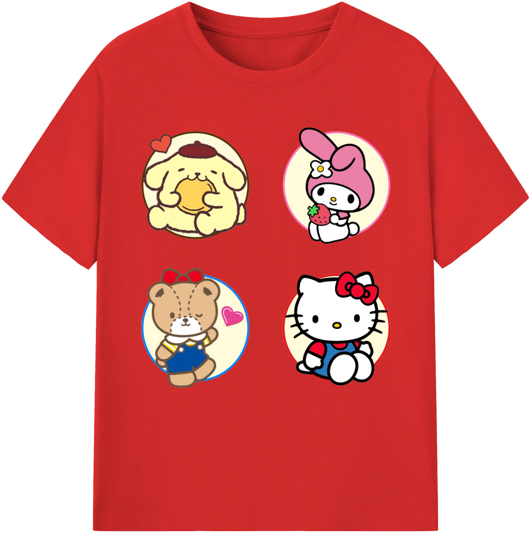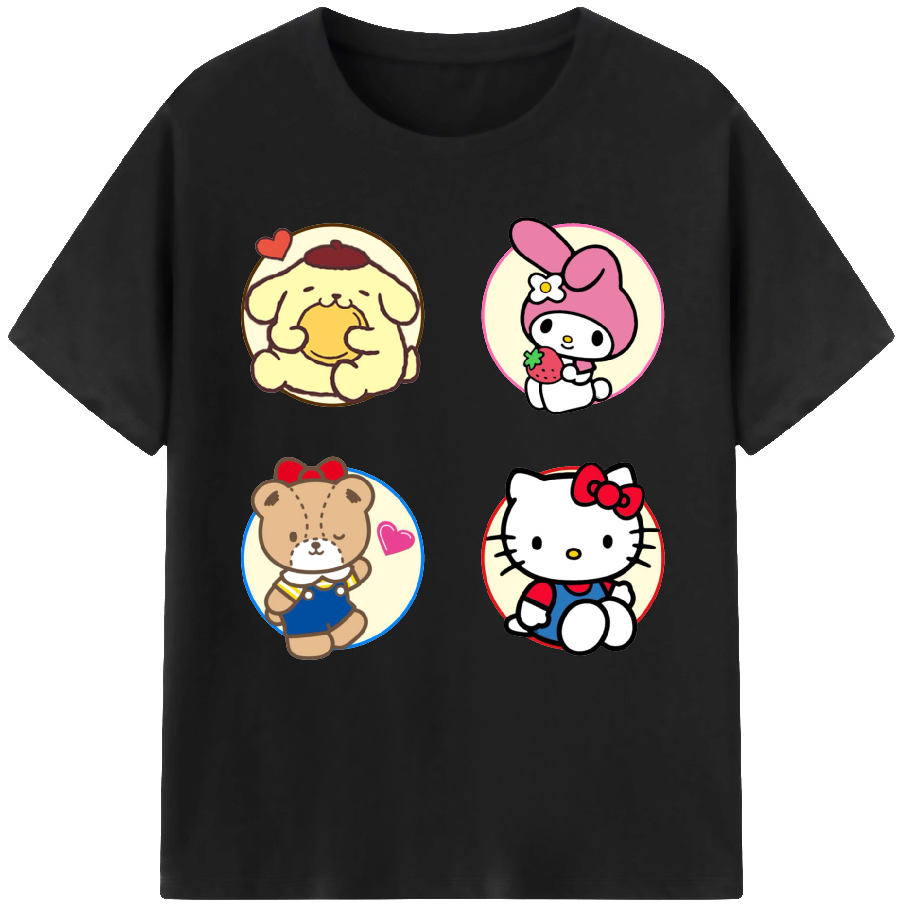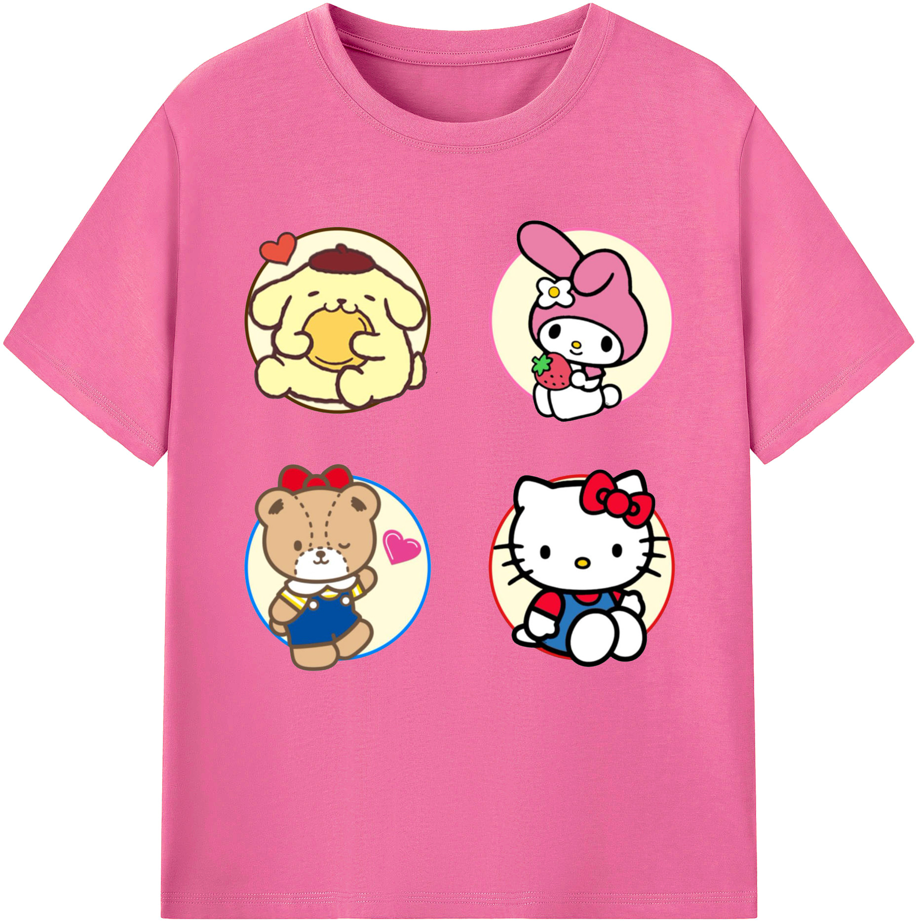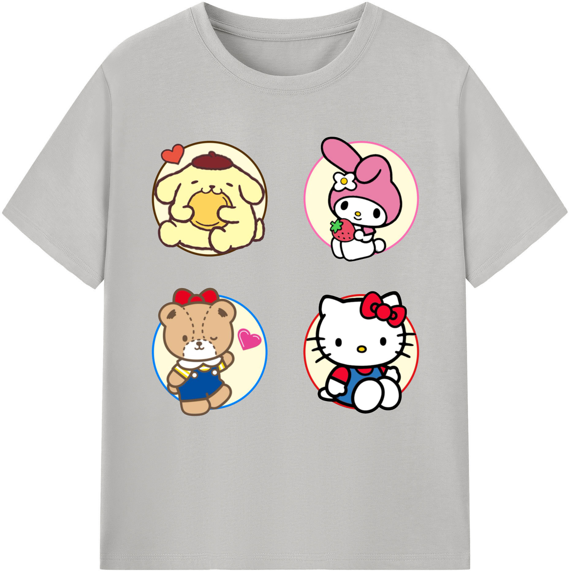 サンリオ - レディースカジュアルプリントTシャツ ・ 綿100% ・ クルーネック ・ フロントプリント ・ 柔らかく快適 ・ フィットネス カジュアル 旅行用