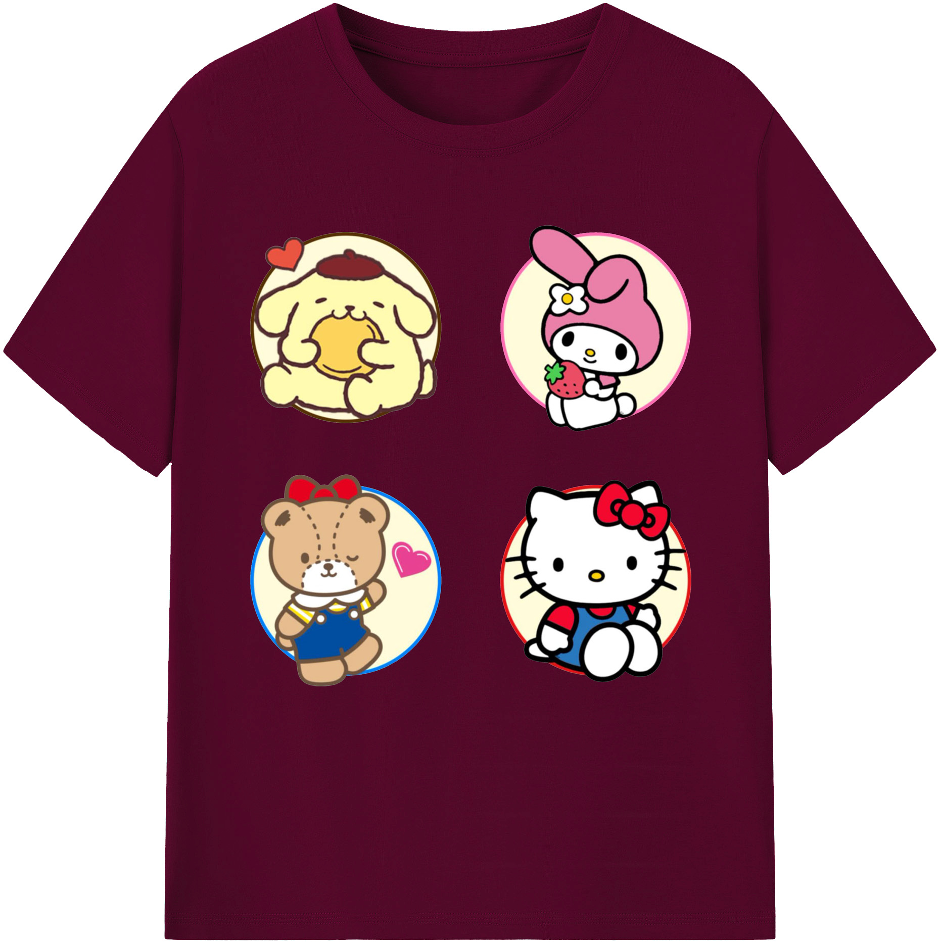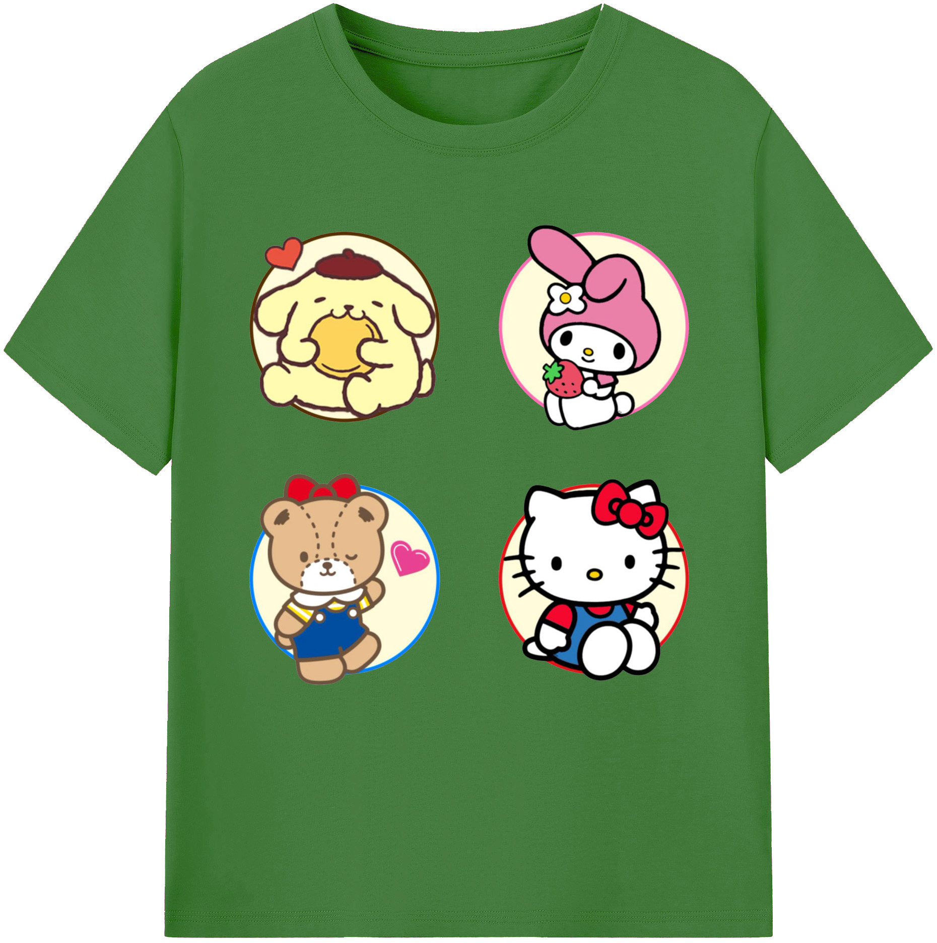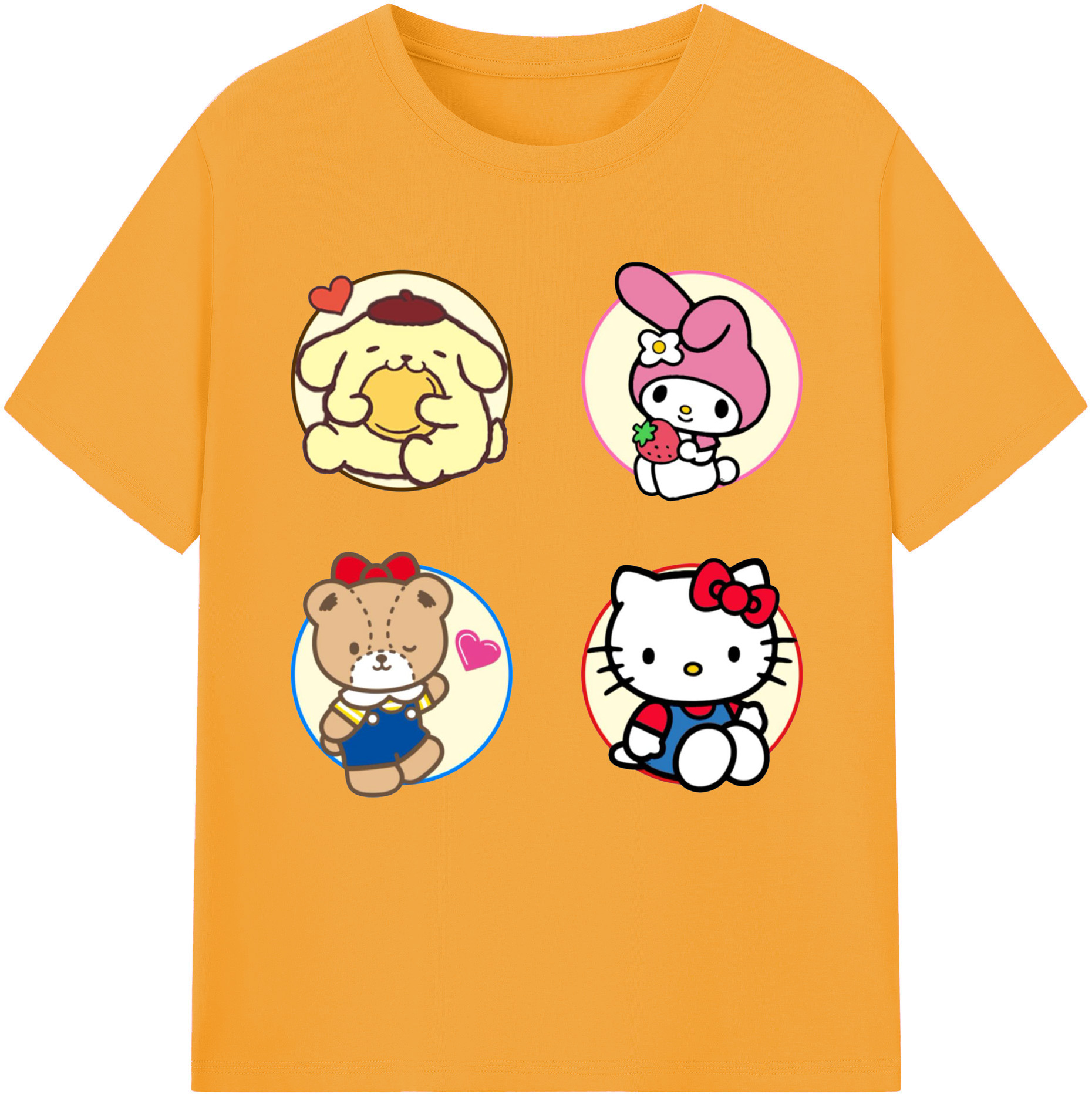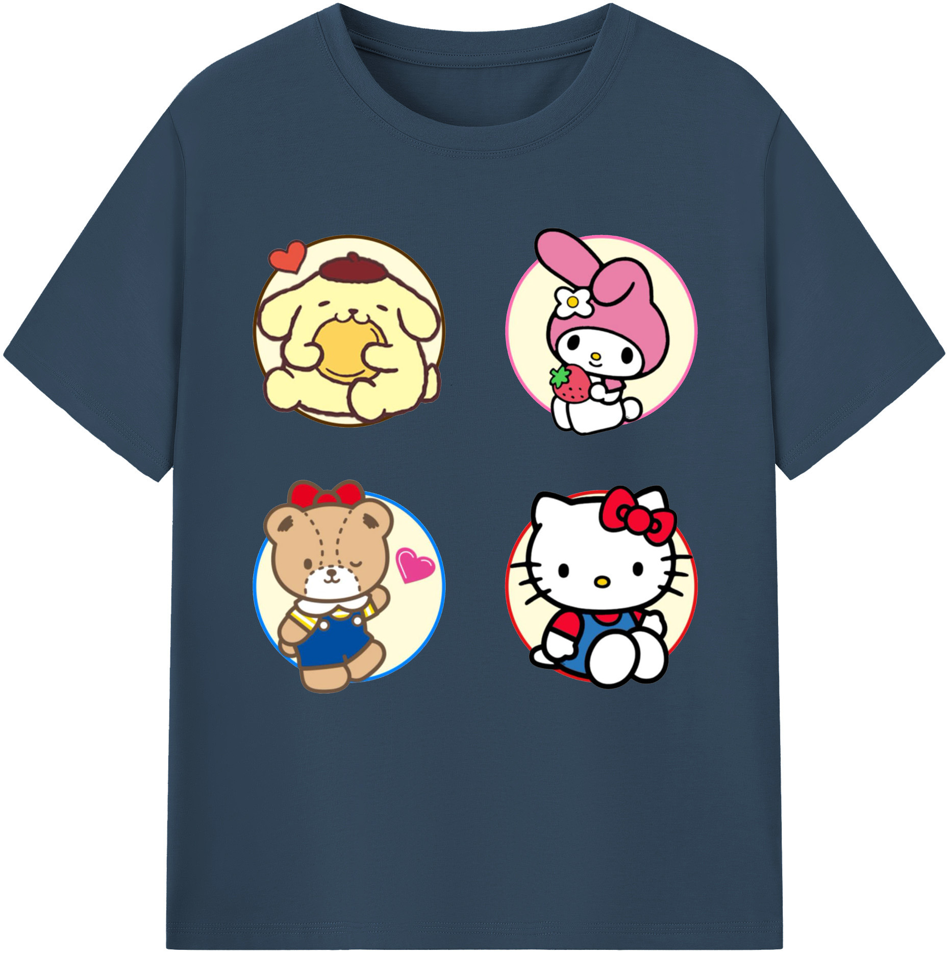 サンリオ - レディースカジュアルプリントTシャツ ・ 綿100% ・ クルーネック ・ フロントプリント ・ 柔らかく快適 ・ フィットネス カジュアル 旅行用