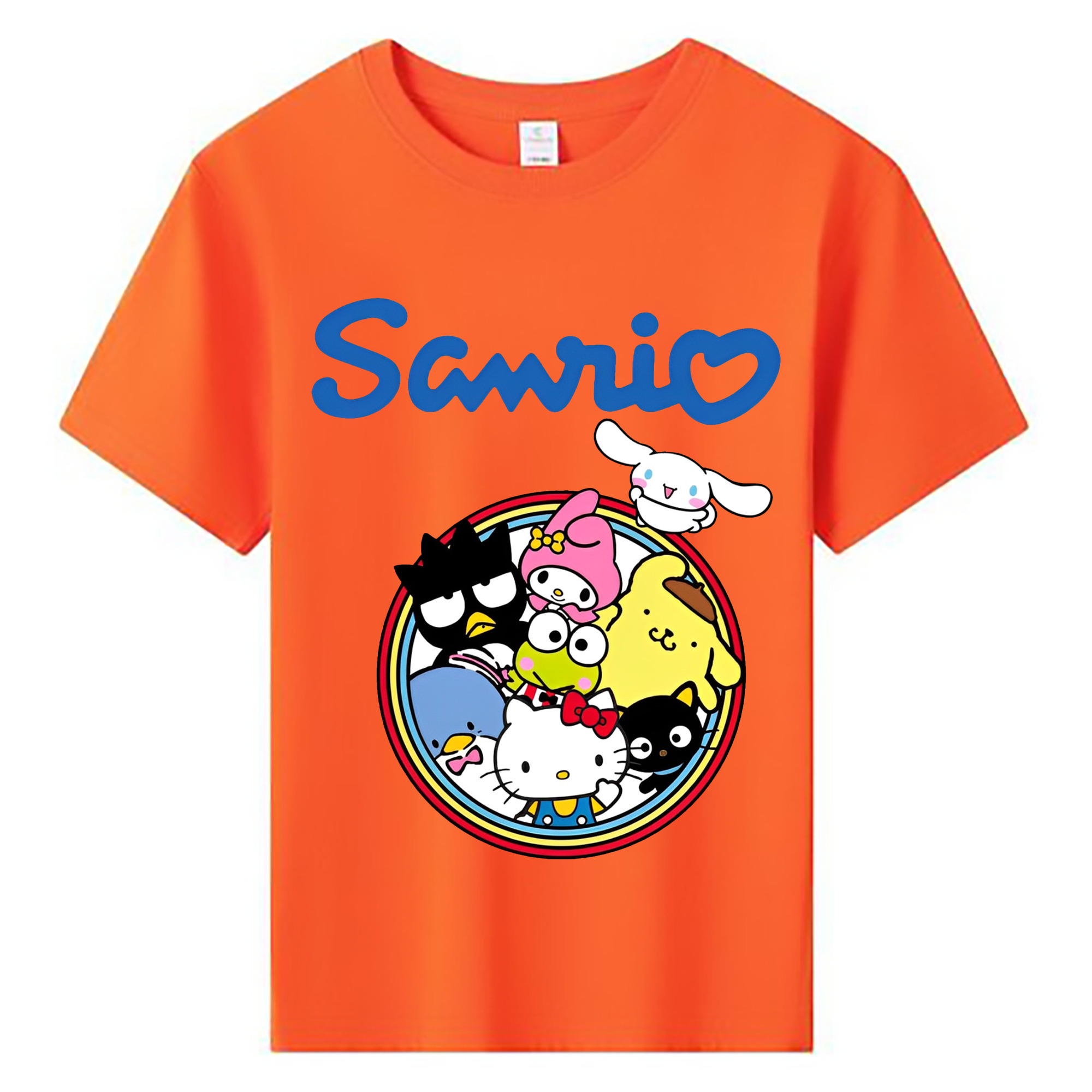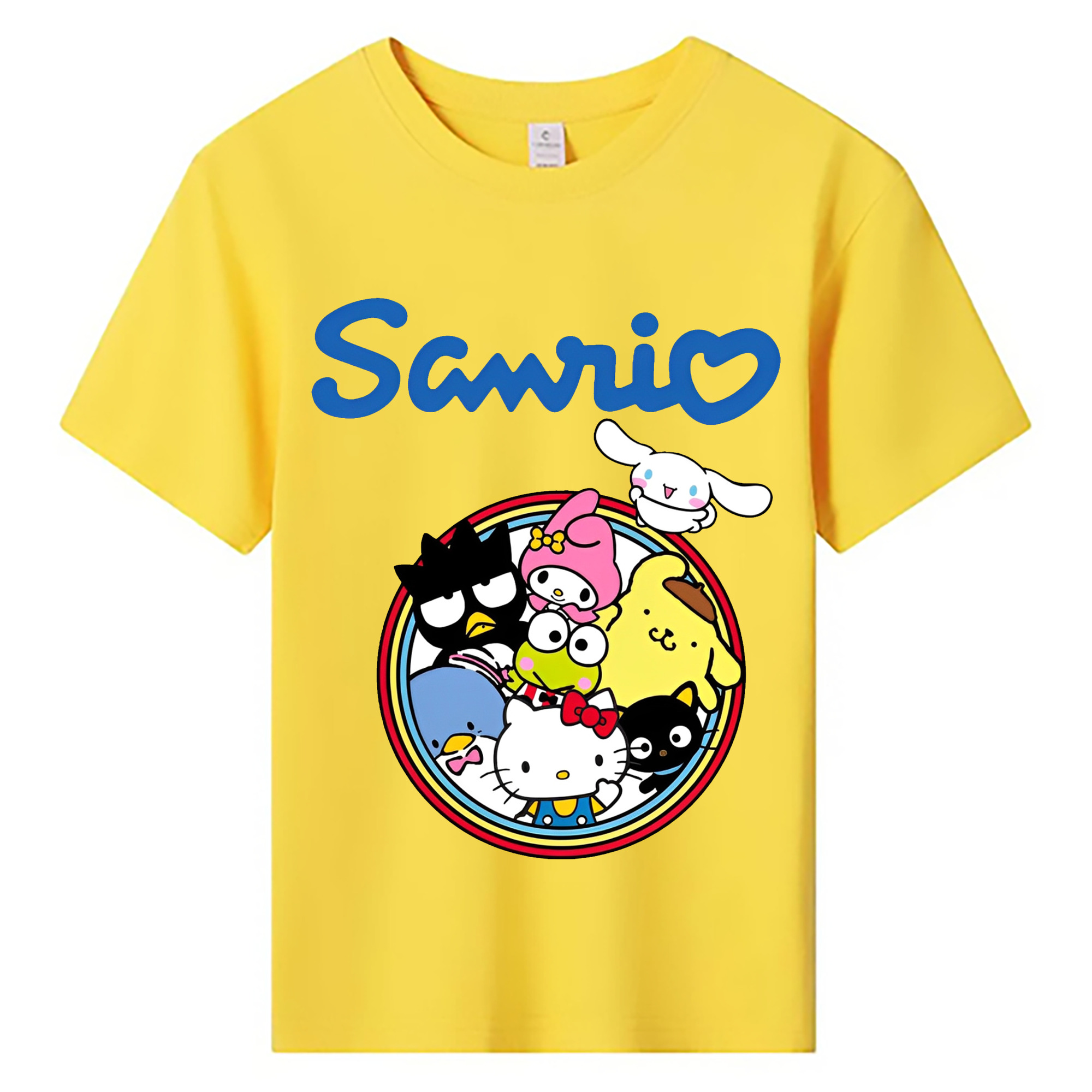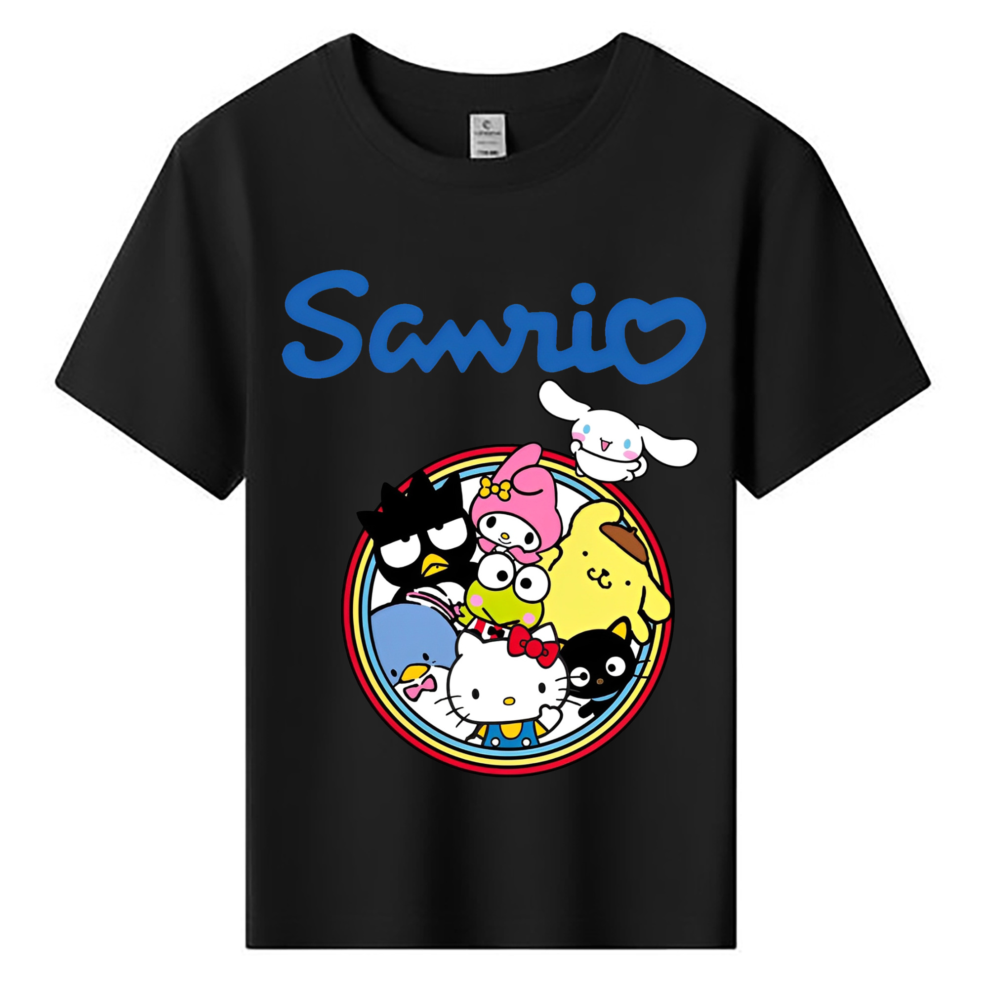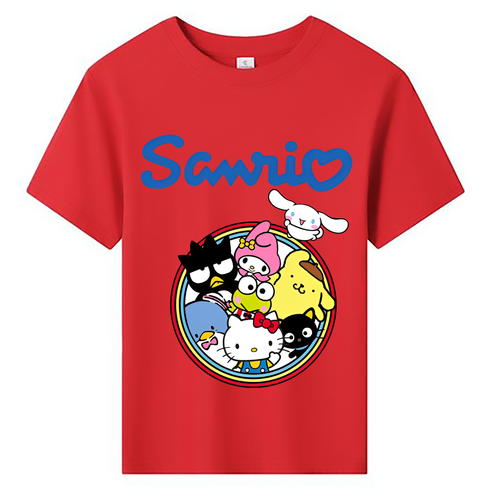 サンリオファミリー - 綿100% キッズTシャツ ・ フロントプリント ・ 快適 通気性 ・ スポーツ カジュアル 散歩用