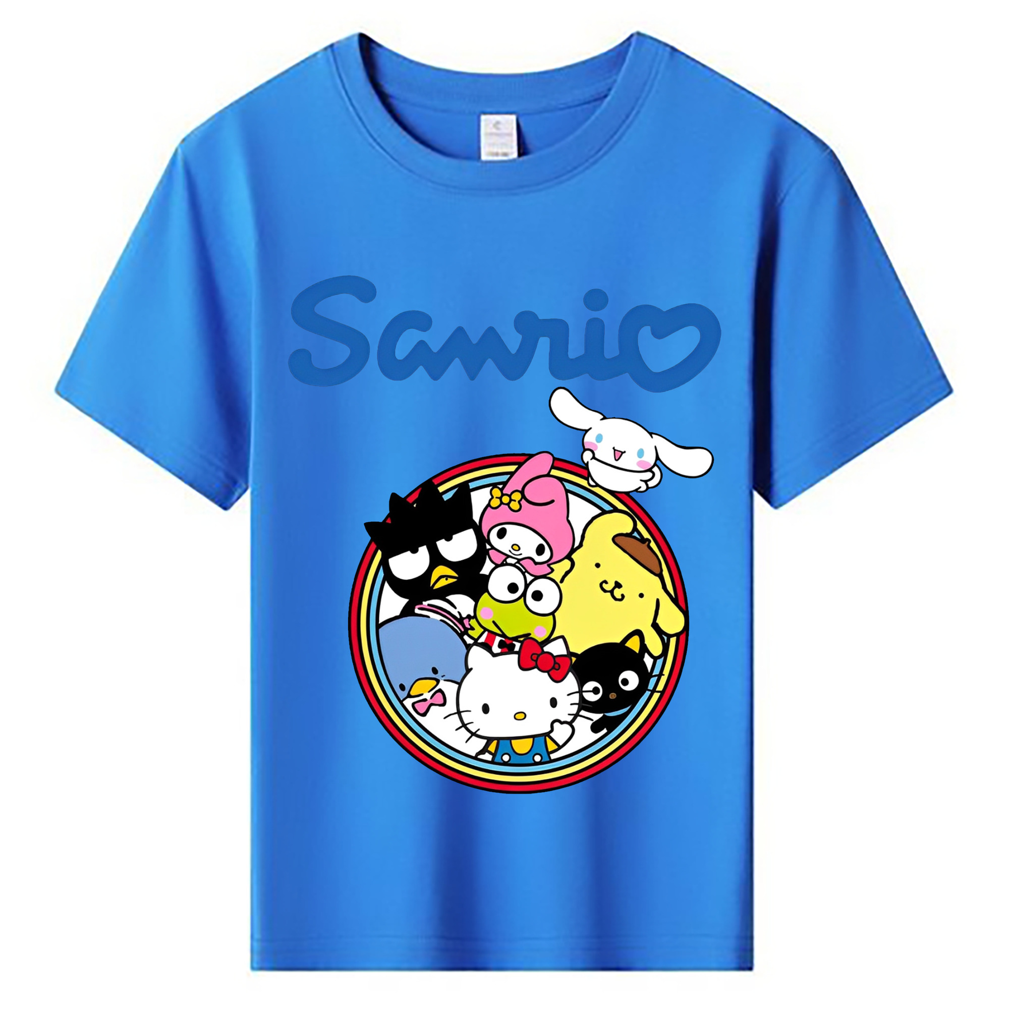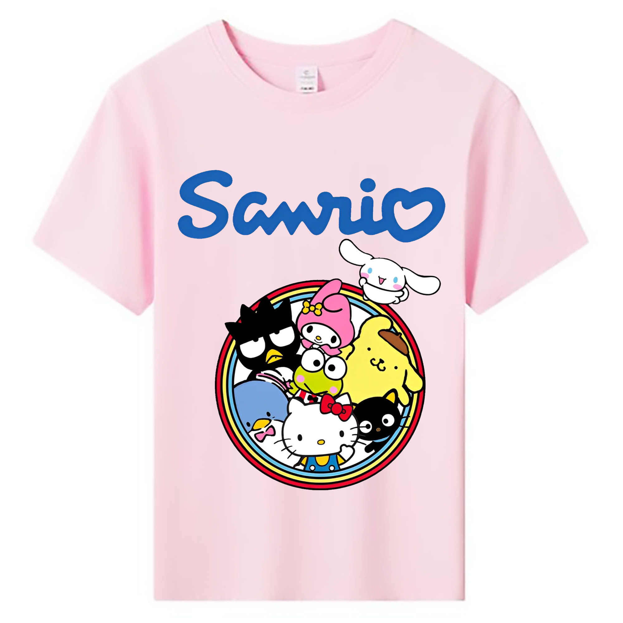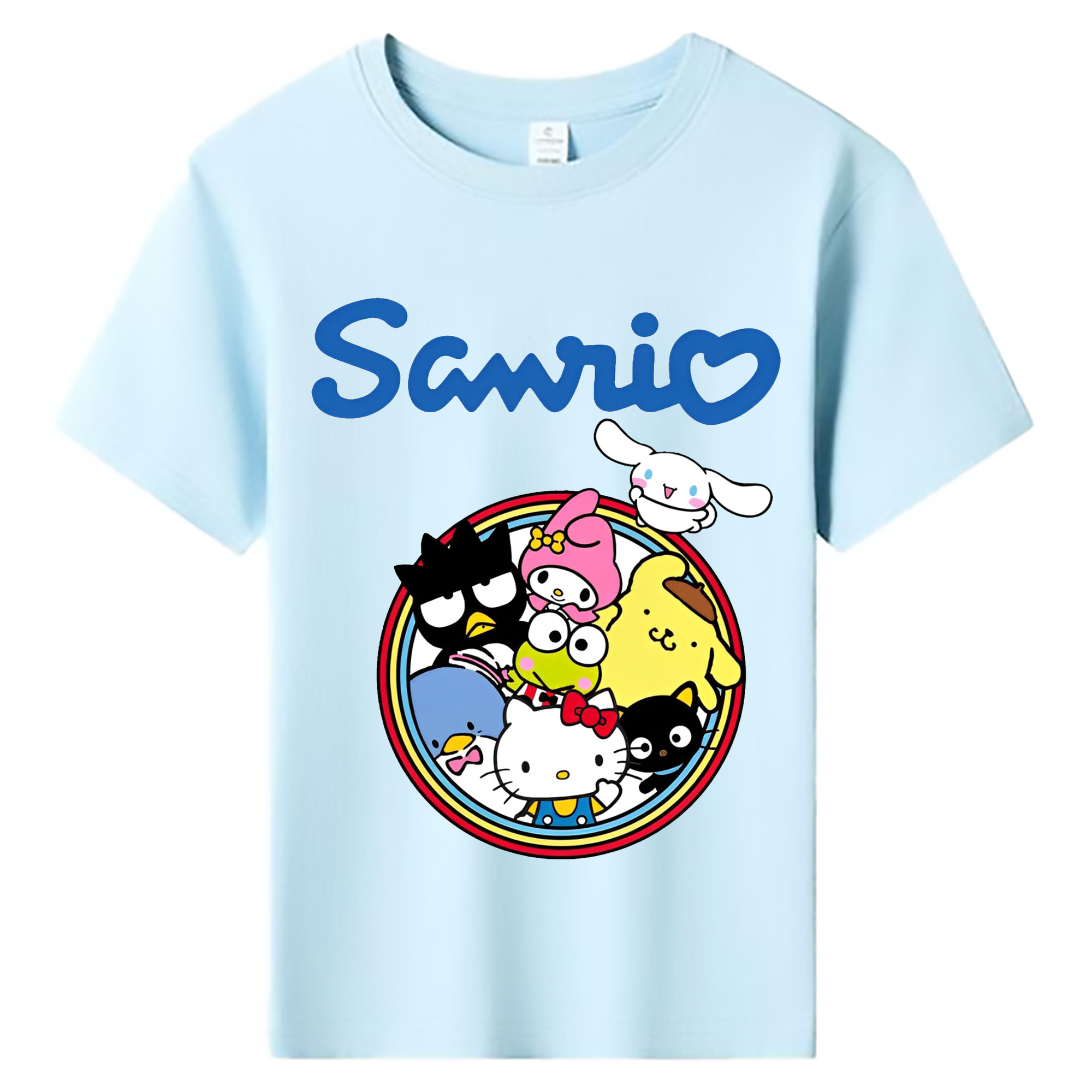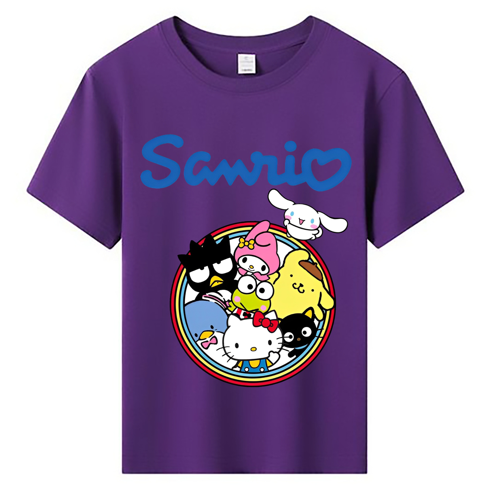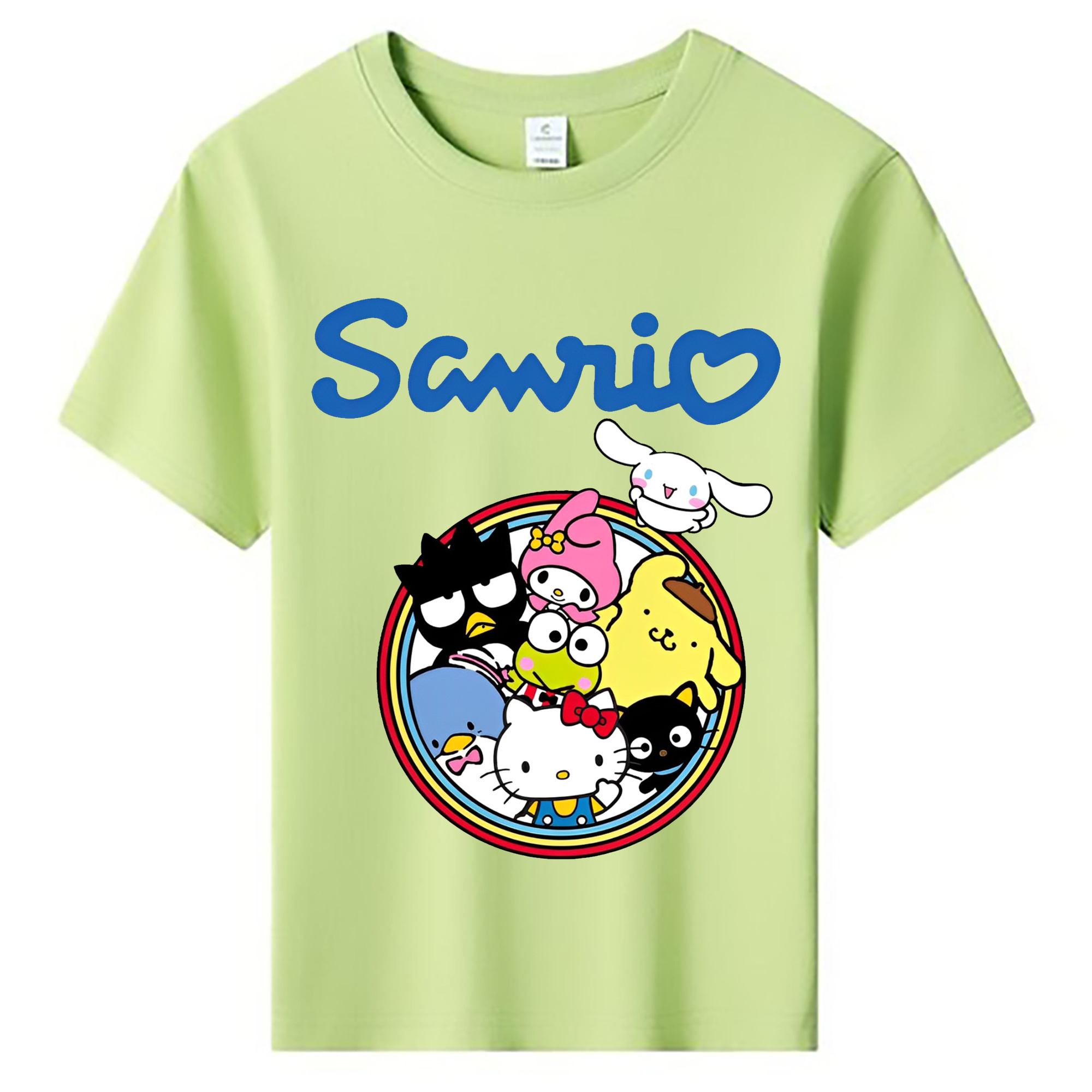 サンリオファミリー - 綿100% キッズTシャツ ・ フロントプリント ・ 快適 通気性 ・ スポーツ カジュアル 散歩用