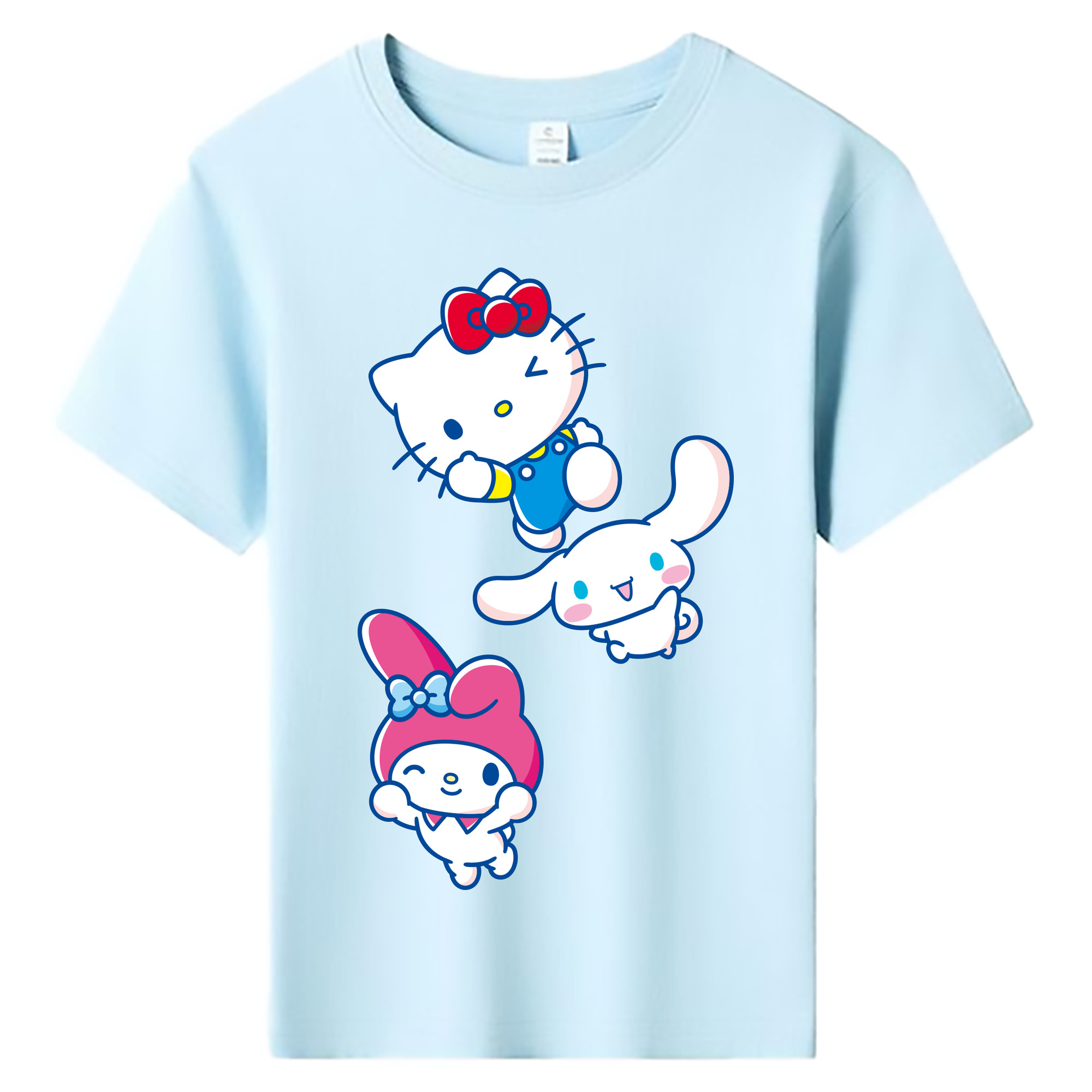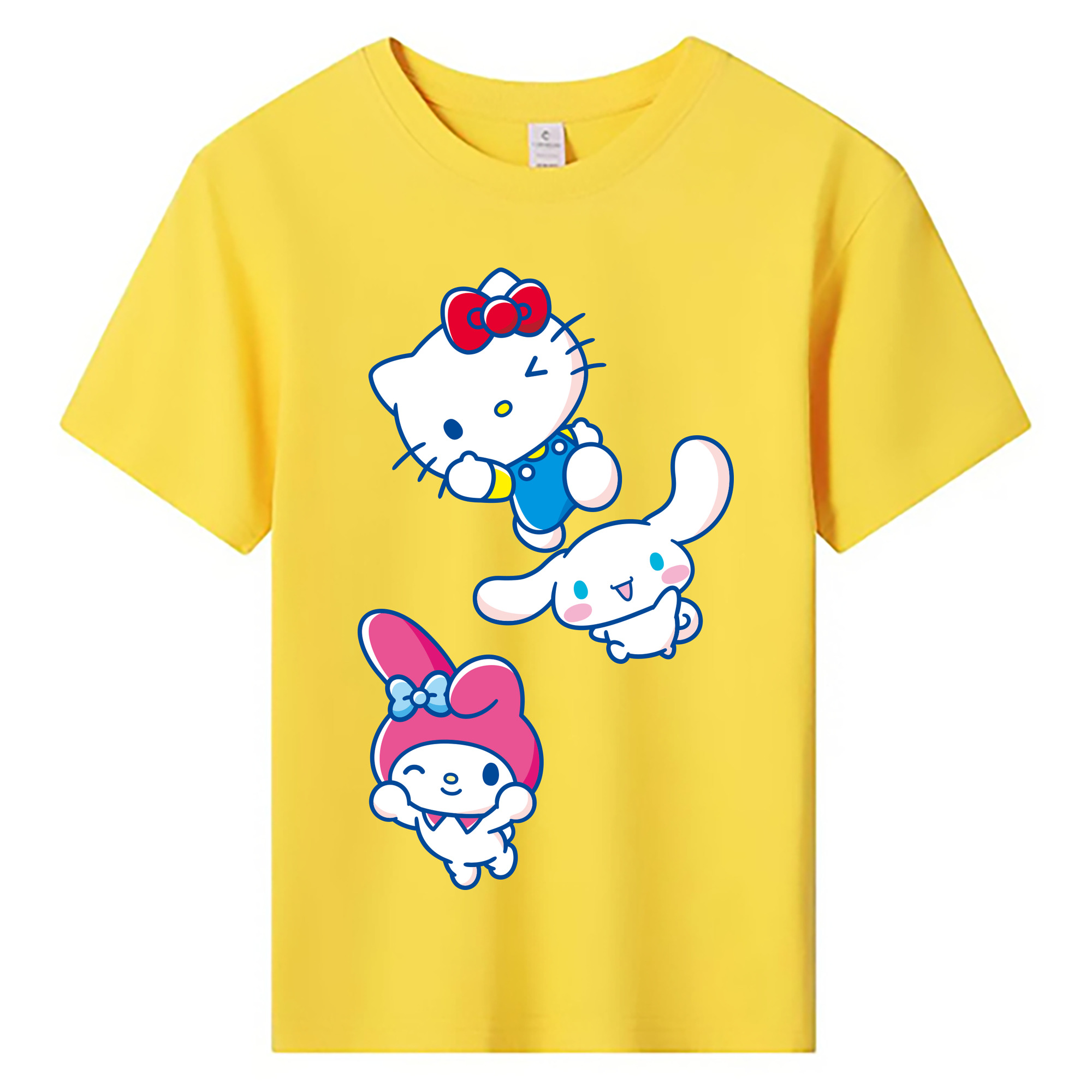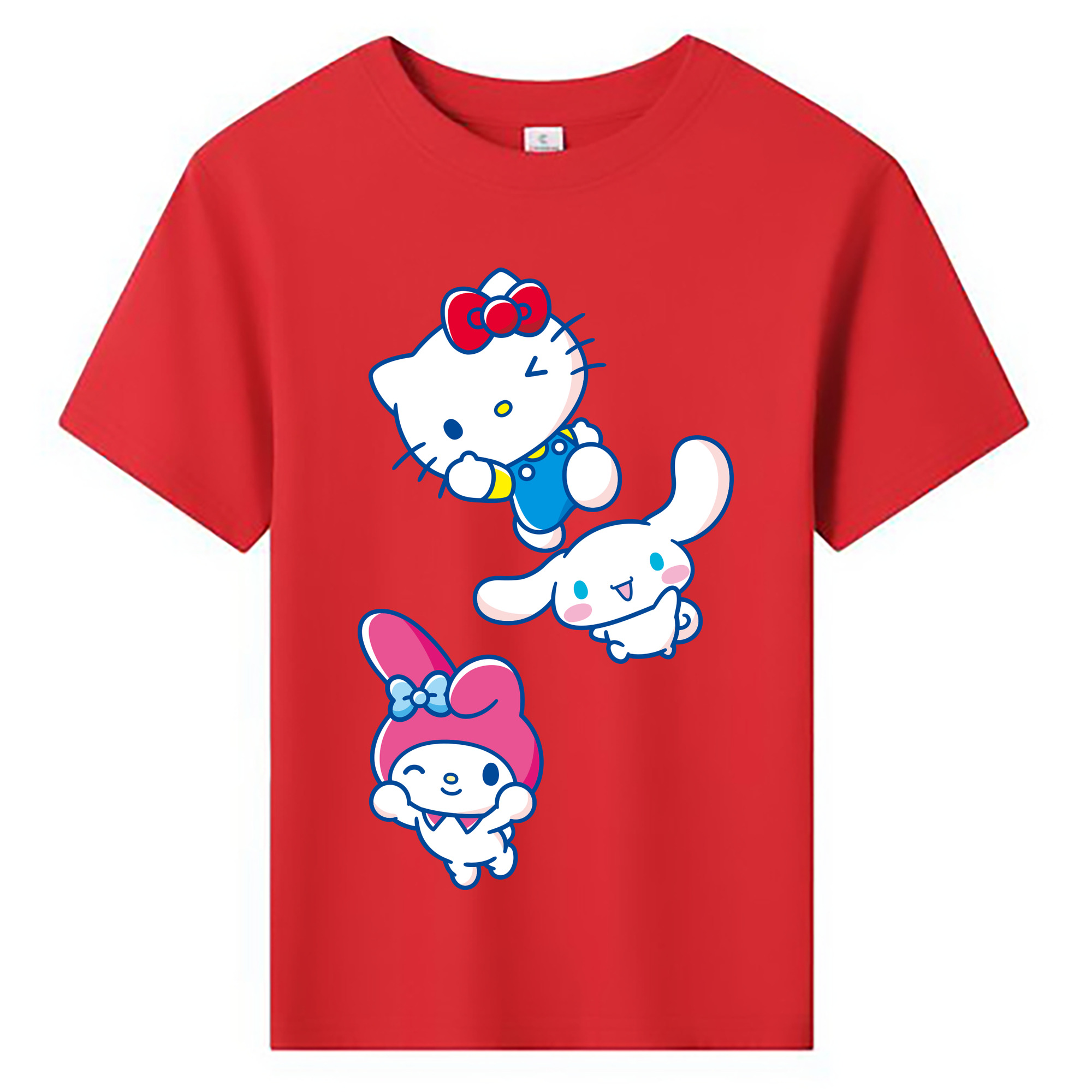 サンリオハローキティ - 綿100% キッズTシャツ ・ フロントプリント ・ 快適 通気性 ・ スポーツ カジュアル 散歩用