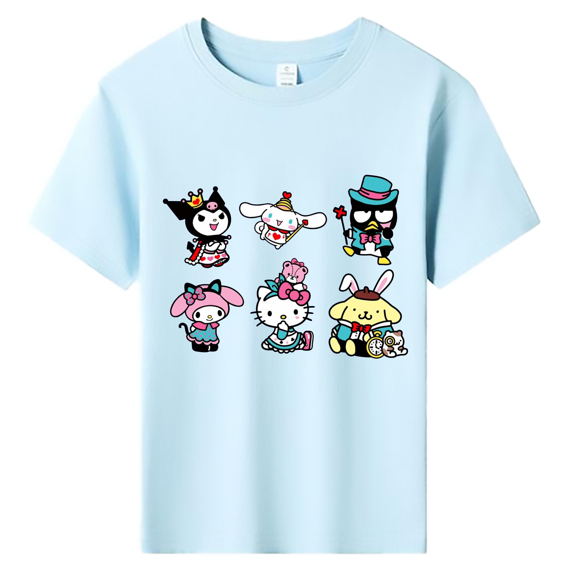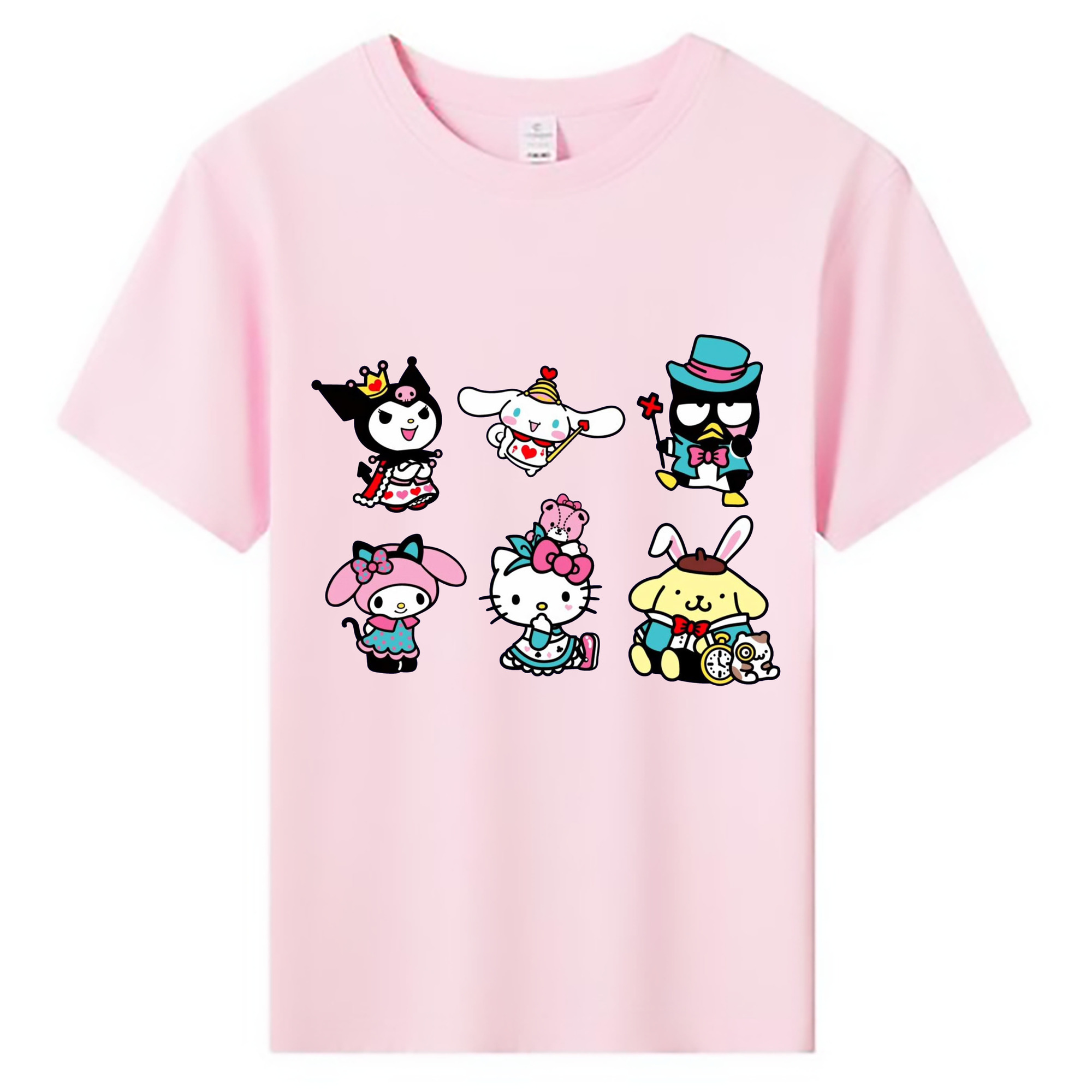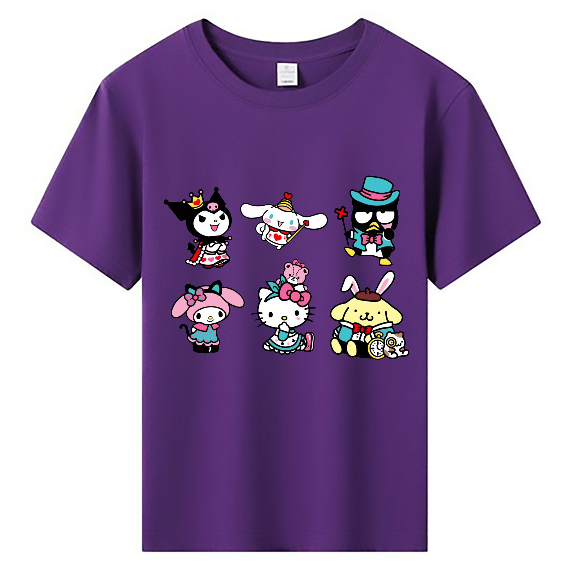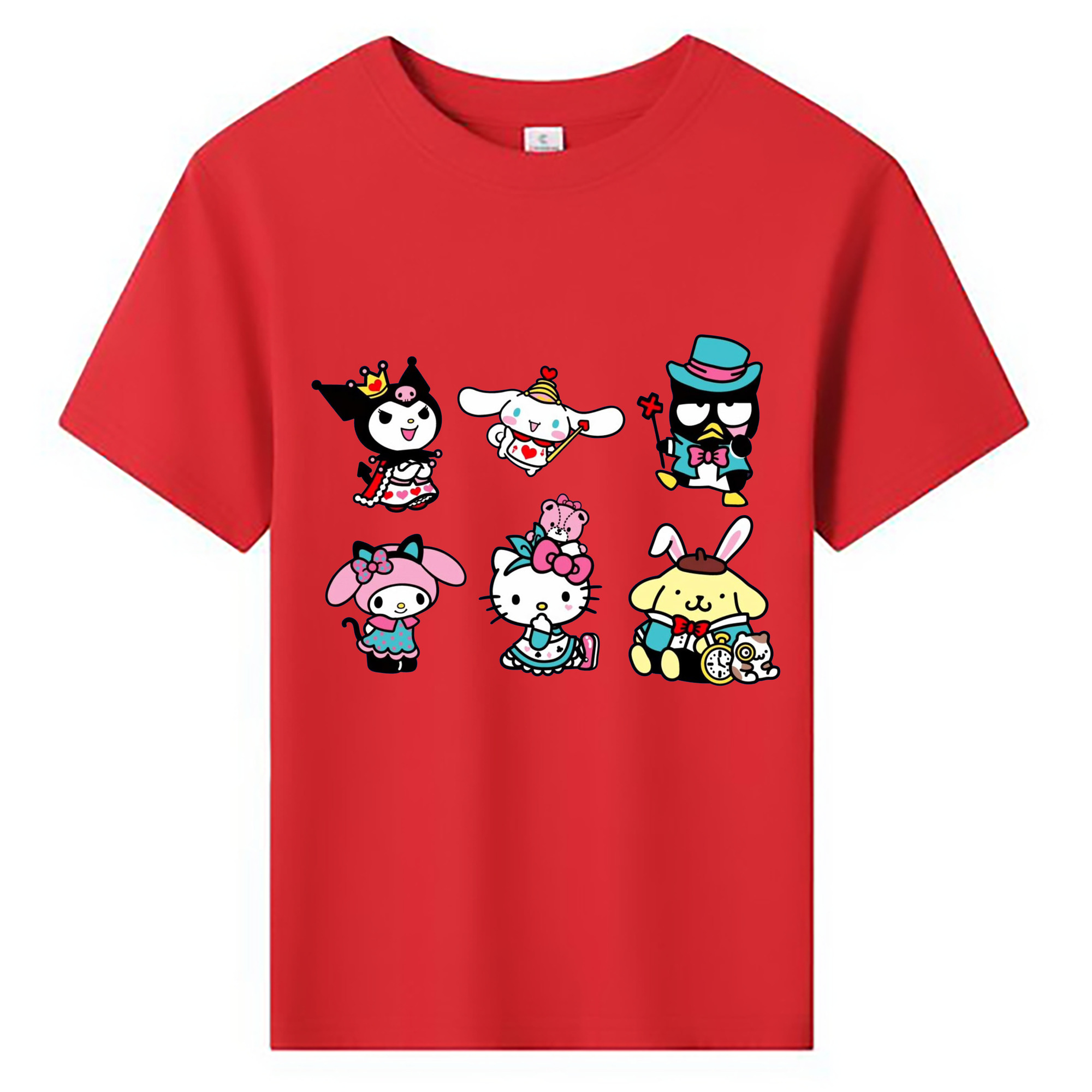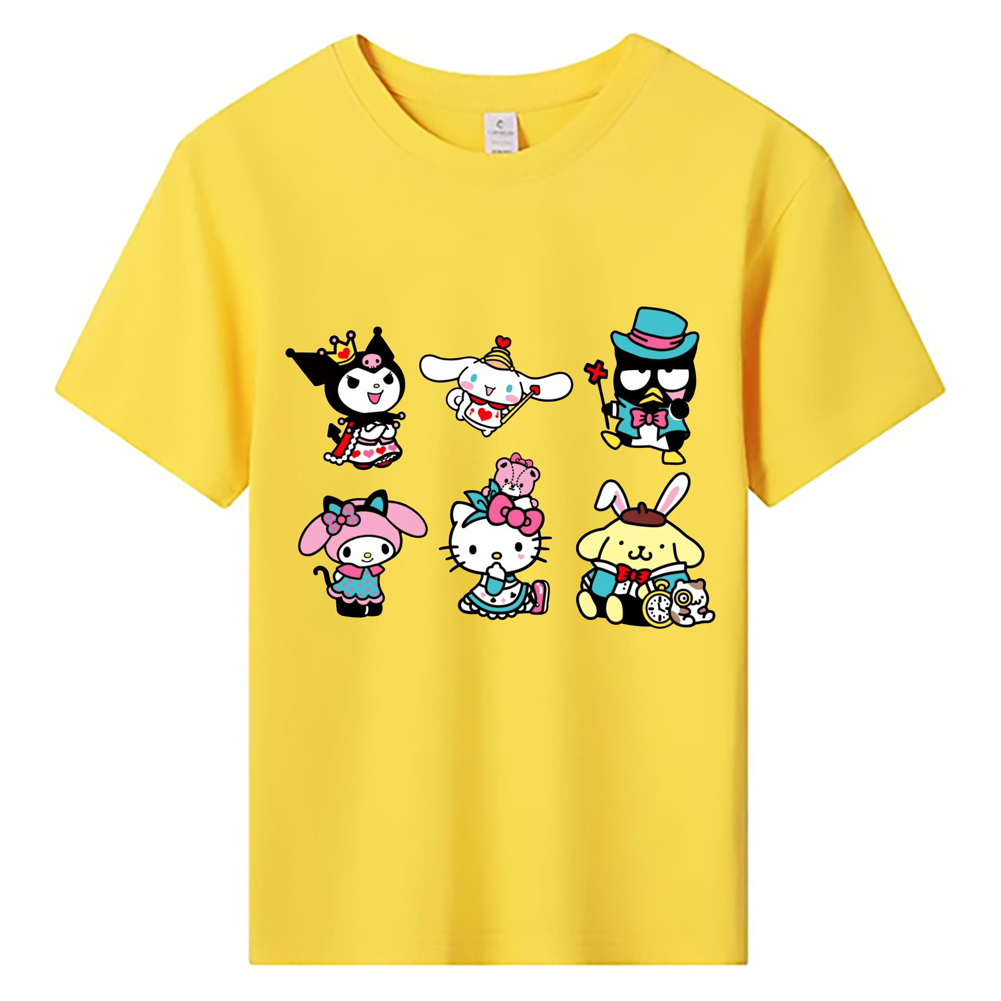 サンリオファミリー 2025年新作 - 綿100% キッズTシャツ ・ フロントプリント ・ 快適 通気性 ・ スポーツ カジュアル 散歩用