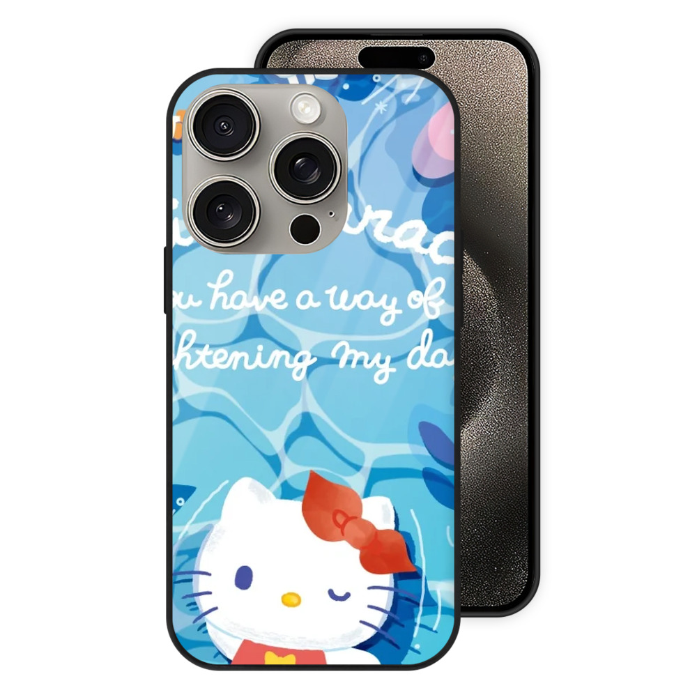 サンリオ - IPhone15Pro対応 ・ スマホケース ・ 背面ガラス ・ TPU+強化ガラス ・ 耐衝撃 ・ 黄変防止 ・ ワイヤレス充電対応 ・ 3D立体ボタン