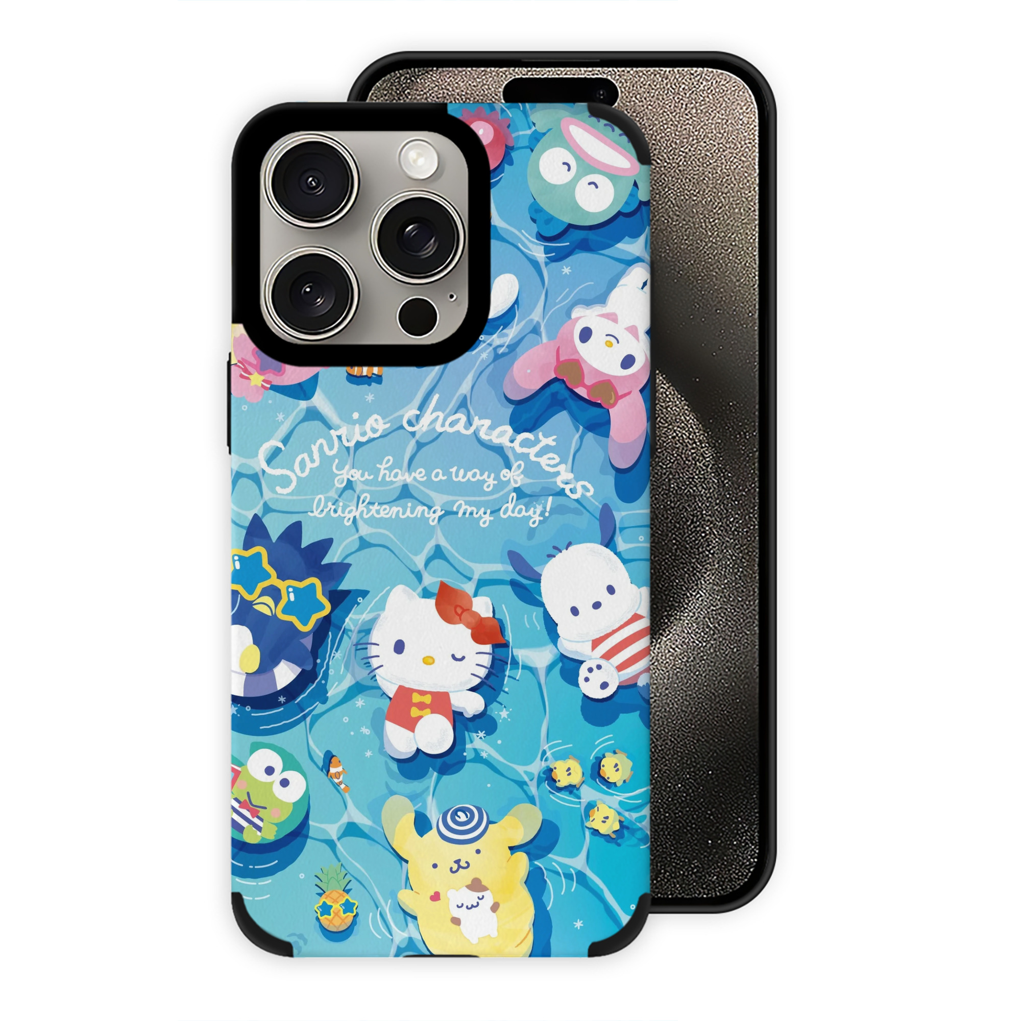 サンリオ - IPhone15ProMax対応 ・ PUレザースマホケース ・ 耐衝撃 ・ 黄変防止 ・ 360度全面保護 ・ 柔らか手触り ・ 3D立体ボタン