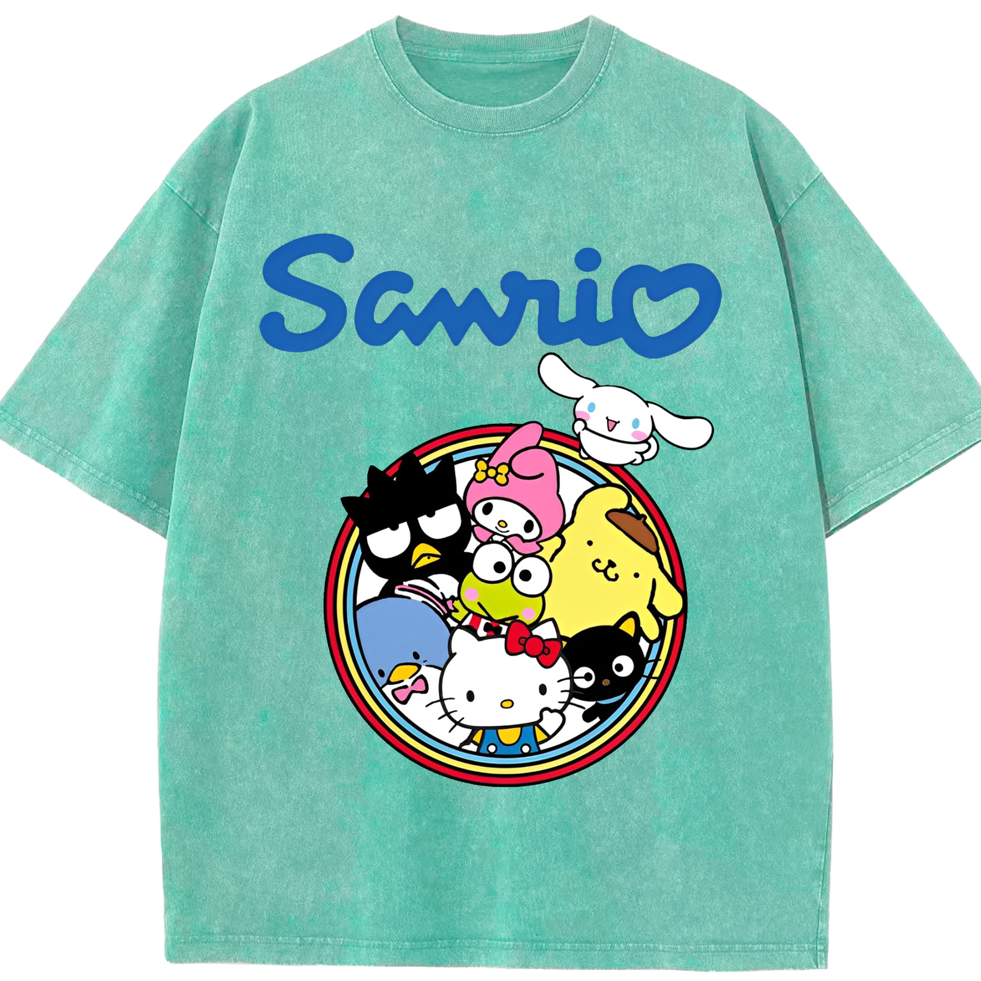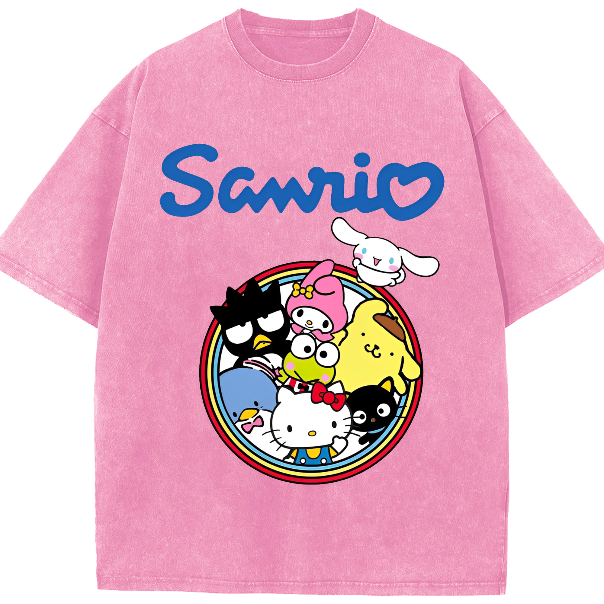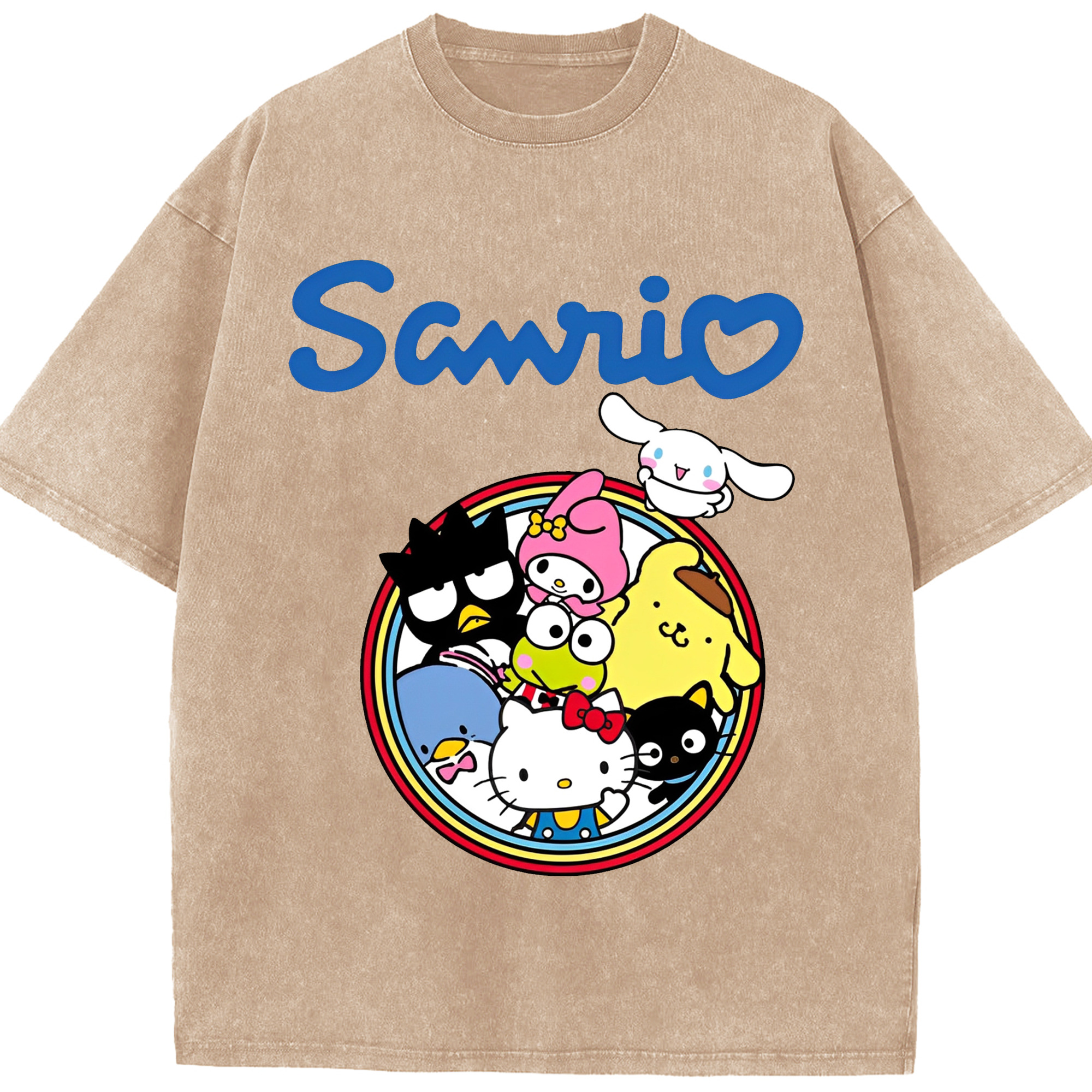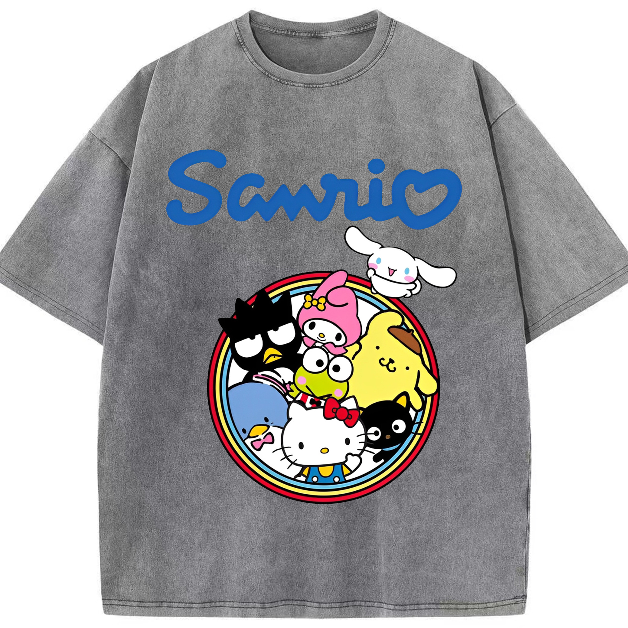 スタイリッシュでクール!サンリオファミリー - 綿100% ヴィンテージ風 半袖Tシャツ ・ フロントプリント ・ 柔らか肌触り ・ 通気性 快適 ・ スポーツ カジュアル 外出用