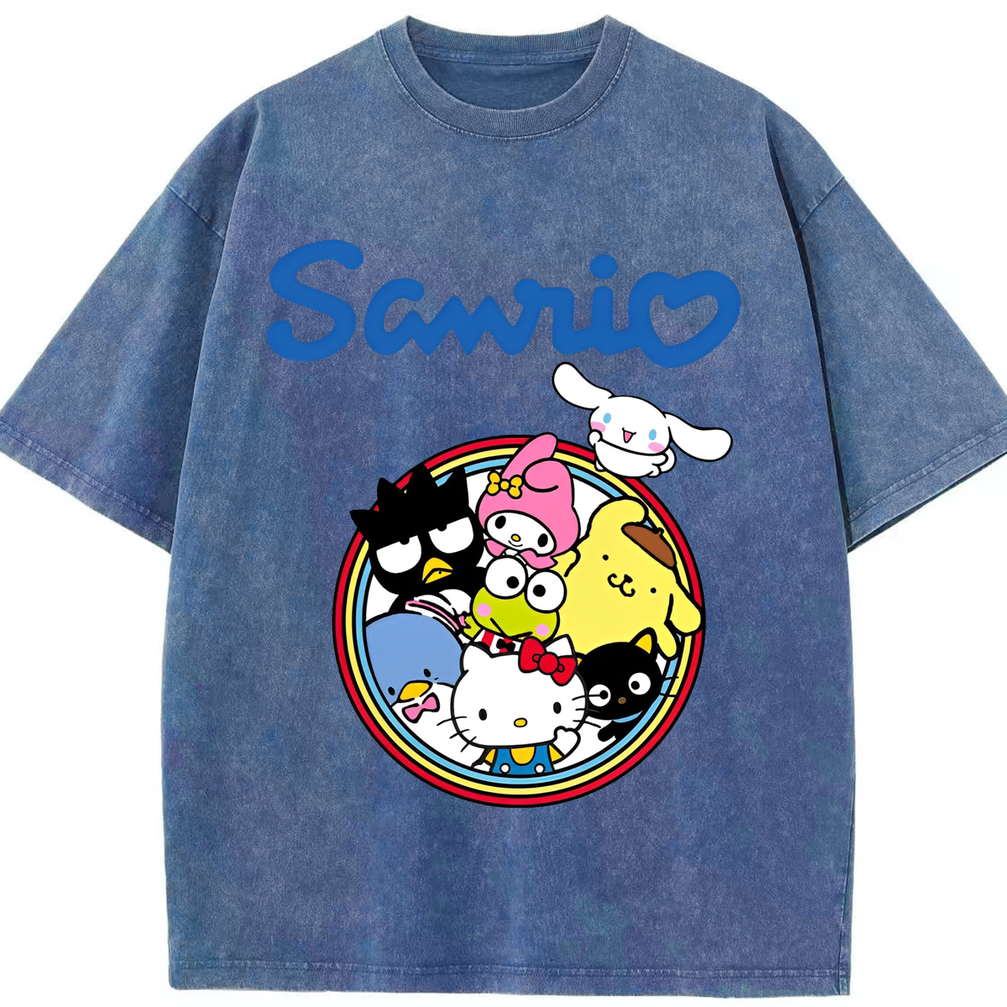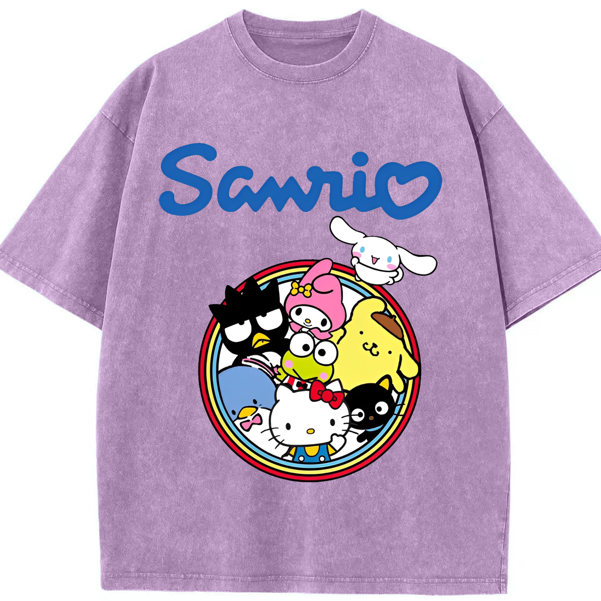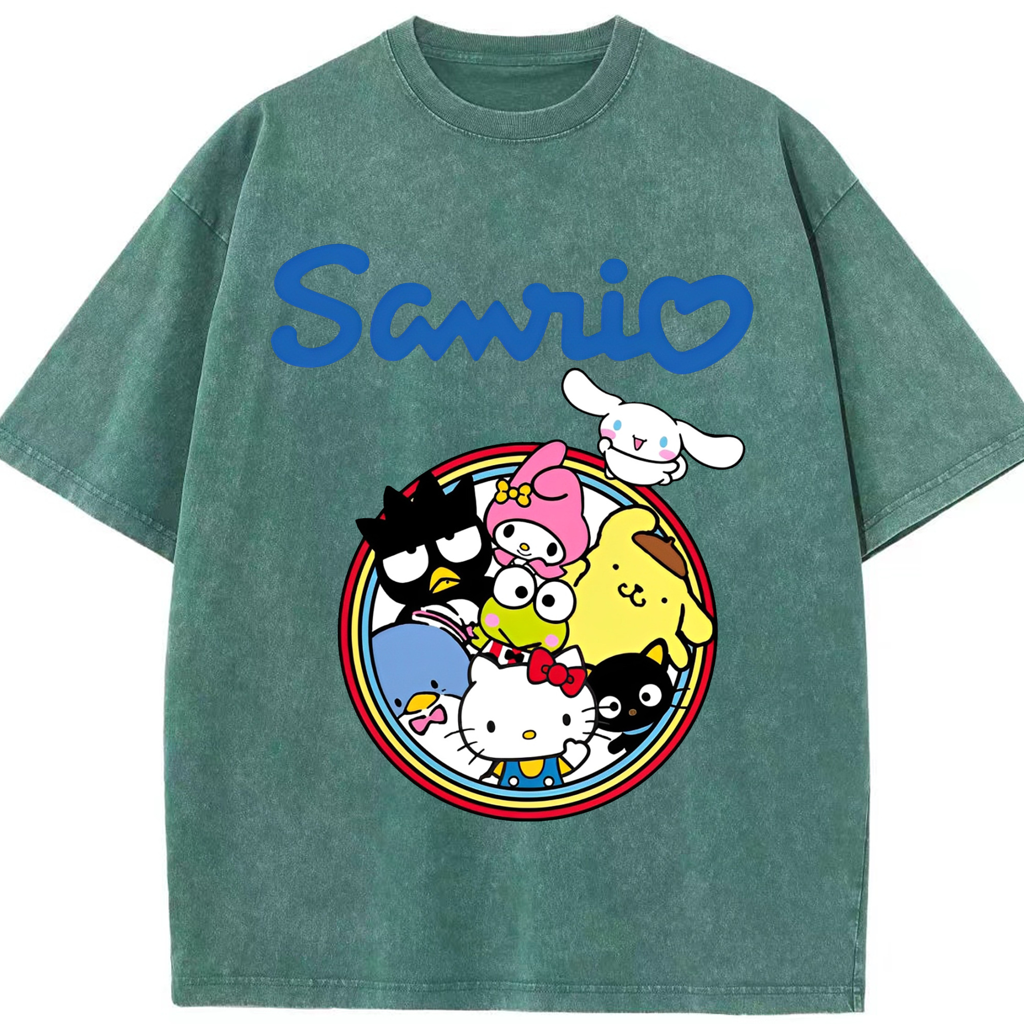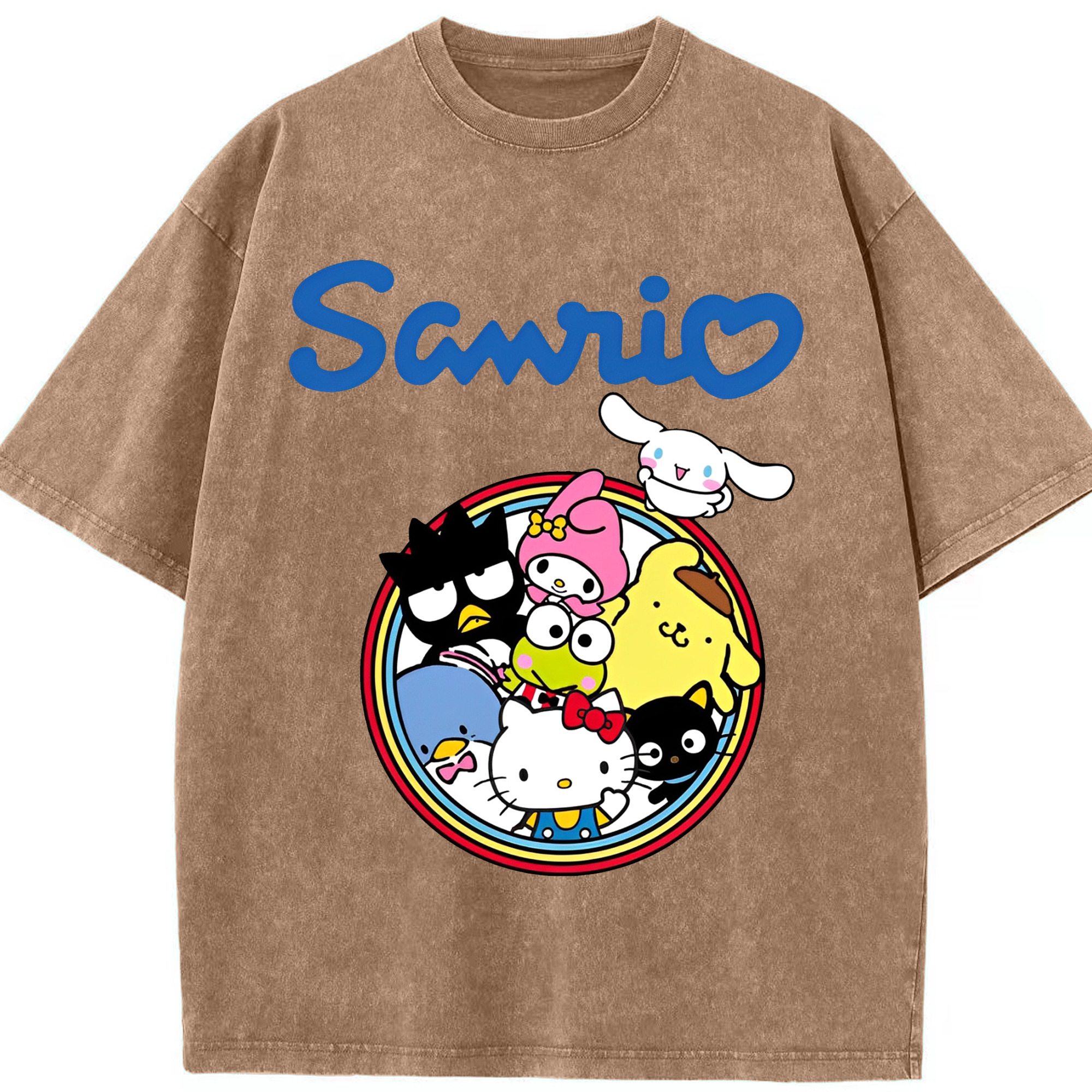 スタイリッシュでクール!サンリオファミリー - 綿100% ヴィンテージ風 半袖Tシャツ ・ フロントプリント ・ 柔らか肌触り ・ 通気性 快適 ・ スポーツ カジュアル 外出用
