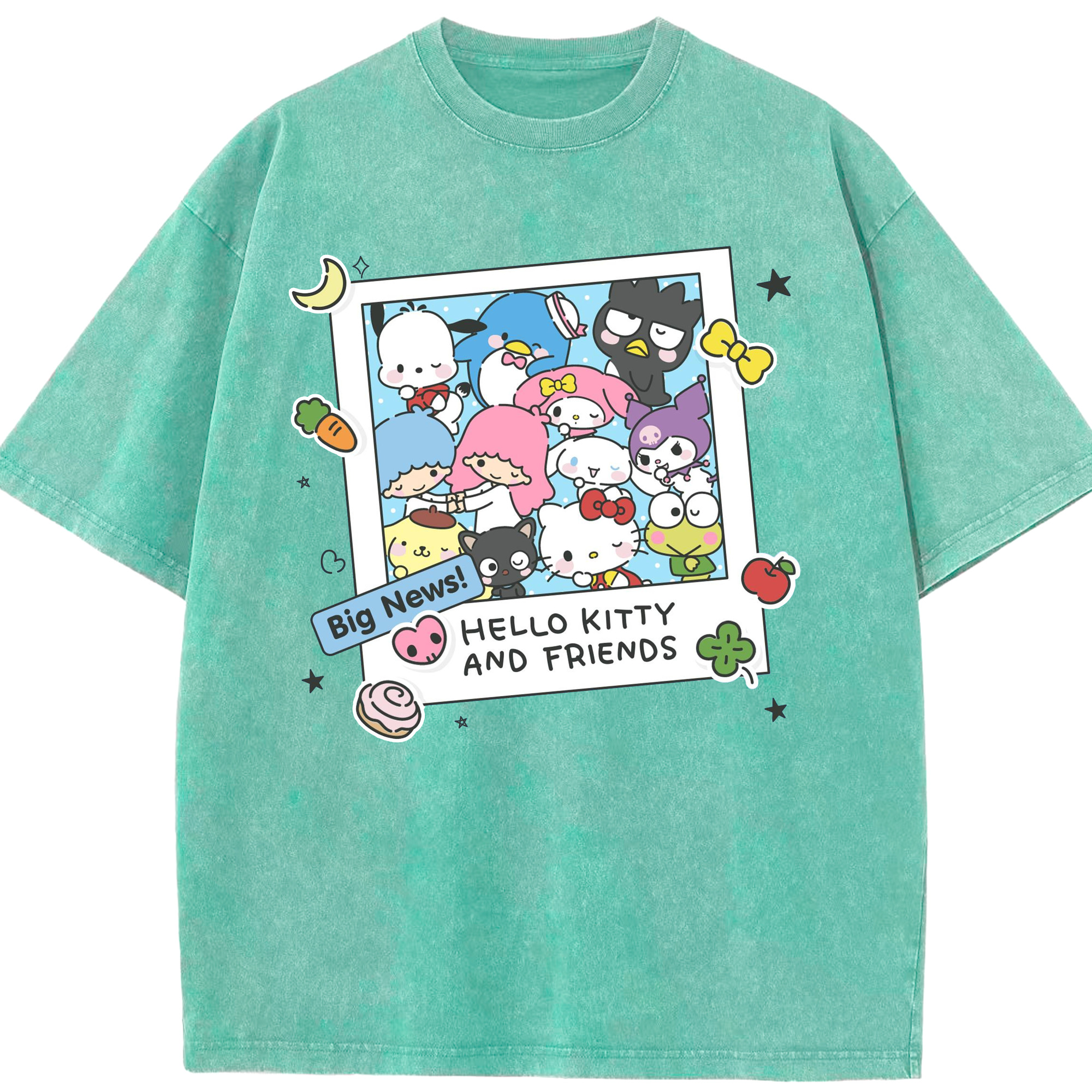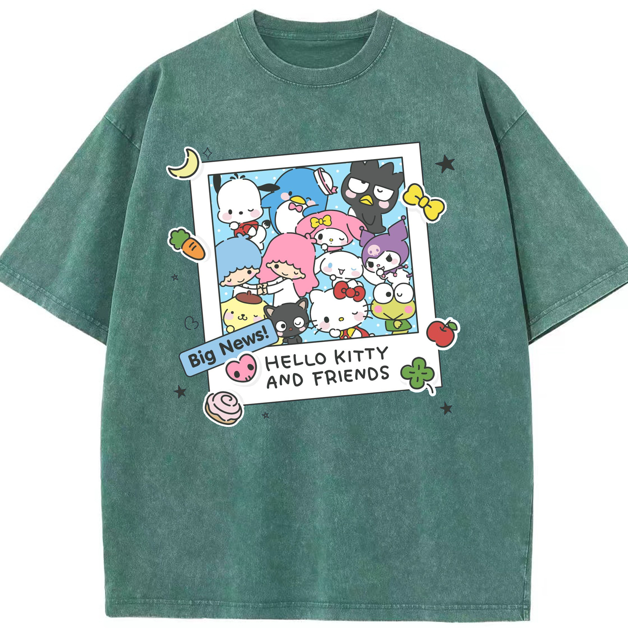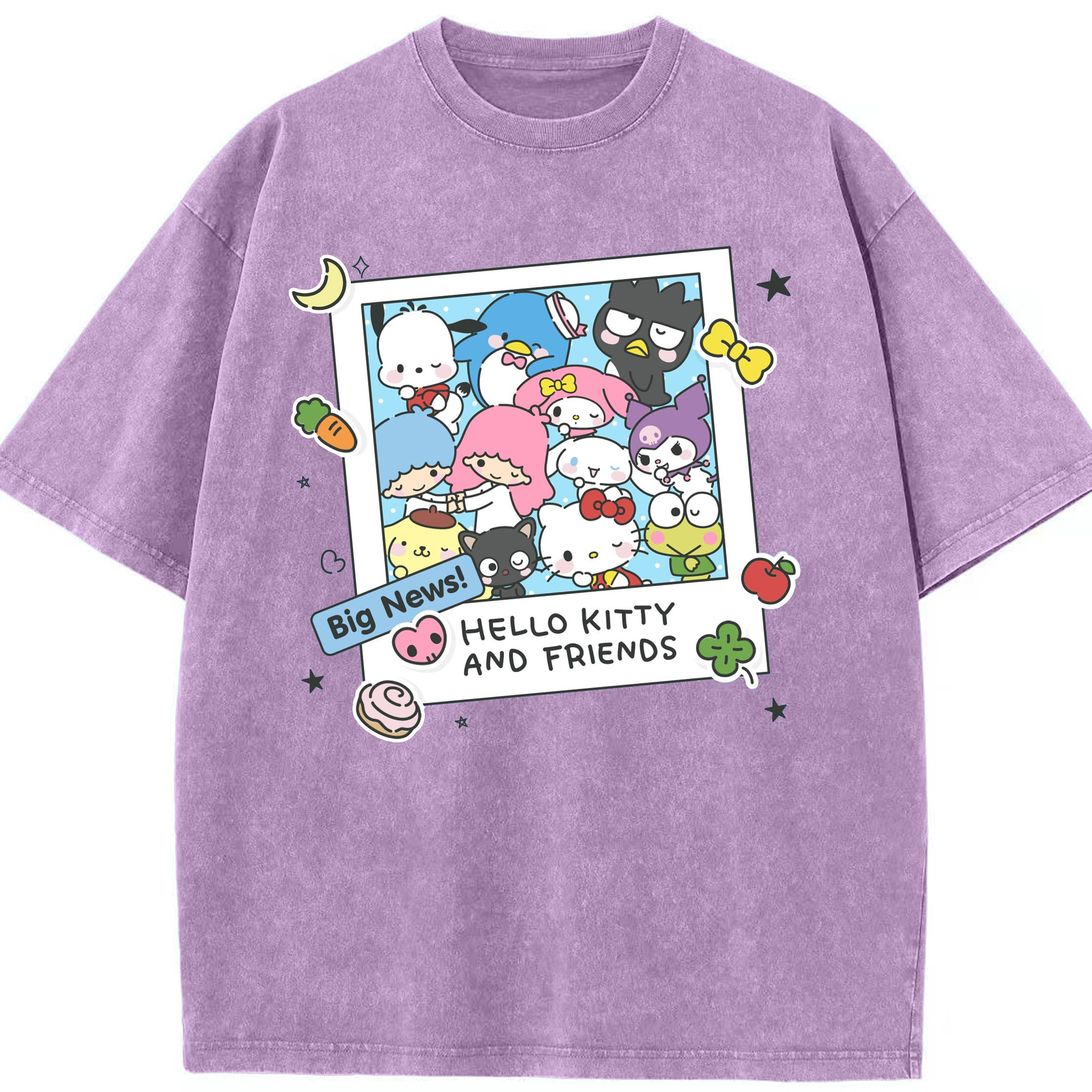 サンリオファミリー - 綿100% ヴィンテージ風 半袖Tシャツ ・ フロントプリント ・ 柔らか肌触り ・ 通気性 快適 ・ スポーツ カジュアル 外出用
