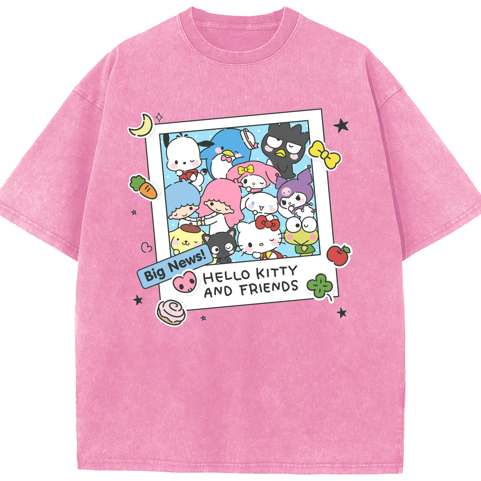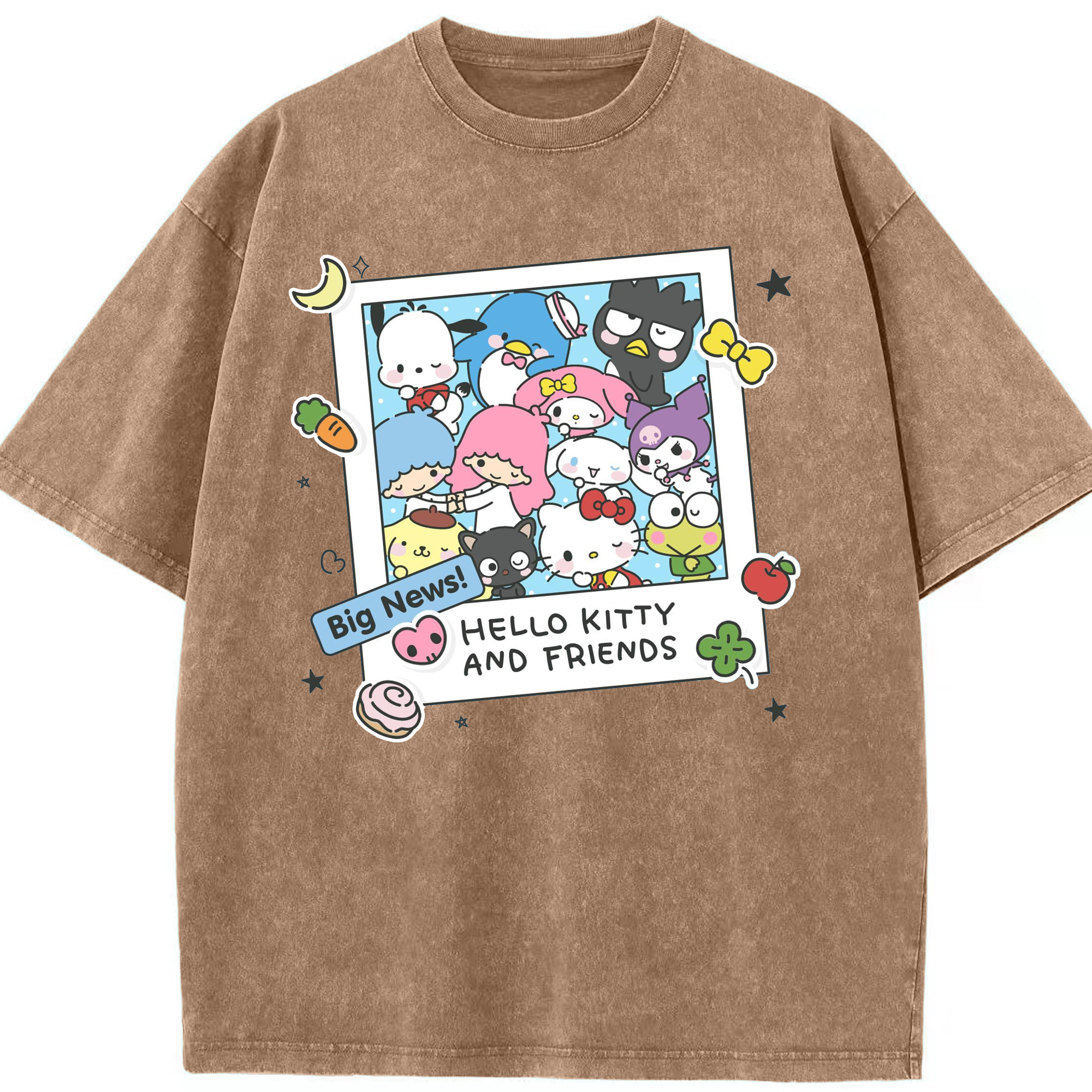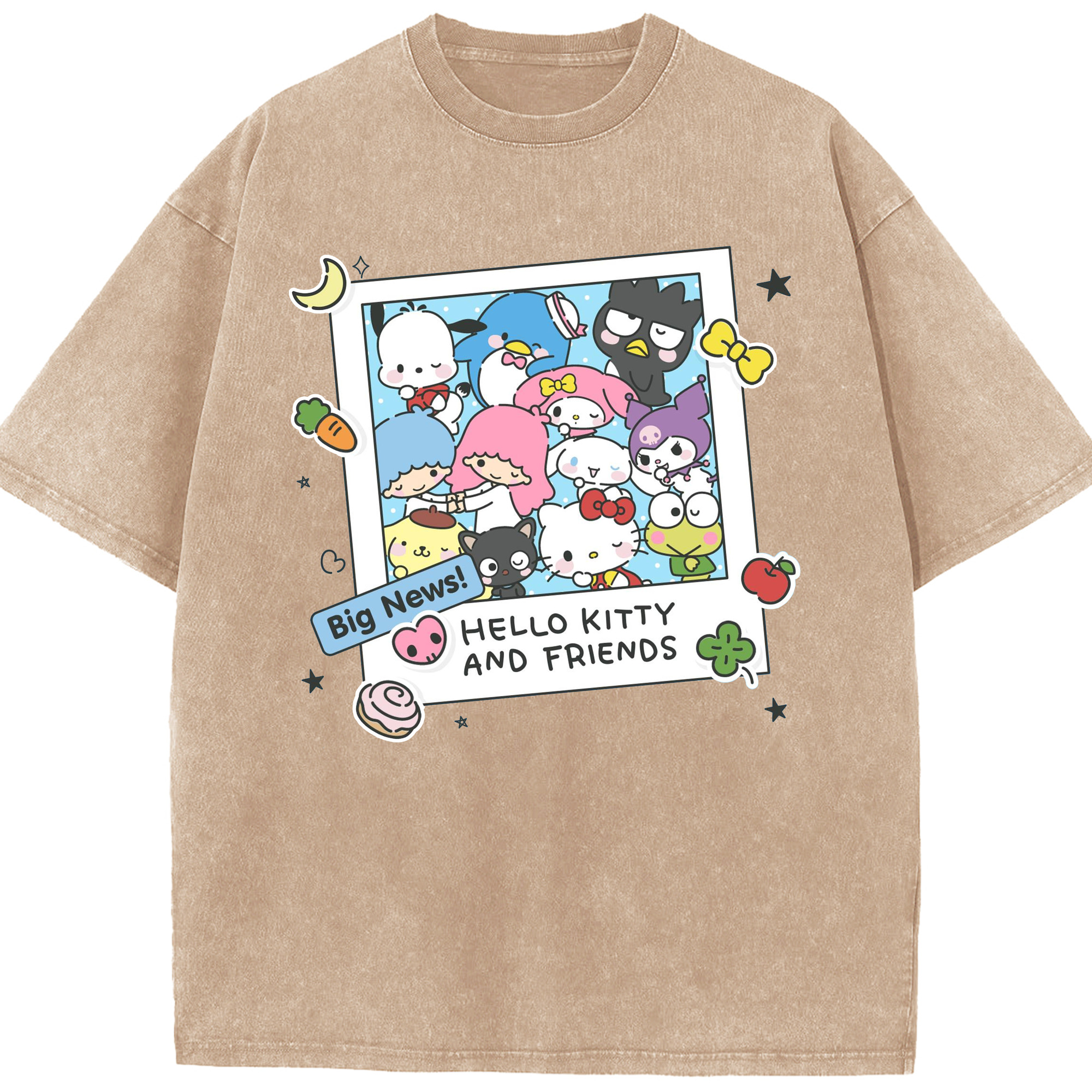 サンリオファミリー - 綿100% ヴィンテージ風 半袖Tシャツ ・ フロントプリント ・ 柔らか肌触り ・ 通気性 快適 ・ スポーツ カジュアル 外出用