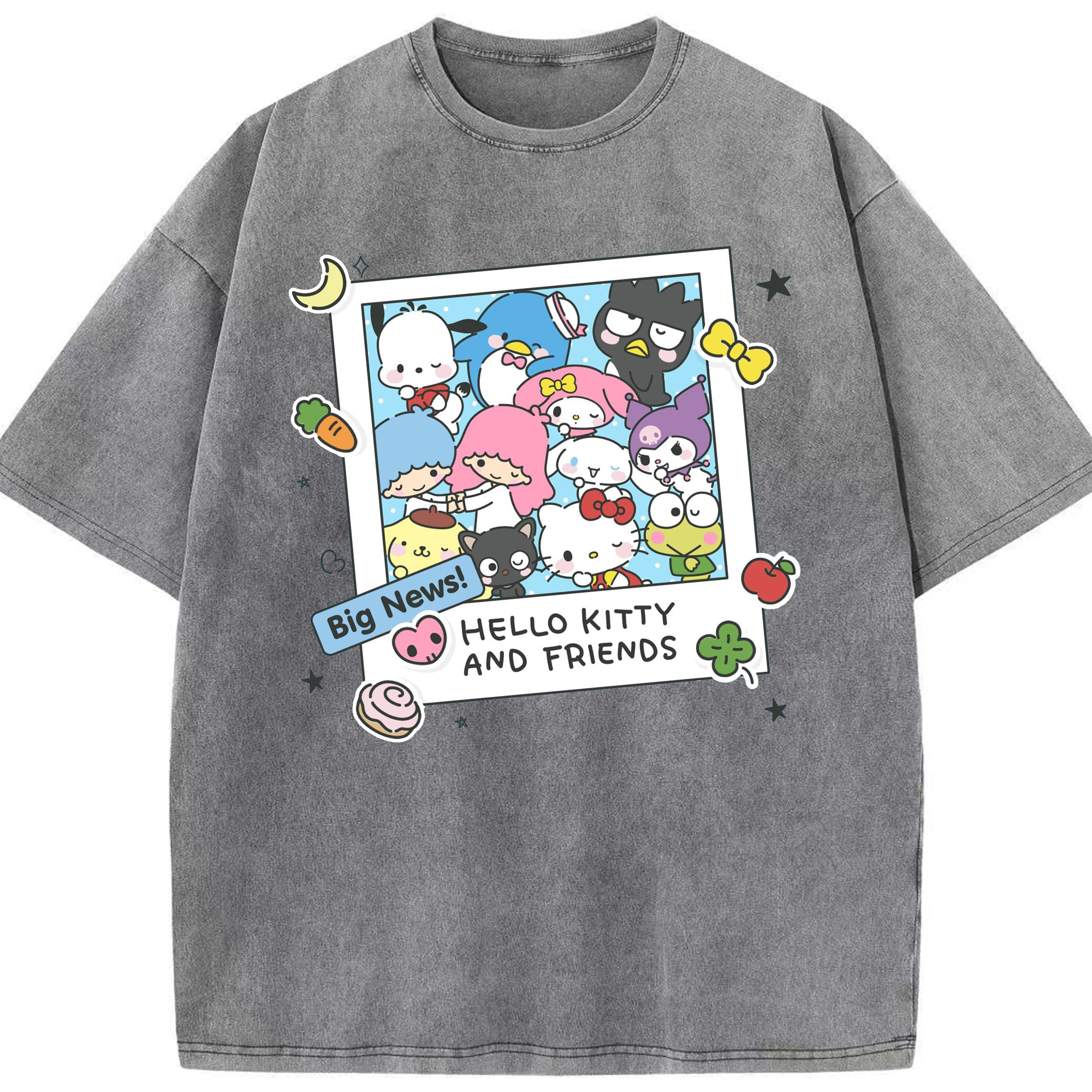 おもしろサンリオ - 綿100% ヴィンテージ風 半袖Tシャツ ・ フロントプリント ・ 柔らか肌触り ・ 通気性 快適 ・ スポーツ カジュアル 外出用