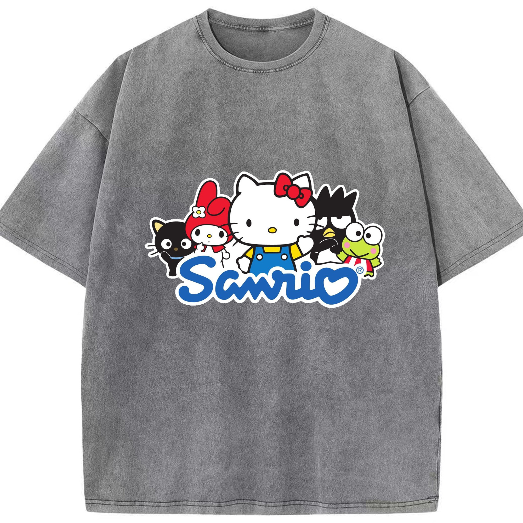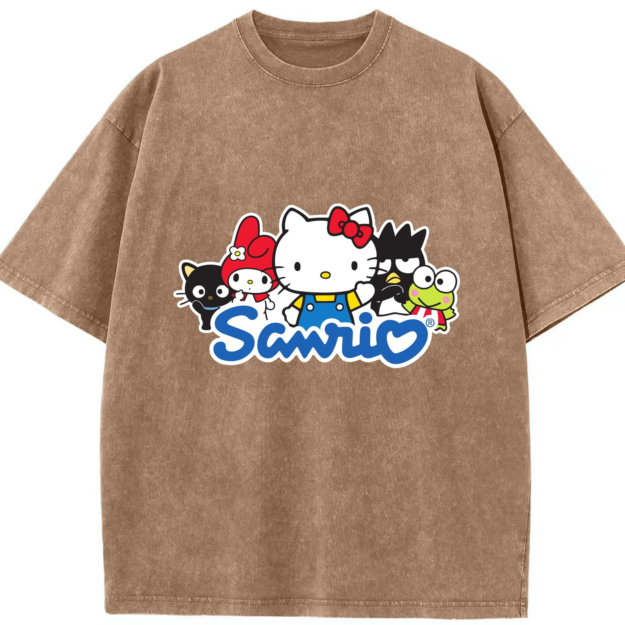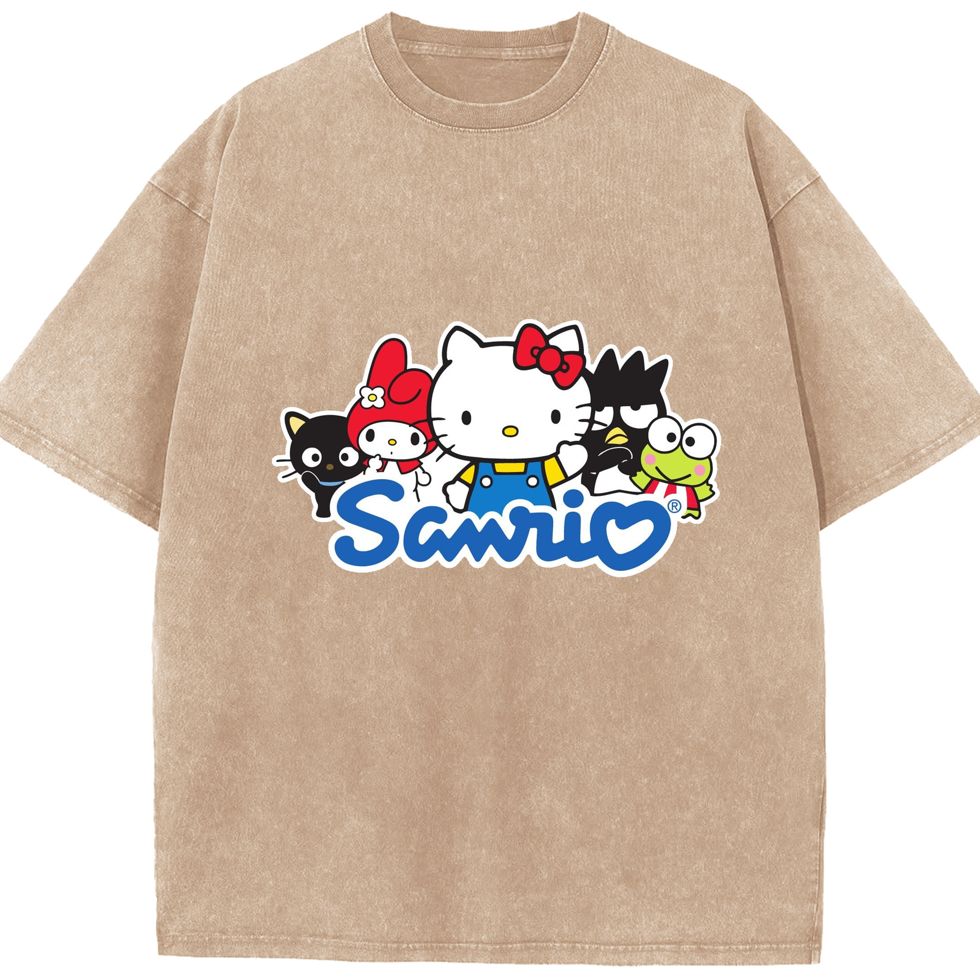 サンリオファミリー 2025年新作 - 綿100% ヴィンテージ風 半袖Tシャツ ・ フロントプリント ・ 柔らか肌触り ・ 通気性 快適 ・ スポーツ カジュアル 外出用