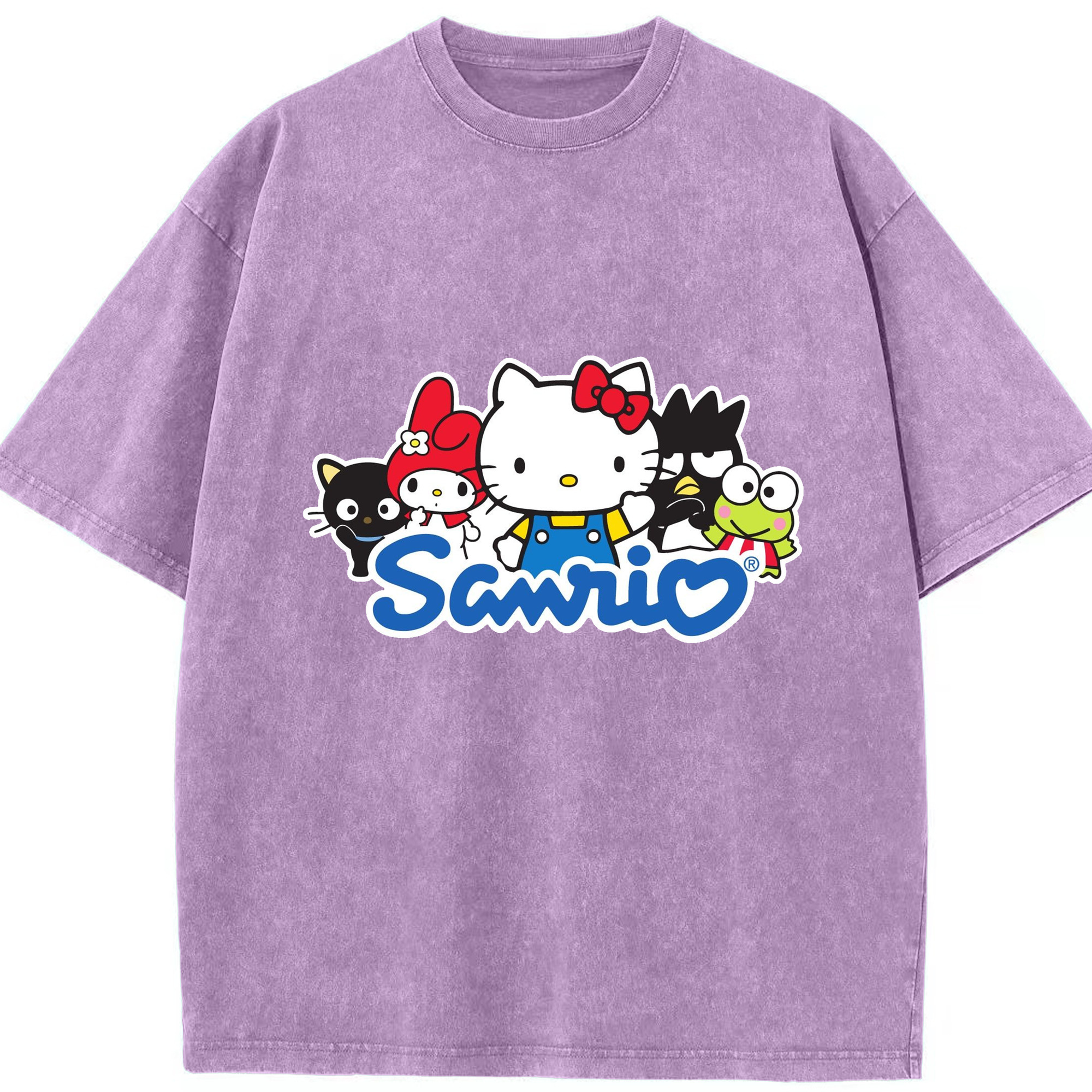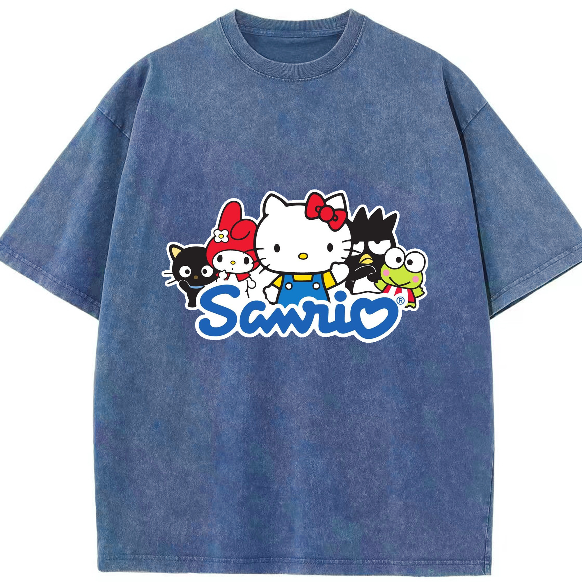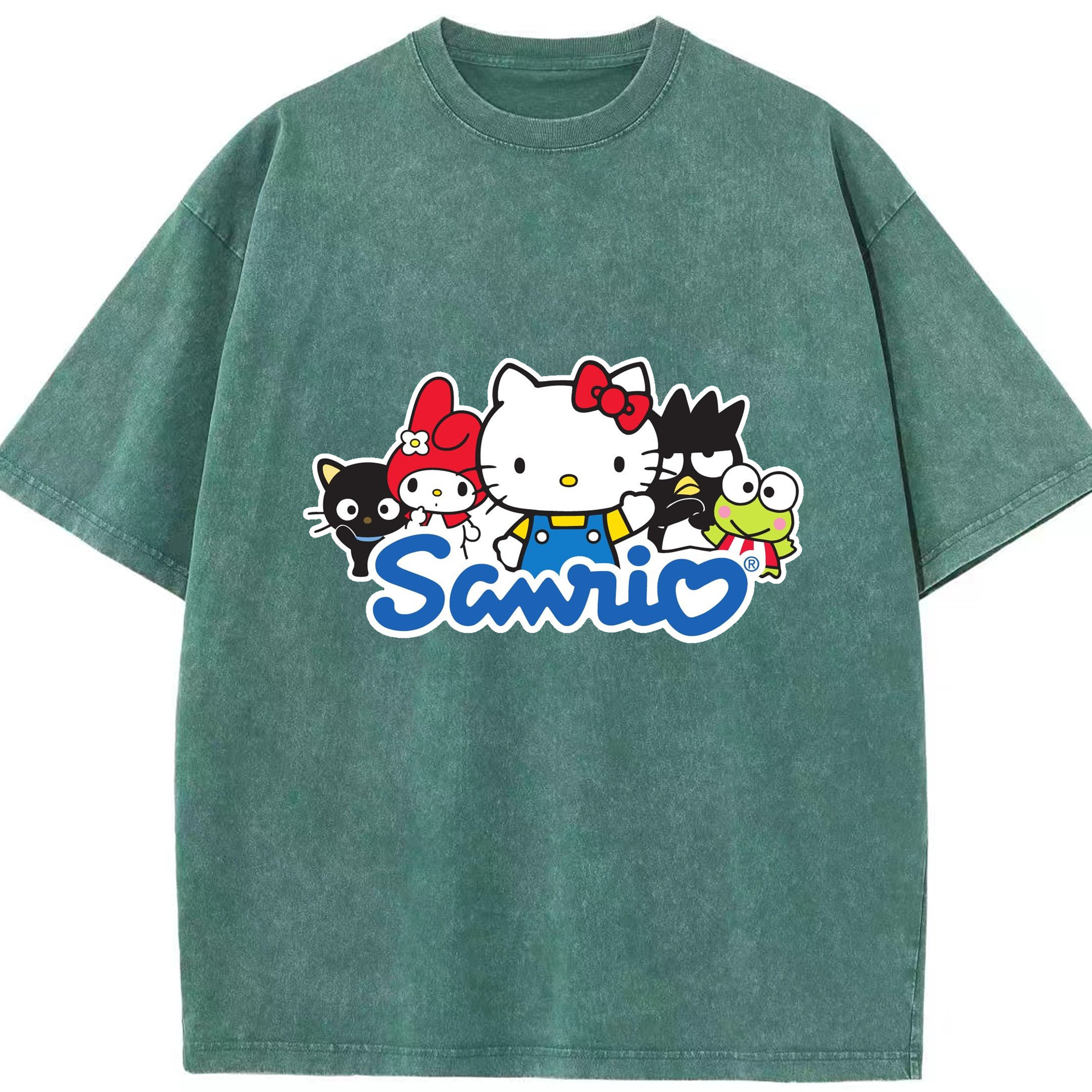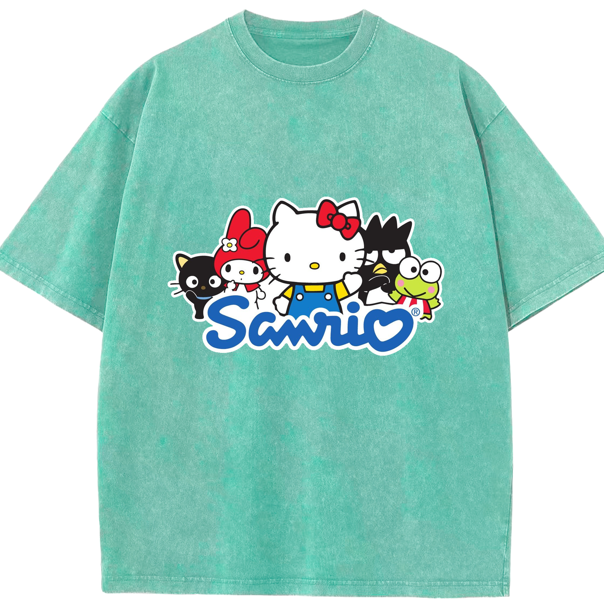 サンリオファミリー 2025年新作 - 綿100% ヴィンテージ風 半袖Tシャツ ・ フロントプリント ・ 柔らか肌触り ・ 通気性 快適 ・ スポーツ カジュアル 外出用