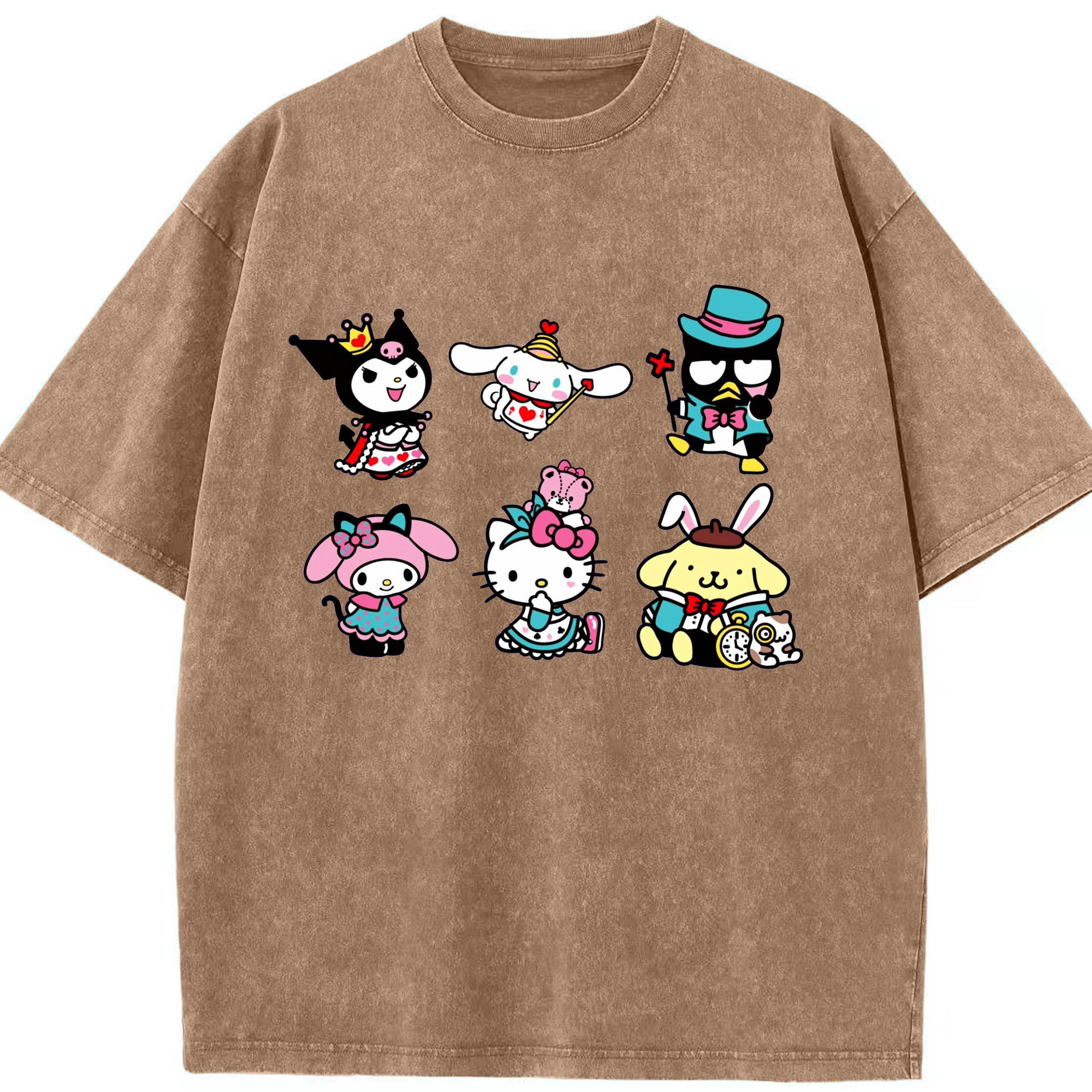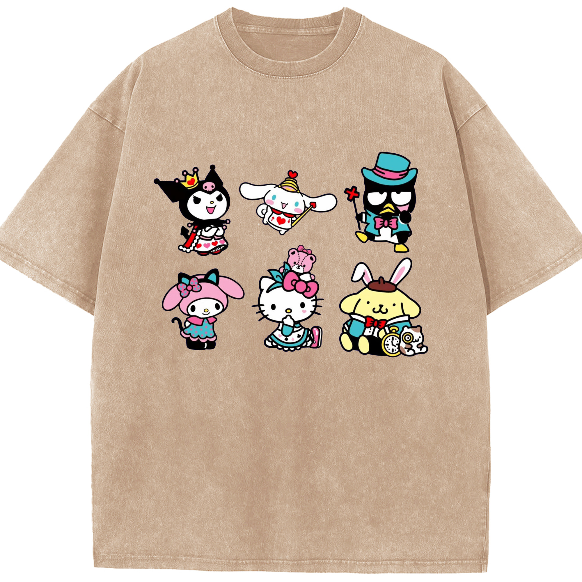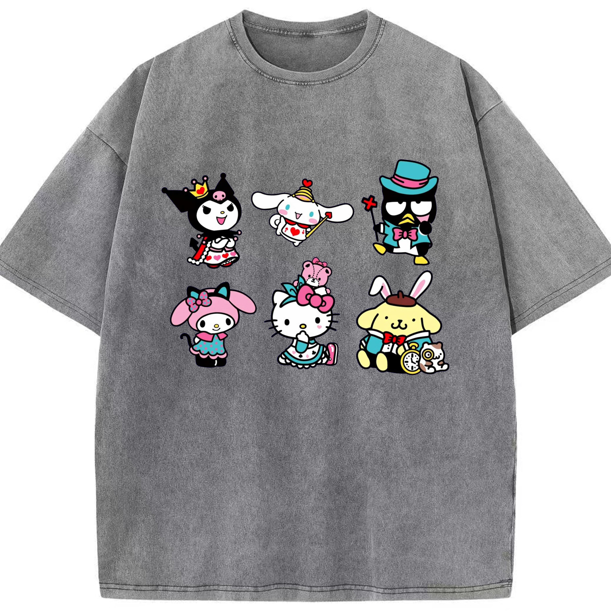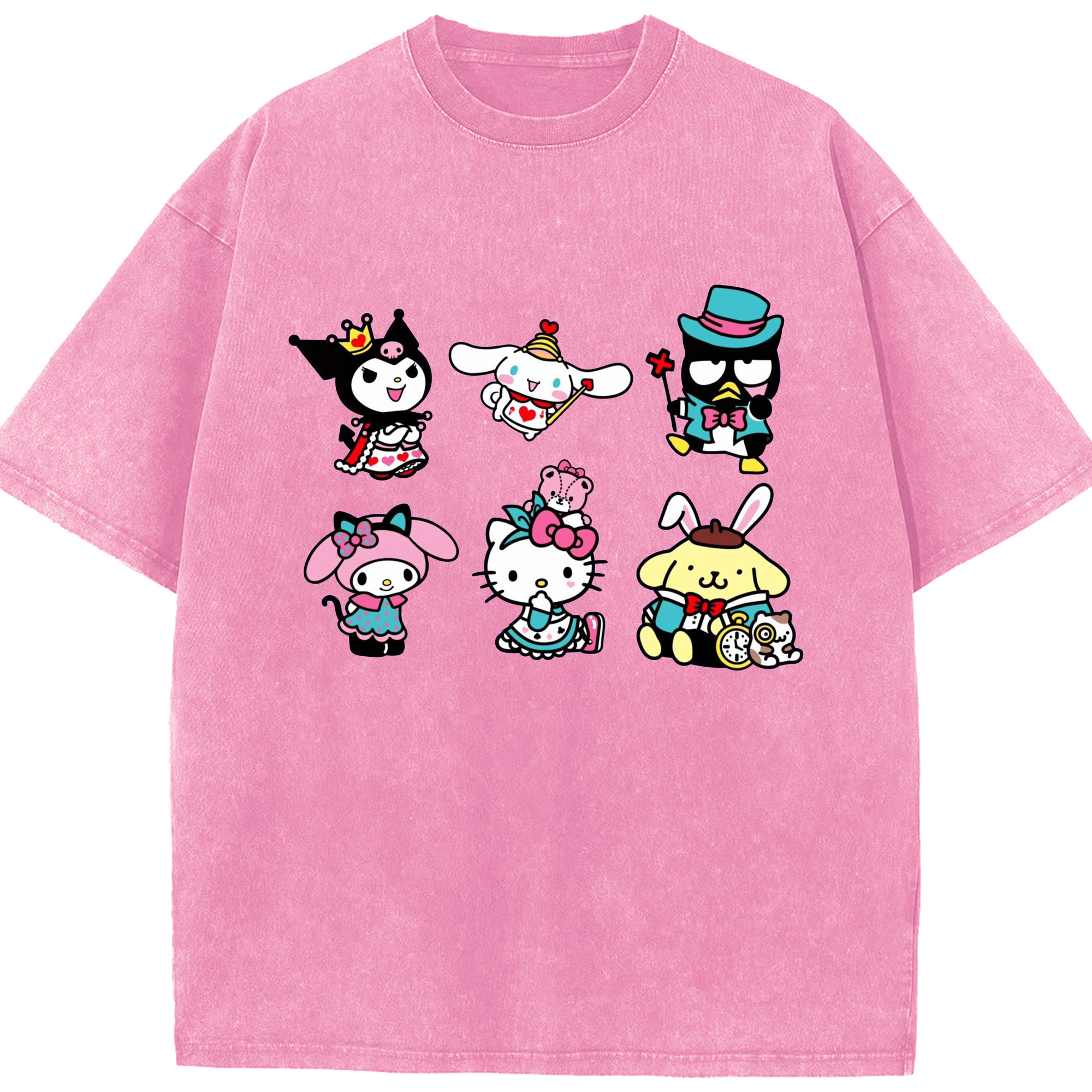 サンリオファミリー 2025年新作 - 綿100% ヴィンテージ風 半袖Tシャツ ・ フロントプリント ・ 柔らか肌触り ・ 通気性 快適 ・ スポーツ カジュアル 外出用