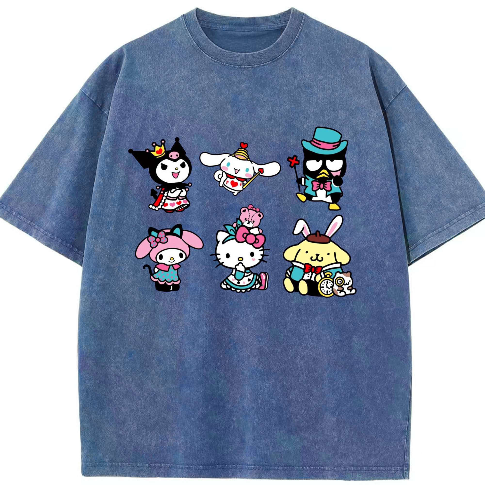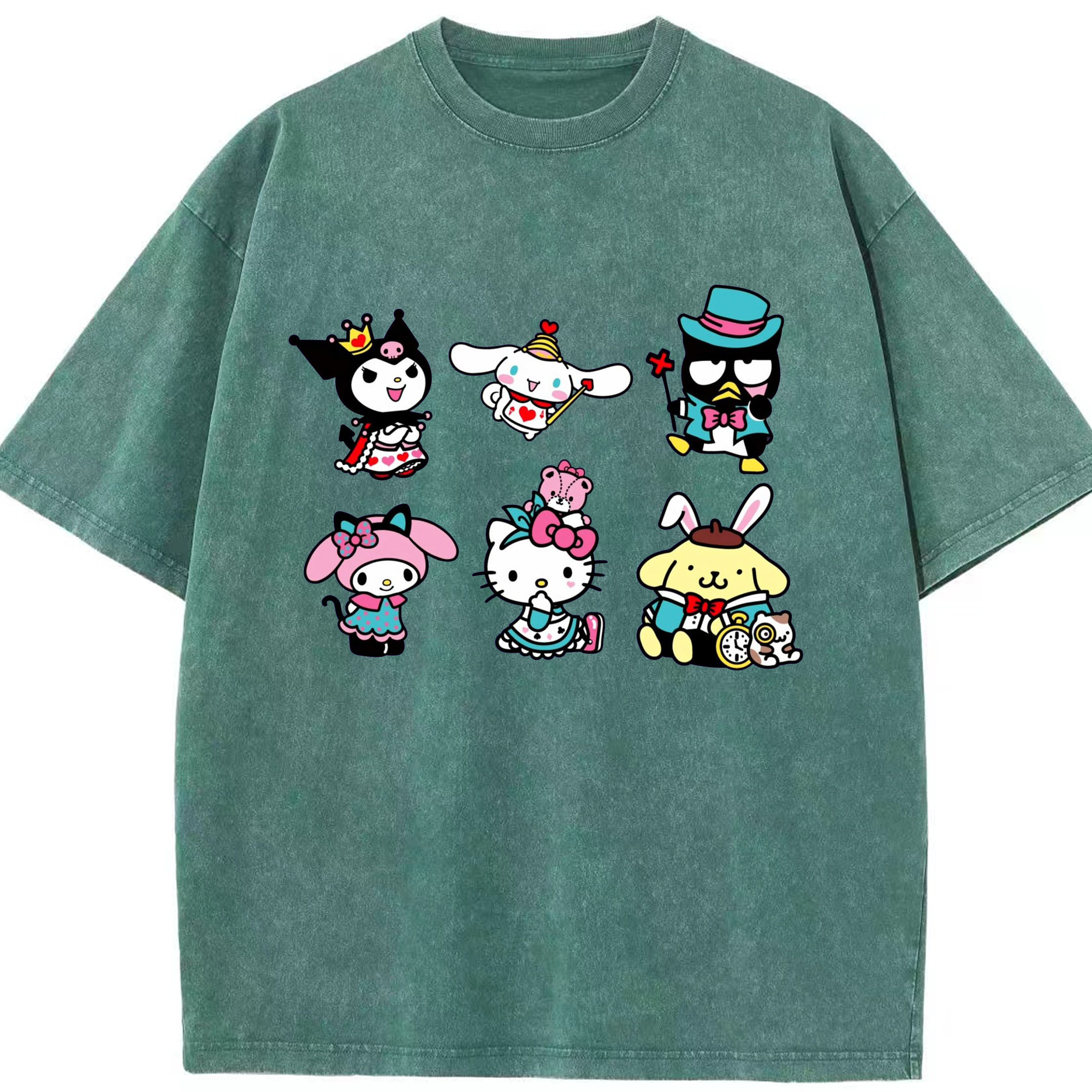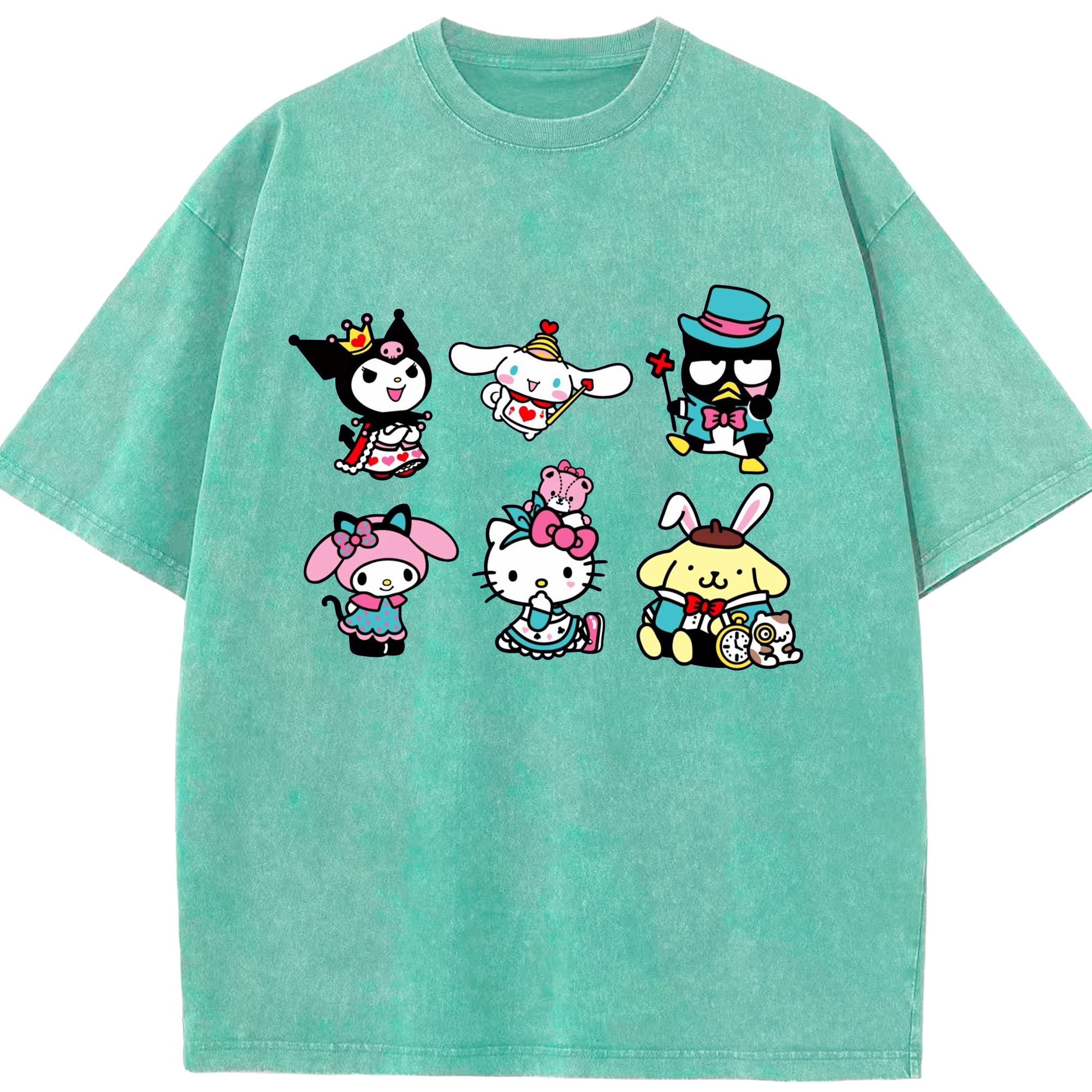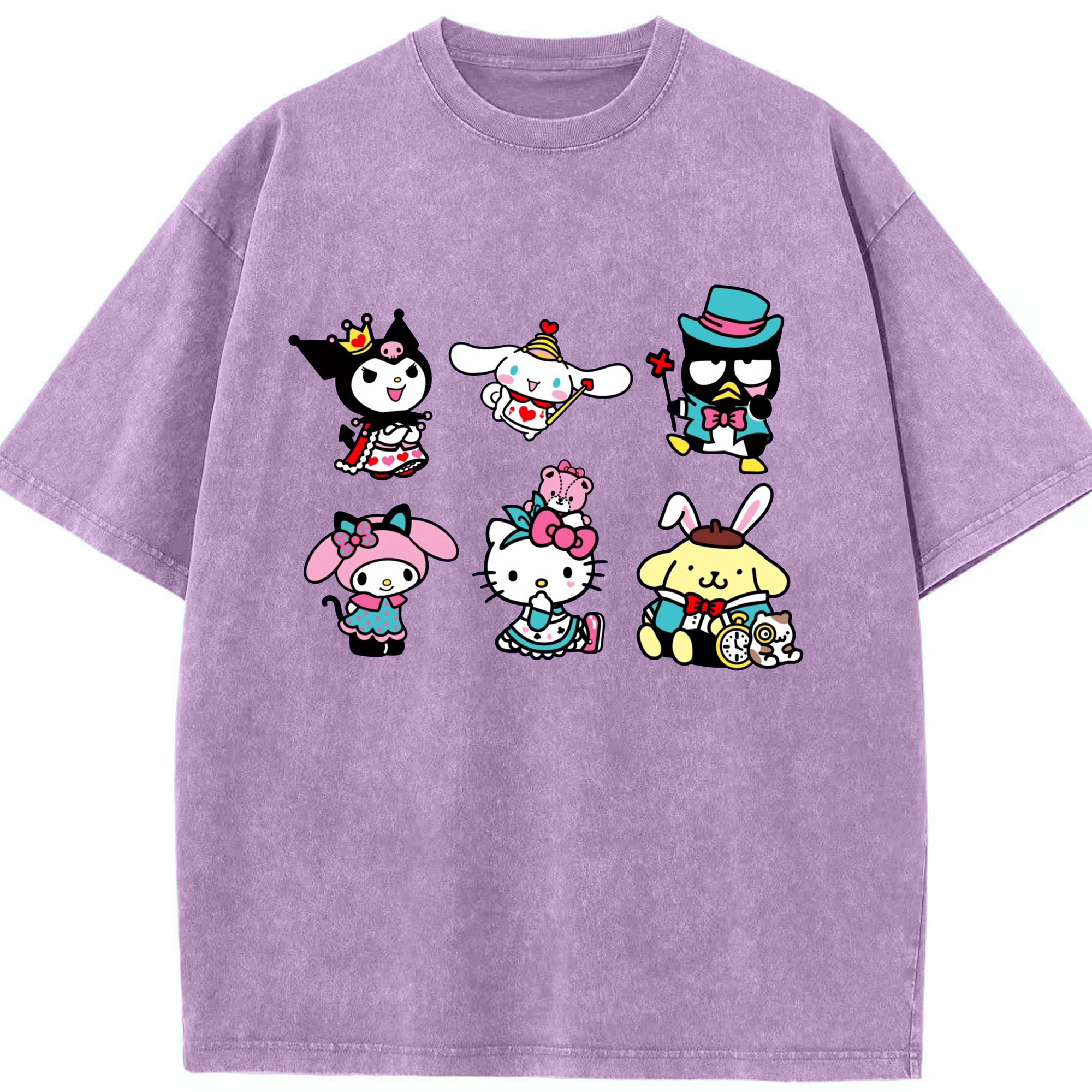 サンリオファミリー 2025年新作 - 綿100% ヴィンテージ風 半袖Tシャツ ・ フロントプリント ・ 柔らか肌触り ・ 通気性 快適 ・ スポーツ カジュアル 外出用