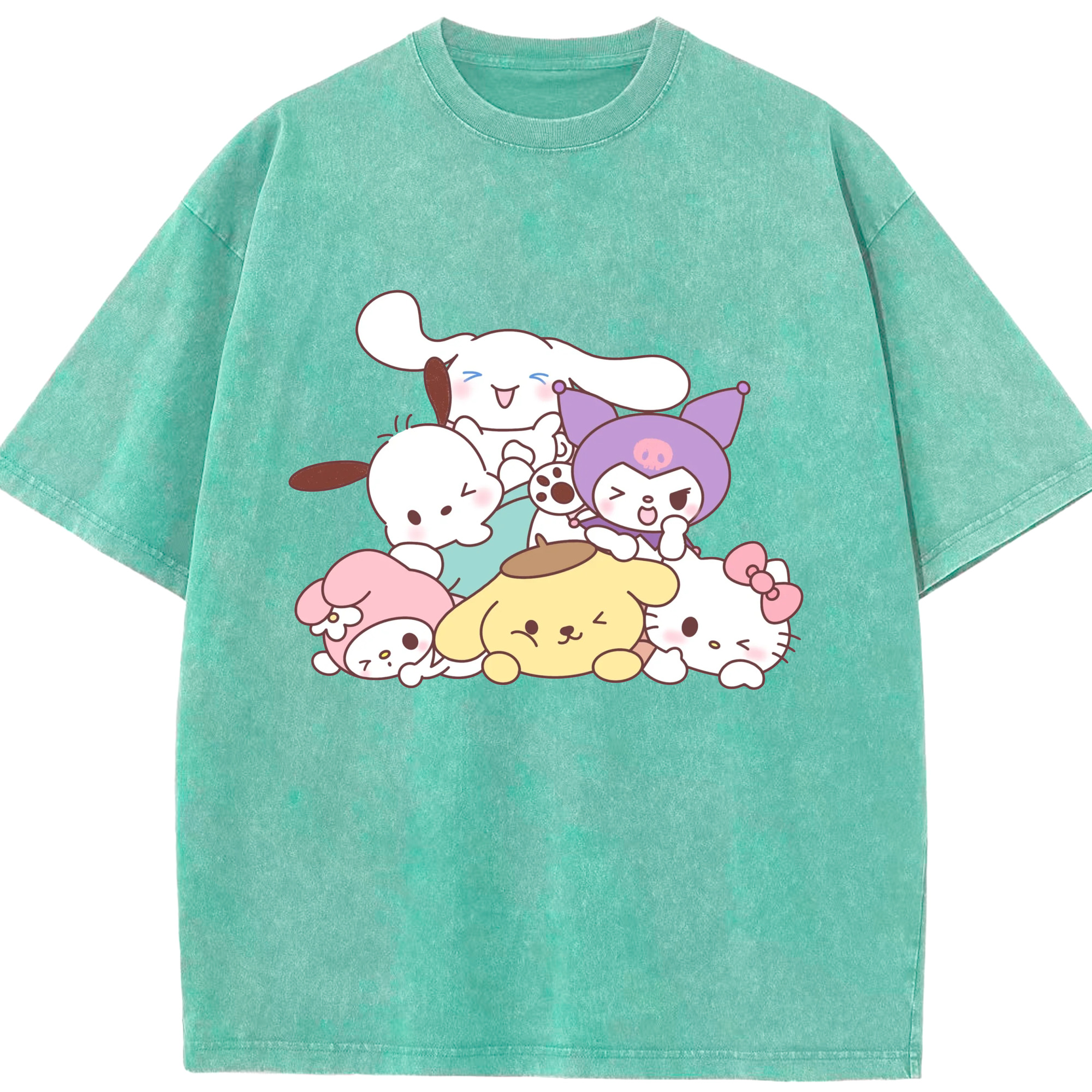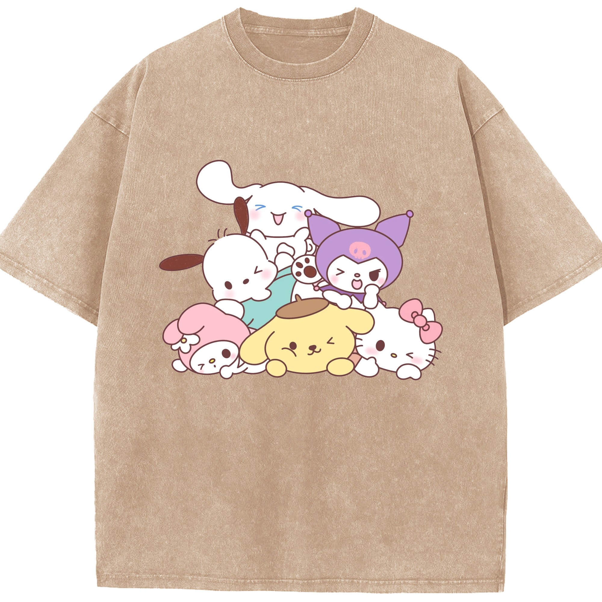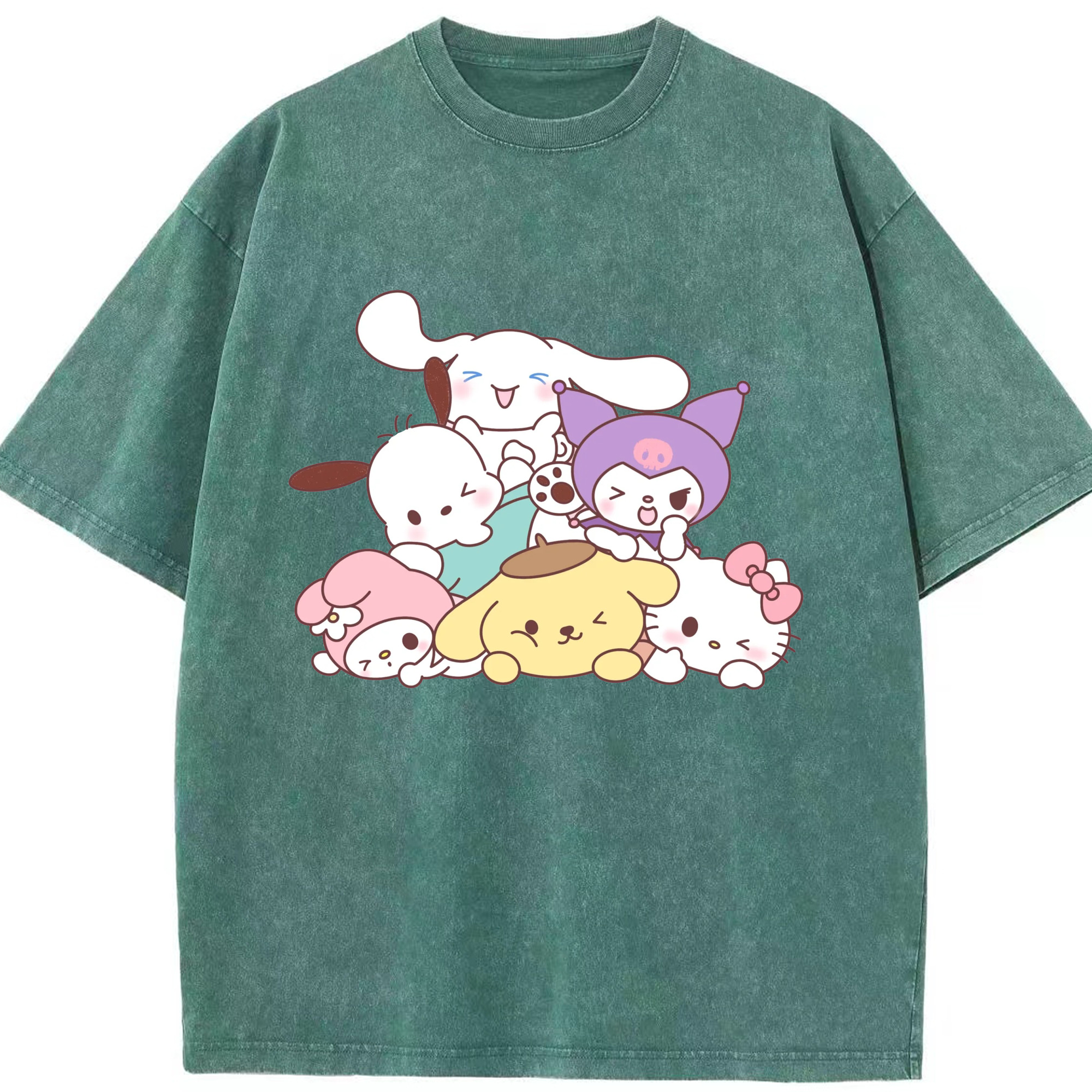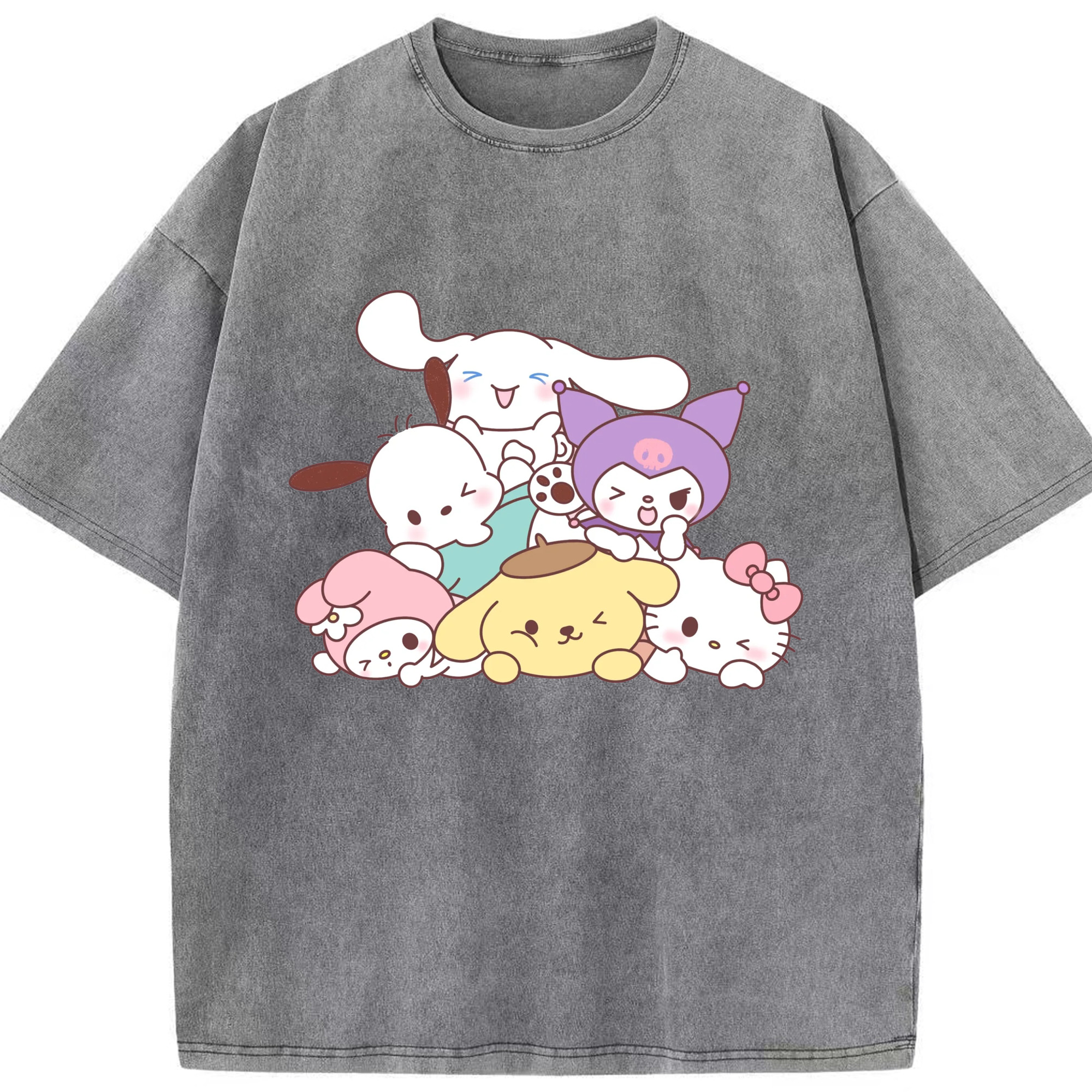毎日着たい♪カジュアルサンリオ - 綿100% ヴィンテージ風 半袖Tシャツ ・ フロントプリント ・ 柔らか肌触り ・ 通気性 快適 ・ スポーツ カジュアル 外出用